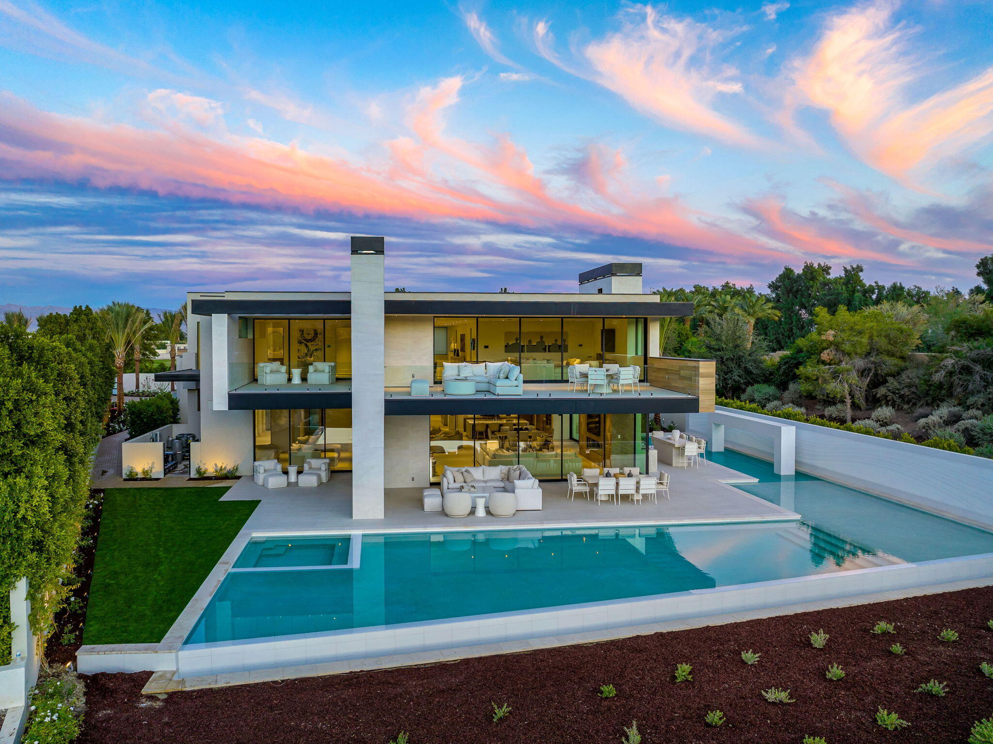 Welcome to your dream home at The Madison Club, where comfort and contemporary design meet in perfect harmony. This new construction property offers everything you need for a relaxing and luxurious desert retreat. From the moment you enter this stunning estate, you will be captivated by the serene water features that greet you and set the mood for your stay. This 8,786 square foot masterpiece features 5 spacious bedrooms, 5 full and 2 1/2 baths, a gourmet kitchen, equipped with top-of-the-line appliances, complete with a secondary kitchen and ample storage space, custom wine wall to showcase your favorite bottles, an office, 2 custom laundry rooms, 5 car garage, and an upper-level lounge with a custom pool table and bar for your entertainment. The outdoor entertainment area boasts an impressive custom-built, wrap-around private pool with an expansive tanning deck. This is the ideal place to cool off, barbecue and enjoy the breathtaking western views of the surrounding mountains and the 14th green of the Tom Fazio designed golf course. This home is a rare gem that combines elegance, comfort and sophistication. Luxury living awaits you, at The Madison Club.Interested in this Listing?