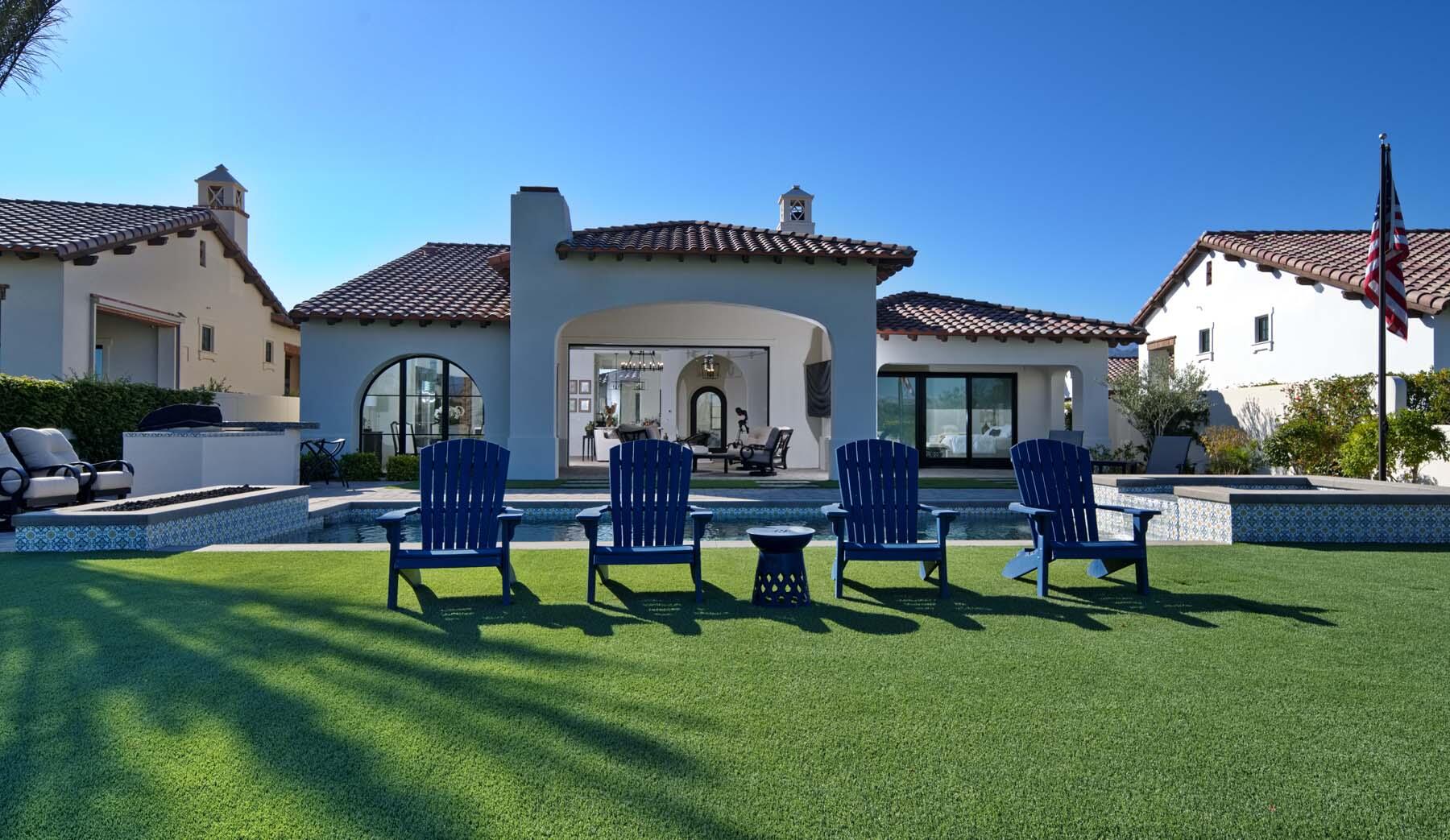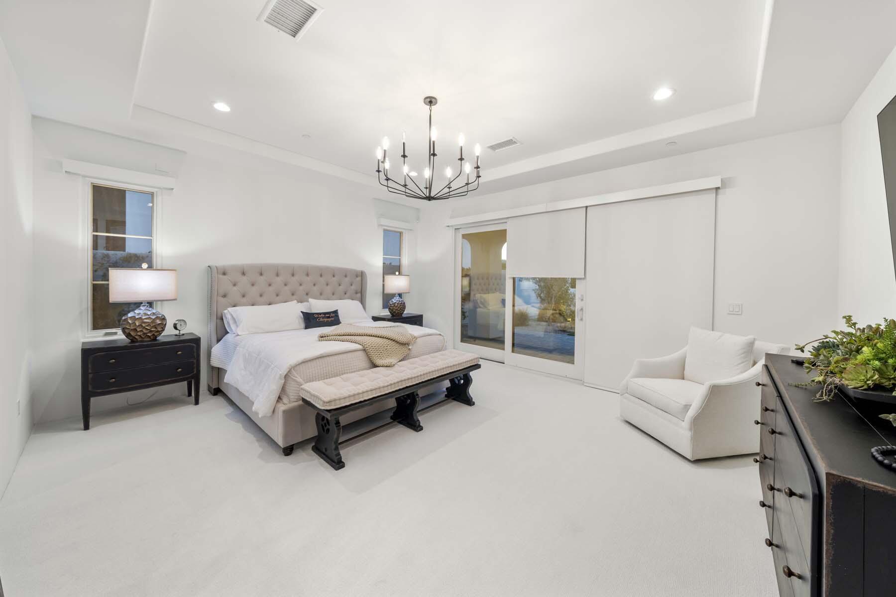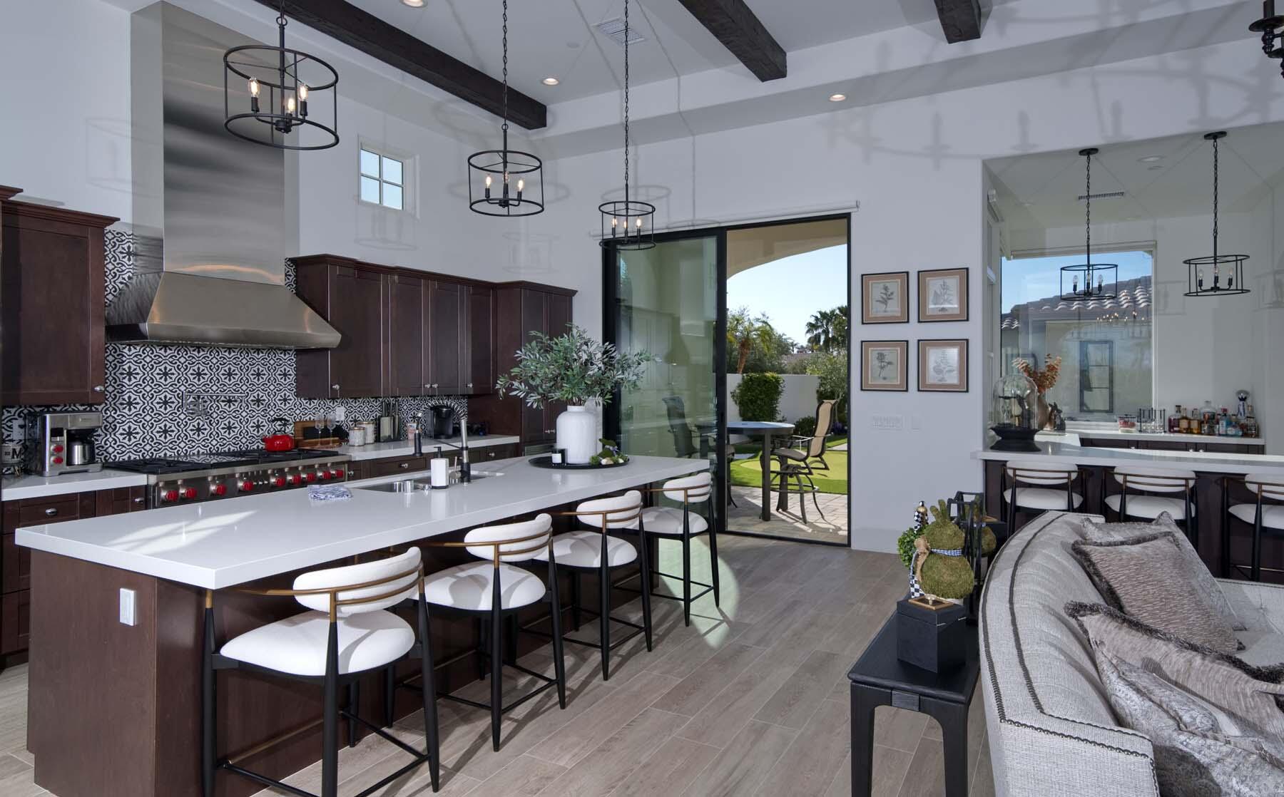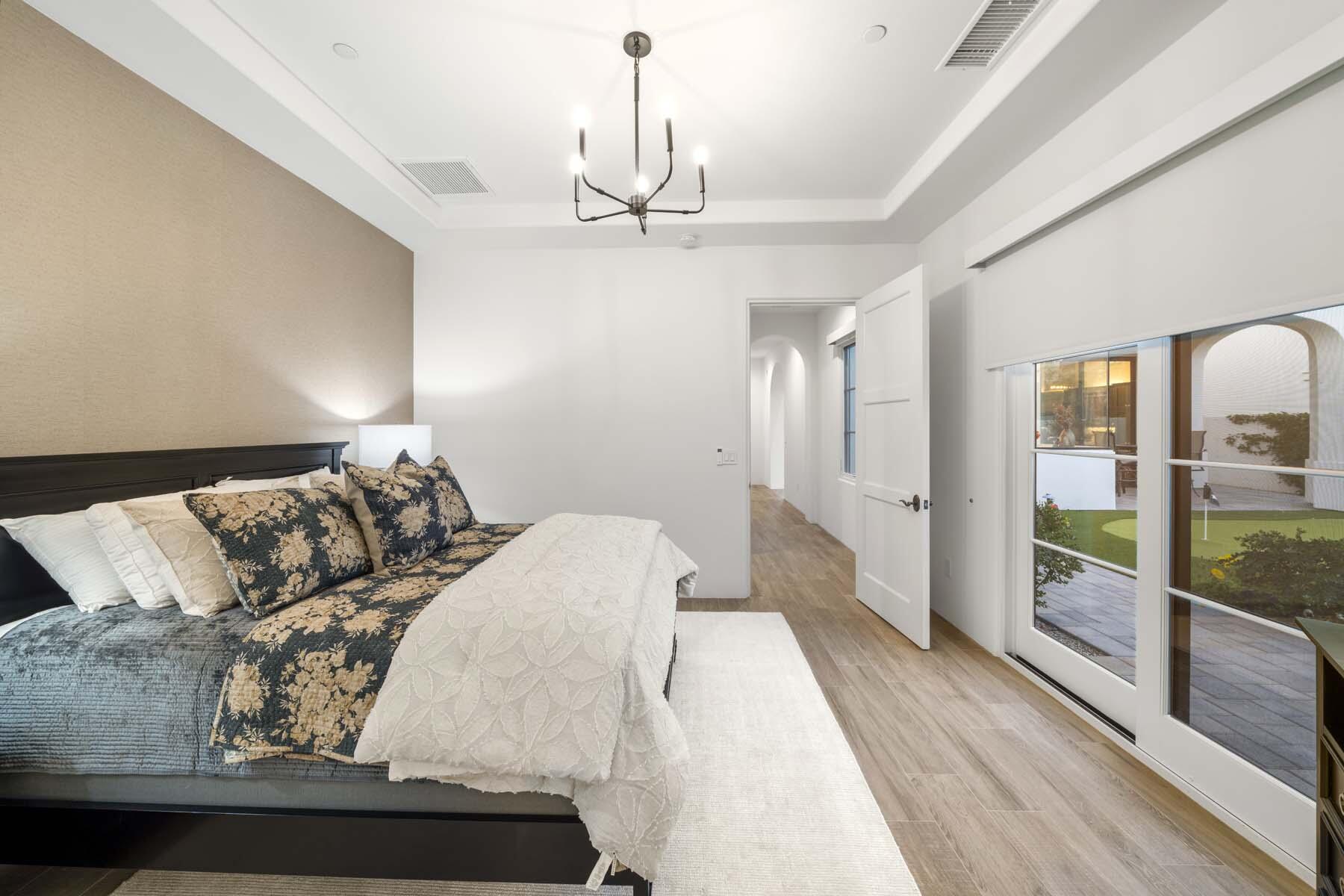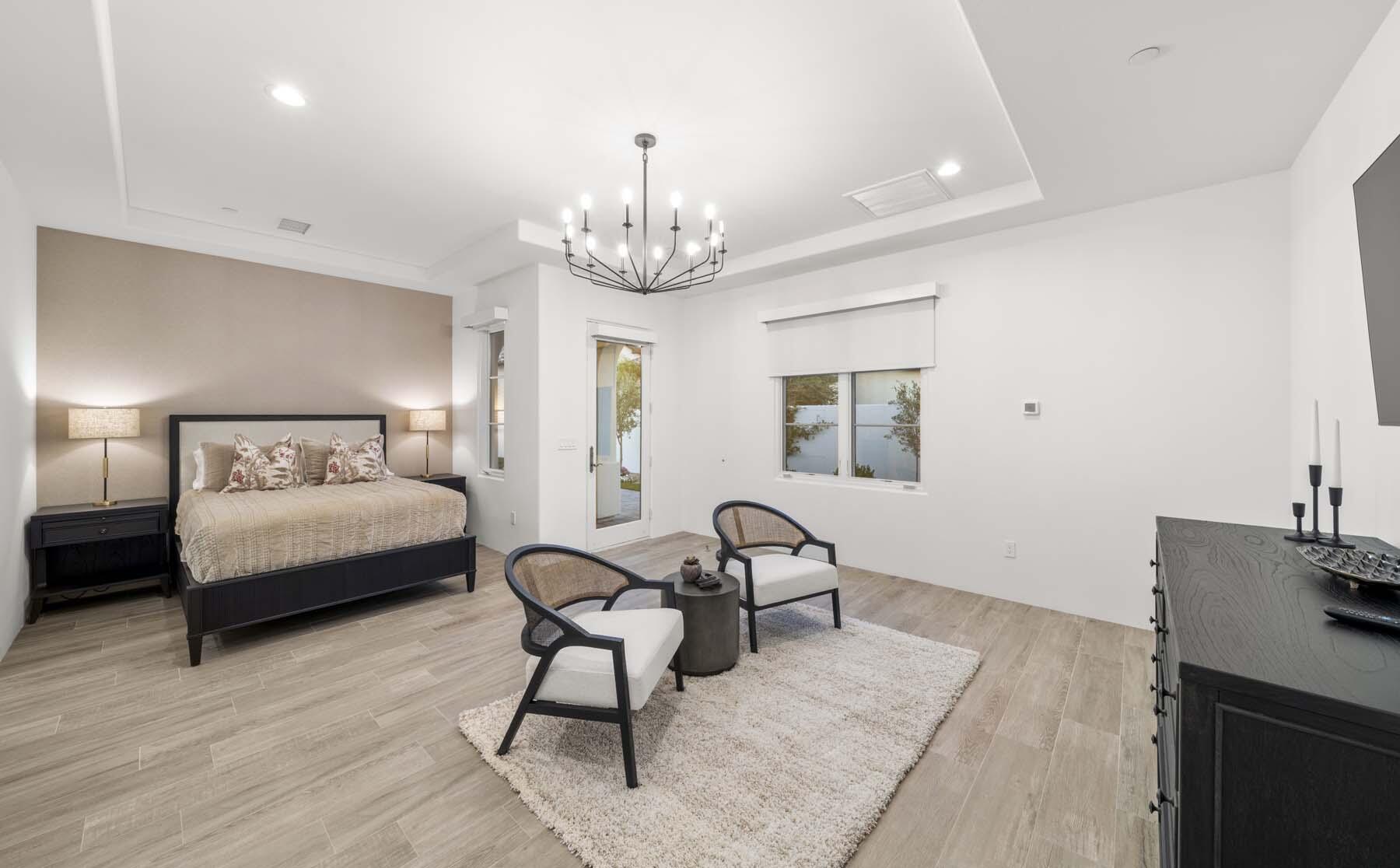 This highly upgraded Plan 322 at Andalusia Country Club offers 3,560 sq. ft. of exquisite desert living, perfectly positioned with stunning views down the 6th fairway and the Santa Rosa Mountains beyond. Impeccably furnished, this home combines luxury and comfort with every detail thoughtfully curated. The open-concept great room seamlessly flows into the gourmet kitchen, while a separate morning room provides an inviting space for casual dining, all opening to a private covered patio and expansive interior courtyard. Disappearing sliding glass doors enhance the home's airy feel and effortless transition between indoor and outdoor spaces. A wet bar with seating serves both the great room and patio, ideal for hosting gatherings. The master suite is a true retreat, featuring a freestanding tub, separate shower, and dual walk-in closets. A private casita with its own entrance offers the perfect space for guests or a home office. Throughout the home, you'll find high-end finishes, custom lighting, and a sophisticated design that creates an atmosphere of effortless elegance. The backyard is an entertainer's paradise, with a custom pool and spa offering a serene outdoor living experience. Blending modern design with desert charm, this home exemplifies the ultimate in luxury living. Turnkey furnished per inventory.Interested in this Listing?