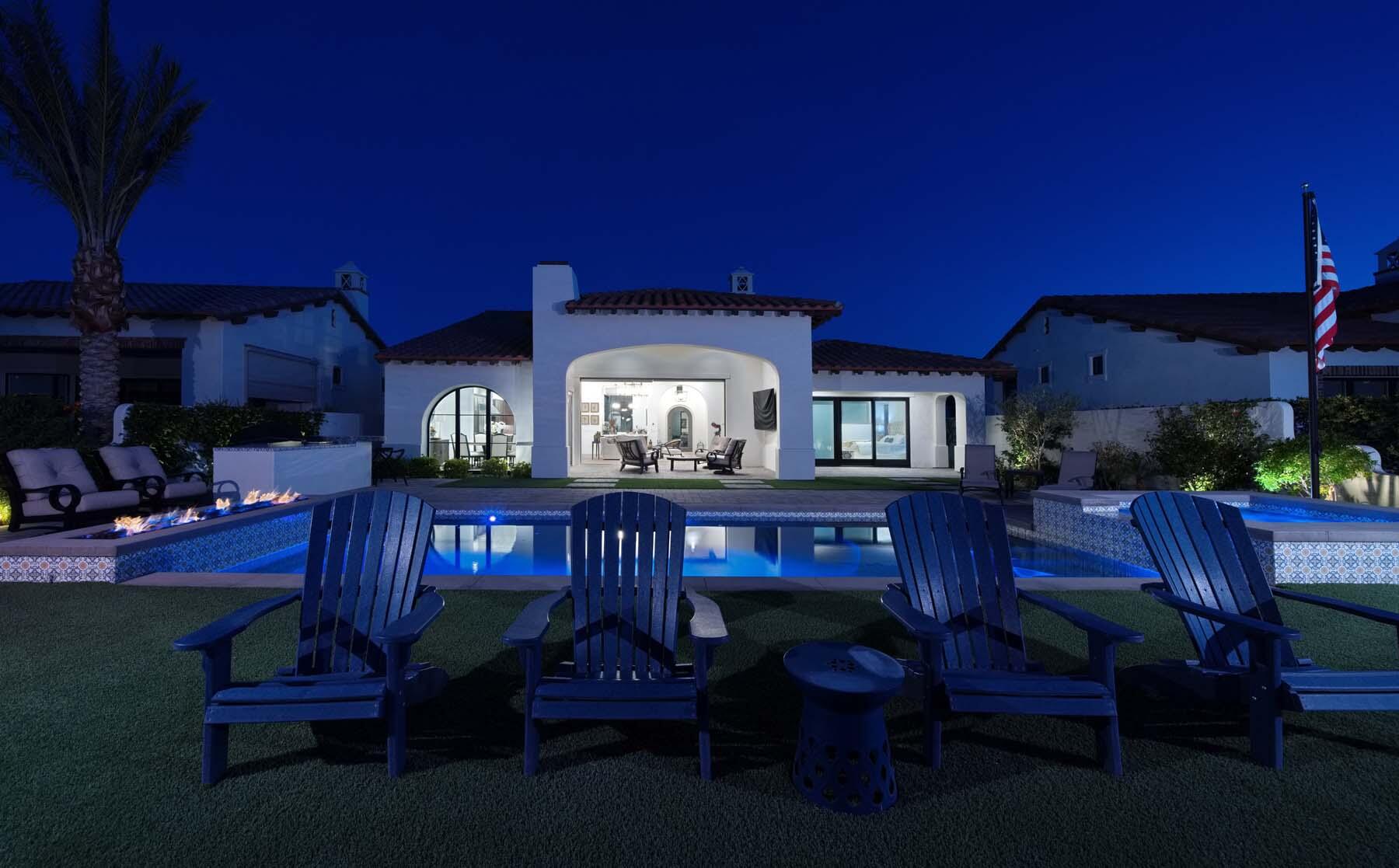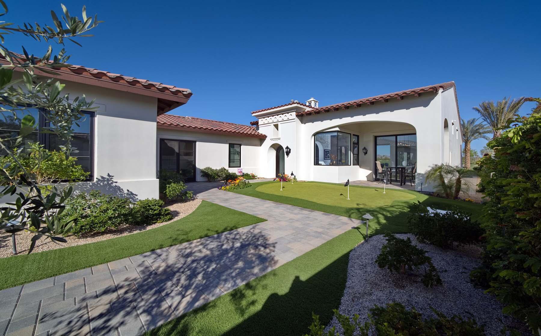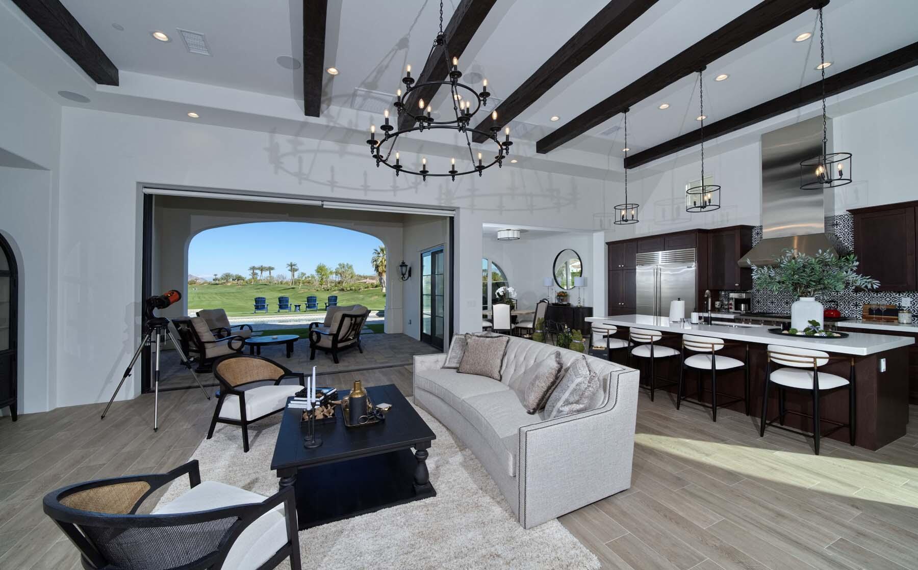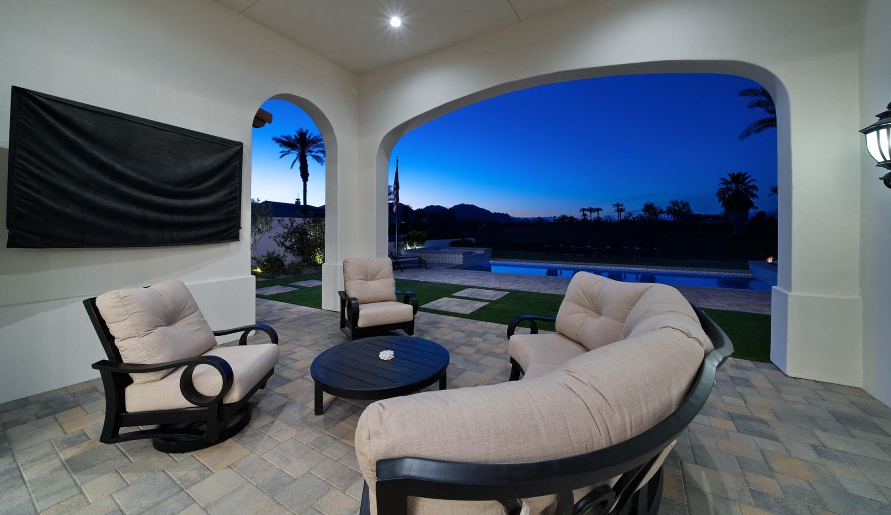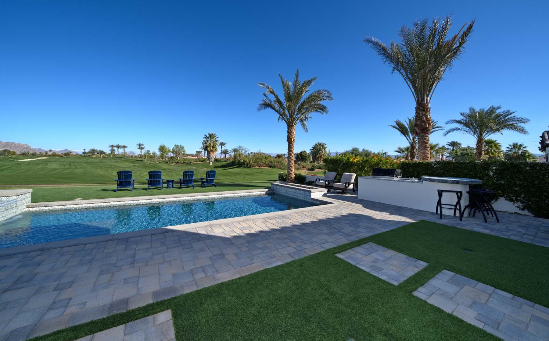 This highly upgraded Plan 322 at Andalusia Country Club offers 3,560 sq. ft. of exquisite desert living, perfectly positioned with stunning views down the 6th fairway and the Santa Rosa Mountains beyond. Impeccably furnished, this home combines luxury and comfort with every detail thoughtfully curated. The open-concept great room seamlessly flows into the gourmet kitchen, while a separate morning room provides an inviting space for casual dining, all opening to a private covered patio and expansive interior courtyard. Disappearing sliding glass doors enhance the home's airy feel and effortless transition between indoor and outdoor spaces. A wet bar with seating serves both the great room and patio, ideal for hosting gatherings. The master suite is a true retreat, featuring a freestanding tub, separate shower, and dual walk-in closets. A private casita with its own entrance offers the perfect space for guests or a home office. Throughout the home, you'll find high-end finishes, custom lighting, and a sophisticated design that creates an atmosphere of effortless elegance. The backyard is an entertainer's paradise, with a custom pool and spa offering a serene outdoor living experience. Blending modern design with desert charm, this home exemplifies the ultimate in luxury living. Turnkey furnished per inventory.Interested in this Listing?