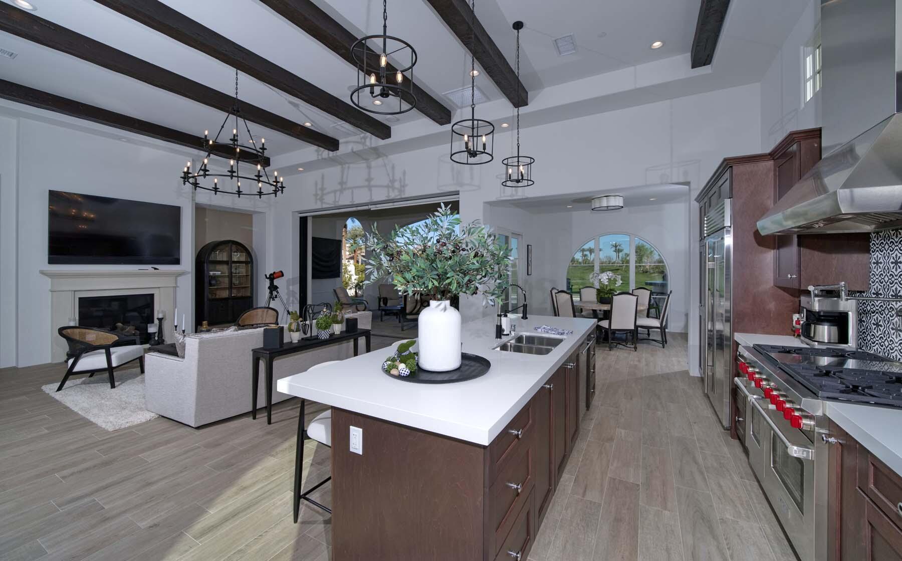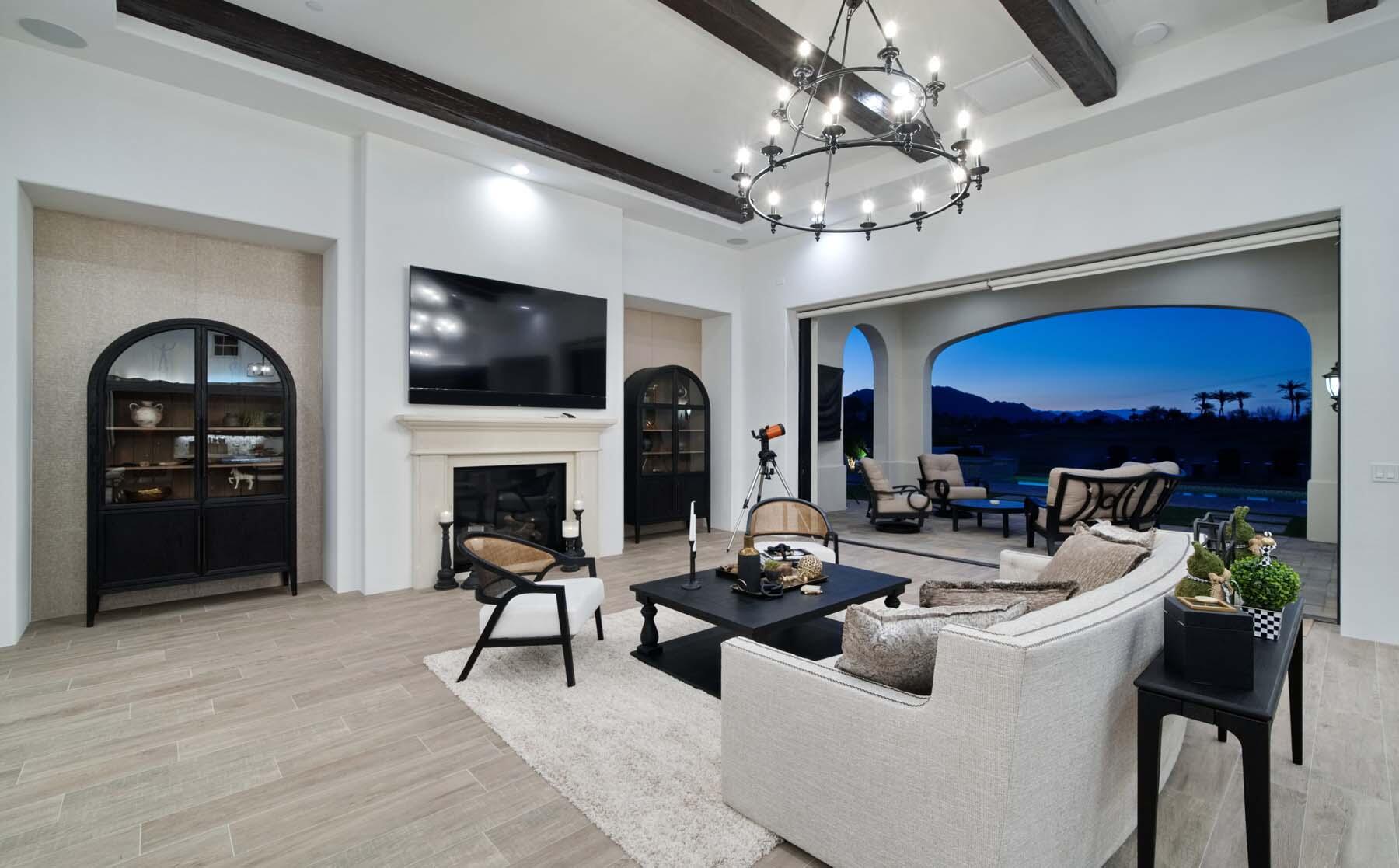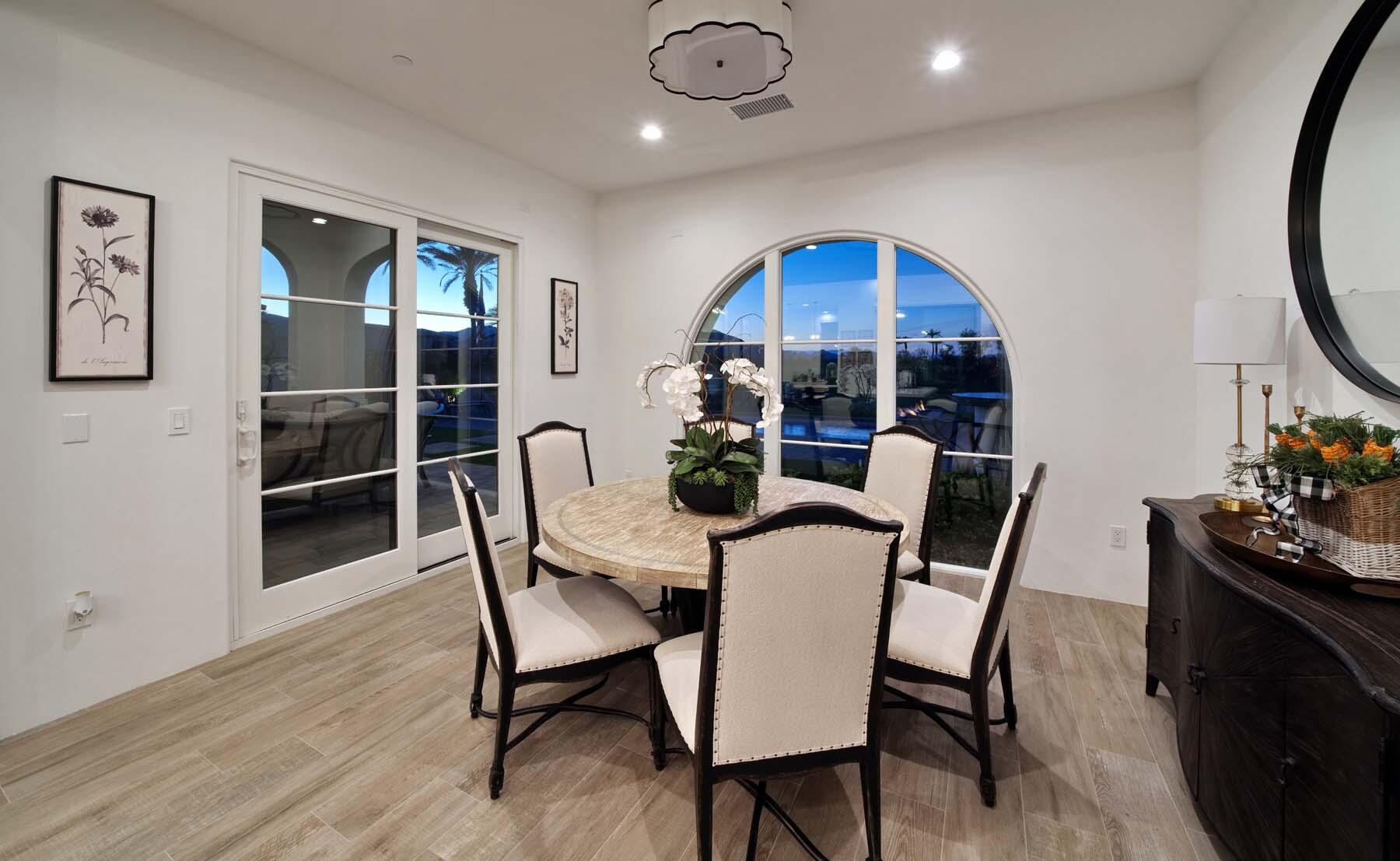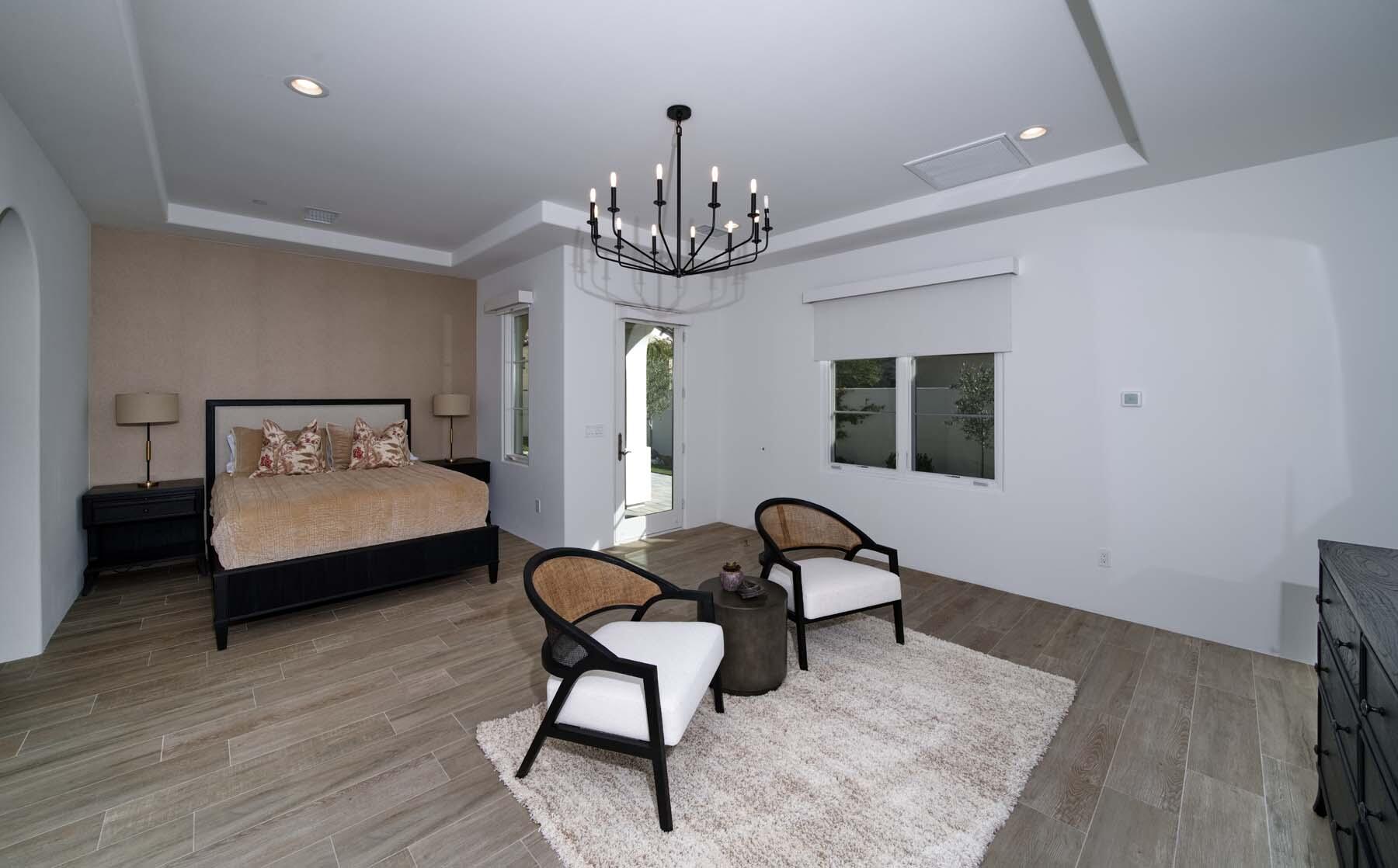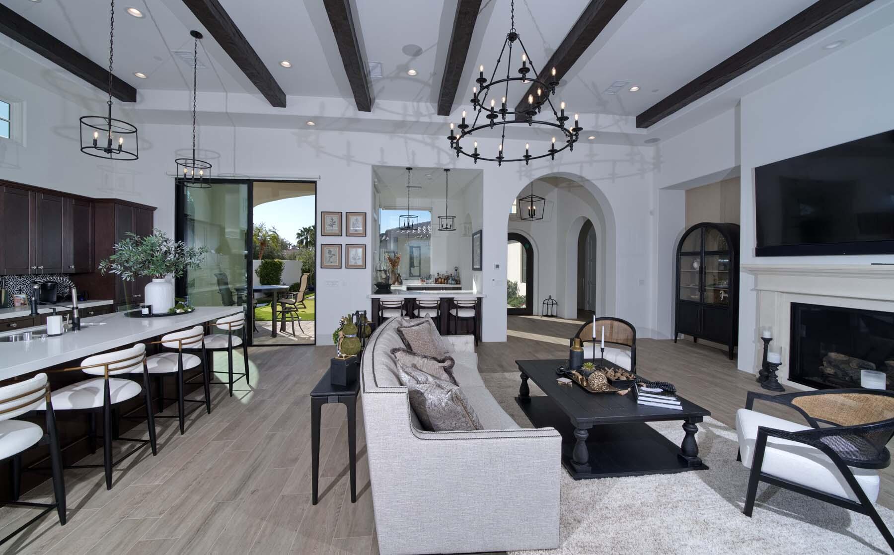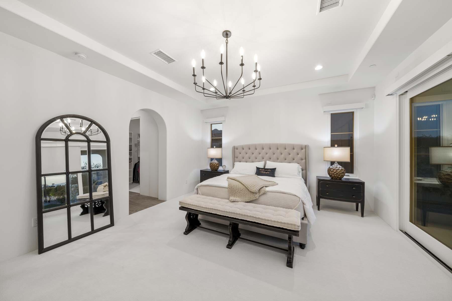 This highly upgraded Plan 322 at Andalusia Country Club offers 3,560 sq. ft. of exquisite desert living, perfectly positioned with stunning views down the 6th fairway and the Santa Rosa Mountains beyond. Impeccably furnished, this home combines luxury and comfort with every detail thoughtfully curated. The open-concept great room seamlessly flows into the gourmet kitchen, while a separate morning room provides an inviting space for casual dining, all opening to a private covered patio and expansive interior courtyard. Disappearing sliding glass doors enhance the home's airy feel and effortless transition between indoor and outdoor spaces. A wet bar with seating serves both the great room and patio, ideal for hosting gatherings. The master suite is a true retreat, featuring a freestanding tub, separate shower, and dual walk-in closets. A private casita with its own entrance offers the perfect space for guests or a home office. Throughout the home, you'll find high-end finishes, custom lighting, and a sophisticated design that creates an atmosphere of effortless elegance. The backyard is an entertainer's paradise, with a custom pool and spa offering a serene outdoor living experience. Blending modern design with desert charm, this home exemplifies the ultimate in luxury living. Turnkey furnished per inventory.Interested in this Listing?