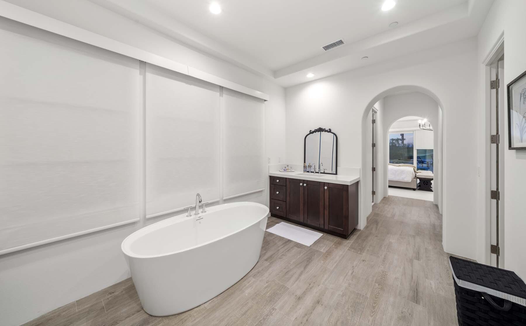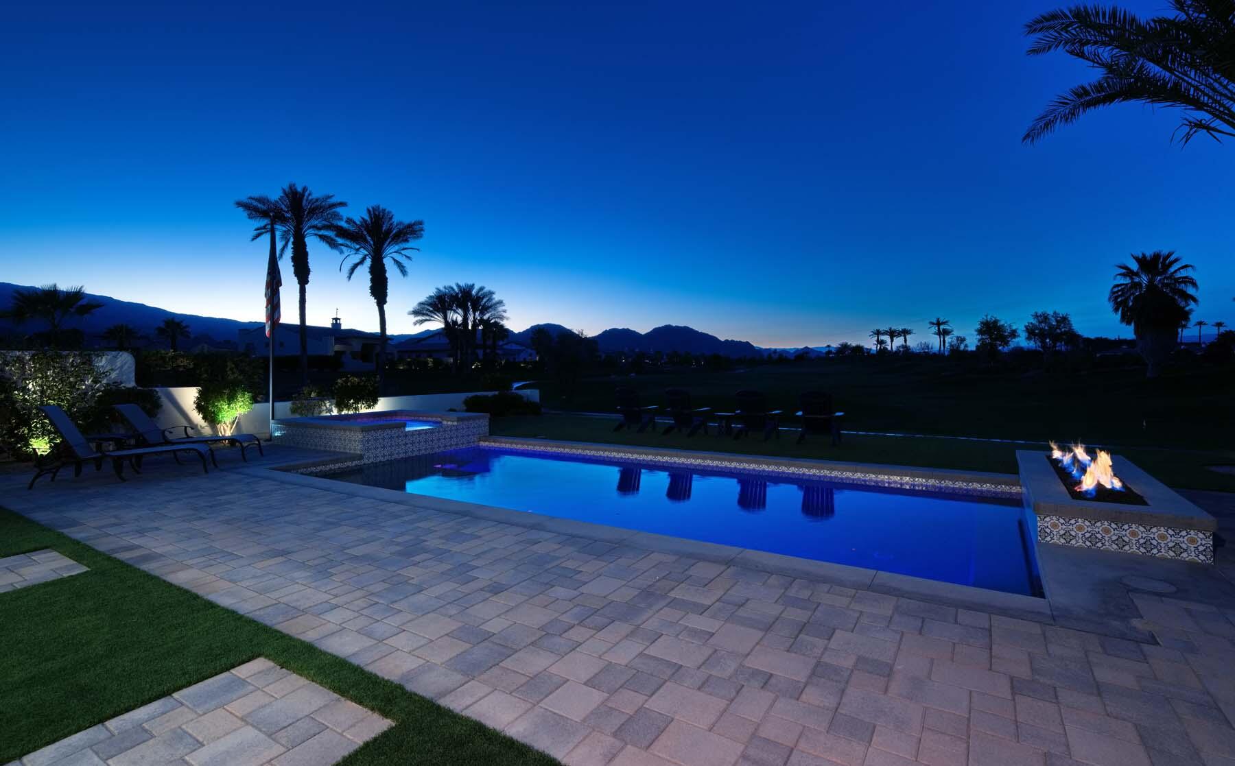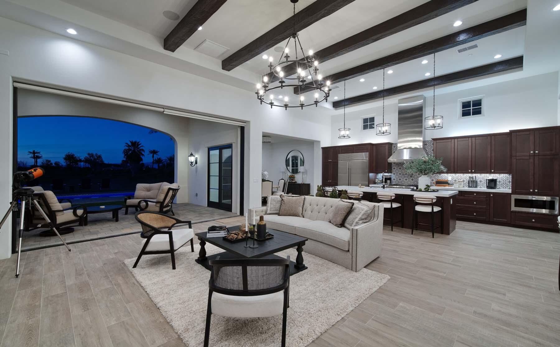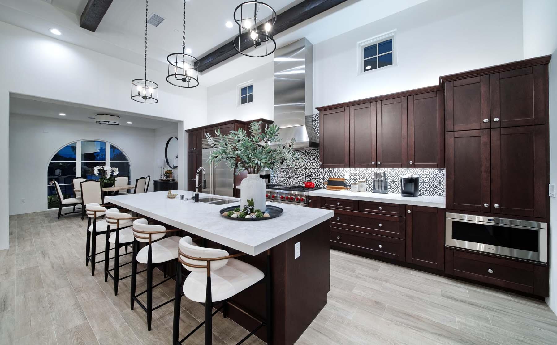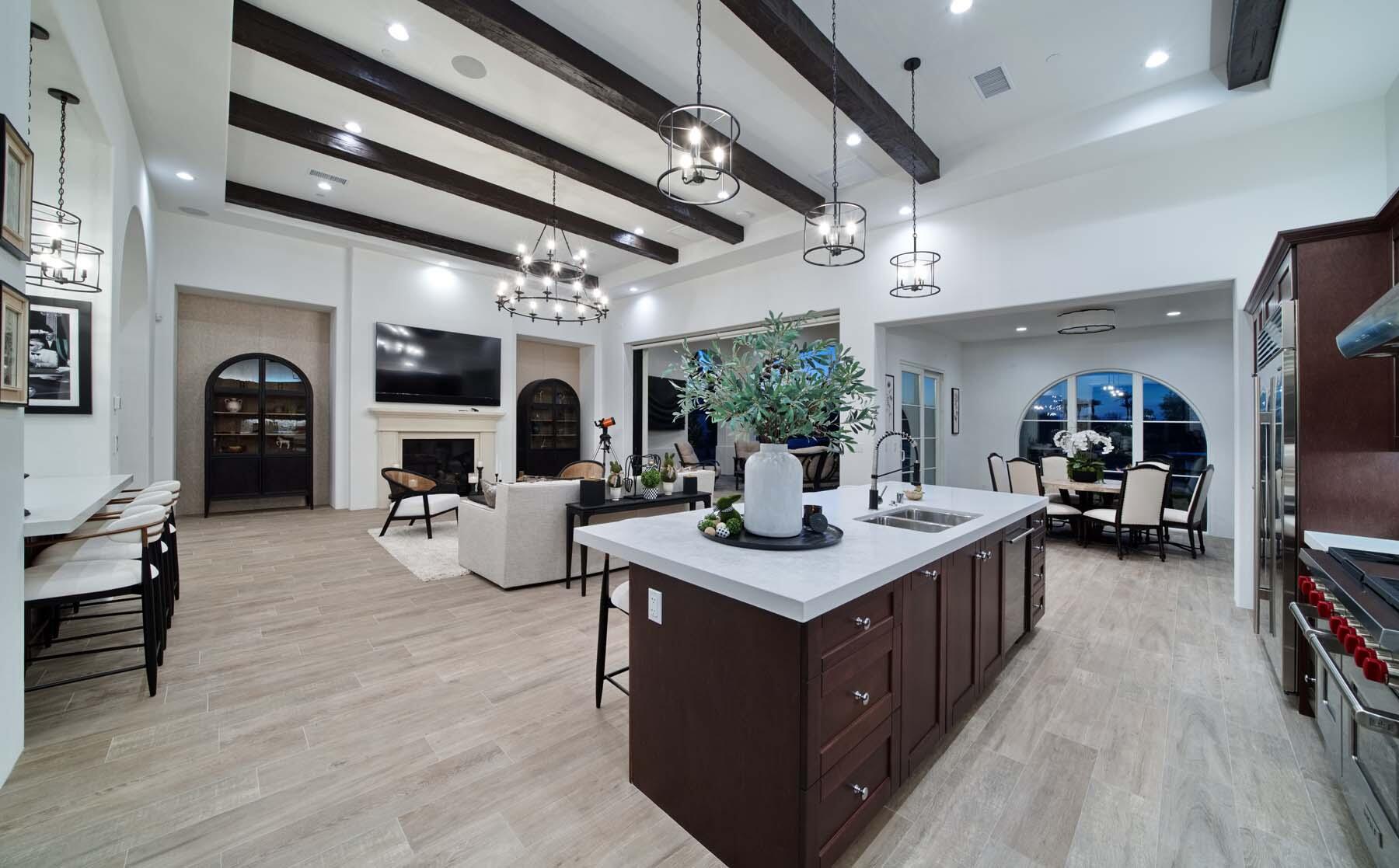 This highly upgraded Plan 322 at Andalusia Country Club offers 3,560 sq. ft. of exquisite desert living, perfectly positioned with stunning views down the 6th fairway and the Santa Rosa Mountains beyond. Impeccably furnished, this home combines luxury and comfort with every detail thoughtfully curated. The open-concept great room seamlessly flows into the gourmet kitchen, while a separate morning room provides an inviting space for casual dining, all opening to a private covered patio and expansive interior courtyard. Disappearing sliding glass doors enhance the home's airy feel and effortless transition between indoor and outdoor spaces. A wet bar with seating serves both the great room and patio, ideal for hosting gatherings. The master suite is a true retreat, featuring a freestanding tub, separate shower, and dual walk-in closets. A private casita with its own entrance offers the perfect space for guests or a home office. Throughout the home, you'll find high-end finishes, custom lighting, and a sophisticated design that creates an atmosphere of effortless elegance. The backyard is an entertainer's paradise, with a custom pool and spa offering a serene outdoor living experience. Blending modern design with desert charm, this home exemplifies the ultimate in luxury living. Turnkey furnished per inventory.Interested in this Listing?