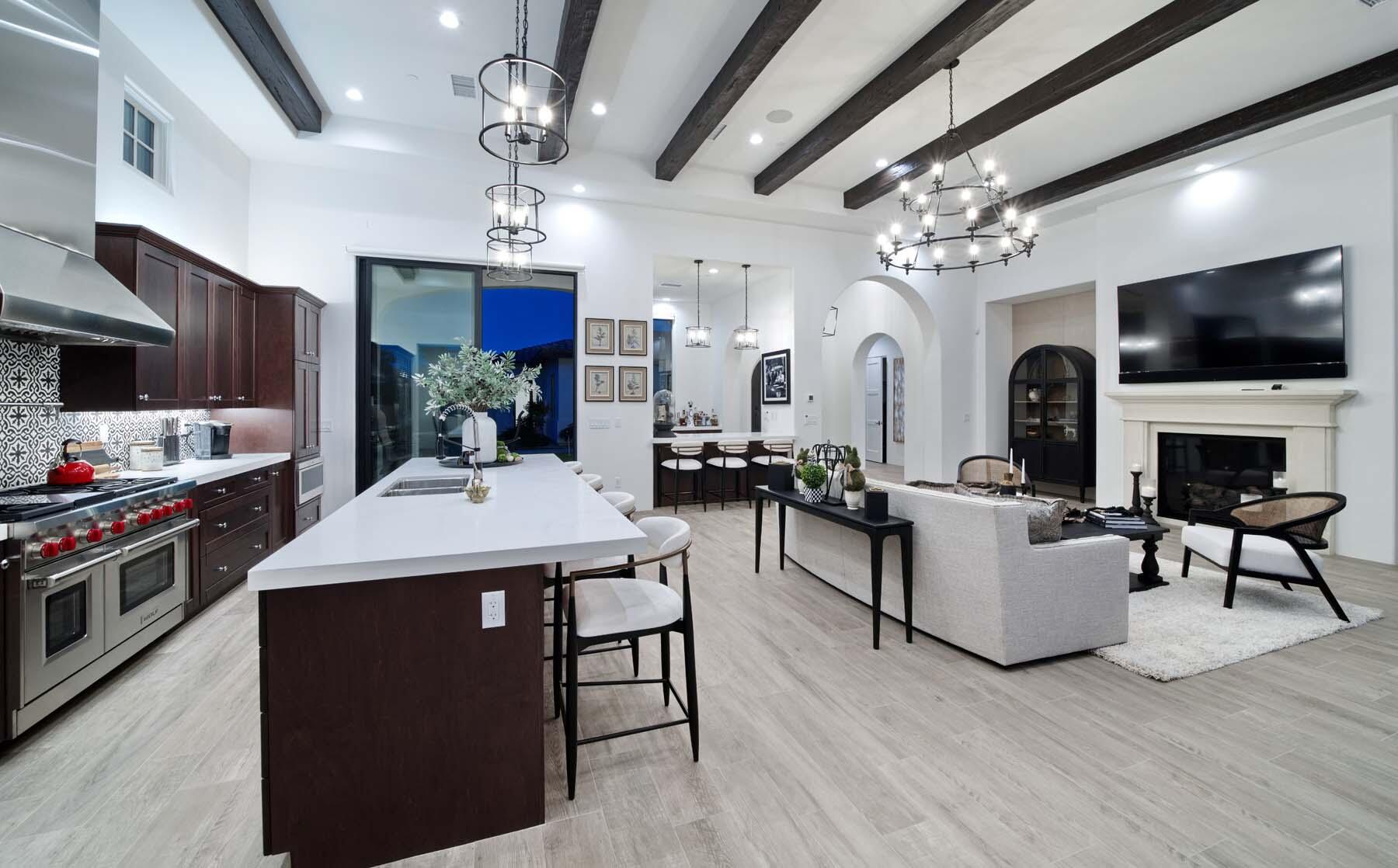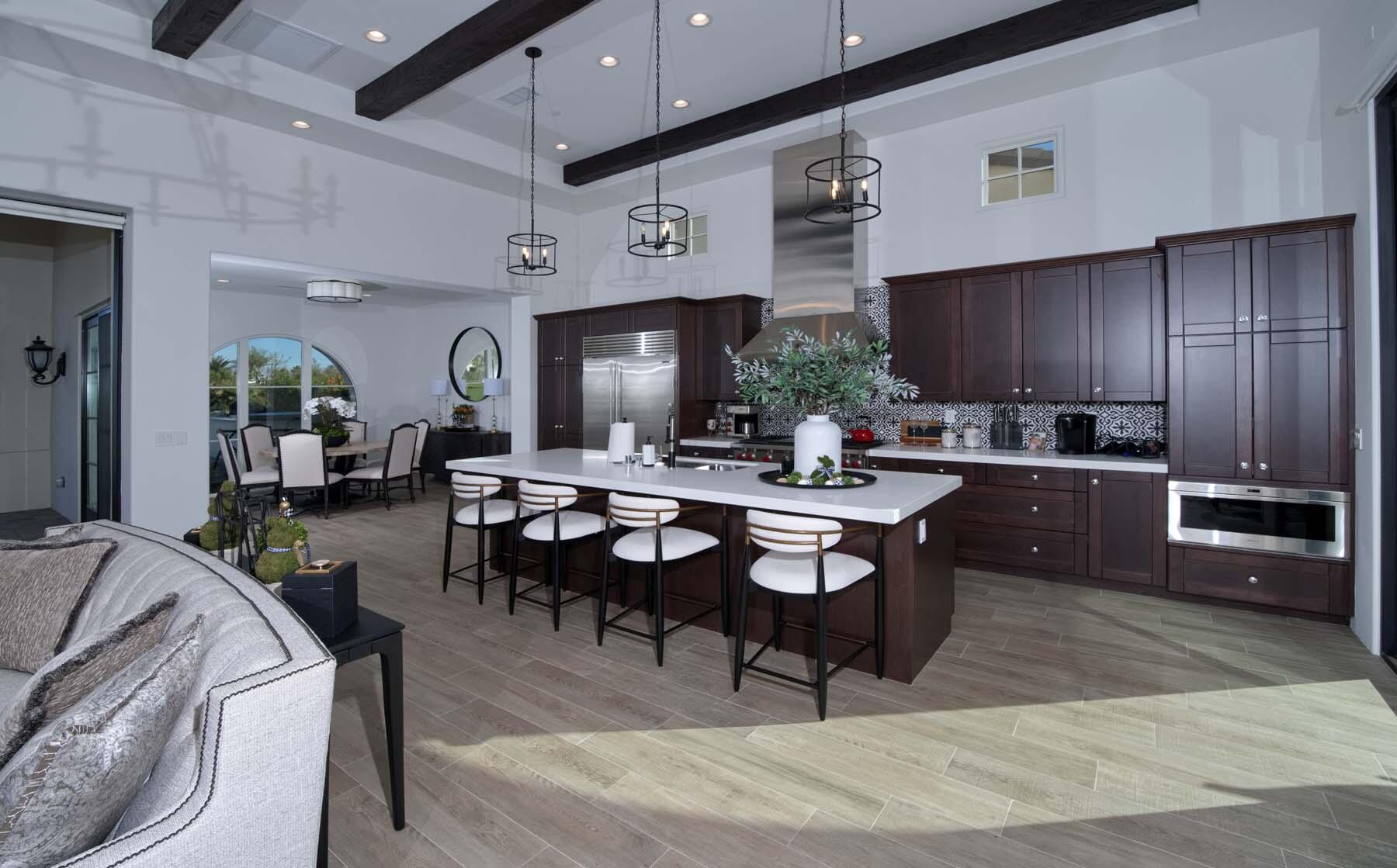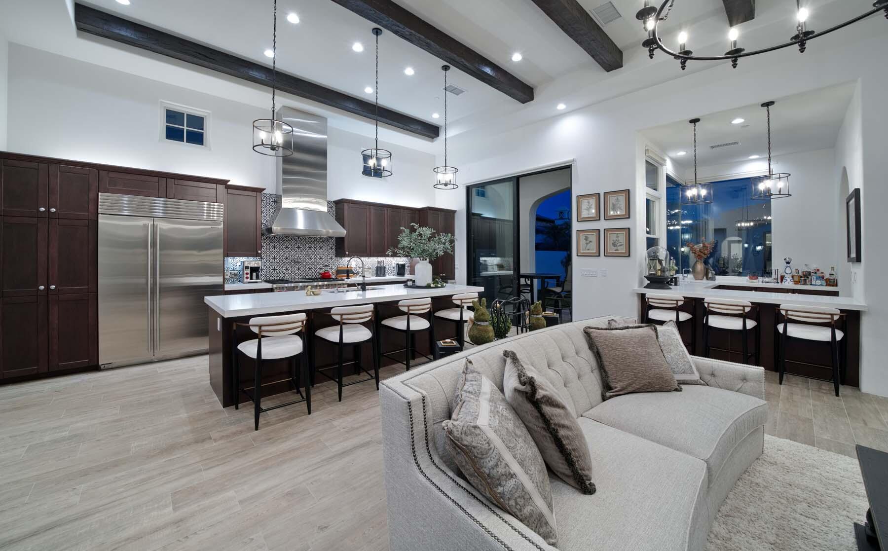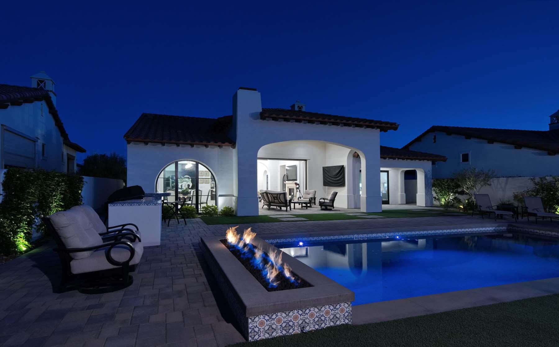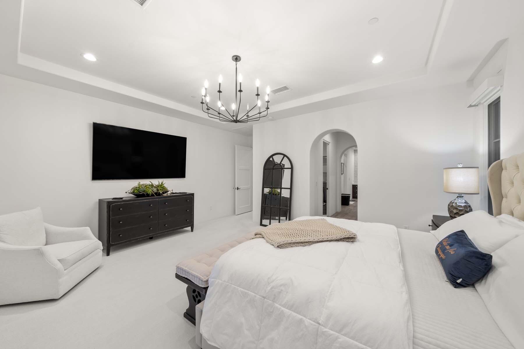 This highly upgraded Plan 322 at Andalusia Country Club offers 3,560 sq. ft. of exquisite desert living, perfectly positioned with stunning views down the 6th fairway and the Santa Rosa Mountains beyond. Impeccably furnished, this home combines luxury and comfort with every detail thoughtfully curated. The open-concept great room seamlessly flows into the gourmet kitchen, while a separate morning room provides an inviting space for casual dining, all opening to a private covered patio and expansive interior courtyard. Disappearing sliding glass doors enhance the home's airy feel and effortless transition between indoor and outdoor spaces. A wet bar with seating serves both the great room and patio, ideal for hosting gatherings. The master suite is a true retreat, featuring a freestanding tub, separate shower, and dual walk-in closets. A private casita with its own entrance offers the perfect space for guests or a home office. Throughout the home, you'll find high-end finishes, custom lighting, and a sophisticated design that creates an atmosphere of effortless elegance. The backyard is an entertainer's paradise, with a custom pool and spa offering a serene outdoor living experience. Blending modern design with desert charm, this home exemplifies the ultimate in luxury living. Turnkey furnished per inventory.Interested in this Listing?