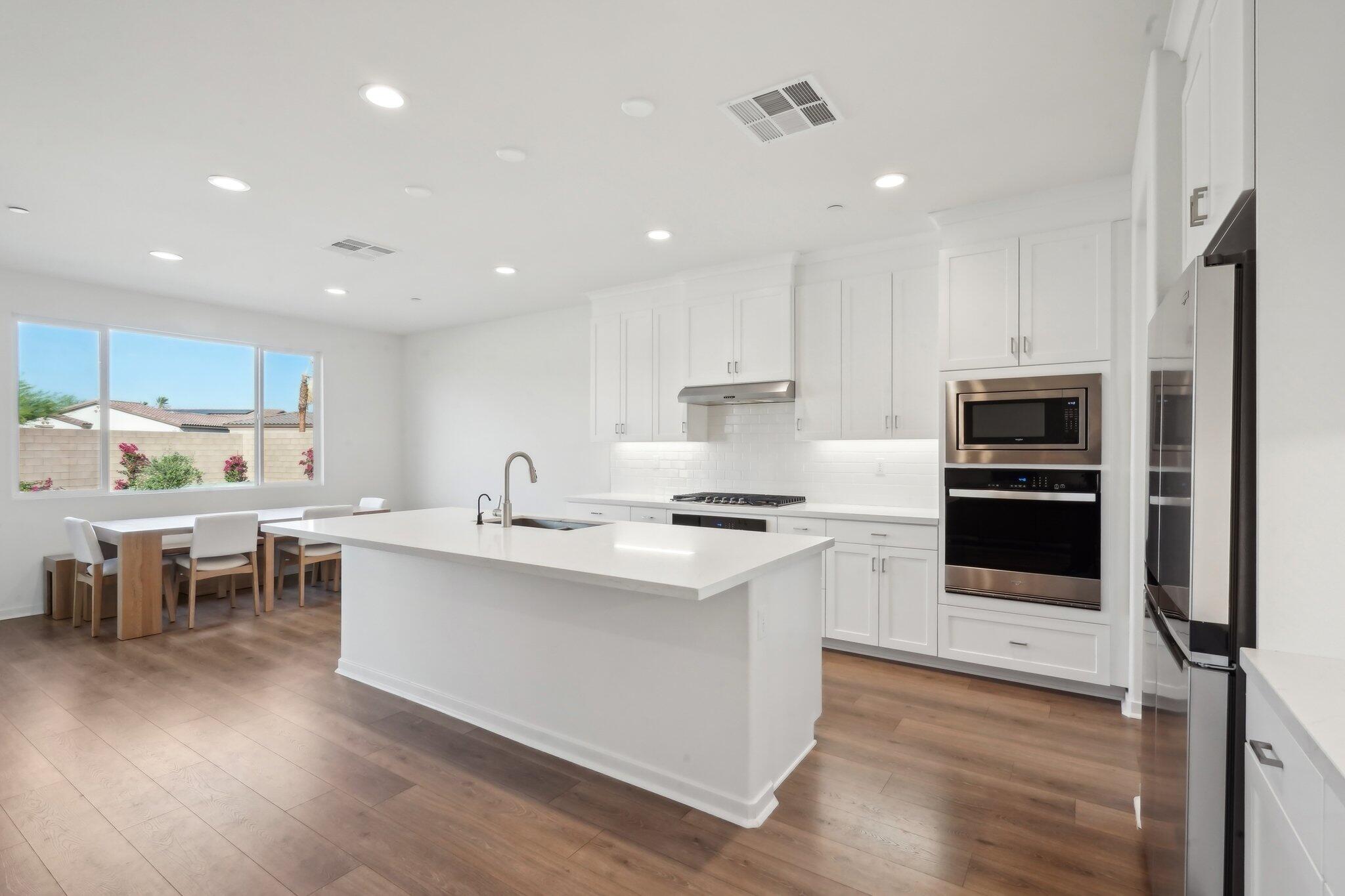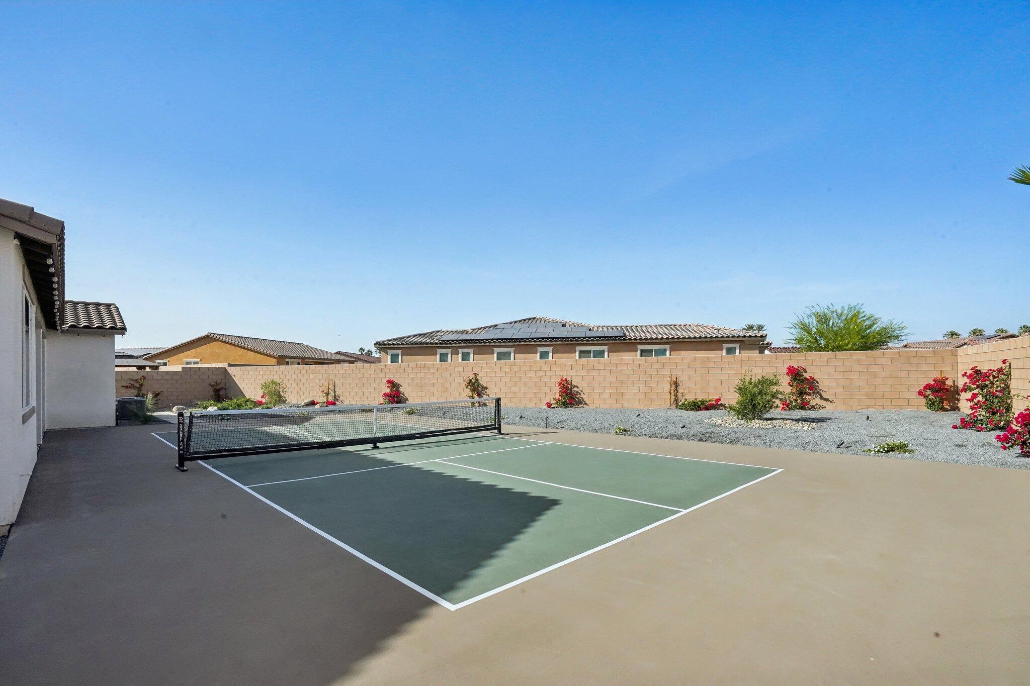 Nestled within the prestigious gated enclave of The Enclave at Capistrano in La Quinta, this exquisite single-level estate boasts 3,003 square feet of sophisticated living on a rare 12,632sqft. corner lot. Designed for seamless indoor-outdoor enjoyment, this stunning home captures breathtaking mountain views from both the front and backyard, where a professionally designed pickleball court awaits. A grand front courtyard welcomes you into an expansive great room, a chef's dream kitchen with quartz countertops, upgraded cabinetry, stainless-steel appliances, and an oversized island, plus a formal dining room perfect for entertaining. The secluded Primary Suite is a true retreat, featuring a spa-inspired bath with a freestanding soaking tub, walk-in shower, dual vanities, and two spacious walk-in closets. Three additional bedrooms provide ample space, while energy-efficient LED lighting, a tankless water heater, and a spacious three-car garage complete this luxurious offering. Experience refined desert living in this exceptional home!Interested in this Listing?