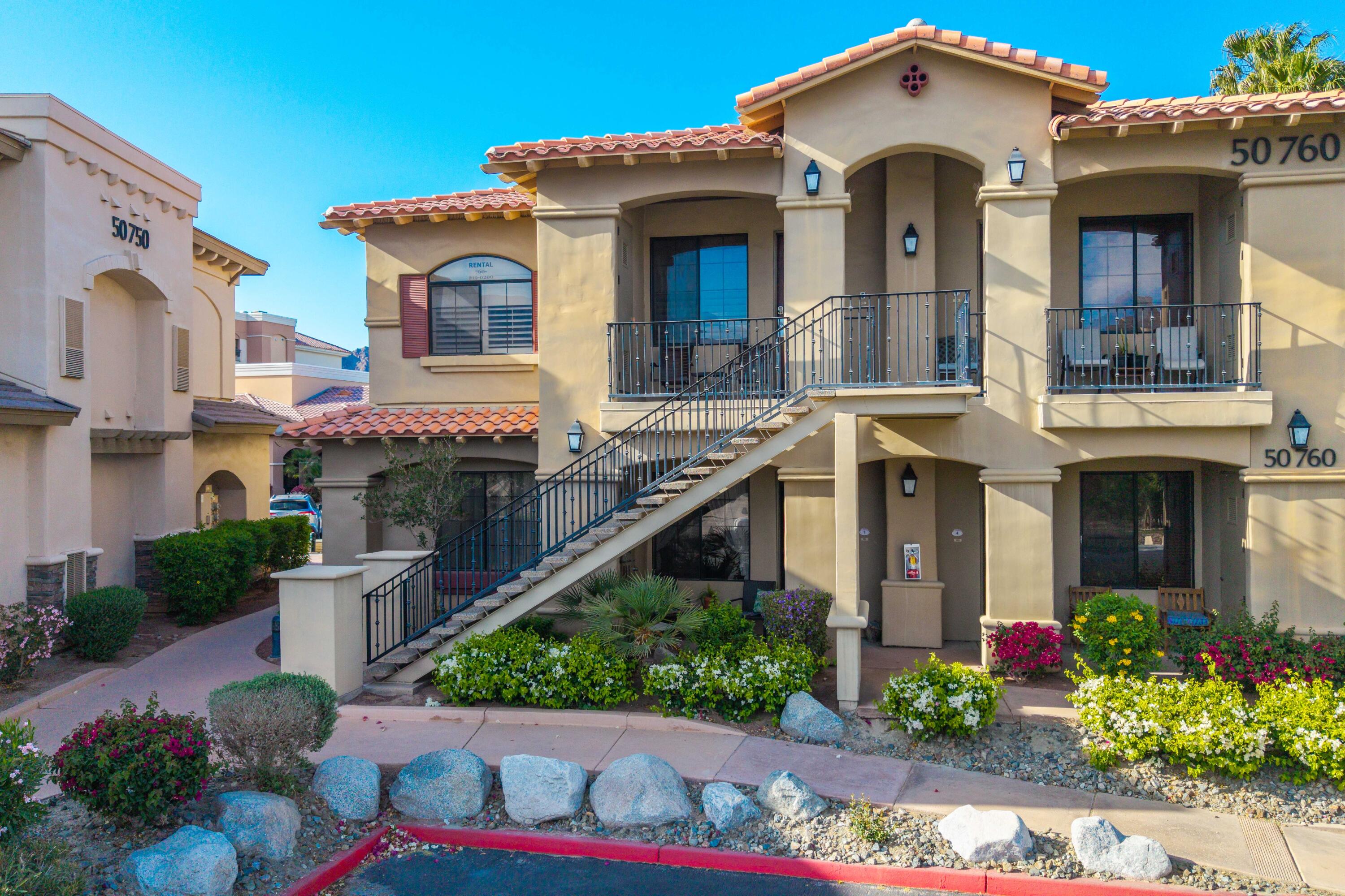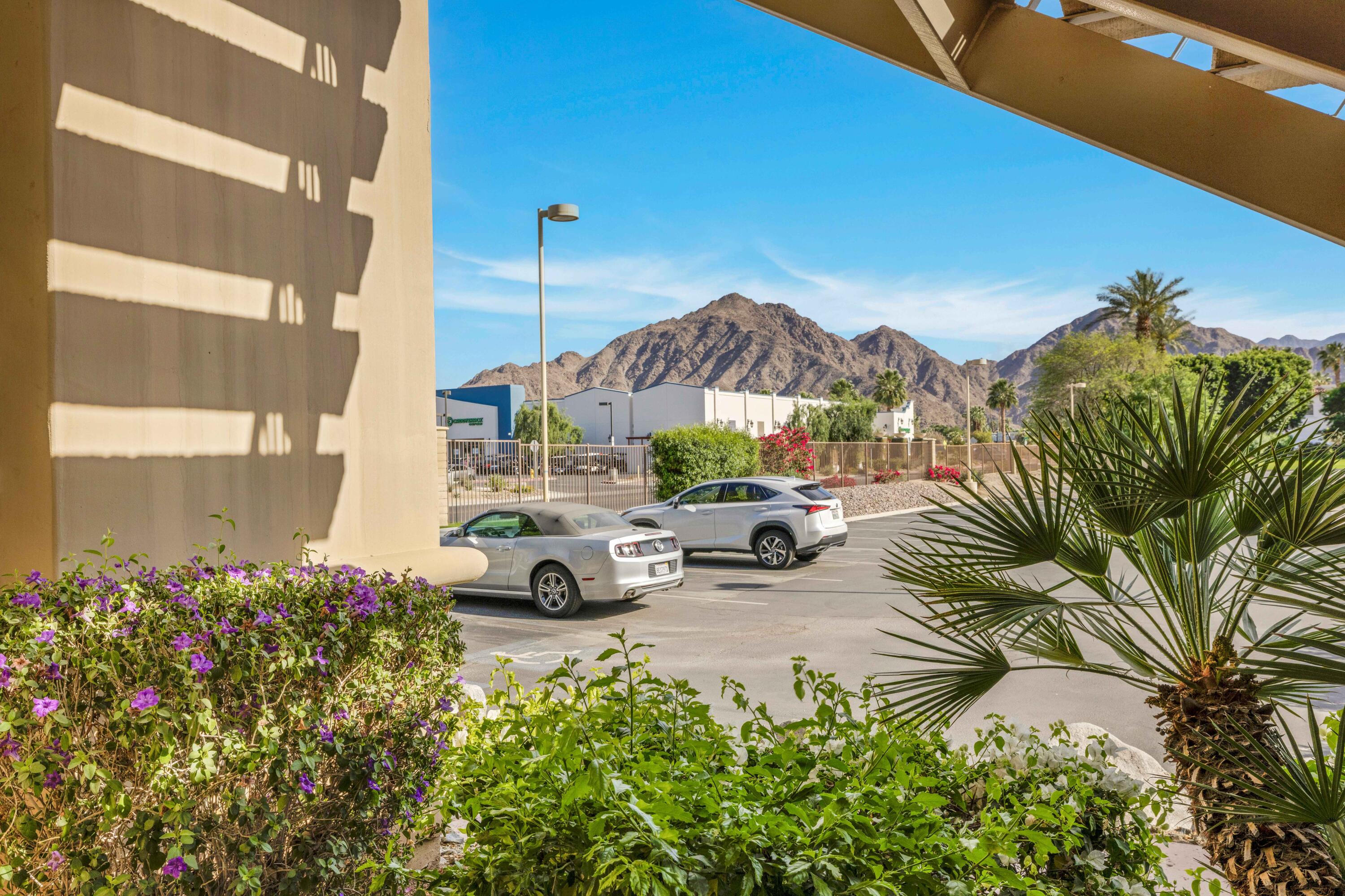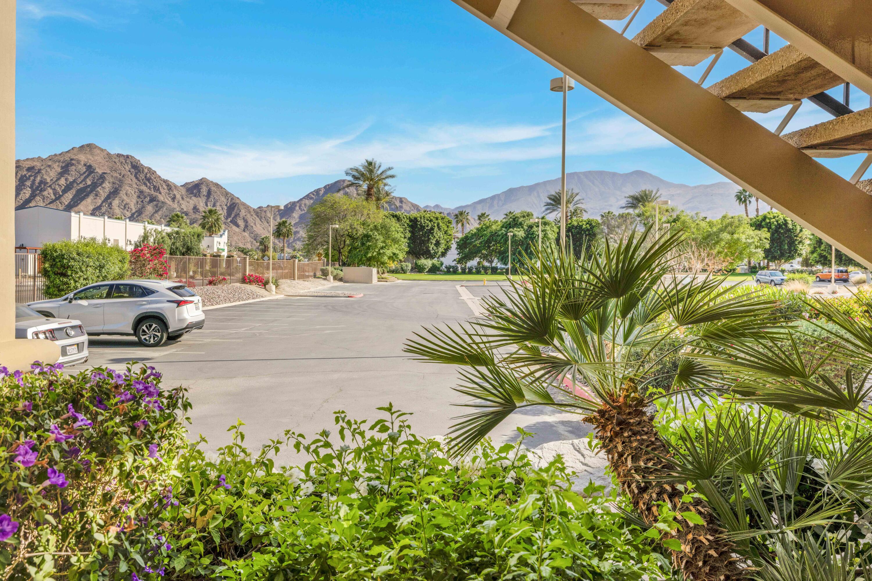 Best location in this complex.. Cozy one-bedroom, one-bathroom gem in Casitas Las Rosas, perfectly situated in a tranquil location just across from Old Town La Quinta. This charming desert retreat offers quick access to many local attractions. The comfortable living/dining room seamlessly connects to a full kitchen, featuring a stacked washer/dryer for convenience. A spacious bathroom with a combination tub and shower separates the living area from the inviting bedroom, which accommodates a king bed, desk, and armoire. A walk-in closet provides plenty of storage. Ample parking is available directly in front of the unit, and one of the four community pools and hot tubs is just a short walk away. The Embassy Suites hotel is centrally located within Casitas Las Rosas, and multiple restaurants and shops are conveniently situated across the street in Old Town La Quinta. The property benefits from Village Commercial zoning, allowing for SHORT TERM RENTALS Seller lives full time please call for appointmentInterested in this Listing?