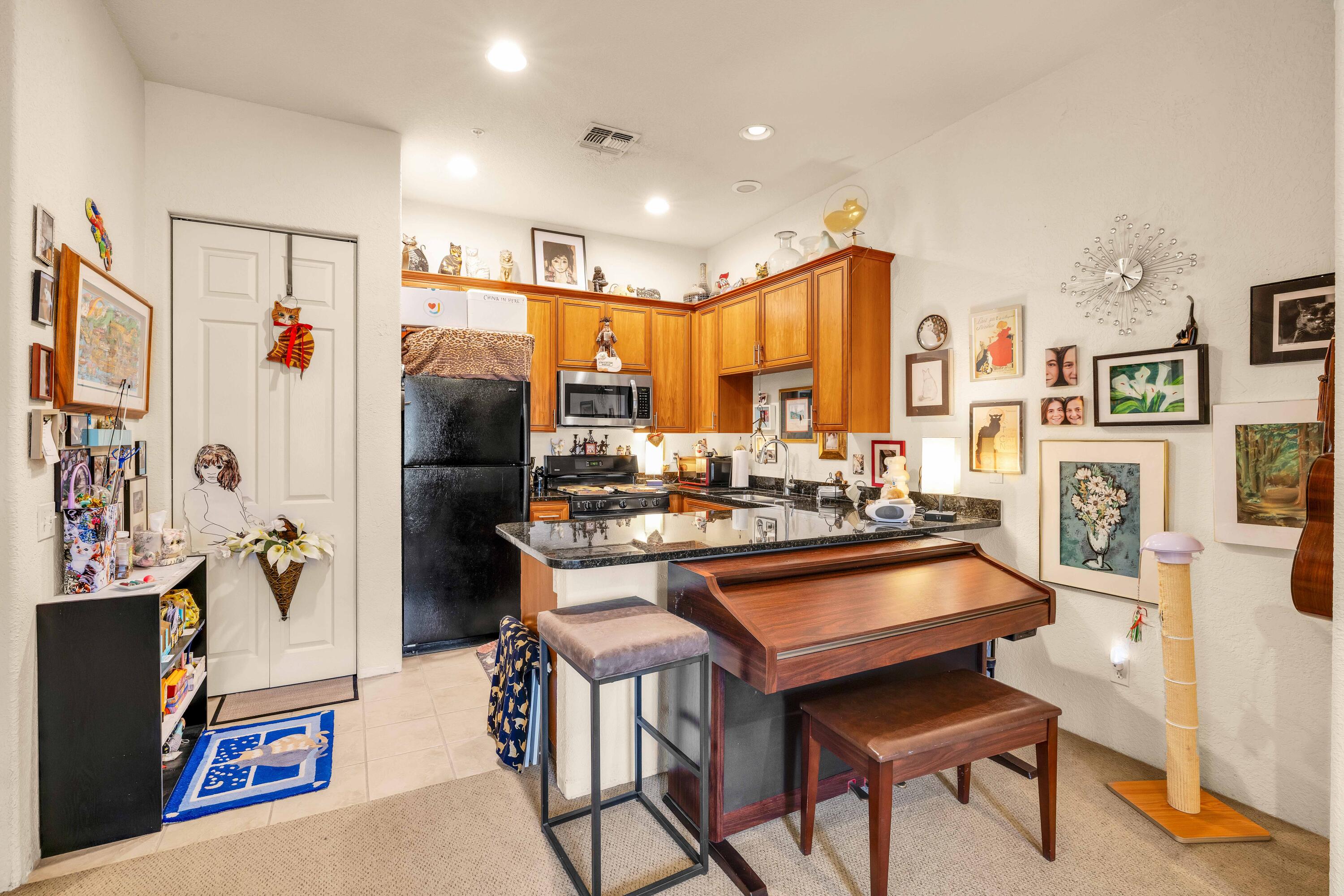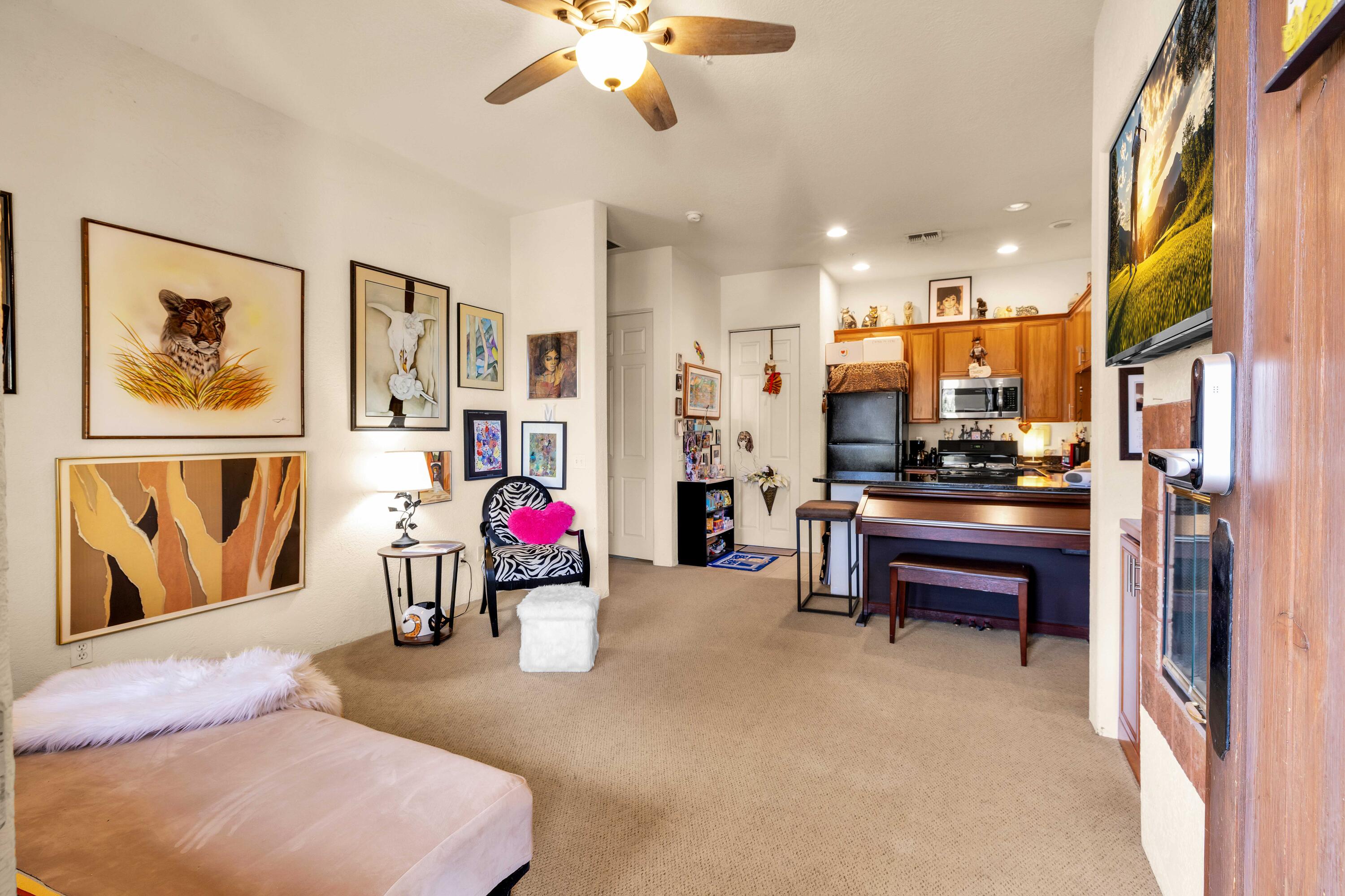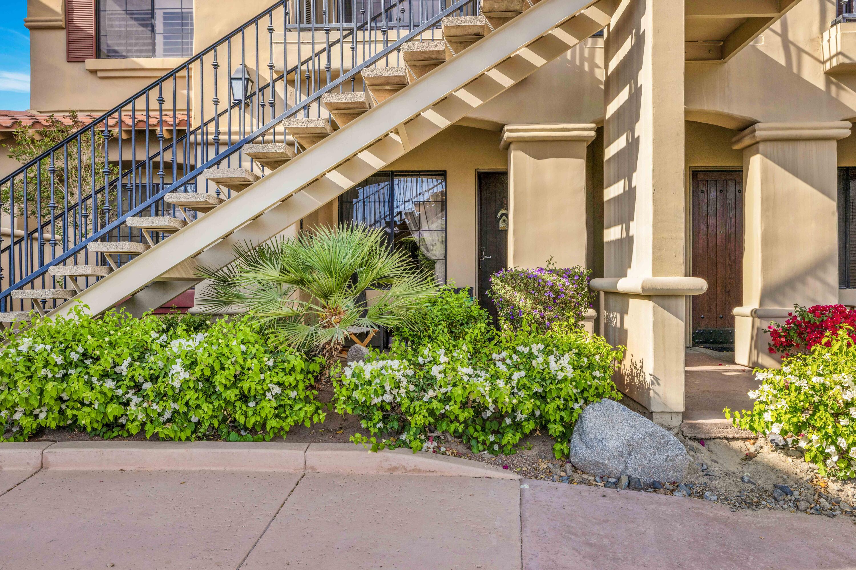 Best location in this complex.. Cozy one-bedroom, one-bathroom gem in Casitas Las Rosas, perfectly situated in a tranquil location just across from Old Town La Quinta. This charming desert retreat offers quick access to many local attractions. The comfortable living/dining room seamlessly connects to a full kitchen, featuring a stacked washer/dryer for convenience. A spacious bathroom with a combination tub and shower separates the living area from the inviting bedroom, which accommodates a king bed, desk, and armoire. A walk-in closet provides plenty of storage. Ample parking is available directly in front of the unit, and one of the four community pools and hot tubs is just a short walk away. The Embassy Suites hotel is centrally located within Casitas Las Rosas, and multiple restaurants and shops are conveniently situated across the street in Old Town La Quinta. The property benefits from Village Commercial zoning, allowing for SHORT TERM RENTALS Seller lives full time please call for appointmentInterested in this Listing?