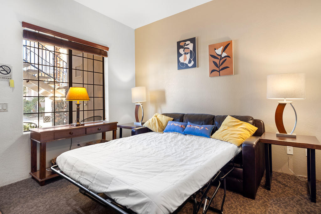 Welcome to Casitas Las Rosas, a charming desert retreat perfectly situated behind the Embassy Suites in the heart of Old Town La Quinta. This beautifully maintained downstairs condo offers a blend of comfort, convenience, and investment potential, making it an ideal choice for those seeking a primary residence, vacation getaway, or income-generating property. With a community pool and hot tub just outside your door, you can relax and enjoy the tranquil ambiance while taking in the breathtaking mountain views that surround the property.Step inside to find a warm and inviting living area, designed for both relaxation and functionality. The well-equipped kitchen provides all the comforts of home, featuring ample cabinet space, modern appliances, and a cozy dining area. Whether you're preparing a quick breakfast before exploring the city or enjoying a quiet evening in, this space is designed for effortless living.The spacious bathroom is conveniently located between the living area and the bedroom, offering a well-appointed vanity, tub-shower combination, and plenty of storage. The bedroom is a peaceful retreat, complete with a walk-in closet and extra room for a dresser and desk, making it suitable for both full-time residents and vacationers alike.Beyond the comfort of this unit, the prime location of Casitas Las Rosas is what truly sets it apart. Old Town La Quinta is just a short stroll away, offering a variety of restaurants, boutique shops, coffee houses, and entertainment. Whether you're in the mood for fine dining, casual bites, or a weekend farmer's market, everything you need is just minutes away. Additionally, the area boasts world-class golf courses, hiking and biking trails, and seasonal events, making it a desirable destination year-round.This property is an active vacation rental, and its Village Commercial zoning provides exceptional flexibility for short-term, long-term, or full-time use. Whether you're looking to expand your investment portfolio or secInterested in this Listing?