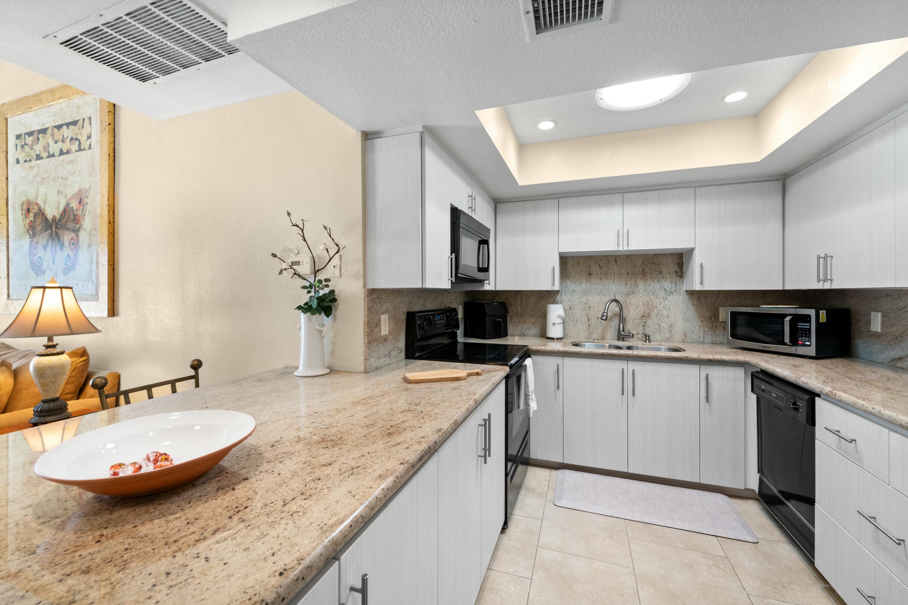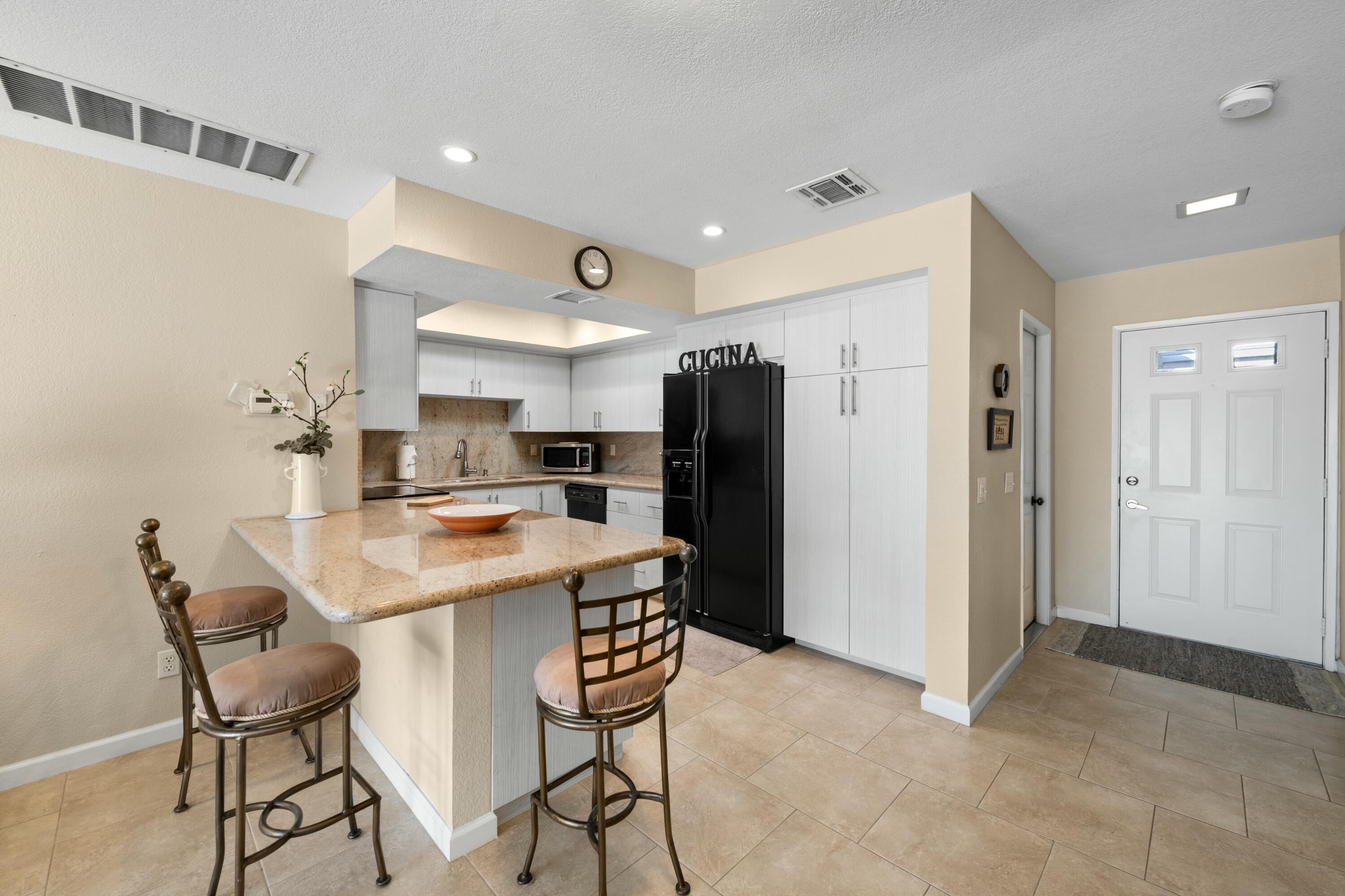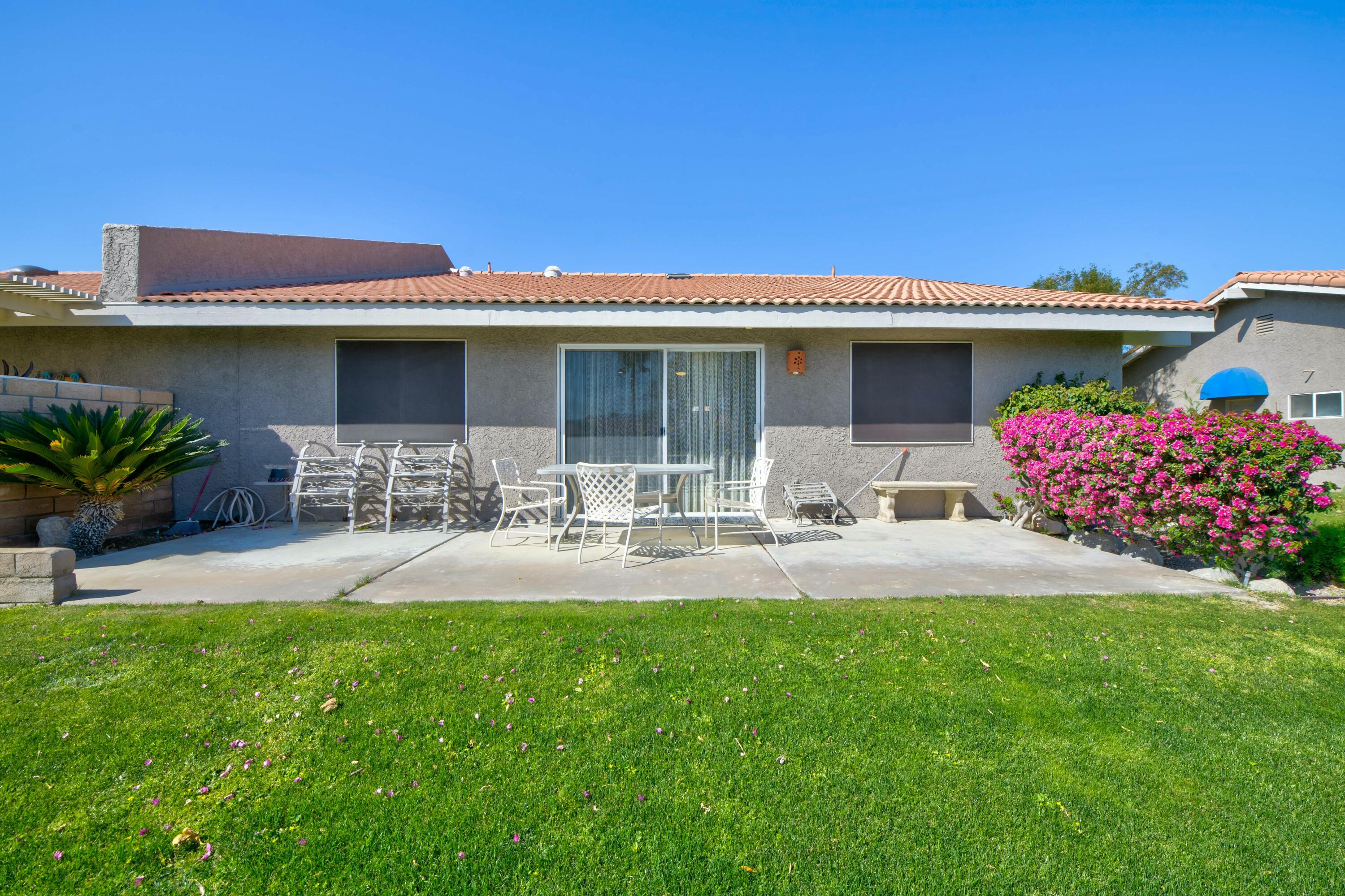 Welcome to the highly sought after community of La Quinta Palms! This home has been completely remodeled with beautiful finishes in every room. There are 3 full bathrooms and 2 bedrooms. The third bedroom can be easily put back as it was removed to enlarge the living area and create a dining room/Great room. The kitchen is an entertainers dream with lots of storage space and an extended Granite slab counter and bar area. The open floor plan allows for lots of natural light in every room with views of the lush green landscape, pool and Eastern mountains. The two primary suites are on separate ends of the home for maximum privacy and have en-suite bathrooms with one of the rooms offering it's own separate entrance. This lovely home has been well taken care of and pride of ownership is apparent. The two car garage has plenty of space for two cars and extra storage. La Quinta Palms is in one of the best locations in La Quinta and steps away from beautiful Golf Courses, the IW Tennis Gardens, shopping, and much more! There are 7 pools, Tennis and Pickleball and a park-like setting with greenbelts, Citrus trees and encompassing Mountain Views.Interested in this Listing?