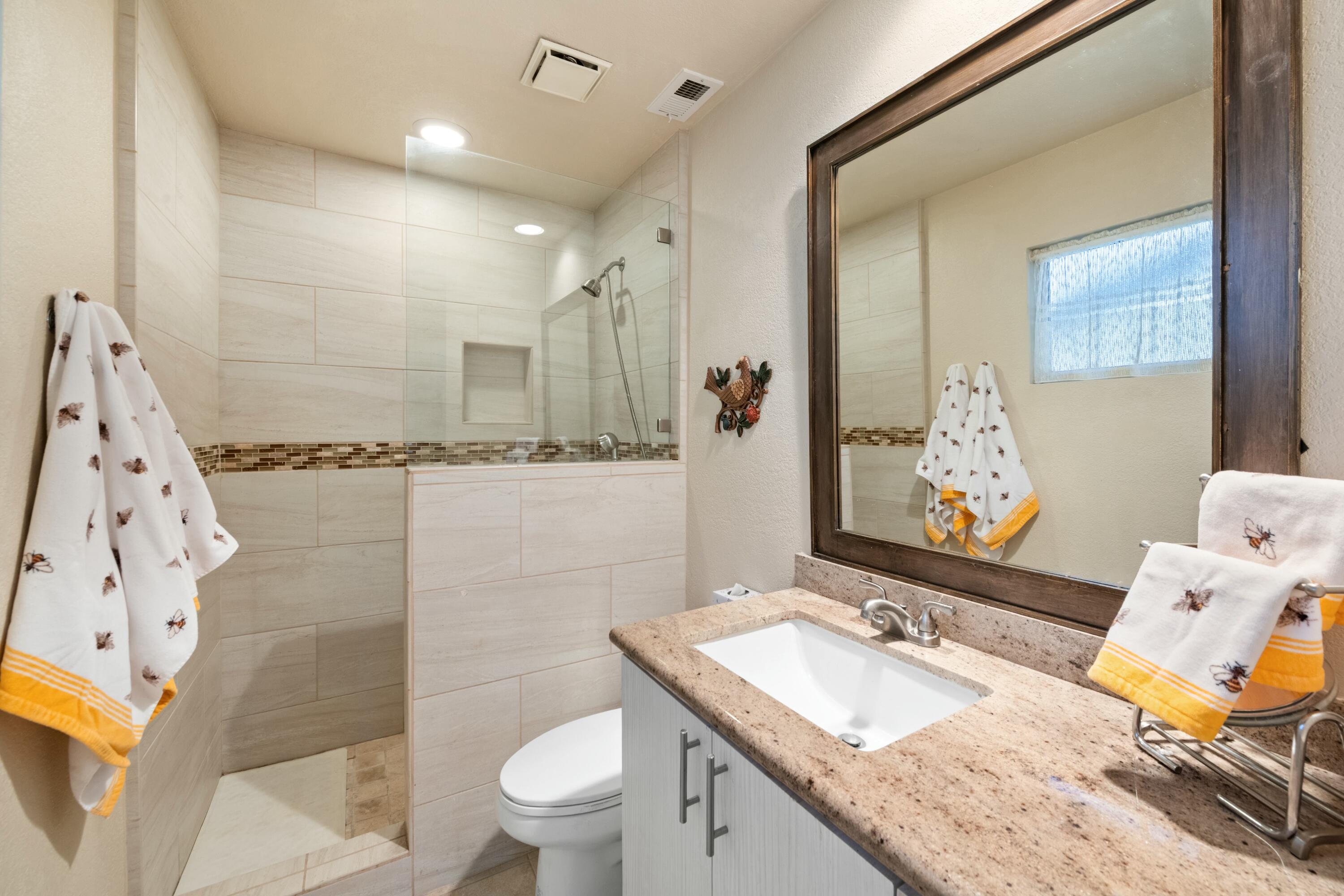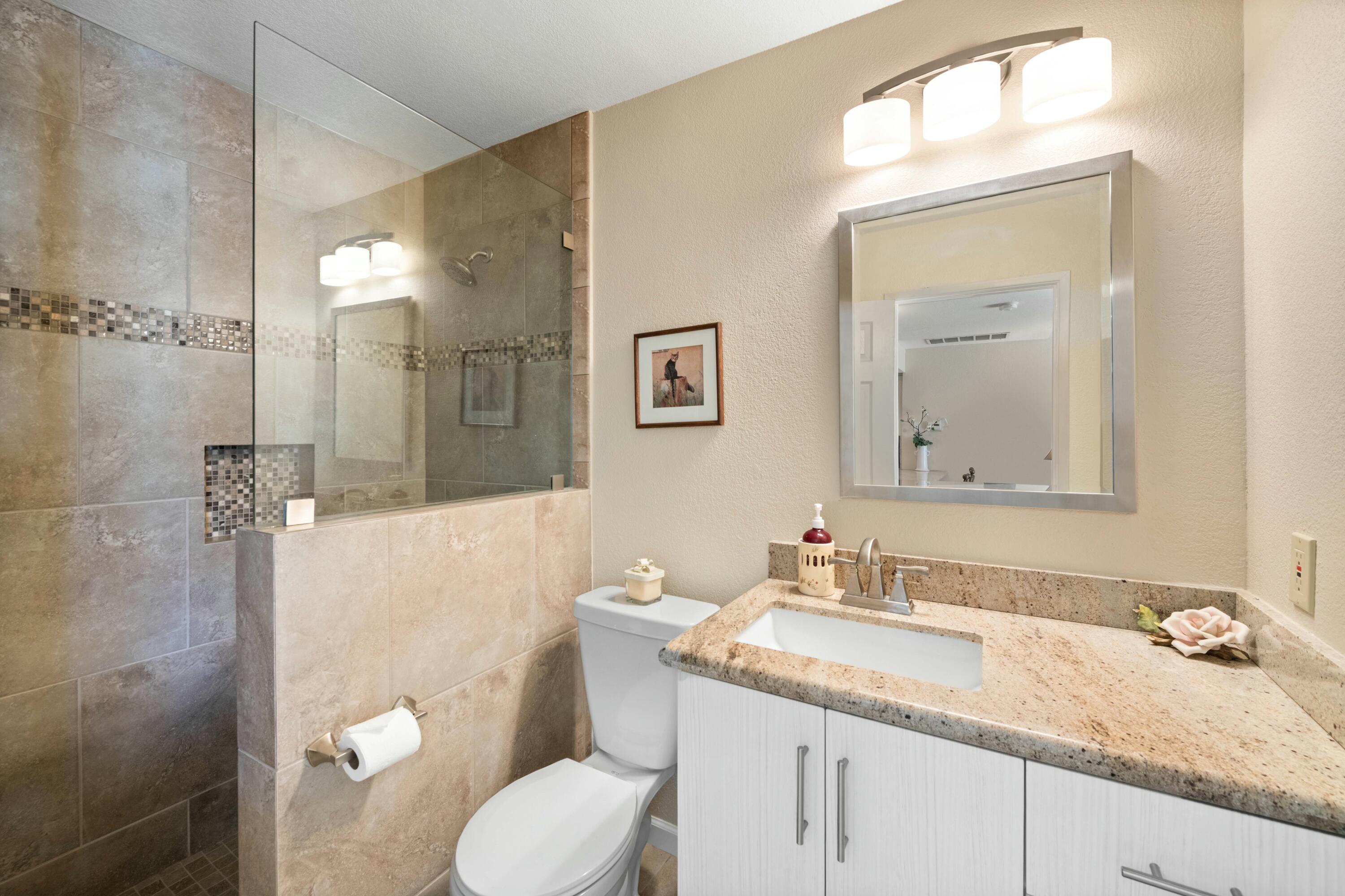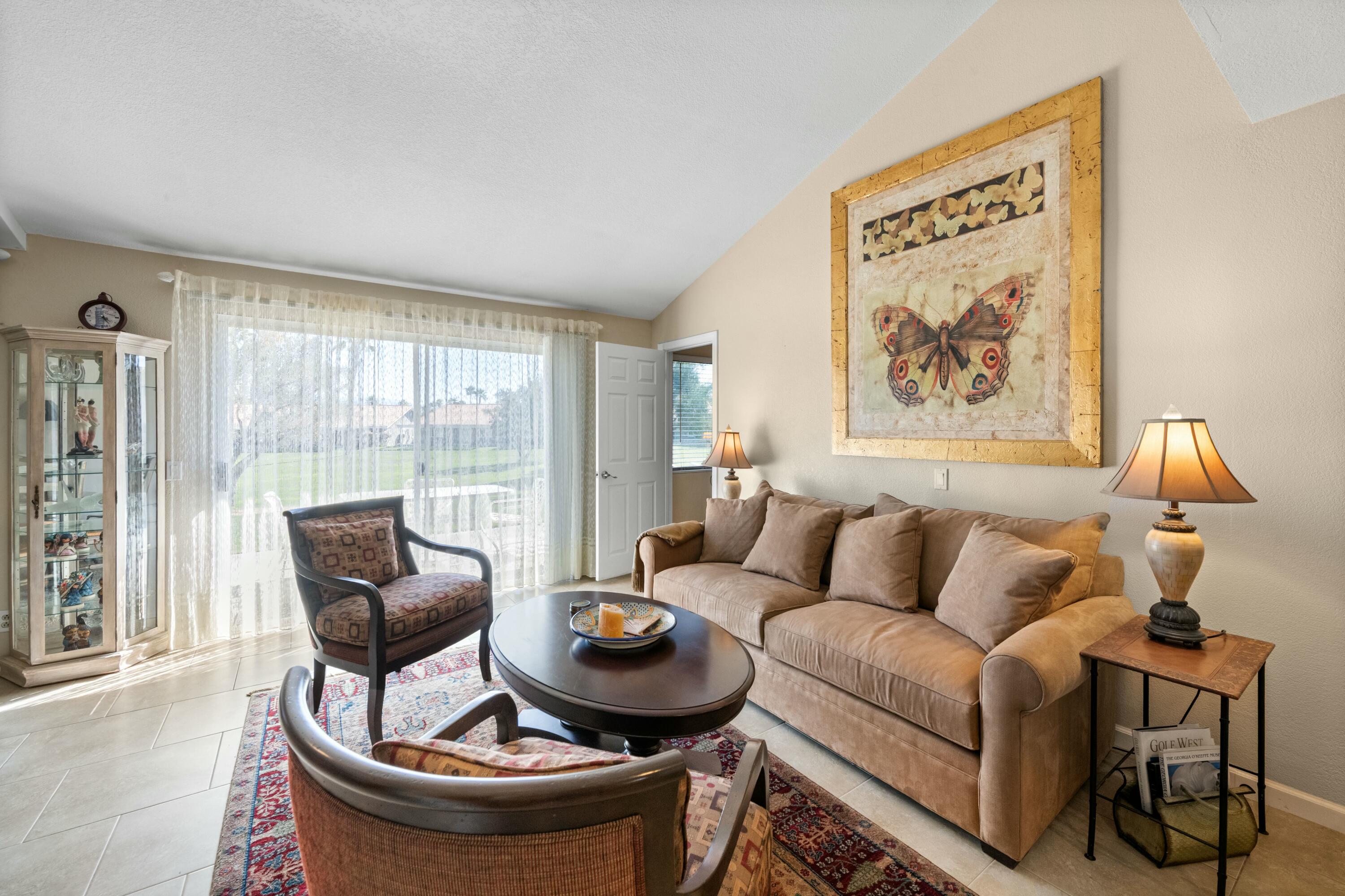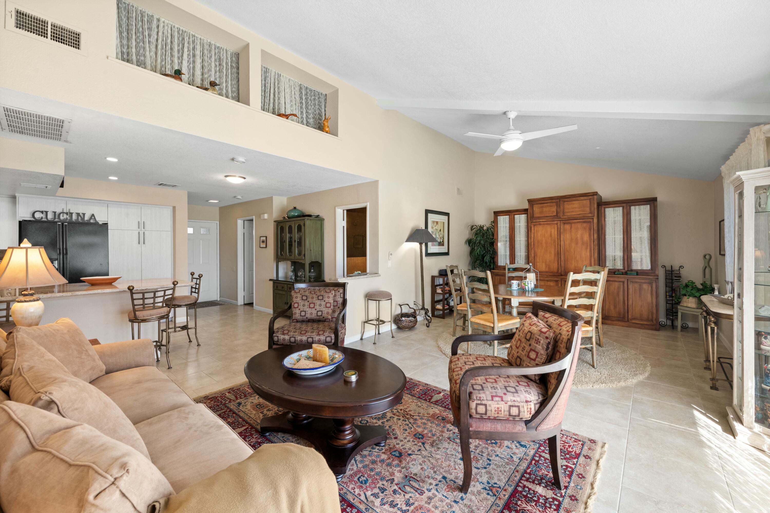 Welcome to the highly sought after community of La Quinta Palms! This home has been completely remodeled with beautiful finishes in every room. There are 3 full bathrooms and 2 bedrooms. The third bedroom can be easily put back as it was removed to enlarge the living area and create a dining room/Great room. The kitchen is an entertainers dream with lots of storage space and an extended Granite slab counter and bar area. The open floor plan allows for lots of natural light in every room with views of the lush green landscape, pool and Eastern mountains. The two primary suites are on separate ends of the home for maximum privacy and have en-suite bathrooms with one of the rooms offering it's own separate entrance. This lovely home has been well taken care of and pride of ownership is apparent. The two car garage has plenty of space for two cars and extra storage. La Quinta Palms is in one of the best locations in La Quinta and steps away from beautiful Golf Courses, the IW Tennis Gardens, shopping, and much more! There are 7 pools, Tennis and Pickleball and a park-like setting with greenbelts, Citrus trees and encompassing Mountain Views.Interested in this Listing?