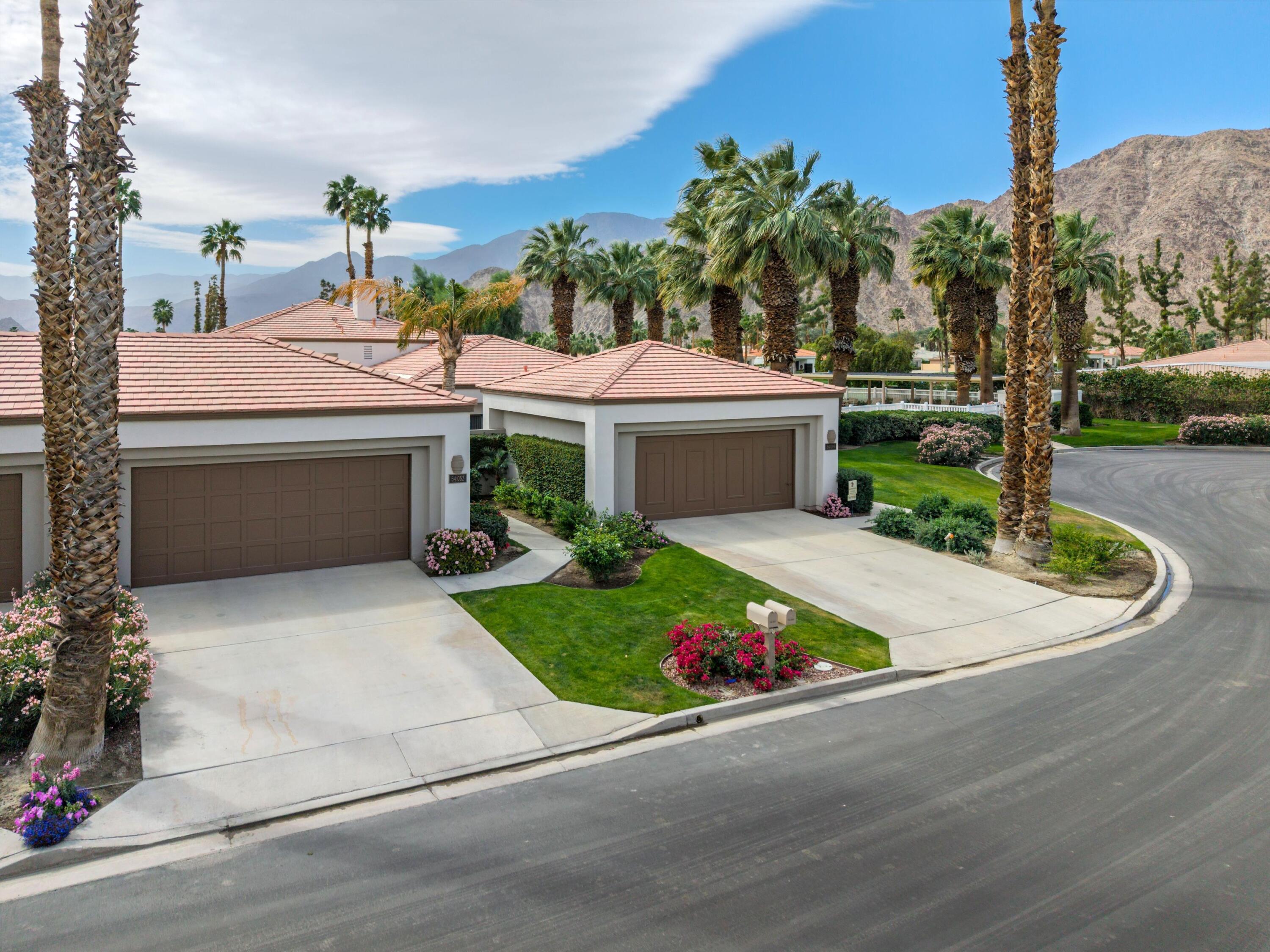 Spectacular Location at PGA West! This stunning Champion 2 Plan has 1,549 square feet, 2 bedrooms, 2 bathrooms, plus a 3rd bedroom/office, and a 2 car garage. Inside you'll find an open floorpan with high volume ceilings, slab granite countertops, shutters, and much more. Situated at the end of a quiet cul-de-sac, with breathtaking south facing golf course and mountain views! As an added bonus, the mountains are lit at night, creating a dramatic backdrop into the evening hours. Close to community pool. Offered turnkey furnished and ready to start enjoying immediately.Interested in this Listing?