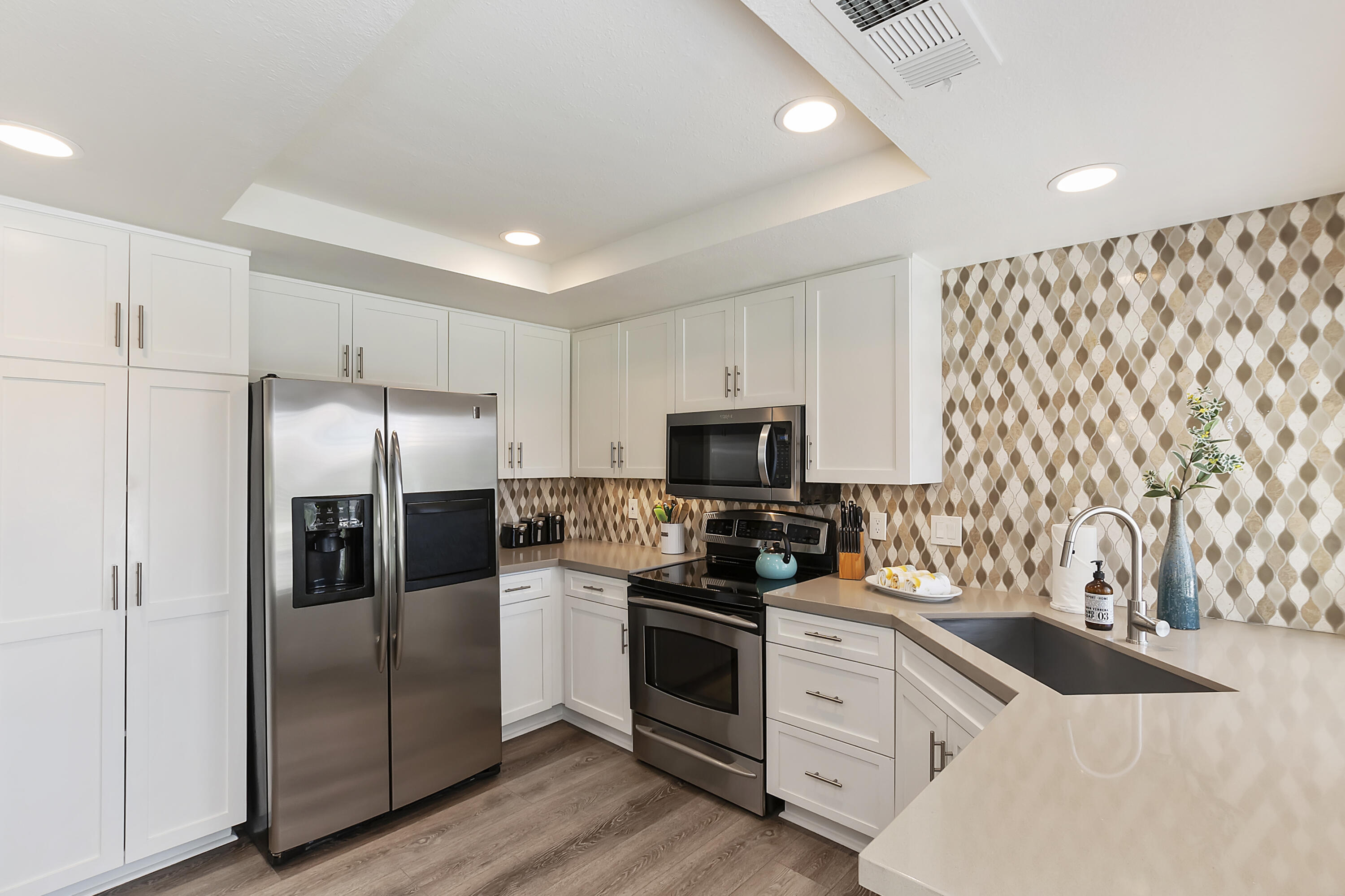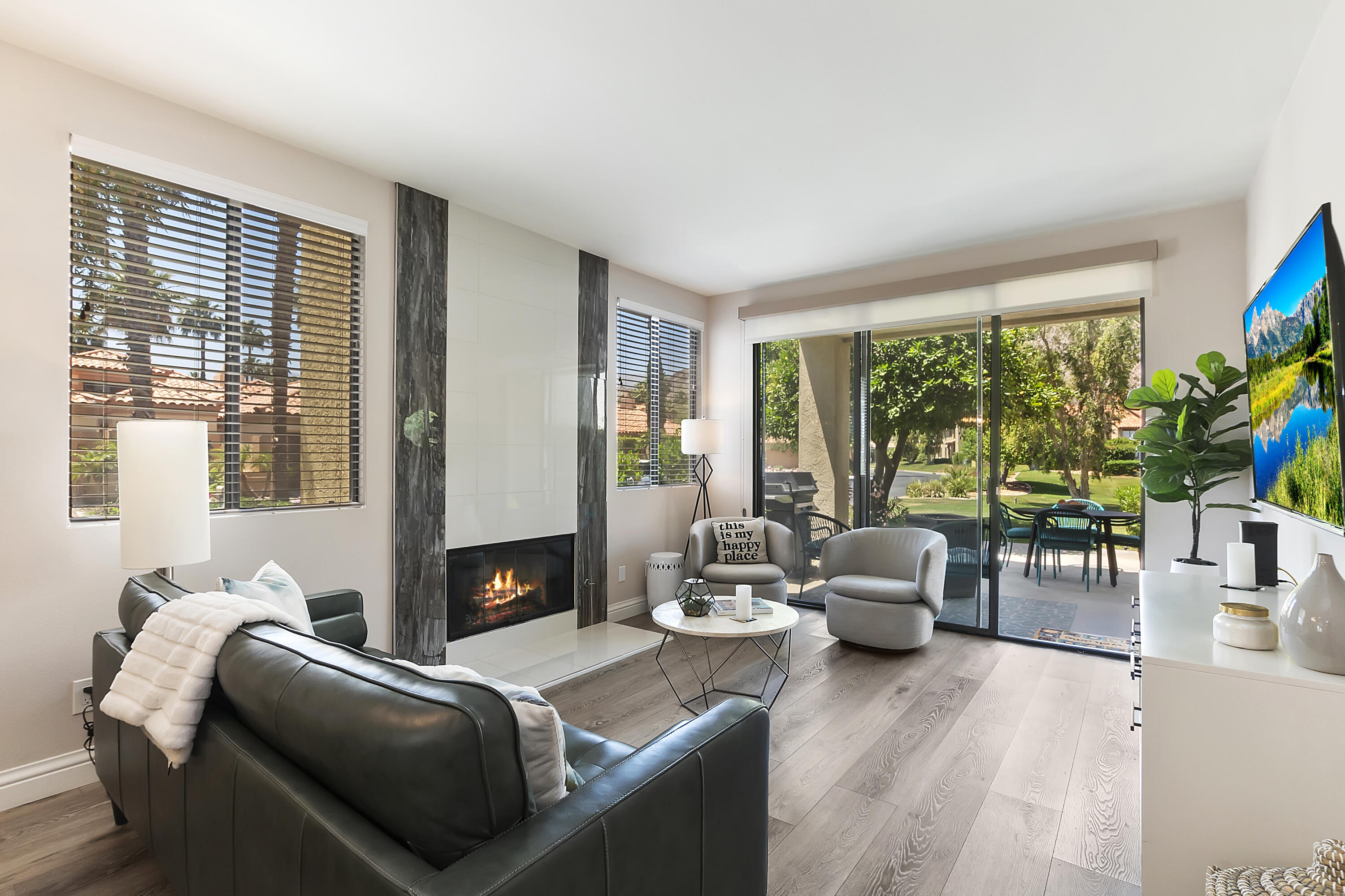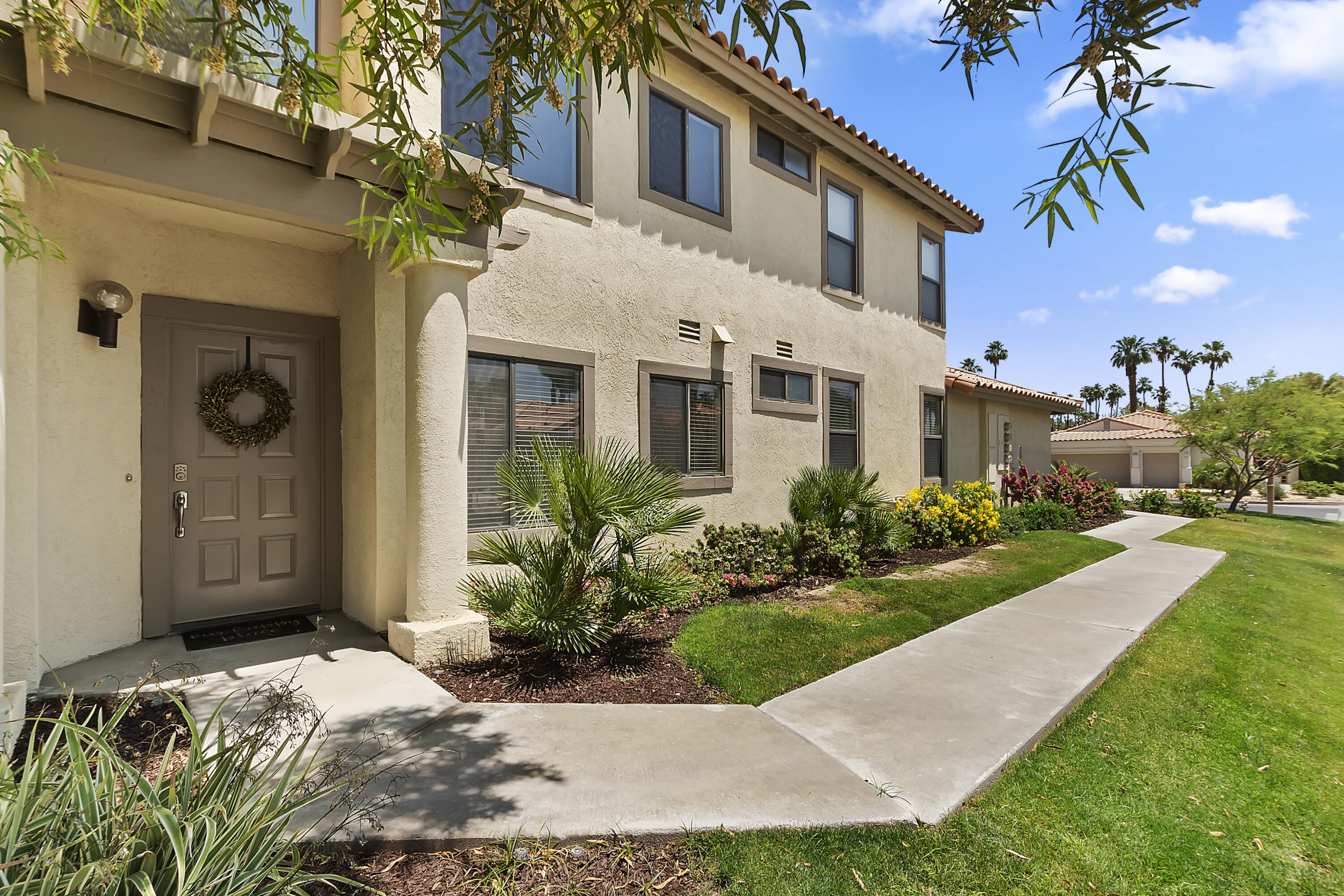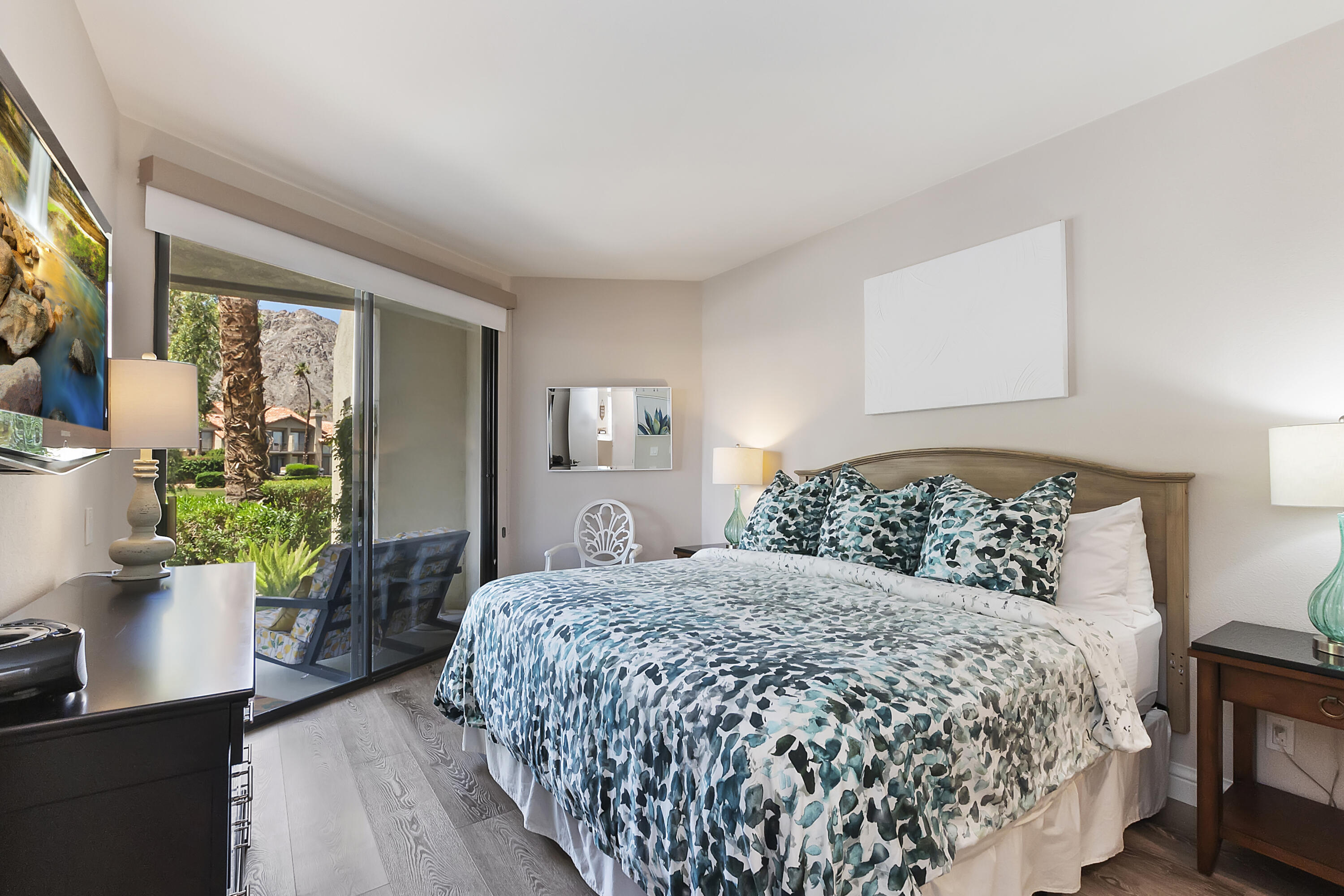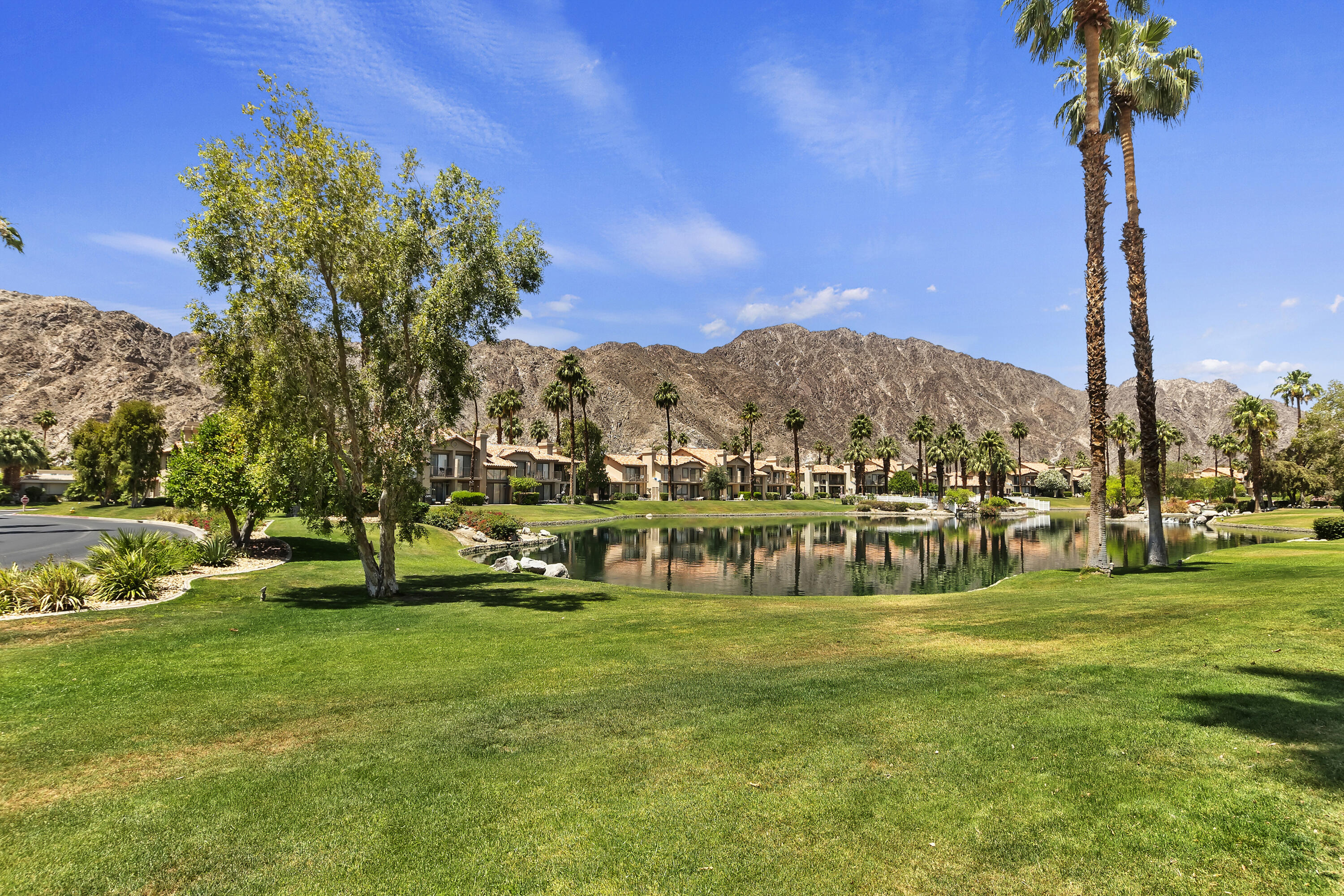Location! Location! Turnkey Furnished!!! Calling all Investors! Great rental return on this unit! Meticulously cared for, remodeled two-bedroom condo with stunning lake and mountain views! South facing condo in a premier location in the PGA Palmer Private of the world-famous PGA West! The well-designed kitchen has refaced shaker style cabinets, soft close hinges with new quartz countertops, new recessed lighting, and upgraded appliances. A new sink and new faucet with a pull-down handle. The wall between the kitchen and living has been opened to allow for mountain views. The dining area has a new crystal chandelier, and the cozy living area has upgraded and new tile surrounding the fireplace. New swivel TV. The primary bedroom is spacious and has a walk-in closet with new shelving and its own entrance to the back patio. Both master and guest bathrooms have been renovated, with a new glass shower door. New screens throughout and new door hardware and handles! Private driveway with attached two car garage! Please refer to the attached documents to see all of the upgrades! This condo has been leased out for the last 2 years. Please contact me for the gross rental totals for 2021 and 2022, and for current rentals for 2024, 2025.Interested in this Listing?