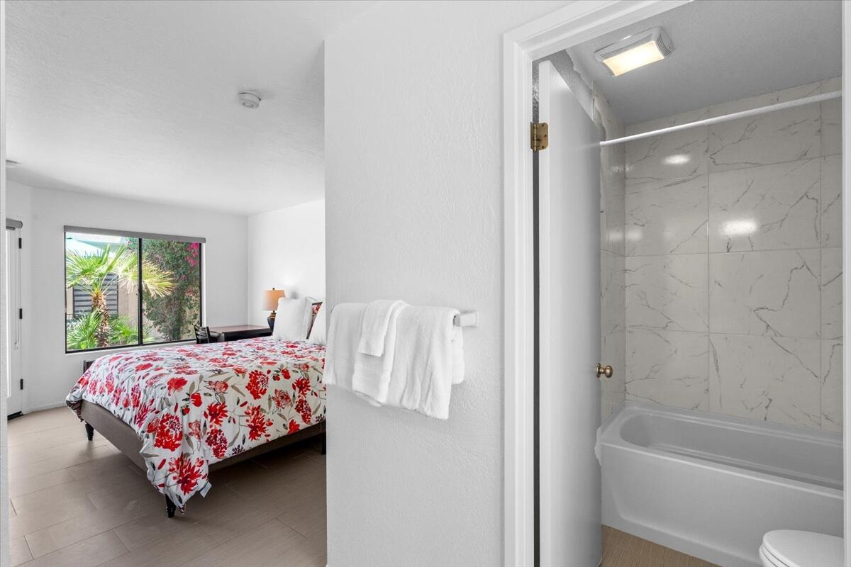 Beautifully maintained, this is the one you've been waiting for - a private, green-belt setting designed for outdoor living! This residence is nestled on a park-like oasis with a pool and hot tub nearby! As you enter through a pristine courtyard with a resort vibe, pause to enjoy the serenity of your desert hideaway! This beautiful patio, complete with mountain views, will quickly become your favorite ''room'' in the house! Inside, soaring ceilings, a cozy fireplace and bar, custom blinds and neutral, easy-care flooring will enchant you. The kitchen features newer wood cabinets, light granite countertops, and updated lighting. The primary and guest bedrooms each feature en suite baths with updated decor. The baths have ben extensively renovated with granite countertops, new cabinetry, and contemporary lighting. The casita has been styled with comfort in mind, and gives your guests enviable privacy. The serene front courtyard is a perfect spot to gather with friends, practice putting, or just recharge under the desert skies! In this serene oasis, you and your guests will enjoy 10 pools and 3 tennis courts, and the proximity to the famous La Quinta Resort and Old Town La Quinta. This wonderful home is the perfect canvas on which to paint your own desert dream - come find your place in the sun!Interested in this Listing?