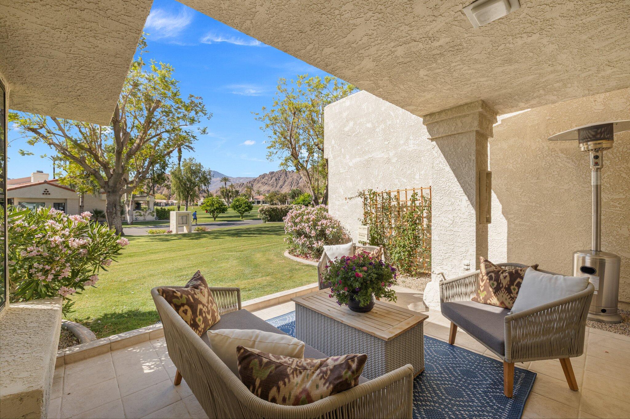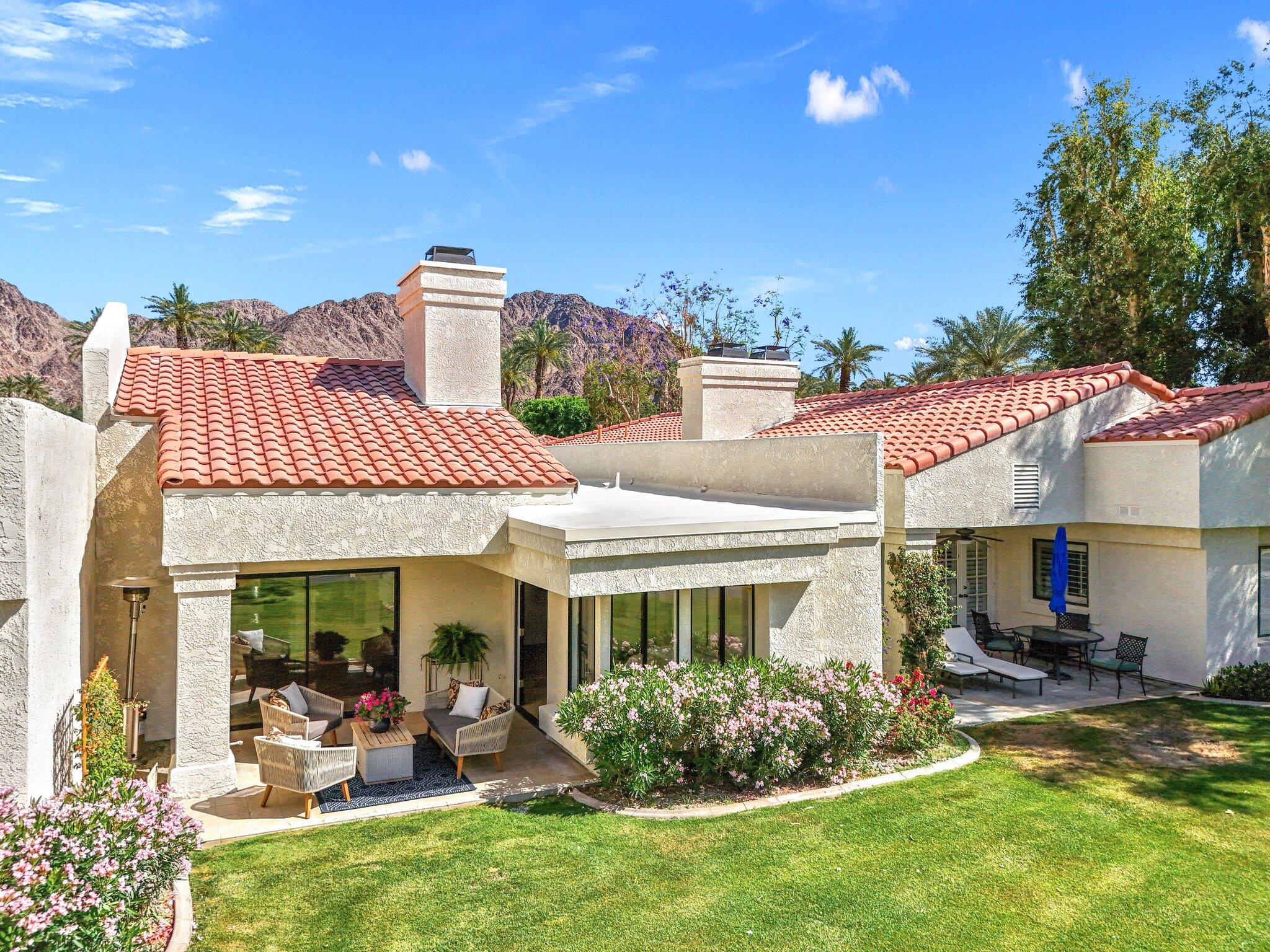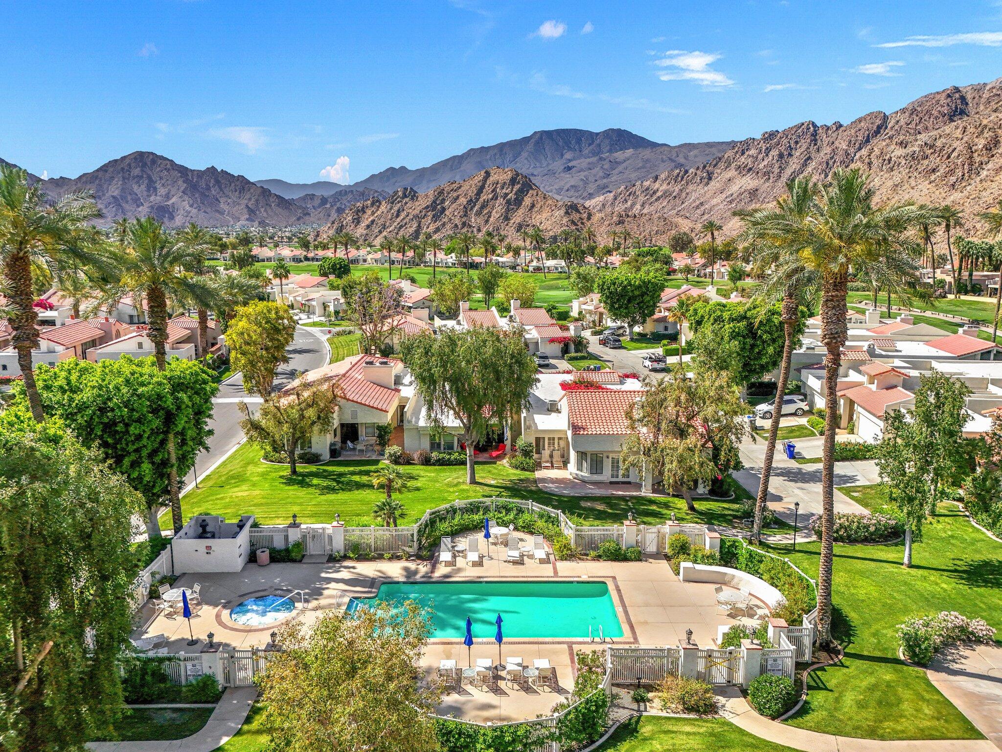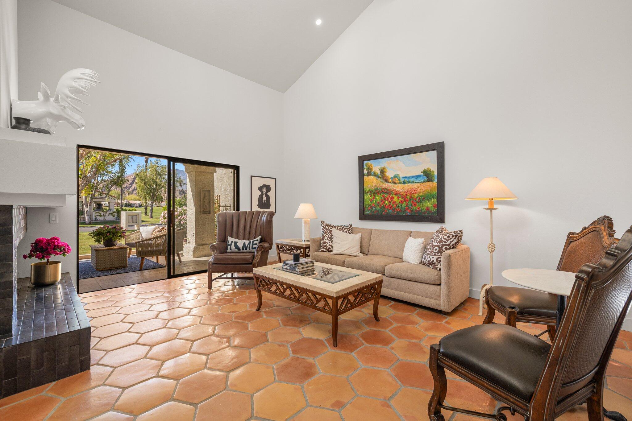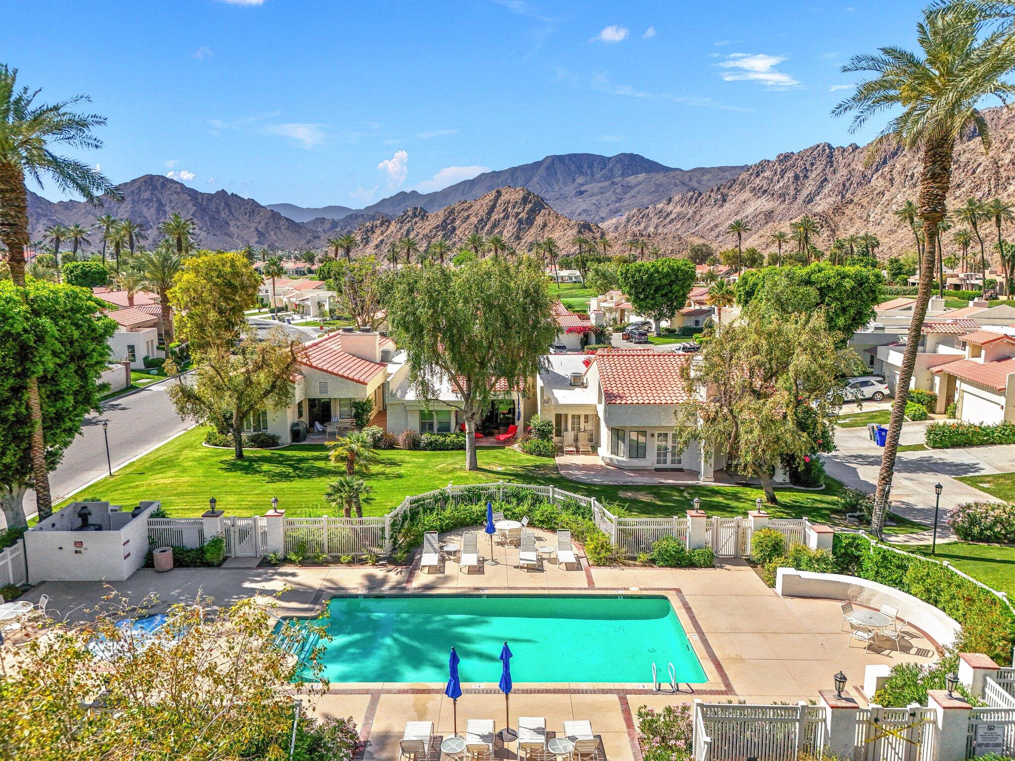 A Rare Gem in Santa Rosa Cove! Experience the epitome of desert luxury in this completely reimagined villa nestled within the prestigious, guard-gated Santa Rosa Cove community. Perfectly positioned near the renowned PGA West Pete Dye Mountain Course and just steps from the world-famous La Quinta Resort & Tennis Club, this stunning residence offers unparalleled access to world-class golf, tennis, pickleball, fine dining, and upscale shopping.Meticulously renovated by the current owner, this villa seamlessly blends Old La Quinta charm with modern sophistication. Highlights include: - Two spacious primary suites for ultimate privacy and relaxation - Expansive main living areas with soaring cathedral ceilings - Living area & primary bedroom open to a private patio with green space, golf course and breathtaking mountain views - New octagonal Saltillo tile flooring throughout, enhancing the villa's warm, elegant ambiance - Fully renovated kitchen with brand-new cabinetry, high-end appliances, and quartz countertops - Separate laundry room, ample storage, and a two-car garage - Gas fireplace for cozy evenings - Designer finishes, curated lighting, and thoughtfully selected furnishings & art-this is the only unit of this floor plan that has mountain and golf course views from the unit. The prime location of this unit puts you within minutes of La Quinta Country Club, Indian Wells Tennis Gardens, Coachella & Stagecoach festivals, polo fields, Thermal Race Track, hiking trails, and charming Old Town La Quinta. Plus, enjoy the convenience of community-maintained pools, tennis courts, and lush landscaping, offering the best of desert resort living--without any maintenance headaches. Sold turnkey - bring your golf clubs and tennis racquets!Interested in this Listing?