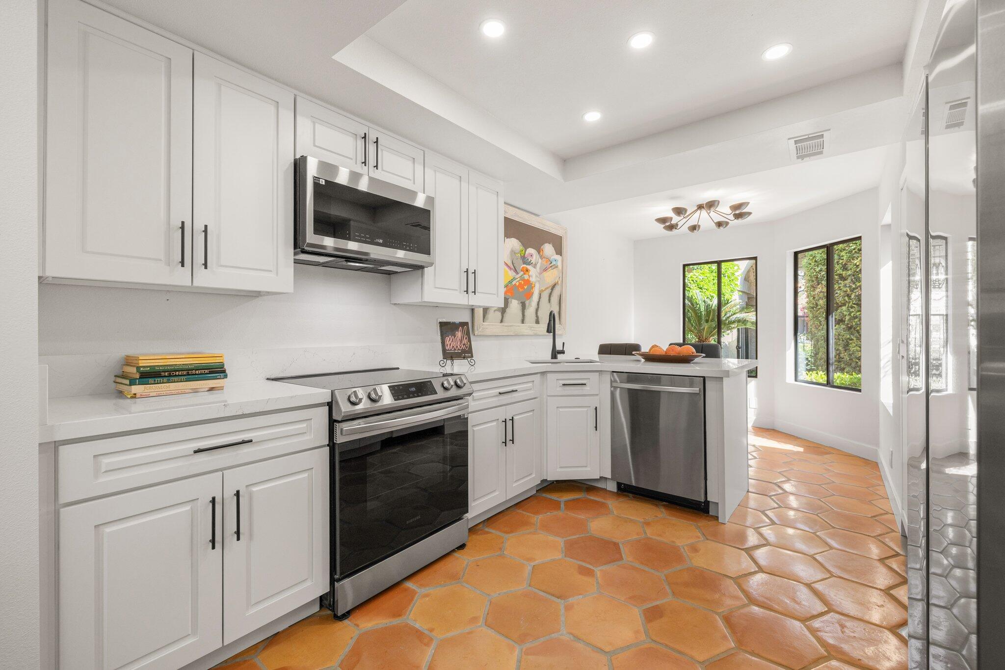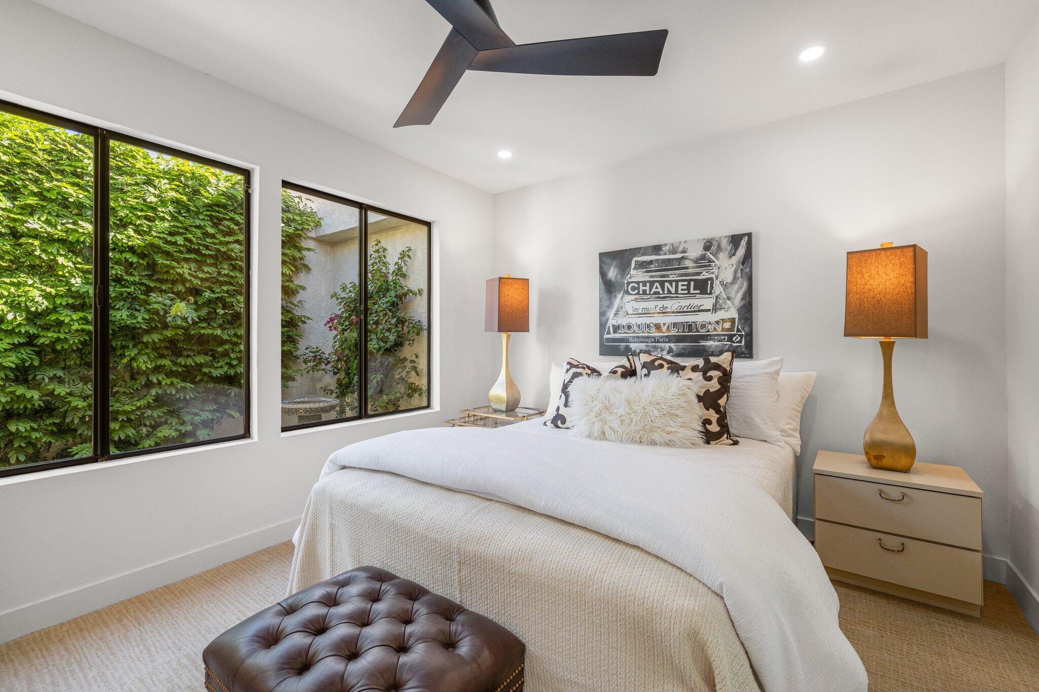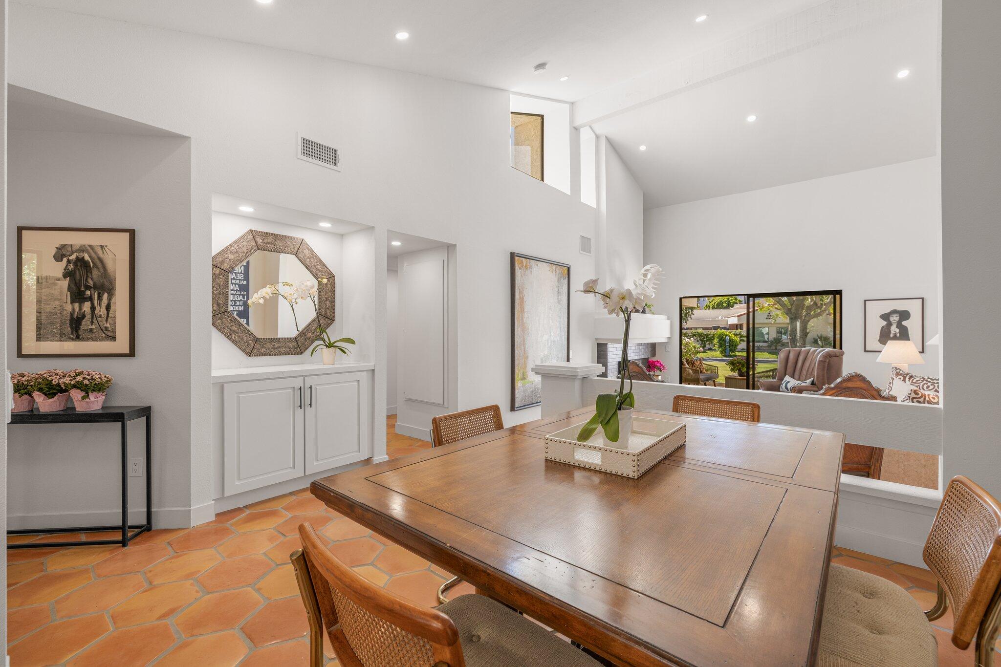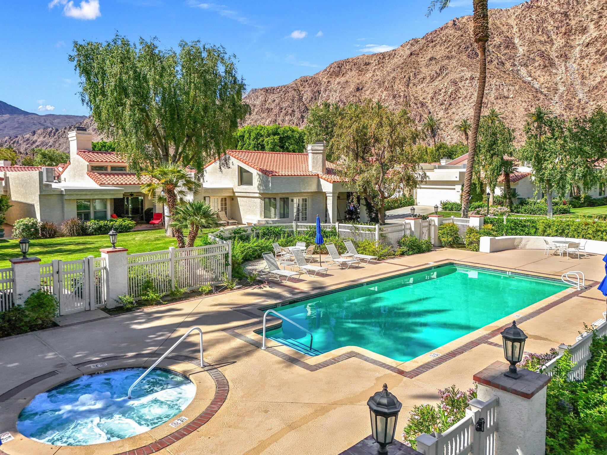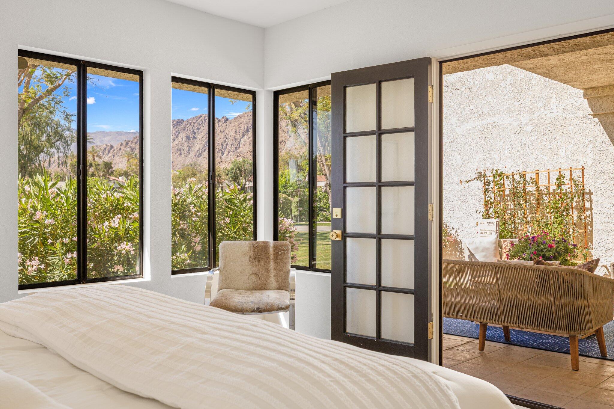 A Rare Gem in Santa Rosa Cove! Experience the epitome of desert luxury in this completely reimagined villa nestled within the prestigious, guard-gated Santa Rosa Cove community. Perfectly positioned near the renowned PGA West Pete Dye Mountain Course and just steps from the world-famous La Quinta Resort & Tennis Club, this stunning residence offers unparalleled access to world-class golf, tennis, pickleball, fine dining, and upscale shopping.Meticulously renovated by the current owner, this villa seamlessly blends Old La Quinta charm with modern sophistication. Highlights include: - Two spacious primary suites for ultimate privacy and relaxation - Expansive main living areas with soaring cathedral ceilings - Living area & primary bedroom open to a private patio with green space, golf course and breathtaking mountain views - New octagonal Saltillo tile flooring throughout, enhancing the villa's warm, elegant ambiance - Fully renovated kitchen with brand-new cabinetry, high-end appliances, and quartz countertops - Separate laundry room, ample storage, and a two-car garage - Gas fireplace for cozy evenings - Designer finishes, curated lighting, and thoughtfully selected furnishings & art-this is the only unit of this floor plan that has mountain and golf course views from the unit. The prime location of this unit puts you within minutes of La Quinta Country Club, Indian Wells Tennis Gardens, Coachella & Stagecoach festivals, polo fields, Thermal Race Track, hiking trails, and charming Old Town La Quinta. Plus, enjoy the convenience of community-maintained pools, tennis courts, and lush landscaping, offering the best of desert resort living--without any maintenance headaches. Sold turnkey - bring your golf clubs and tennis racquets!Interested in this Listing?