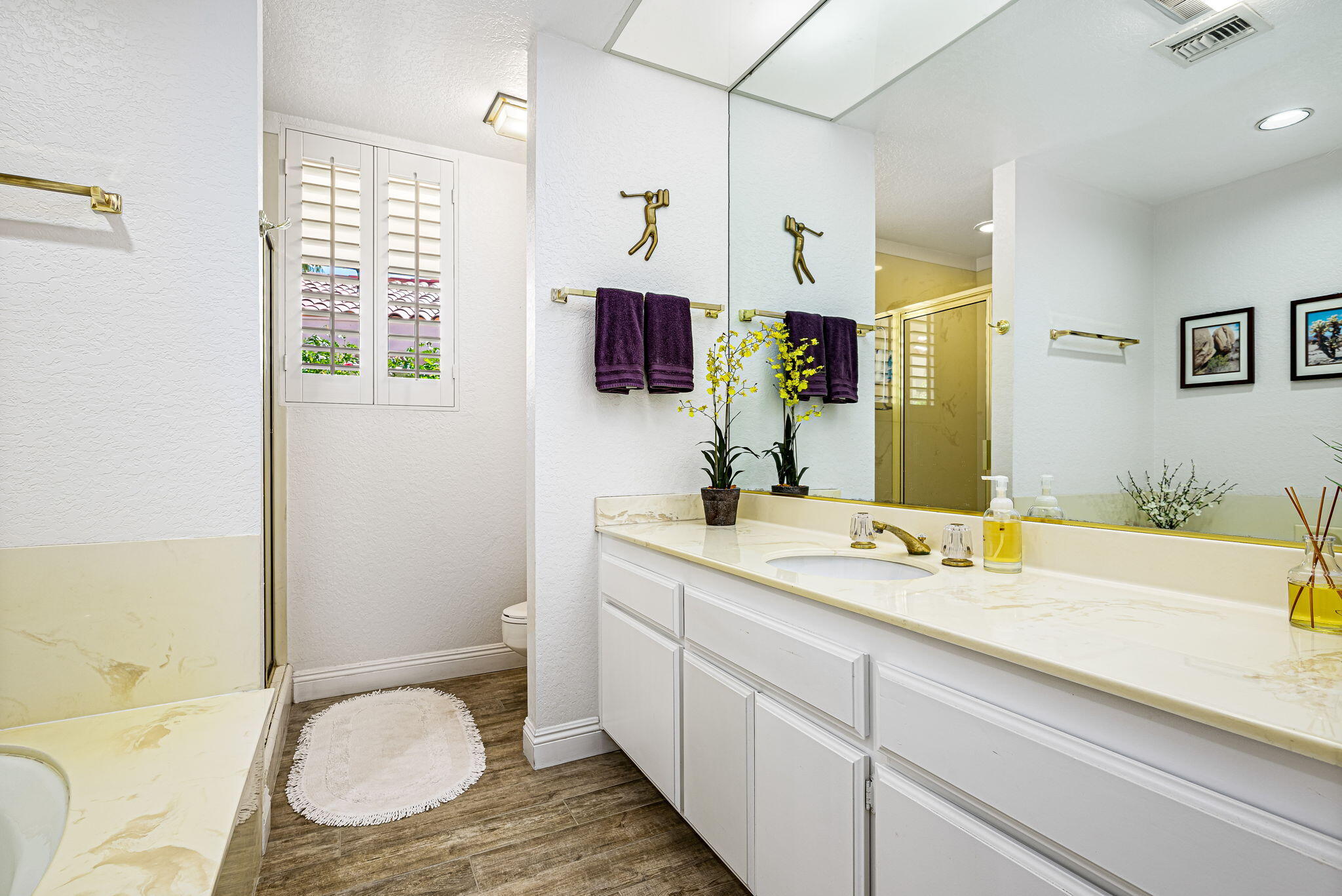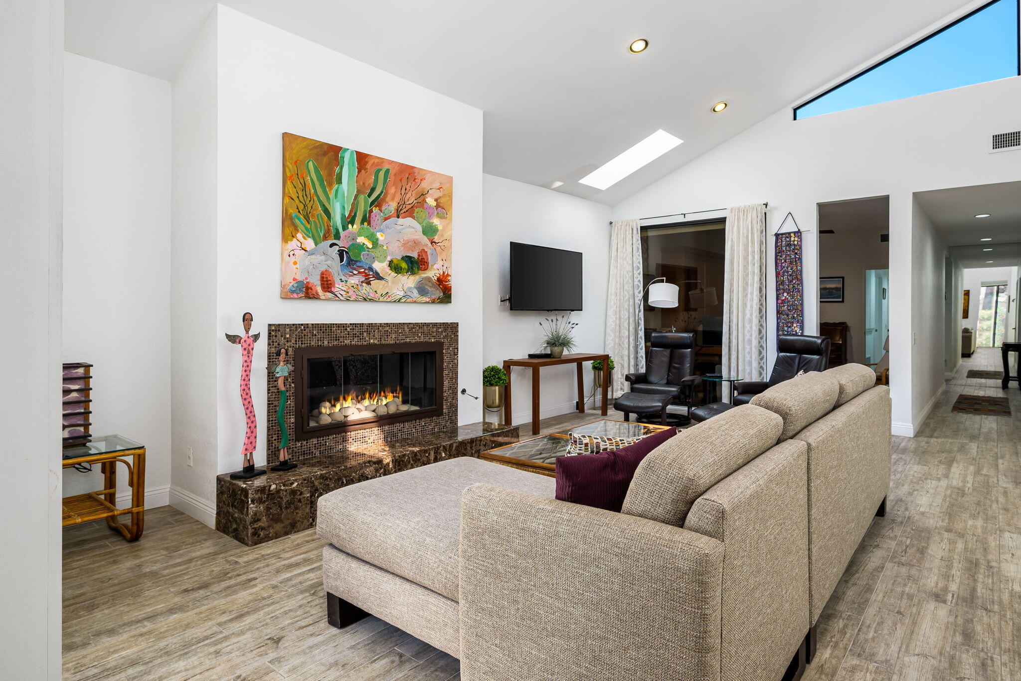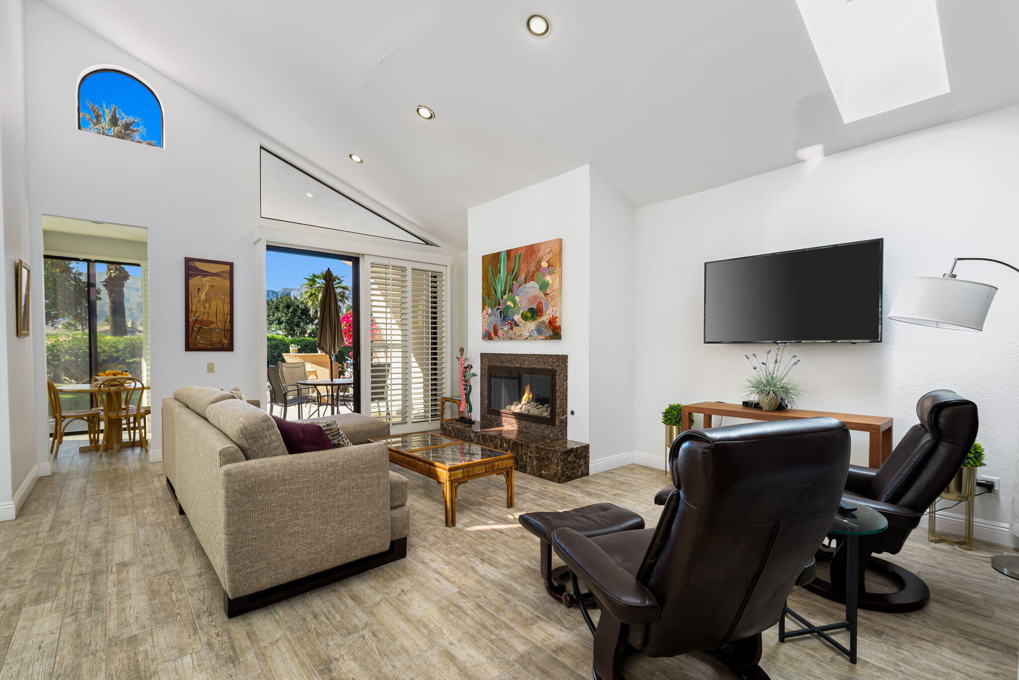 Don't miss this rare opportunity to own a Resort Condo/Home ON the Golf Course, in the prime South La Quinta location of Duna La Quinta! This absolutely lovely, upgraded, and meticulously maintained, 2 bedroom/2 bath + Den, is light, bright and airy with soaring cathedral ceilings and sliding glass doors leading out to your patio on the 10th Tee of PGA Wests Pete Dye Dunes Course, overlooking the Pond with Spectacular Panoramic Views of the Santa Rosa Mountains!! Enjoy a refreshing swim every day in the Community Pool & Spa, just off your back patio and surrounded with greenery, and Mountain Views! Home has been beautifully maintained with recent upgrades including wood plank look, porcelain tiled flooring throughout, walk-in tiled shower in primary bath, wood shutters, newer HVAC, new Epoxy flooring in garage, and more. Duna La Quinta is a highly sought after, hidden gem of a gated community in a Prime Location. Just a 5-minute walk to the lobby and Restaurants @ La Quinta Resort & Santa Rosa Clubhouse, where you can pay as you play on either The Mountains or the Dunes Course, two of the most scenic courses in the PGA West collection. Just a short walk or bike ride to Old Town La Quinta, and only a few minutes' drive to Arnold Palmers, Lavender Bistro, The Sandbar, the Shops and Restaurants, at The Citrus and Canopy Plazas, Silver Rock Golf Course, Eldorado Polo Grounds, Indian Wells Tennis Gardens, and El Paseo ~ the Rodeo Drive of the Desert, a 2-mile boulevard of Upscale Shopping Boutiques, Restaurants and Galleries. HOA Dues include Cable, Wi-Fi, Building and Grounds maintenance, Landscaping, Tennis/Pickleball Court, Pool & Spa, & Electronic Gate. Call / Text me today to schedule your private tour!Interested in this Listing?