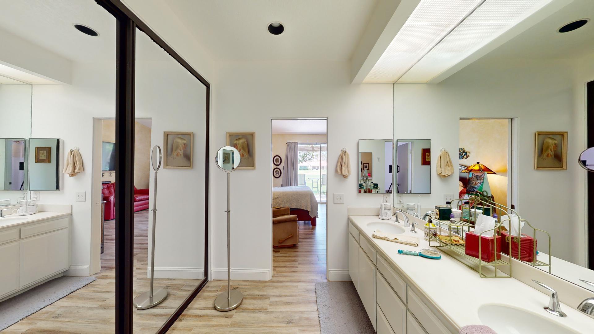 Welcome home! This spacious 3 bedroom home has everything you're looking for! Coming it at just under 3000 sqft, this is the biggest floorplan in all of Duna La Quinta. Situated on the 11th green, this is one of only 3 stand-alone units in the west section of the community. Boasting double master bedrooms on opposite sides of the home as well as a 3rd bedroom with an en suite bathroom. Did i mention that all 3 bedrooms, the den, and living room all have their own patio access? Yup! Nestled directly between 6 guest parking spots for ease of access. One of the 7 community pools is only a few steps away! Both air conditioning units and an updated electrical panel and wiring are only 3 years old. When you step through the front door, your eyes are immediately drawn to the newly tiled fireplace and the expansive view immediately next to it. All 3 in suite bathrooms have been updated as well. And don't even get me started on the working wine cellar! You read that right! Wine cellar! Stop reading and start dialing! Call me now!Interested in this Listing?