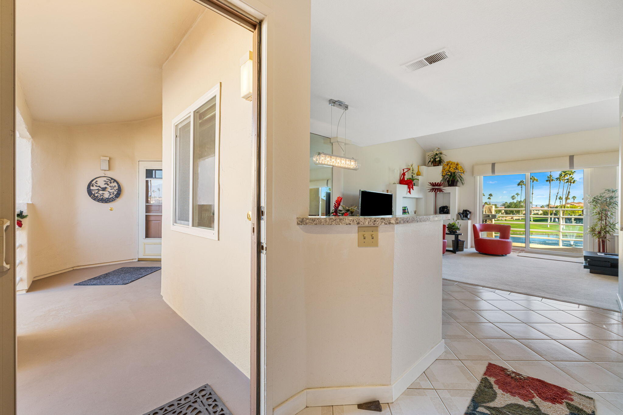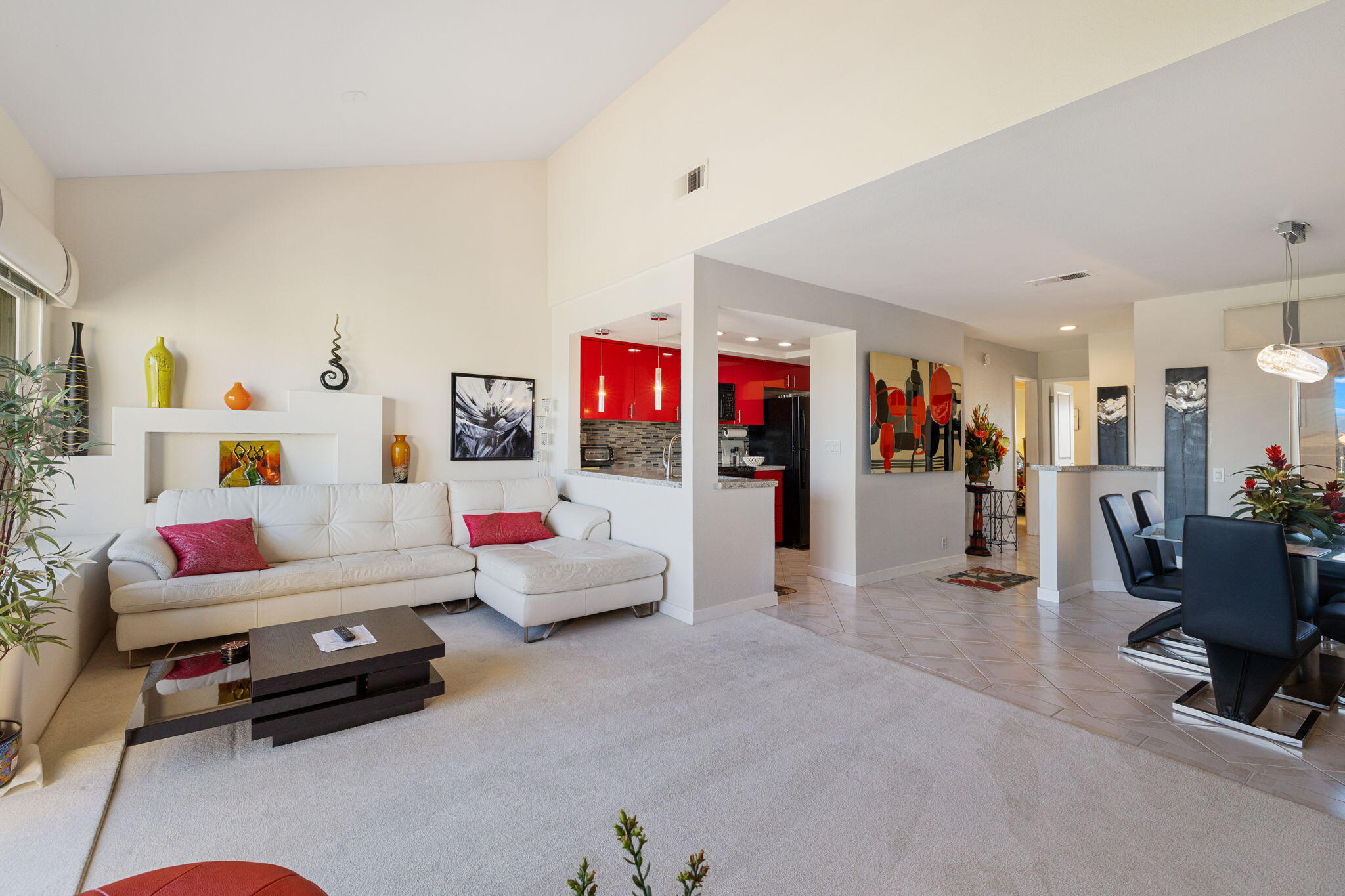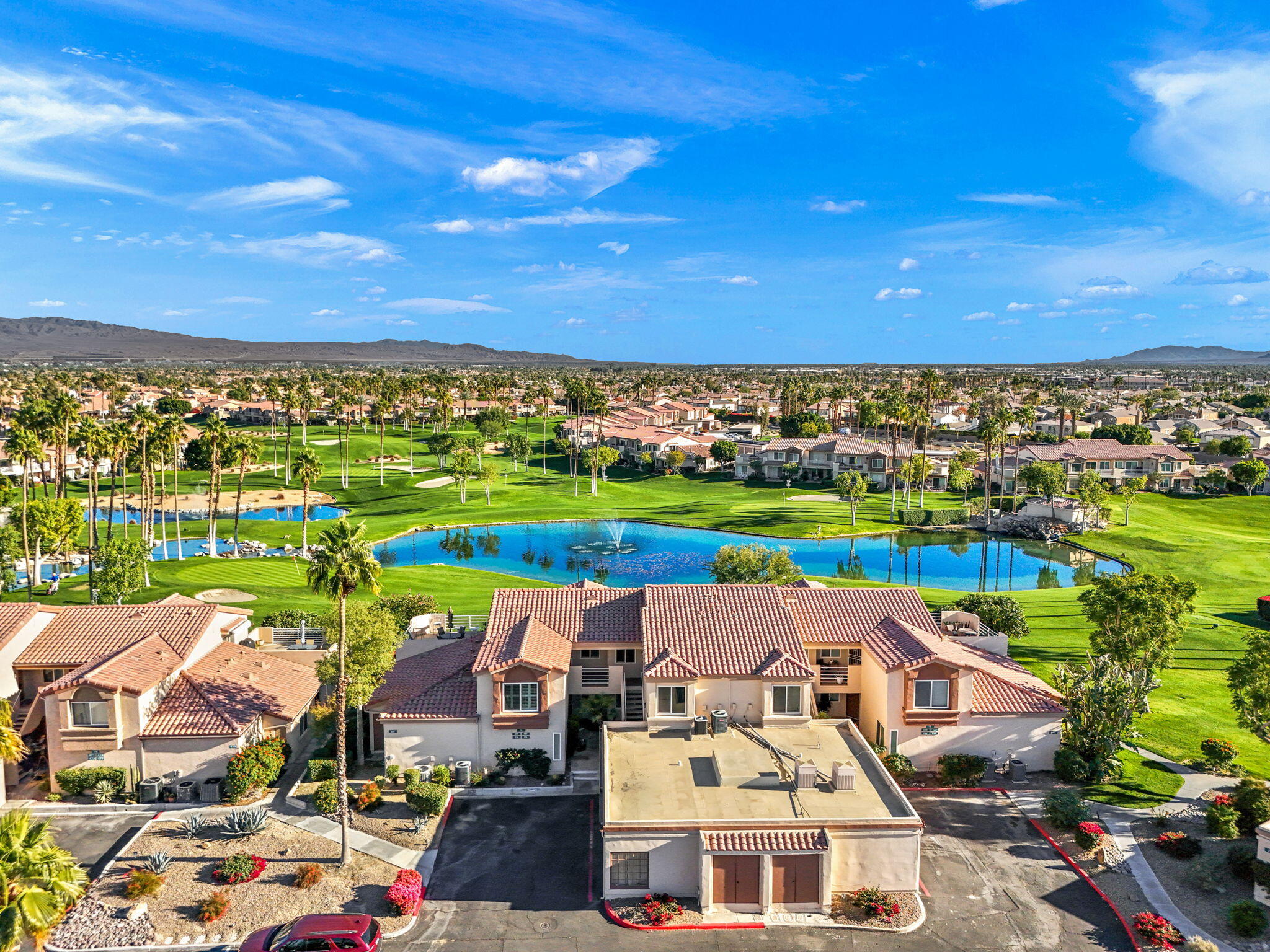 Rare upper level condo was the former Builders Model in Palm Royale. The best overall value in the city of La Quinta. This upper level penthouse condo is located in Palm Royale HOA which includes pools and spas throughout the community, clubhouse, building maintenance, pickleball courts, tennis courts, gym, Wifi and cable, and golf. Palm Royale is located directly across the street from the BNP Paribas Tennis facility. The condo is the best located unit in the development with elevated panoramic South East golf course, lake, and mountain views. Inside the condo it has a clean contemporary look which is perfect for someone seeking a lock n leave condo in the Coachella Valley. The living room has an open concept with amazing natural light from all angles, and vaulted ceilings. The balcony is perfect for entertaining guests and enjoying evening sunsets The power company for Palm Royale is IID which is historically way less expensive than SCE. Big Bonus! Please call today to schedule a private showing.Interested in this Listing?
