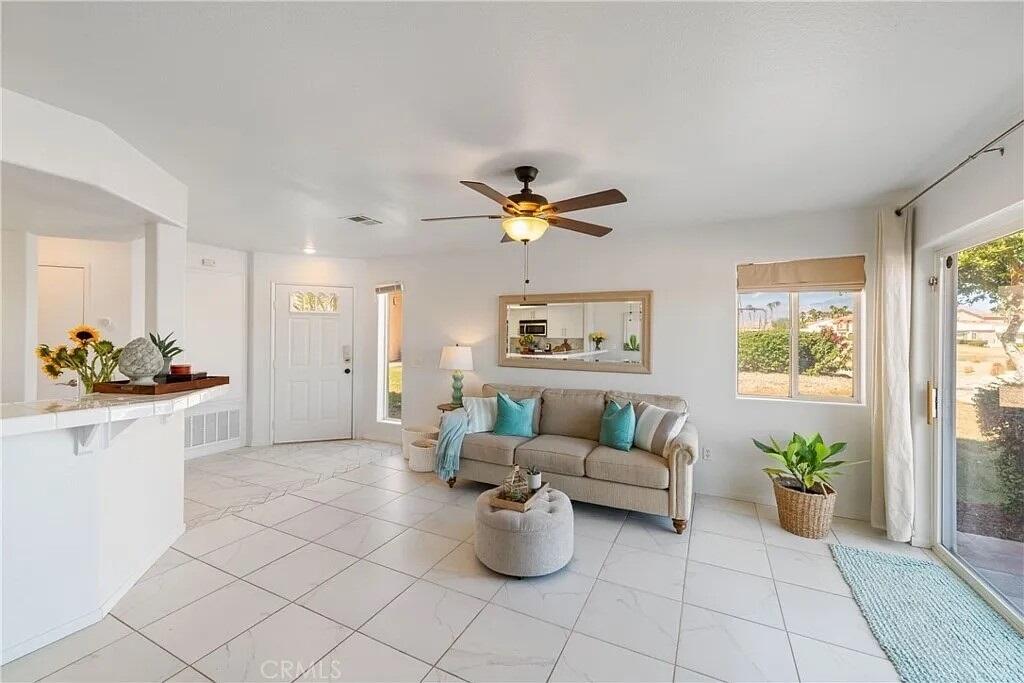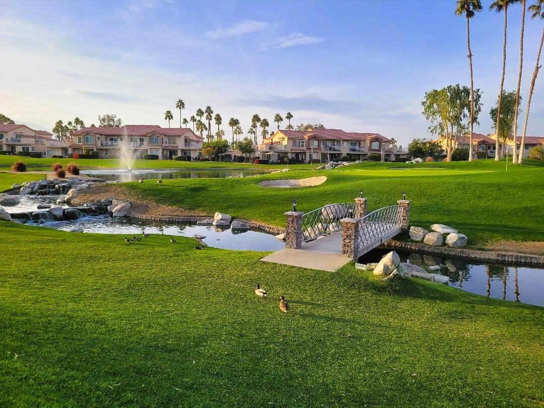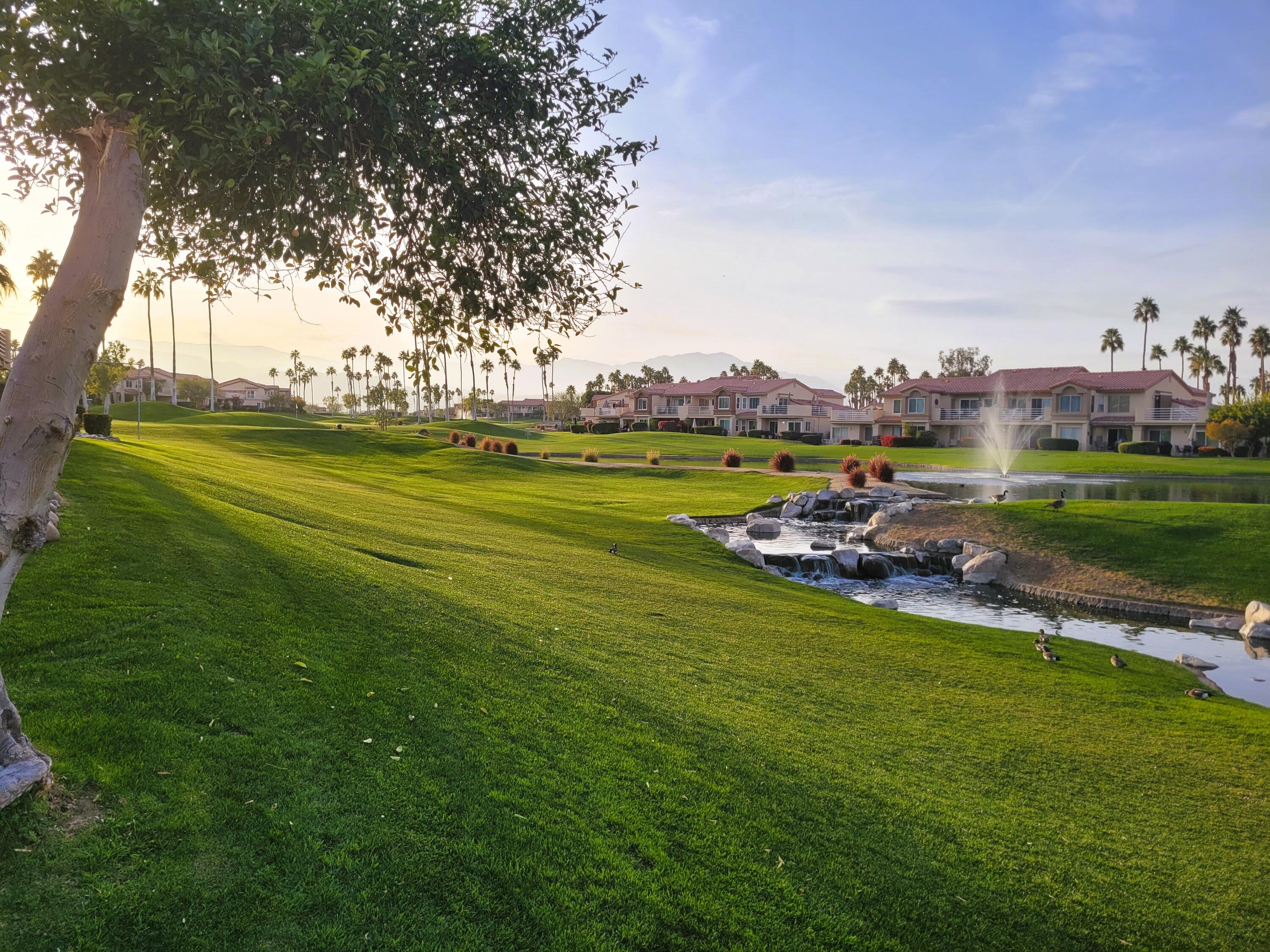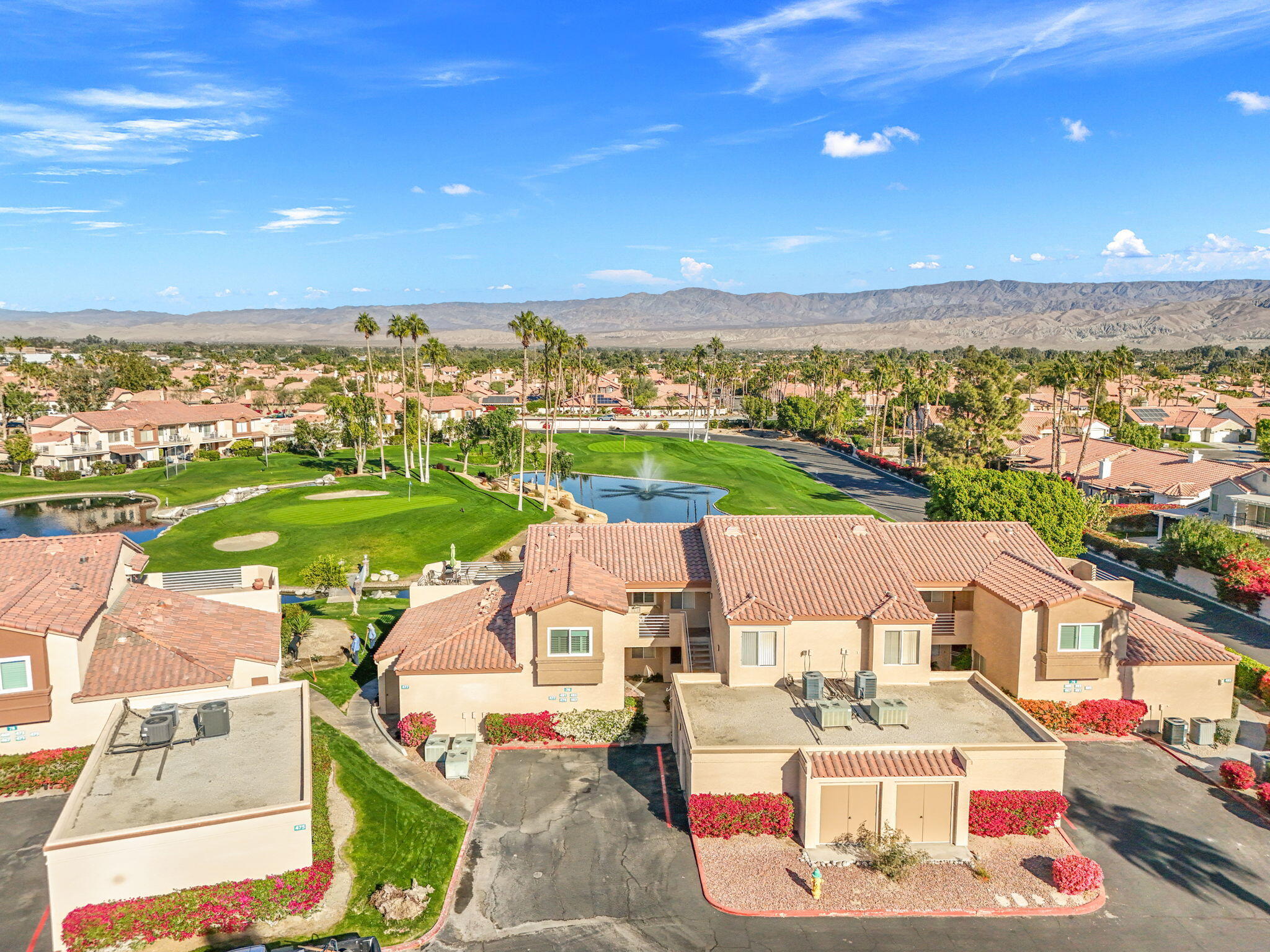 This condo features a premium location with lake, fairway and mountain views. Conveniently located away from traffic and noise. This model is single level with no living area above. The interior features a great room floor plan. The kitchen features upgraded appliances. The end unit is light and bright with skylights in the baths. Porcelain tile flooring throughout. Decorated with warm, neutral colors and offered furnished. The inclusion of a 1-car garage adds practicality to the package. The complex's amenities include 6 community pools and spa areas, providing ample opportunities for relaxation and recreation. The added perk of UNLIMITED golf on a Ted Robinson designed par-3 course. The community features tennis and pickleball courts that are well maintained. Now the desert area headquarters for Helix Disc Golf, enhances the lifestyle appeal. Low HOA dues covering essential services, cable, and internet make for worry-free living. Convenient access to shopping, dining, and transportation adds to the property's allure. Situated across from the Indian Wells Tennis Gardens, home of the Paribas Open, this property is perfect for either full-time residence or a luxury seasonal home. Overall, it truly offers a lifestyle of convenience and luxury, appealing to those seeking the ultimate in comfort and relaxation.Interested in this Listing?