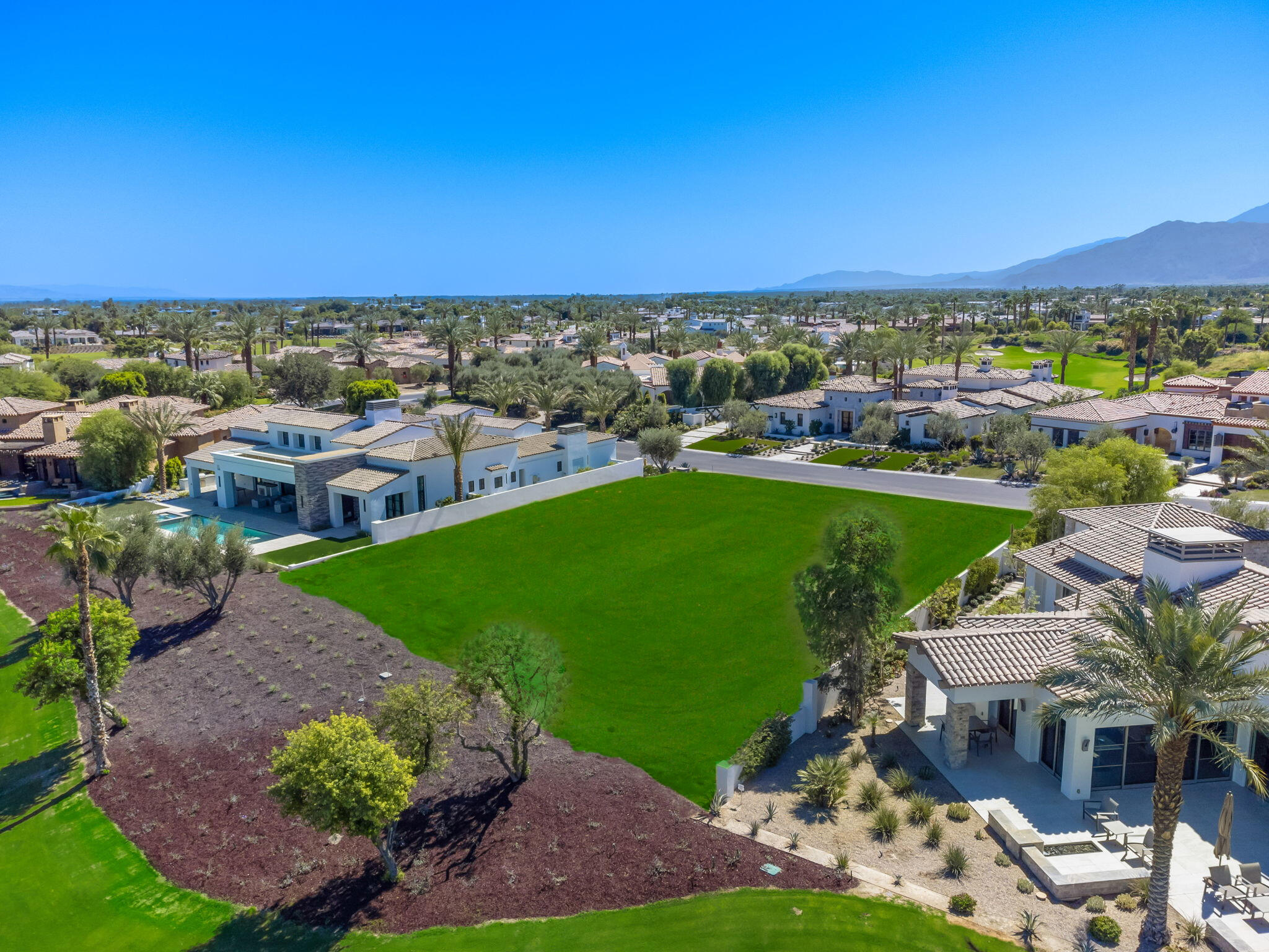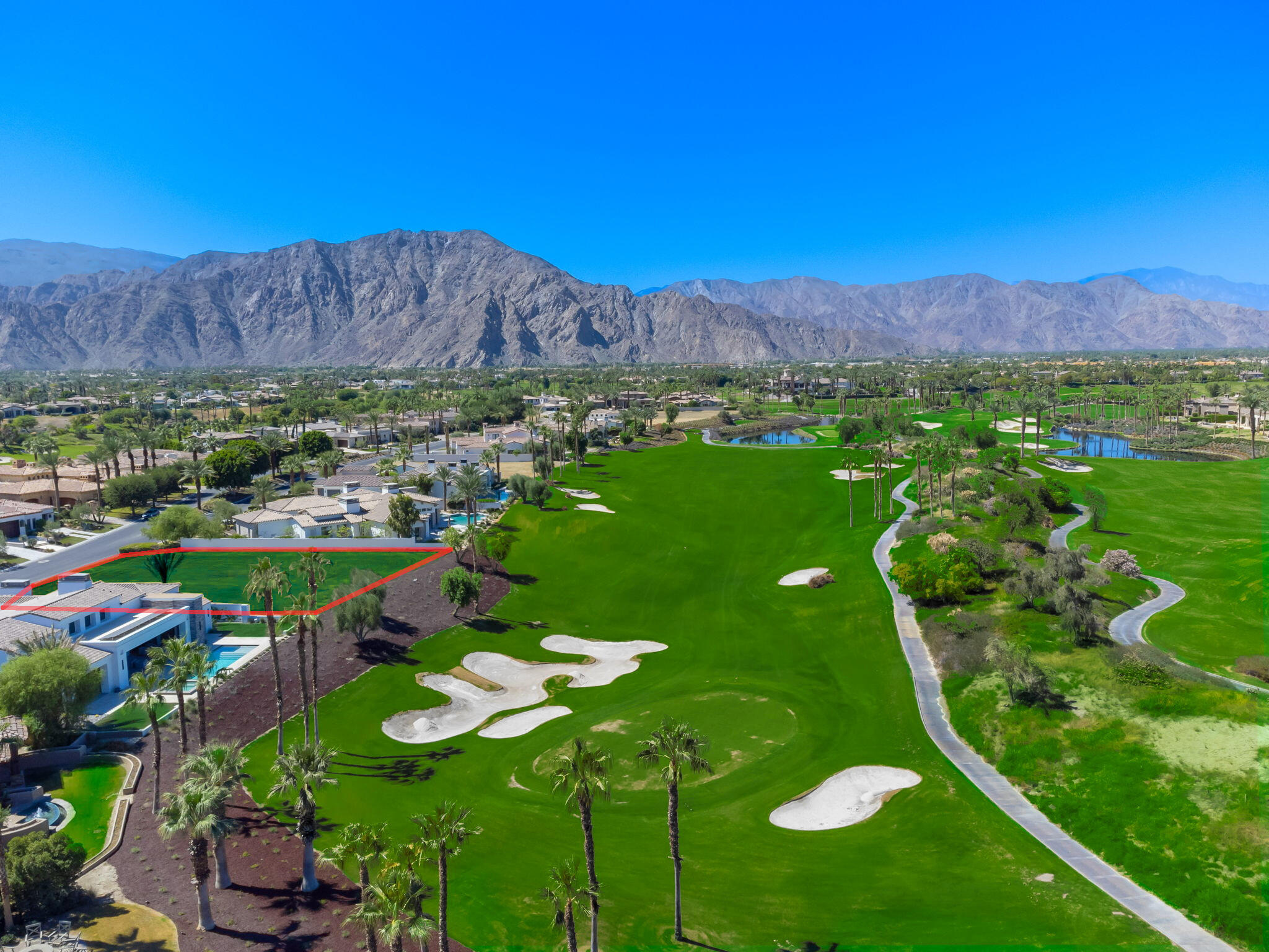 This exceptional, nearly half-acre custom homesite offers a unique opportunity to build your dream home in a prime interior location within the beautiful Hideaway Golf Club. Nestled just off the 10th green of the Clive Clark golf course, this site boasts stunning views of the Chocolate and Santa Rosa mountains. Approved plans for a stunning 7,400 sqft custom home are included, featuring 6 bedrooms, 6.5 baths, and a luxurious outdoor entertainment area, including a sparkling pool that spans the full length of the property, allowing you to create your own private oasis. The lush green areas enhance the beauty and charm of your future home, providing an ideal backdrop for outdoor activities and relaxation. Don't miss this rare opportunity to own one of the few remaining custom homesites at the Hideaway. Embrace the breathtaking mountain views, dramatic golf vistas, and the tranquility of this remarkable location. Contact us today to make your dream a reality on Via Montecito.