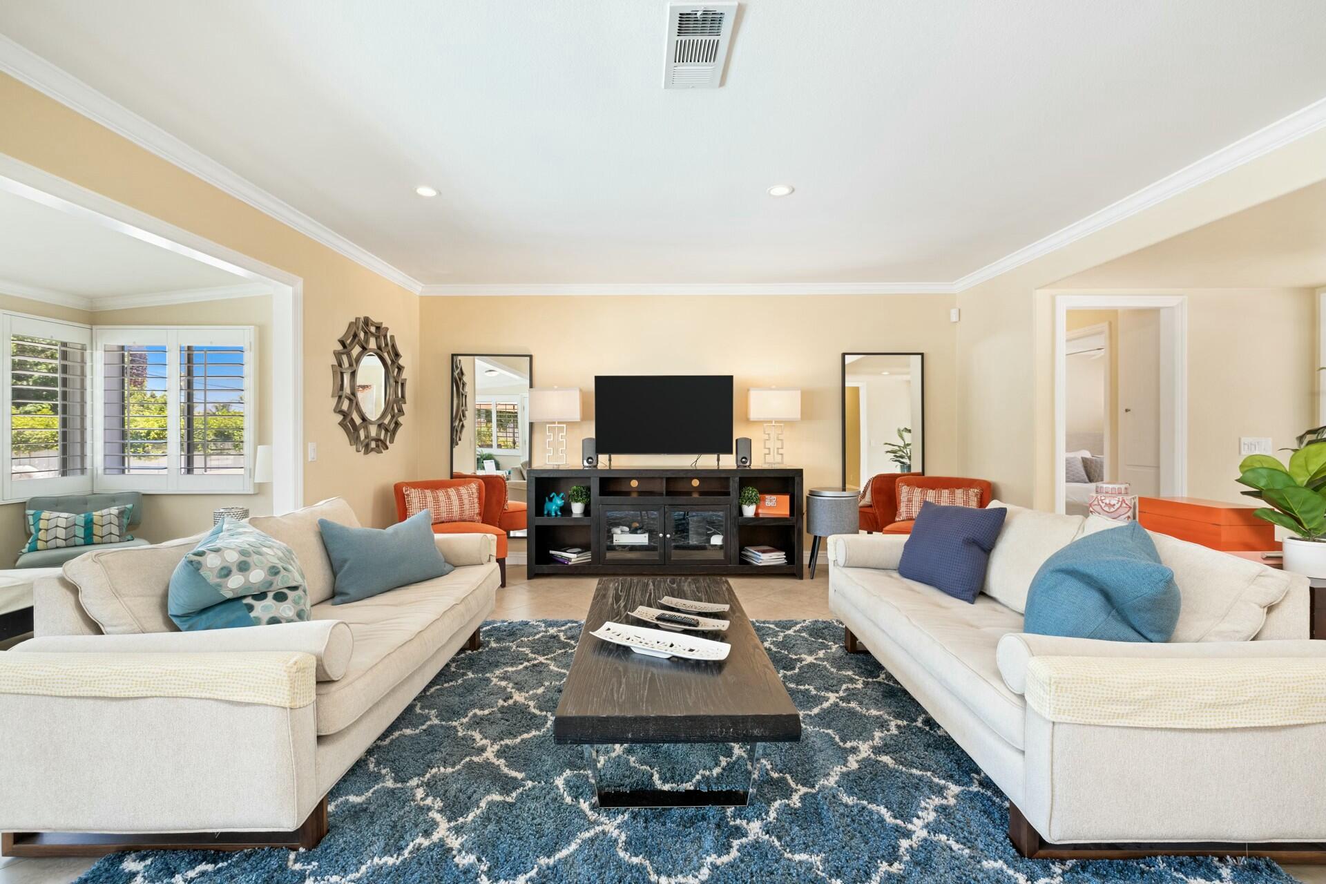 Seasonal Rates are $7000.00 Stunning Home in the Heart of La QuintaThis gorgeous property offers everything you could want for a perfect getaway. From panoramic mountain views to a private pool and spa, this home is truly a desert paradise. Inside, you'll find a bright and inviting open-concept floorplan featuring 3 spacious bedrooms and 2 modern bathrooms with elegant granite countertops, custom cabinets, and luxurious custom showers.The newly renovated kitchen is a chef's dream, equipped with sleek stainless steel appliances and beautiful new cabinetry. Whether you're cooking for family or entertaining guests, this space is designed to impress. With plenty of seating and dining areas, it's perfect for family gatherings and creating lasting memories.Need space for your adventures? This home also offers RV parking, making it ideal for road trip enthusiasts. The expansive backyard is an oasis with breathtaking views of the mountains, a cozy firepit, and a large pool with a relaxing spa--perfect for unwinding under the desert sky.With three bedrooms comfortably sleeping six and three additional daybeds in the living room for extra guests, this home offers ample space for family and friends. Book your stay at this exceptional home and experience the best of La Quinta!Interested in this Listing?