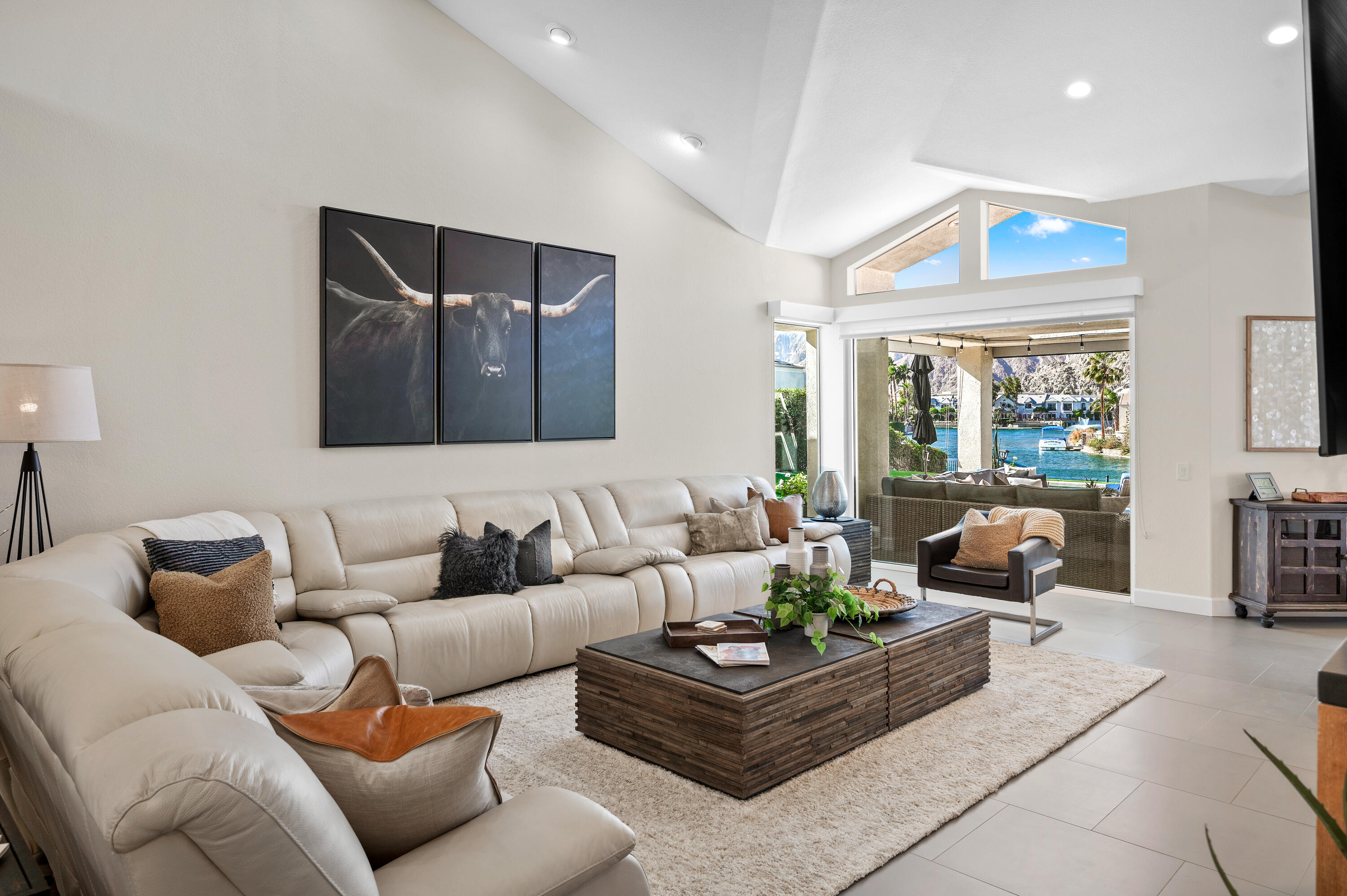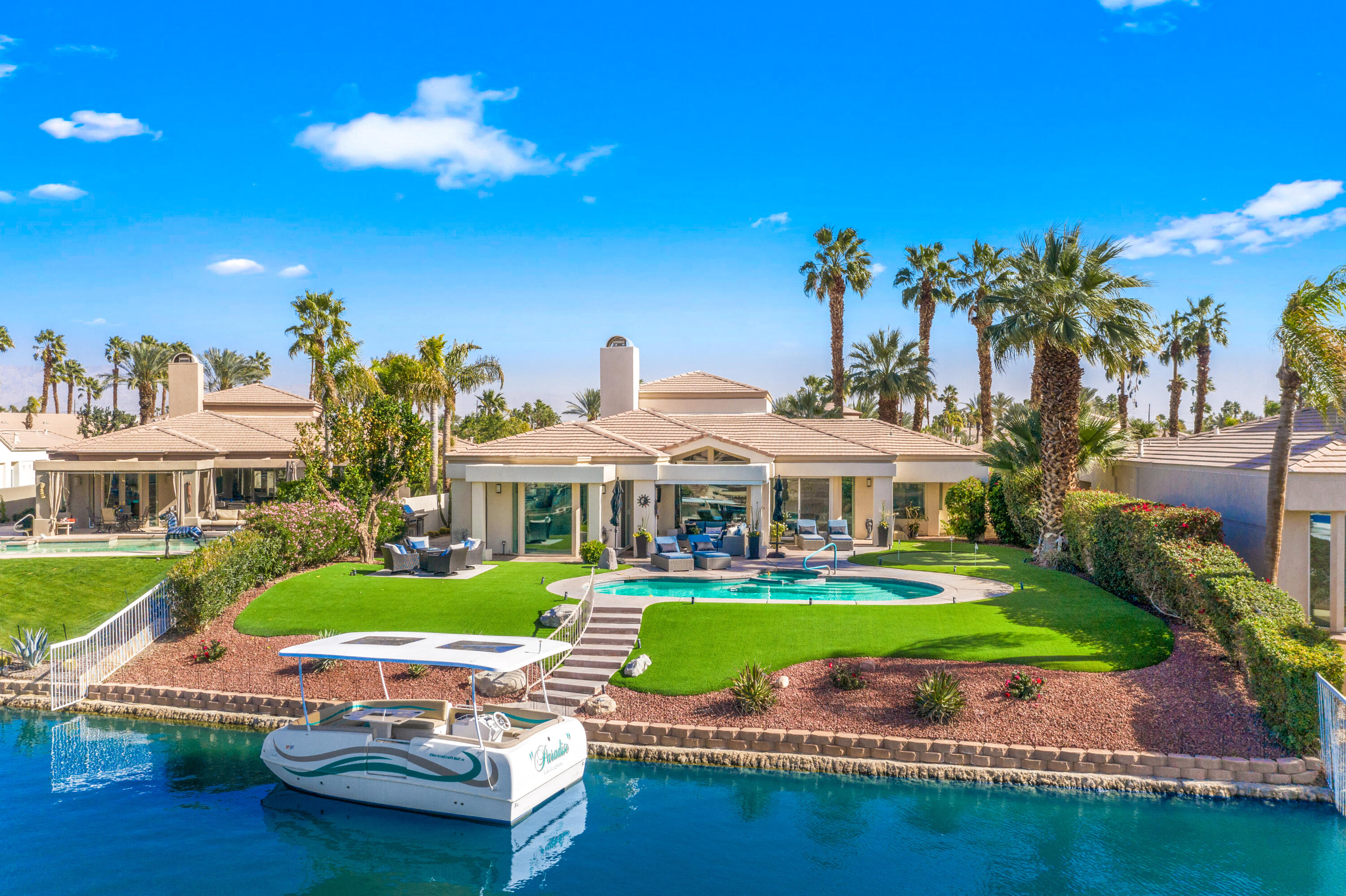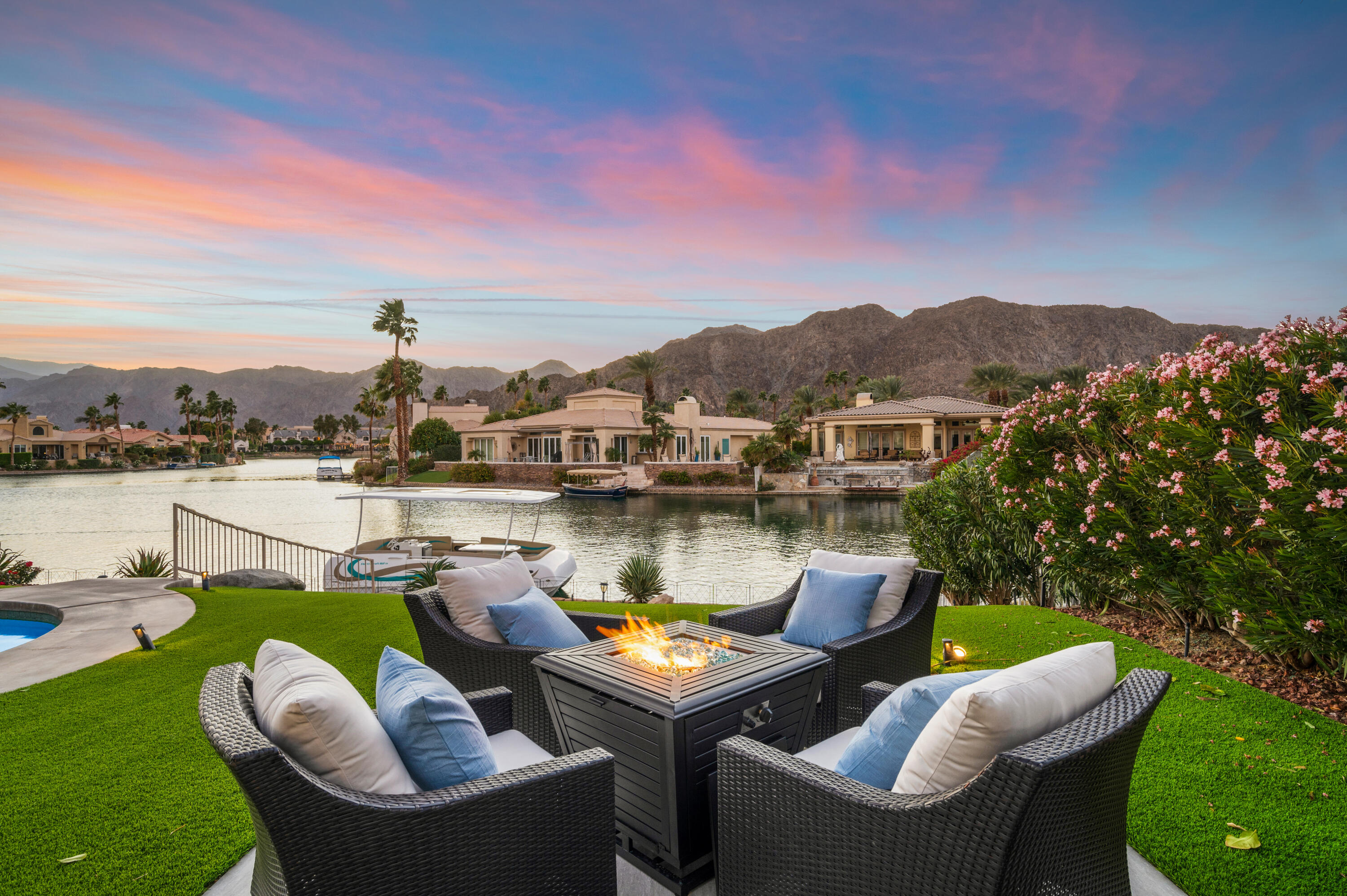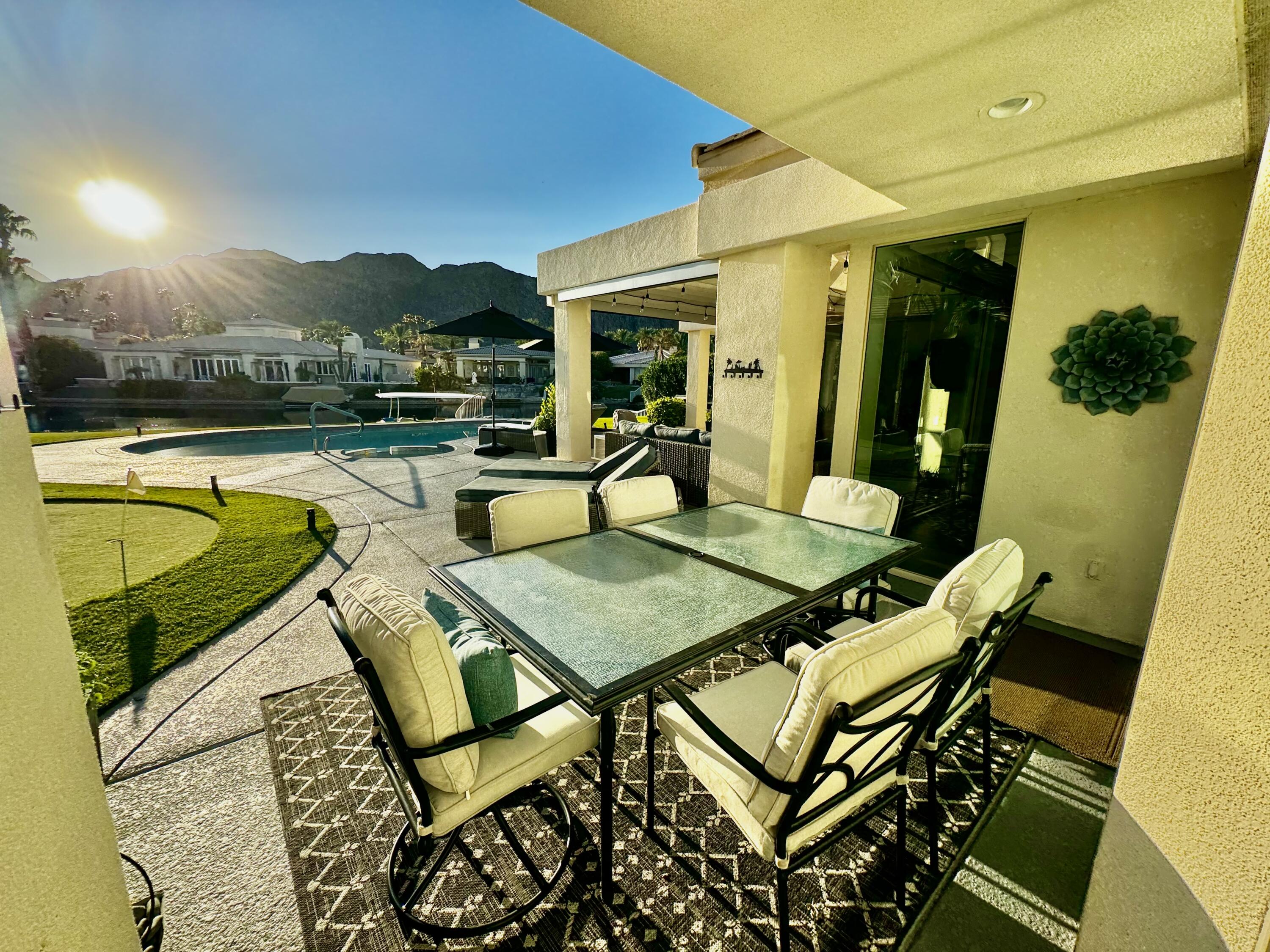 Are you looking for a peaceful, quite fully furnished, lake front view home? Look no more! This is one of a kind home in beautiful La Quinta CA. Home is fully furnished and includes use of the electric boat. Close to everything LQ, Indian Wells, Palm Desert and Palm Springs. This 3000 sq ft single level home is immaculate and ready for you to move in with just food and your personal items! 3 beds all en-suites, powder, huge Living room, Master and the most Amazing Views! Owner pride is shown in every area of this property. Heated pebble tech pool and spa. Outdoor patio furniture , putting area, Bbq area and did I say FULLY Furnished! Tv's, Furniture, Dishes, Towels, Linens, Appliances big and small, cleaning supplies, full size W/D. Large garage with one space, additional refridge/freezer, kayaks, bikes, tennis & pickleball rackets and too much to list! This home will not disappoint! Terms negotiable and pricing based on terms. Owner is Licensed Realtor. No solicitation's please, Serious Inquiries Only and home is currently occupied, private Owner showings only.Interested in this Listing?