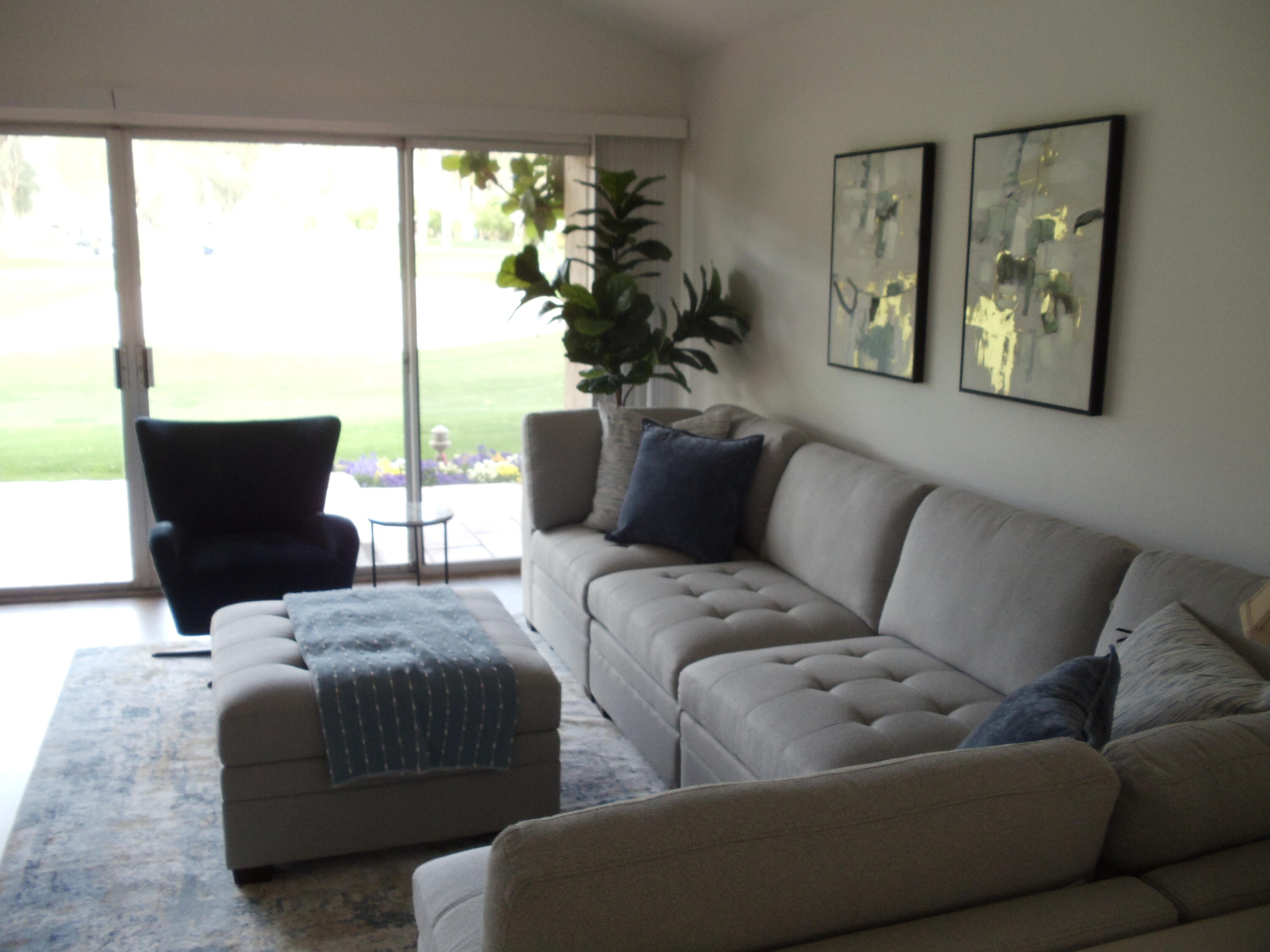 First time as a Seasonal or year long rental. Just finished complete remodel. Located in the gated golf course community the Villas of La Quinta. You enter through a private courtyard. This is a two bedroom and two bath home that sits by the fifth green of the private La Quinta Country Club. The Great room and Master bedroom both open to the large covered patio with double grass fairway and mountain views. The living room has vaulted ceilings and unobstucted views across the golf course The patio is perfect for enjoying a BBQ, glass of wine and watching the sun set. The updated kitchen opens to a large dining area that has a sliding door onto an enclosed patio. The main bedroom features direct patio acccess. The master bathroom has a double vanity and a large tiled walk-in shower. The second bedroom is nicely seperated, creating a private feeling The second bathroom also has a large tiled shower. There is a community pool. Great location that is close to Old Town La Quinta and tha La Quinta Resort and Spa. Some of the areas best restaurants, golf, tennis, entertainment, concerts, sporting events, casinos and outdoor activitiesare are near by. Year long rental $3200 per month. Jan.$6000, Feb.& March $7000, April $8000. May $7000, Jun-Oct $4000, Nov & Dec $5000. Owner would like 3-4 months and willing to work on the rate.