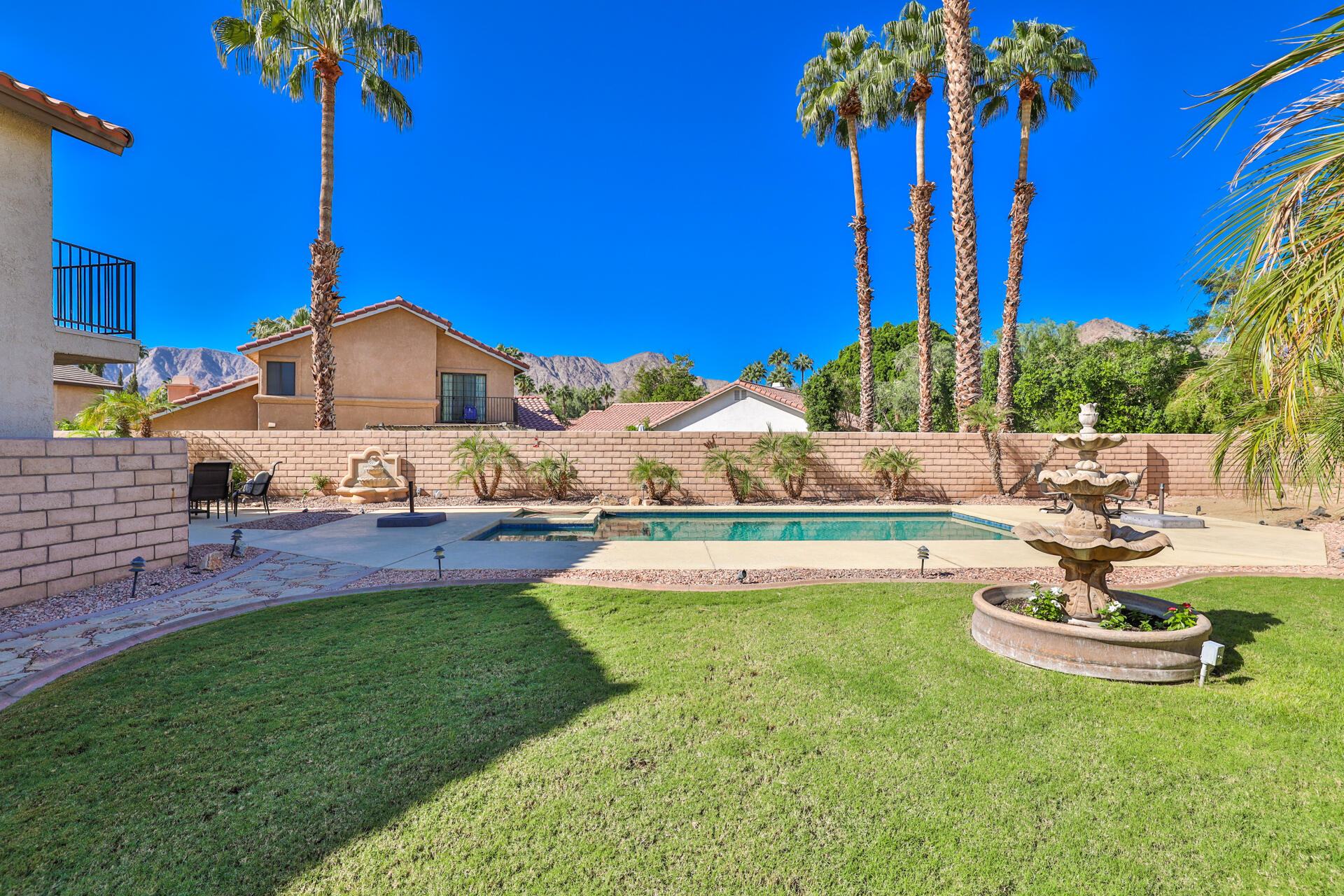 ALL DATES AVAILABLE La Quinta! Spacious 3 bedroom 2.50 bath, master bedroom retreat is now a 4th bedroom with no closet, Gardenia Model home has been beautifully upgraded to include oak cabinets w/custom rollouts, granite counters, convection microwave & Stove, Formal living room w/gorgeous custom oak mantel surround on fireplace, formal dining room, separate eat-In kitchen area & separate family room overlook fabulous landscaped backyard and sparking pool & spa. Powder Room on 1st level. Spacious Master Suite separate with soaking tub. Baths have been updated with new oak comfort height vanities w/marble slab tops. Soft neutral tones and 18 tile throughout, Milgard windows for energy efficiency, new doors, ceiling fans. Remodeled 15x30 Pebble Tec plaster pool & spa, plus additional 7'x7' Electric Spa, 2 Fountains & professional Malibu lighting complete this Dream Home! This is the perfect vacation rental.Interested in this Listing?