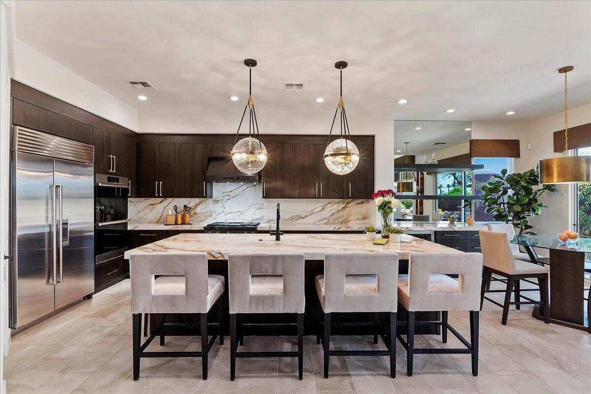 Enjoy a little piece of paradise in this renovated Montana 1 with panoramic views of the 10th hole of Jones course in Rancho la Quinta. This 4 bdrm 5 bath cornerstone of tranquility is fiercly intentional about your privacy and comfort. This luxurious home is complete with 3 bdrms inside and a large detached casita complete with a King bed and small kitchenette! The spa inspired bathrooms and a gourmet chefs kitchen all combine to supercharge your senses while blending the natural peace from a desert living experience. Now available for LEASE - Oct, Nov, Jan and April!Interested in this Listing?