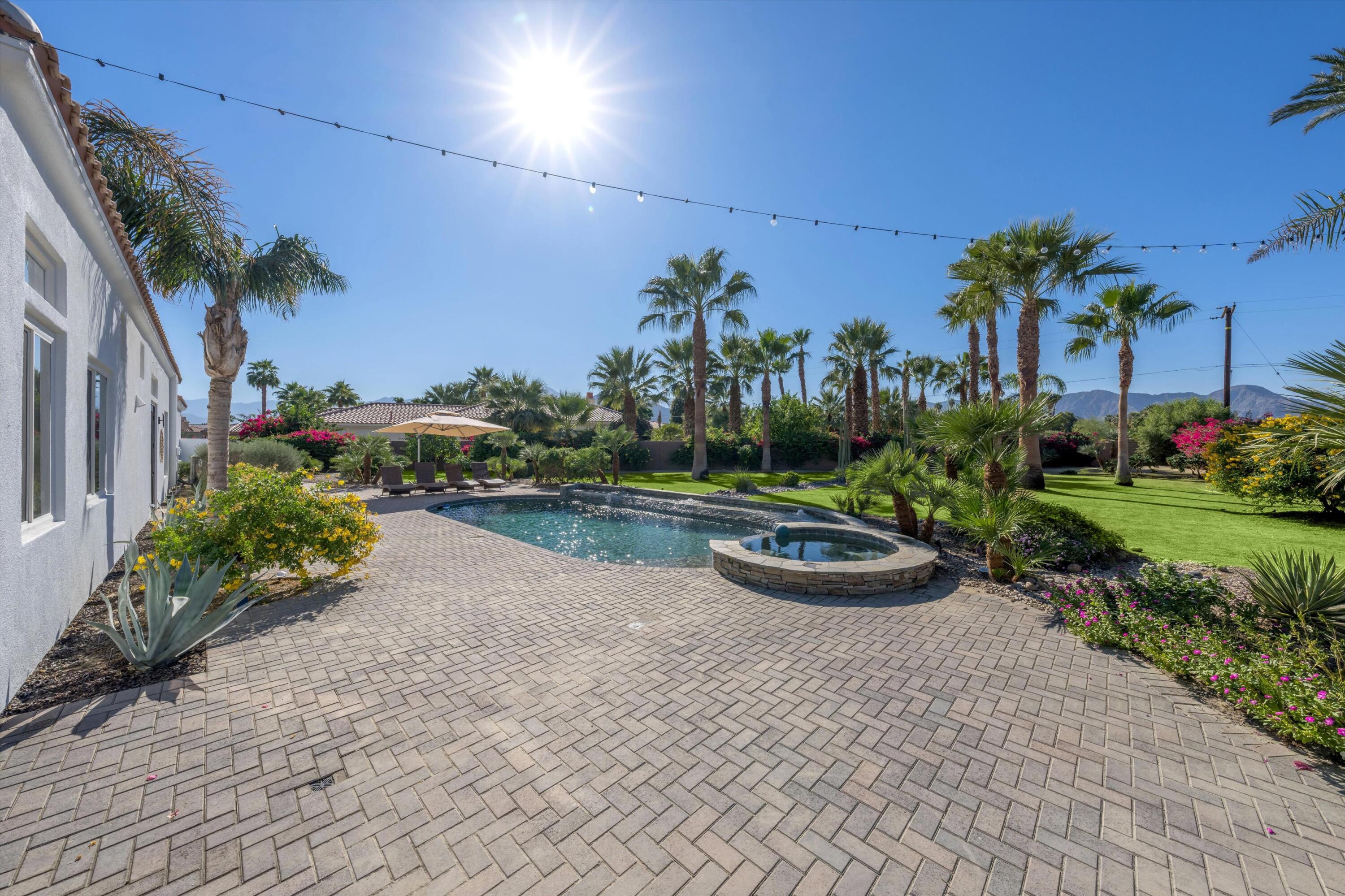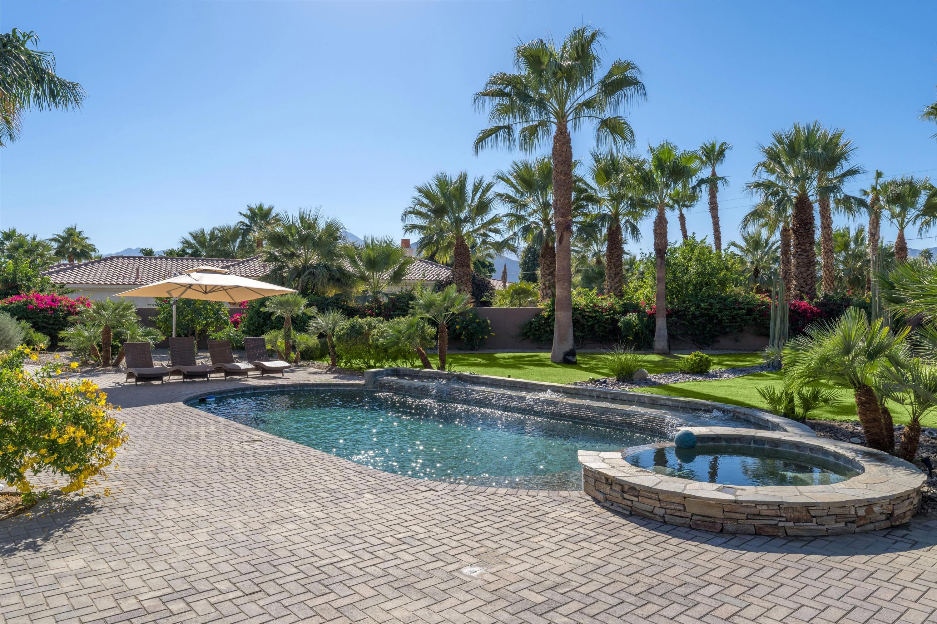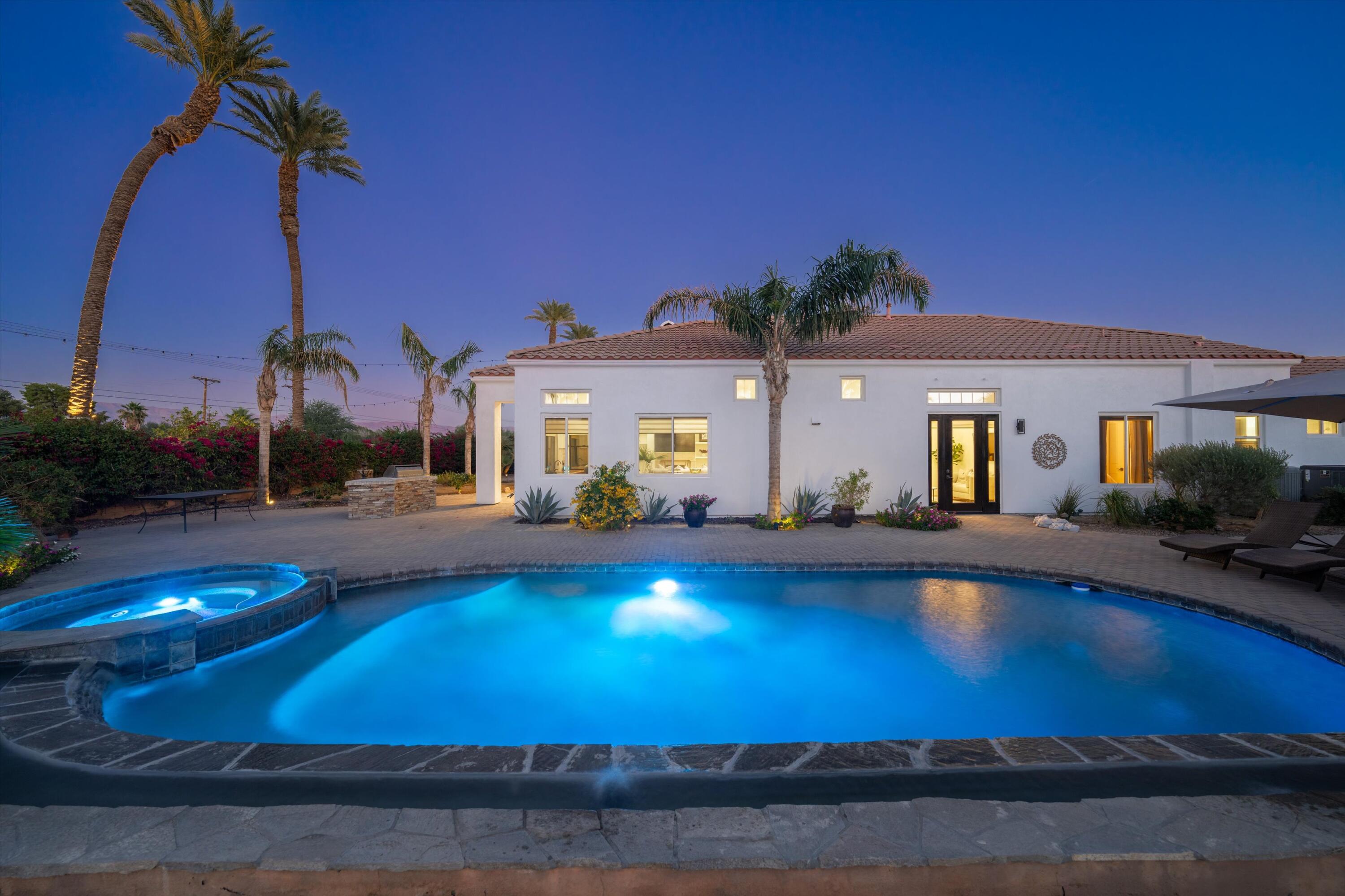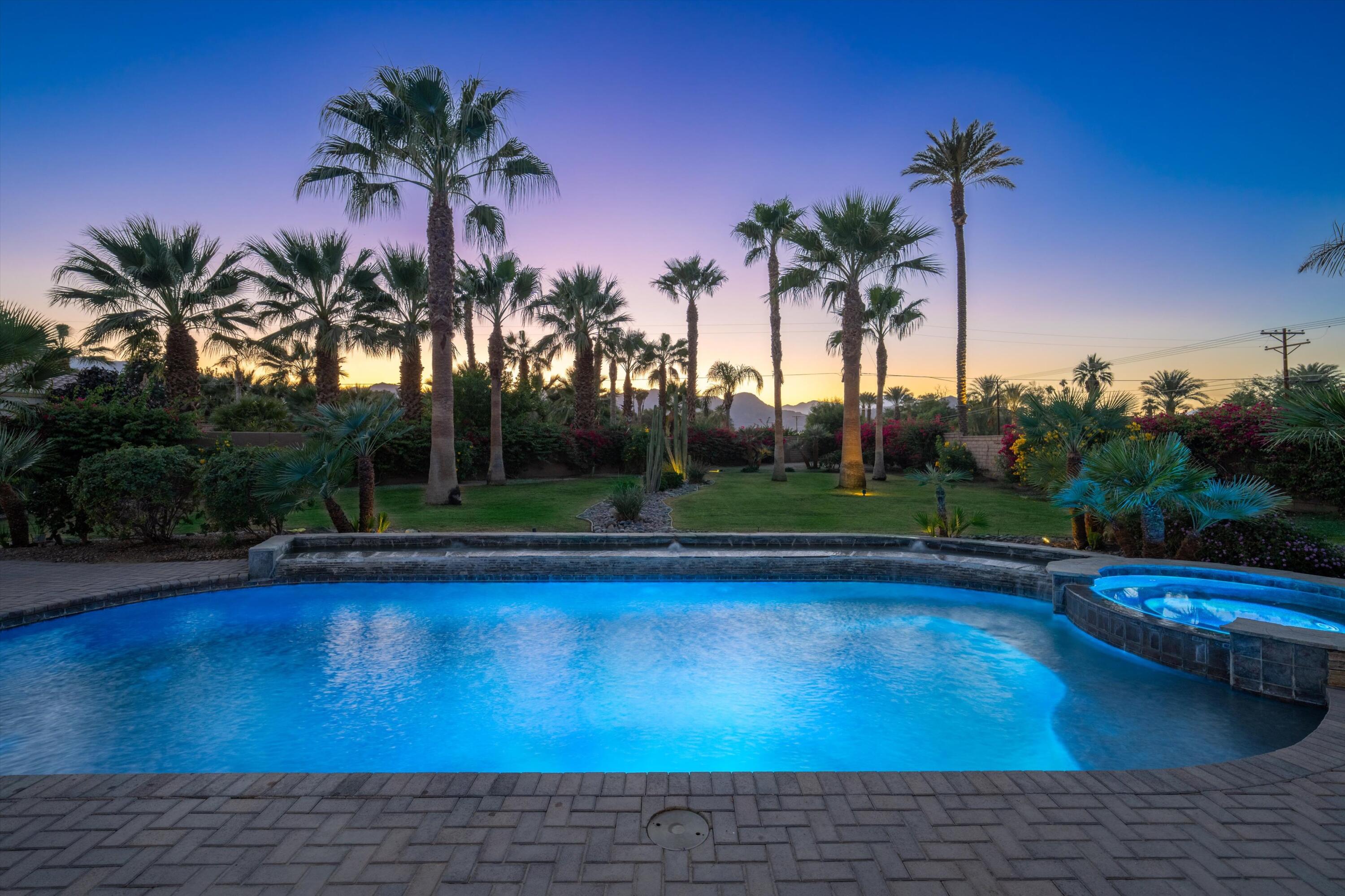 AVAILABLE now and through 2026! Call for summer rates. This immaculate Sedona model is turnkey furnished and has been gorgeously remodeled! Entering through the grand foyer with 16 ft ceilings, you are greeted by all new luxury vinyl wood floors, elegant lighting and exquisite decor throughout! The spacious den has French doors to the gorgeously landscaped backyard. The well appointed dining area leads to the upscale kitchen and family great room with fireplace and counter seating at the island and bar. All 3 bedrooms are ensuite with king size beds and smart TV's and 10 ft ceilings. The primary bedroom is privately located with its own access to the backyard for those desert night dips in the beautiful pool and spa. High end patio furniture, built in barbecue and magnificently expansive grounds only add to the beauty of this special home in Mountain View Country Club. EV hookup available in garage. Monthly rent amount varies depending on month. Security deposit is $7500 and cleaning fee is $350. Landlord pays all utilities ($300 cap on gas/electric) cable, internet, pool/gardner service and pest control. HOA dues included. Tenants pay nominal social membership transfer fee to use clubhouse, fitness center, pickleball/tennis courts, bocce ball, heated community pool and other amenities. Pets OK with owner approval and pet deposit.Interested in this Listing?