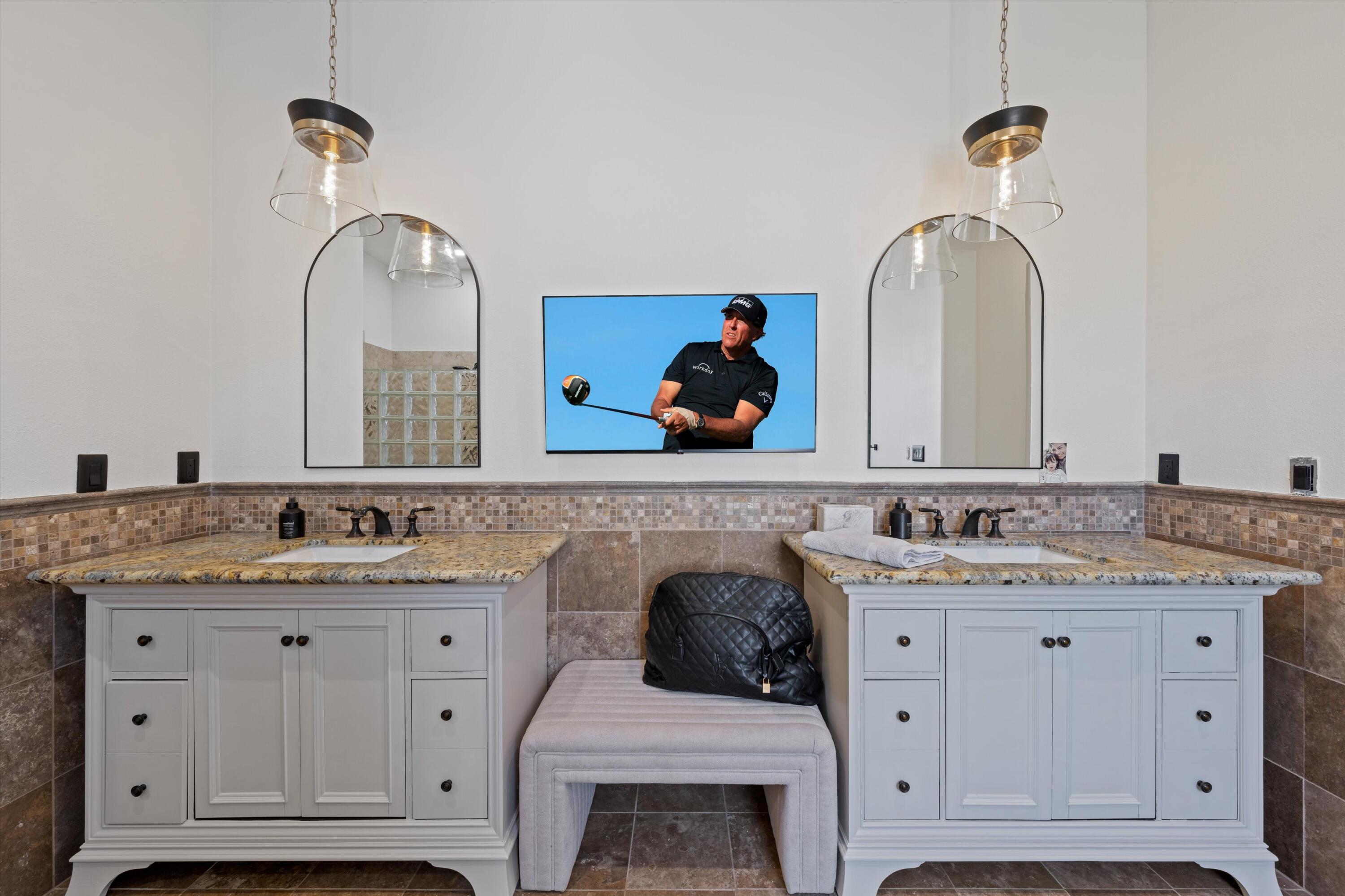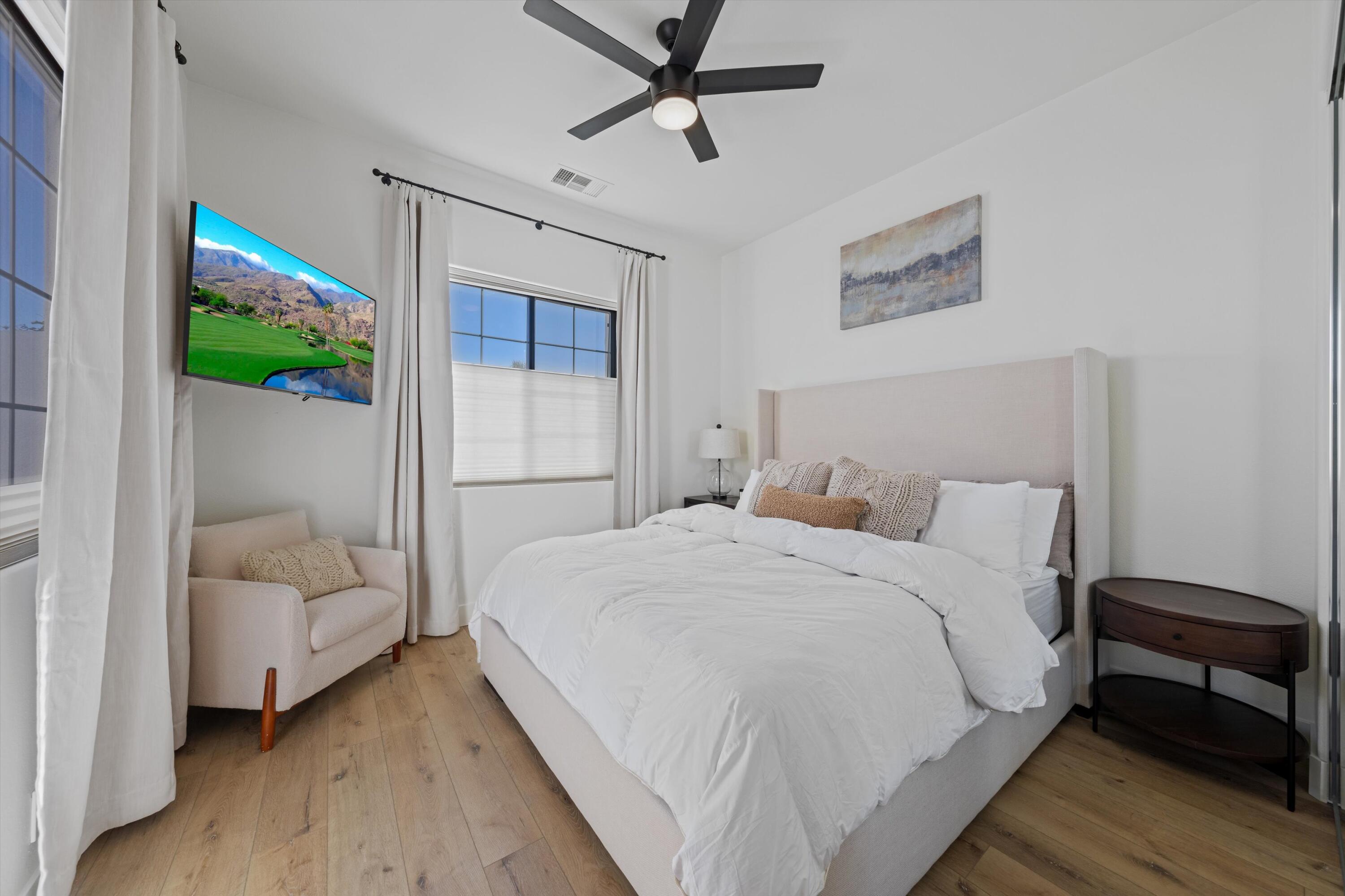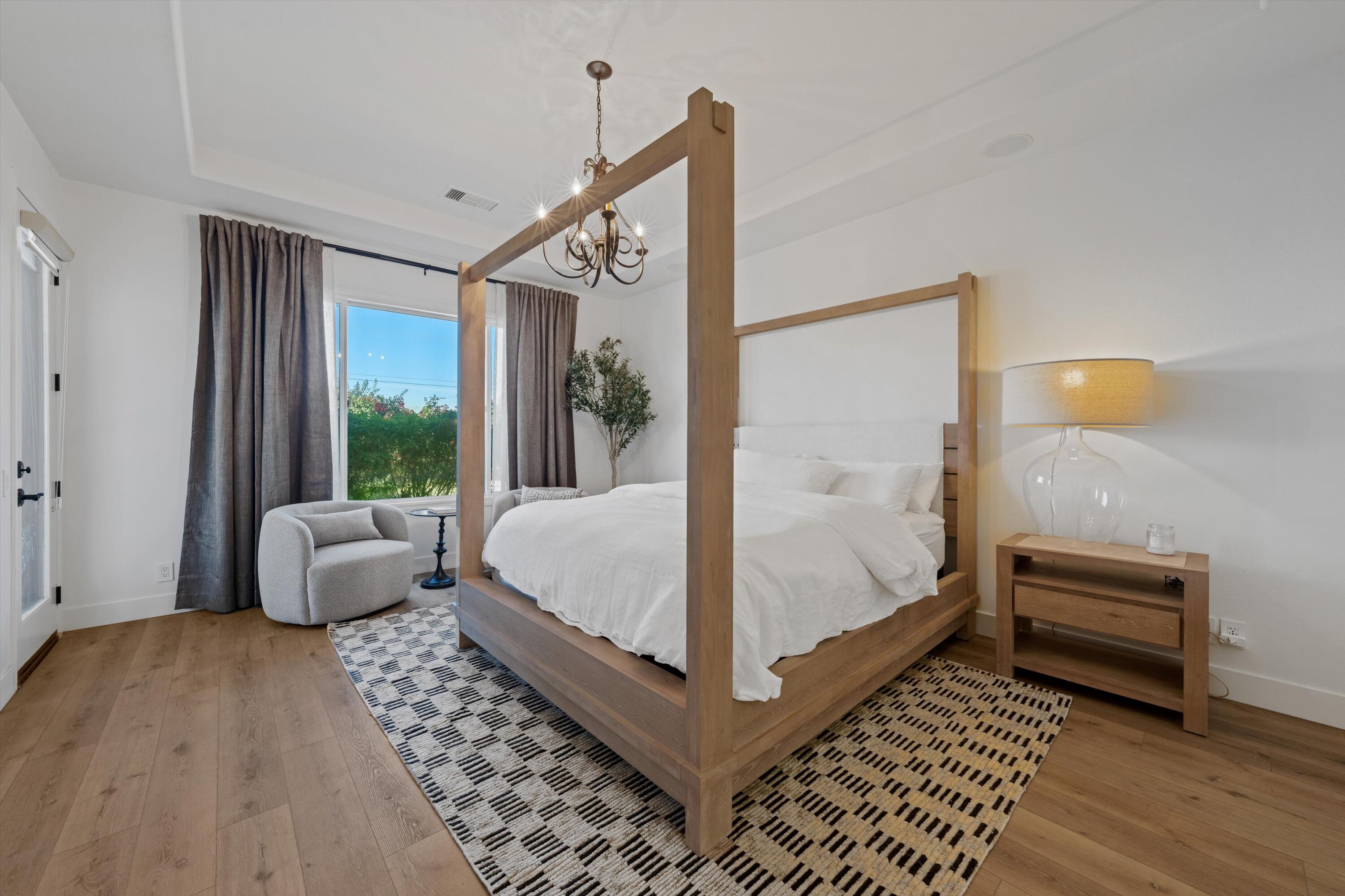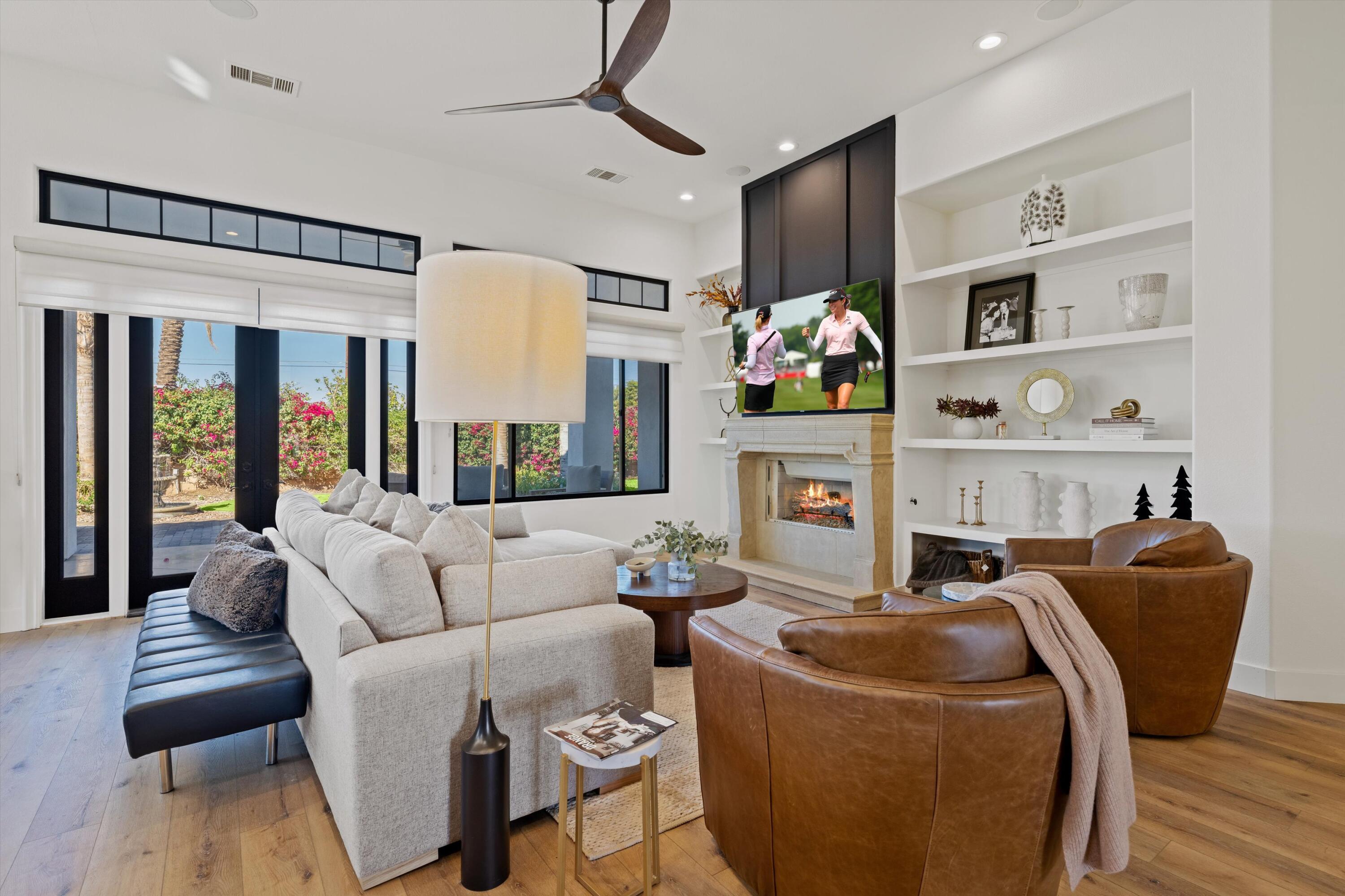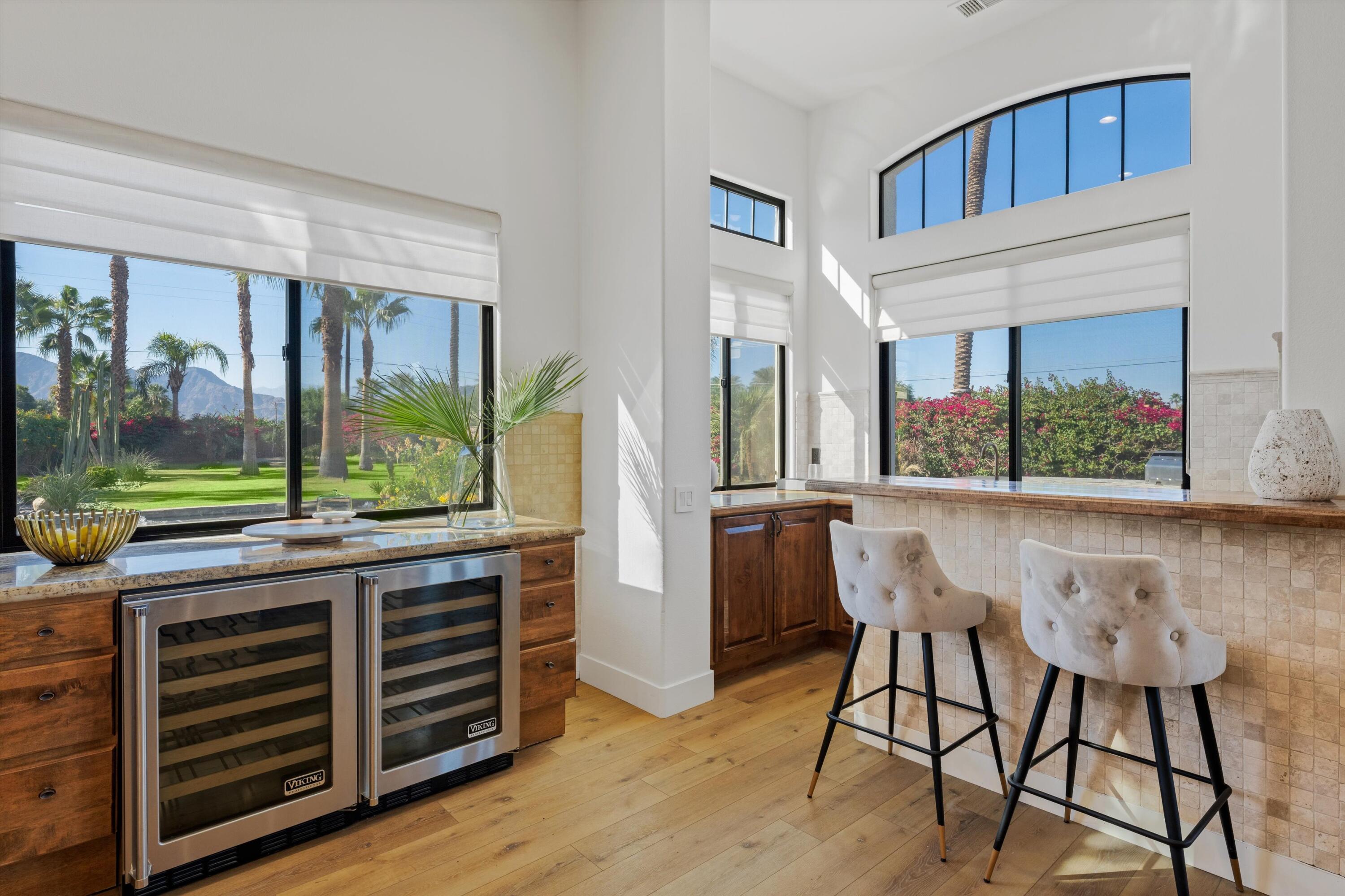 AVAILABLE now and through 2026! Call for summer rates. This immaculate Sedona model is turnkey furnished and has been gorgeously remodeled! Entering through the grand foyer with 16 ft ceilings, you are greeted by all new luxury vinyl wood floors, elegant lighting and exquisite decor throughout! The spacious den has French doors to the gorgeously landscaped backyard. The well appointed dining area leads to the upscale kitchen and family great room with fireplace and counter seating at the island and bar. All 3 bedrooms are ensuite with king size beds and smart TV's and 10 ft ceilings. The primary bedroom is privately located with its own access to the backyard for those desert night dips in the beautiful pool and spa. High end patio furniture, built in barbecue and magnificently expansive grounds only add to the beauty of this special home in Mountain View Country Club. EV hookup available in garage. Monthly rent amount varies depending on month. Security deposit is $7500 and cleaning fee is $350. Landlord pays all utilities ($300 cap on gas/electric) cable, internet, pool/gardner service and pest control. HOA dues included. Tenants pay nominal social membership transfer fee to use clubhouse, fitness center, pickleball/tennis courts, bocce ball, heated community pool and other amenities. Pets OK with owner approval and pet deposit.Interested in this Listing?