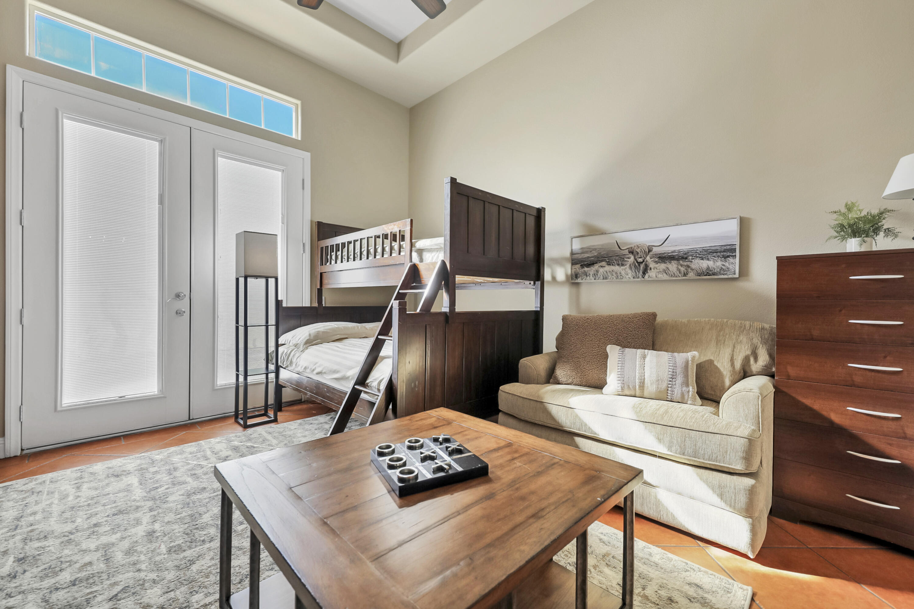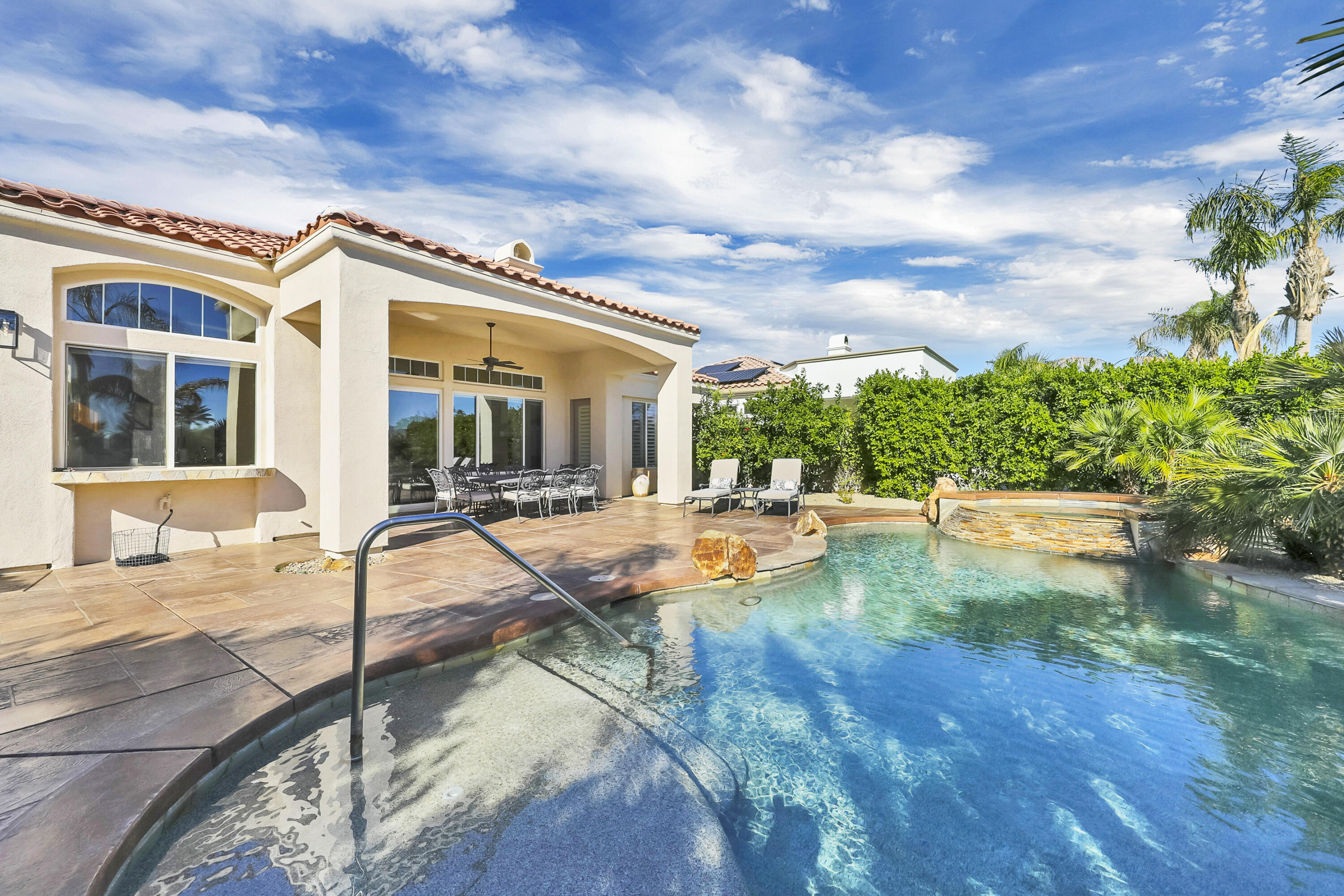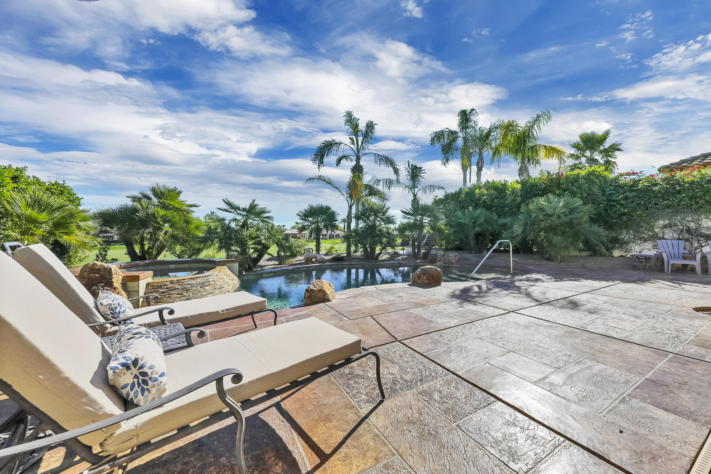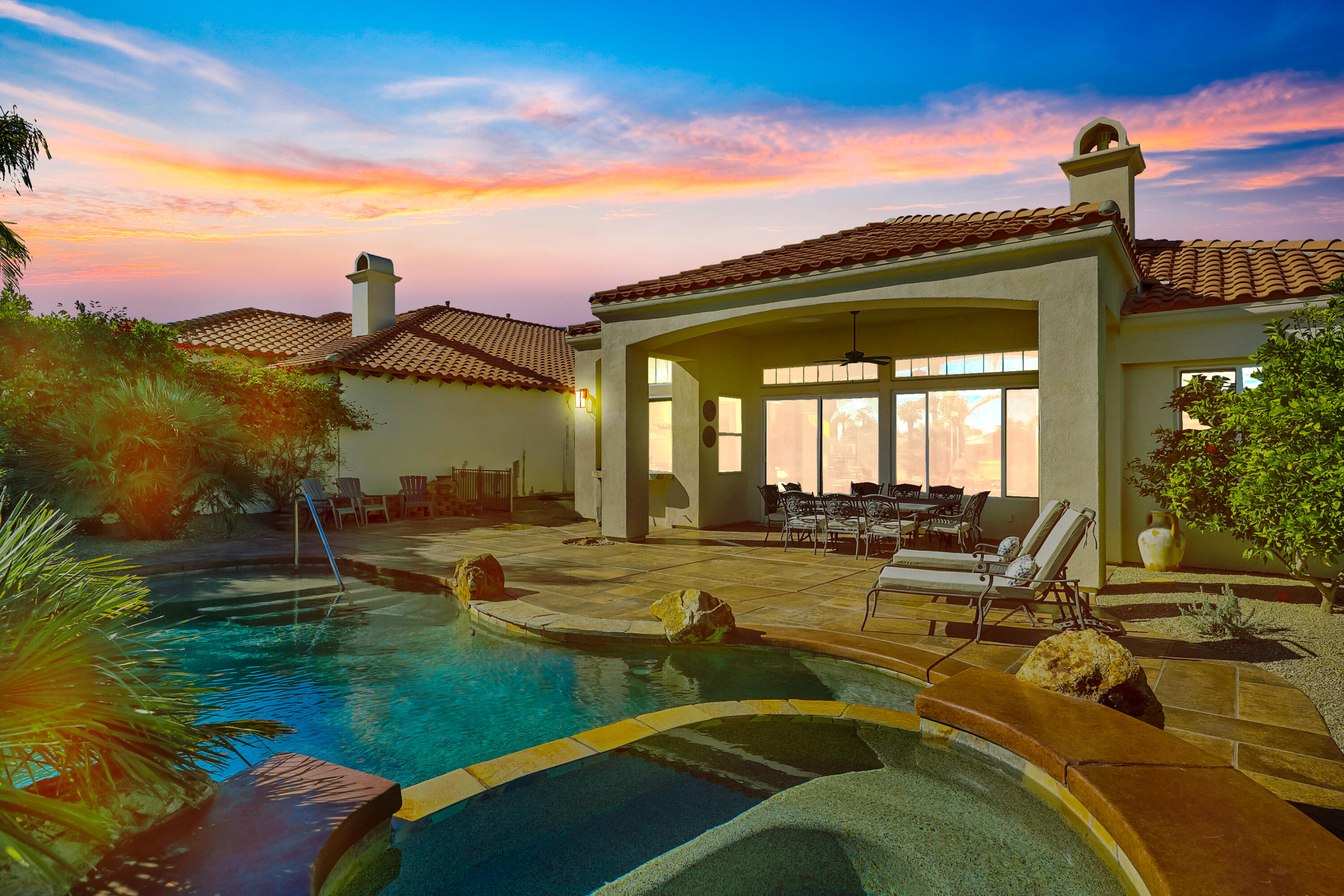 AVAILABLE FOR 2025 SEASON. This Sedona model home has been painted & renewed with new lighting fixtures, wood bedroom flooring and relaxed restoration hardware touches in decor. A comfortable relaxed vibe on an elevated lot overlooking the 5th. fairway & serene lake! Living and dining area & bar are all open to overlook the resort like back yard. Wake up to breath taking colorful sunrises and occasional hot air balloons in the morning skies. The kitchen is well equipped for your culinary & entertaining needs. The two guest ensuites are on one side of the floorplan and the Primary is on the opposite side of the home in the rear' offering guest privacy. Primary suite has it's own door to the pool & spa areas, oversized bath & separate shower, dual vanities and large closet space. To enhance the guest space is a den with more sleeping space for the occasion of extra guests. The tenant transfer fee allows the tenant's use of the club's amenities to include wellness & fitness center, oversized heated pool for laps & spa, bocce all, pickle ball, & tennis; as well as fine dining and casual dining at the clubhouse. Our facility also includes our own Starbuck's coffeebar to socialize & relax in the shade before or after a workout or taking a break in a walk. A 4 mo. rental is preferred.Interested in this Listing?