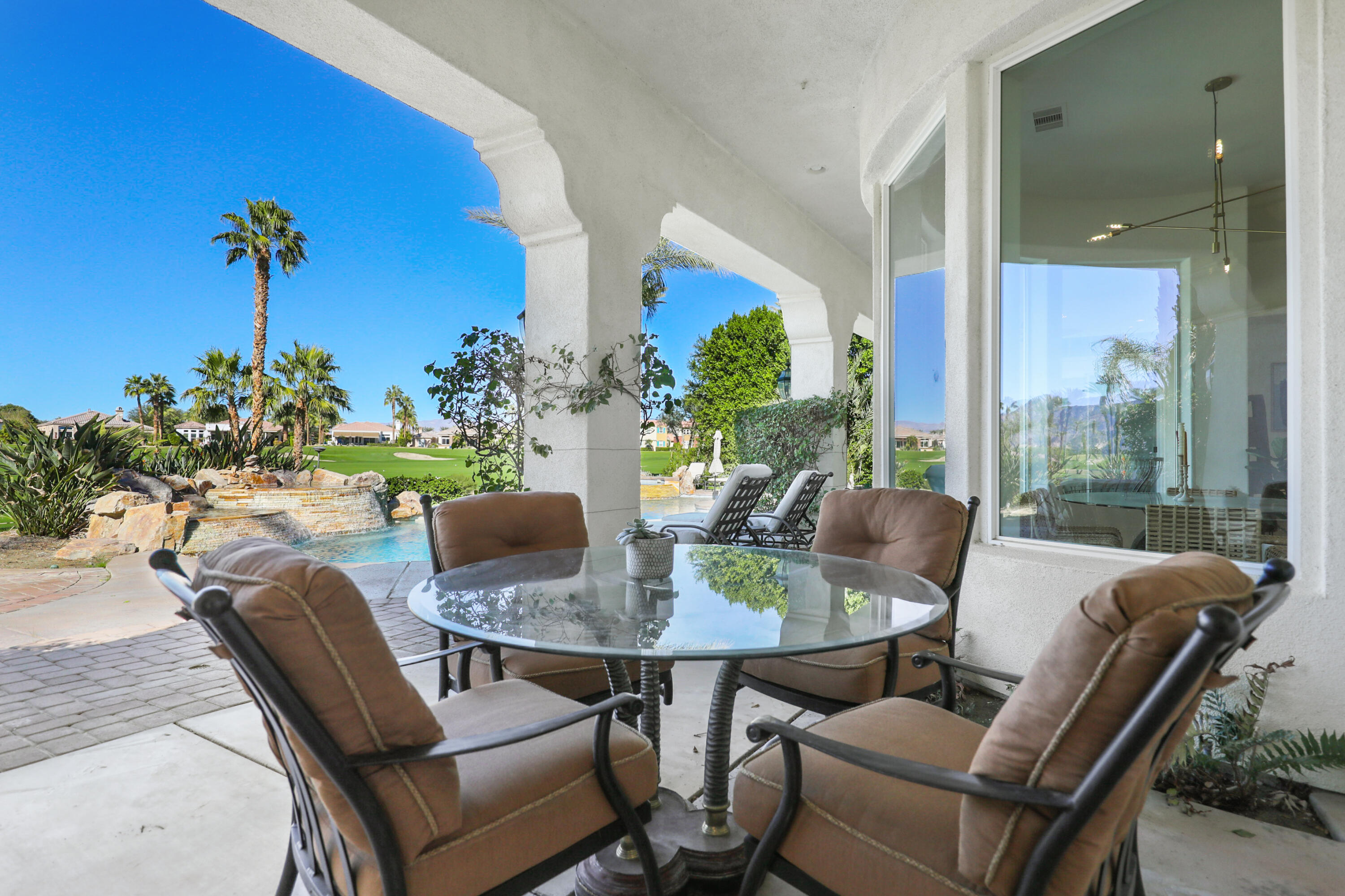 Available for a long term rental.Perfect vacation getaway. Home sits overlooking green on Mountain View golf course with stunning Mountain Views.4 bedrooms including the separate casita with private entry. Home has just finished an extensive remodel including floors, counter tops and more.Oversized great room plus media room and pool room make this the perfect place for your Palm Springs/Coachella Valley vacation.See attached floorplan.Interested in this Listing?