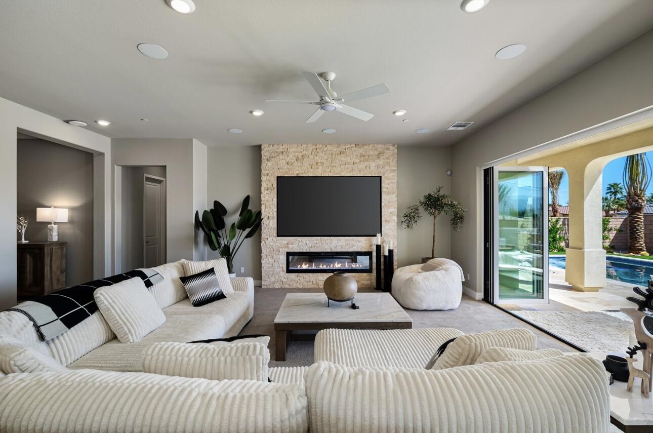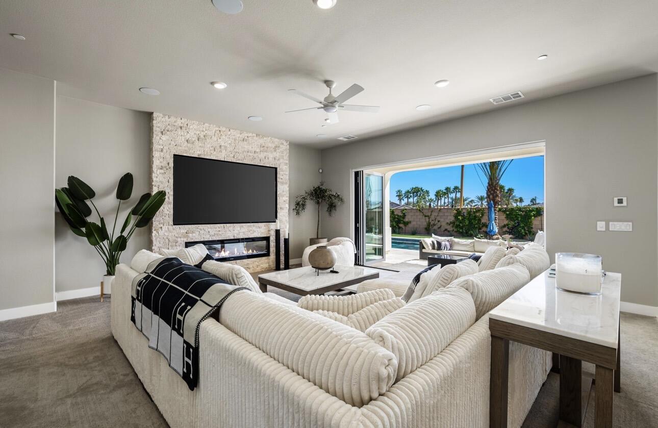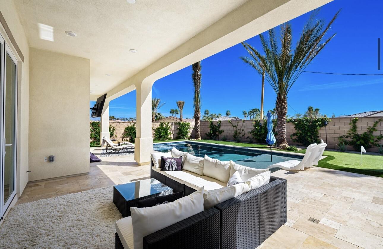 Home is available April 1, 2025.This noble estate home in the Diamante community offers a generous 3,381 sqft of open living space. Featuring 4 spacious bedrooms, 3.5 exquisite bathrooms, a private study, a crowd-enticing great room, and a sophisticated parlor. This estate showcases soaring 10-foot ceilings, creating an inviting ambiance. Embrace the unique desert atmosphere through a covered patio, with a soul-reviving pool and spa. For main events and annual festivals this home is the perfect destination, just a short bike ride down to Avenue 52 to The Empire Polo Fields entrance. Designed for energy efficiency, this home includes a tankless water heater and LowE windows, ensuring sustainability in the precious desert oasis. Attention is honored by thoughtfully curating an exceptional living experience, where luxury blends seamlessly into convenience for a memorable short-term stay. Presented with month to month or 6-month terms available. Important information to take into account when inquiring about this property are as follows. During winter months: Pool Heating Fee is $150.00 per day, Spa Heating Fee is $25.00 per day. Tenant is responsible for the gas bill. Full booked option available as well for April 2025 and for April 2026 at $25,000.00Interested in this Listing?