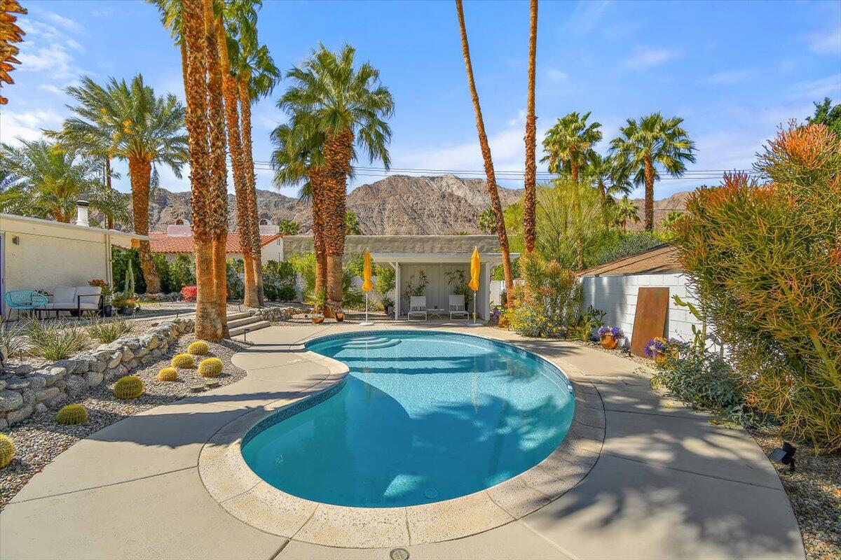 Gorgeous Mid Century Stunner with an open and spacious floor plan! This home offers 3 bdrms /2 bths and has every amenity possible for a perfect vacation. Located on an oversized lot with a pool to cool down and unwind in after a hard day of golfing or hiking. Within walking distance of the world renown Santa Rosa Mountains. Head over to Old Town La Quinta for some dining and shopping galore. Perfect spot if you are here to visit the tennis tournament or music festivals. Come join us and relax!Interested in this Listing?