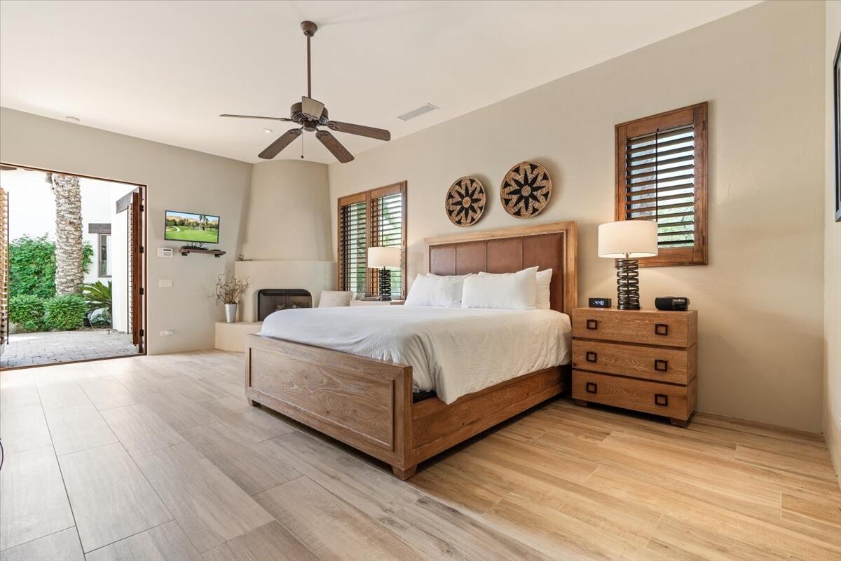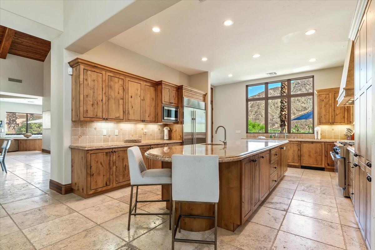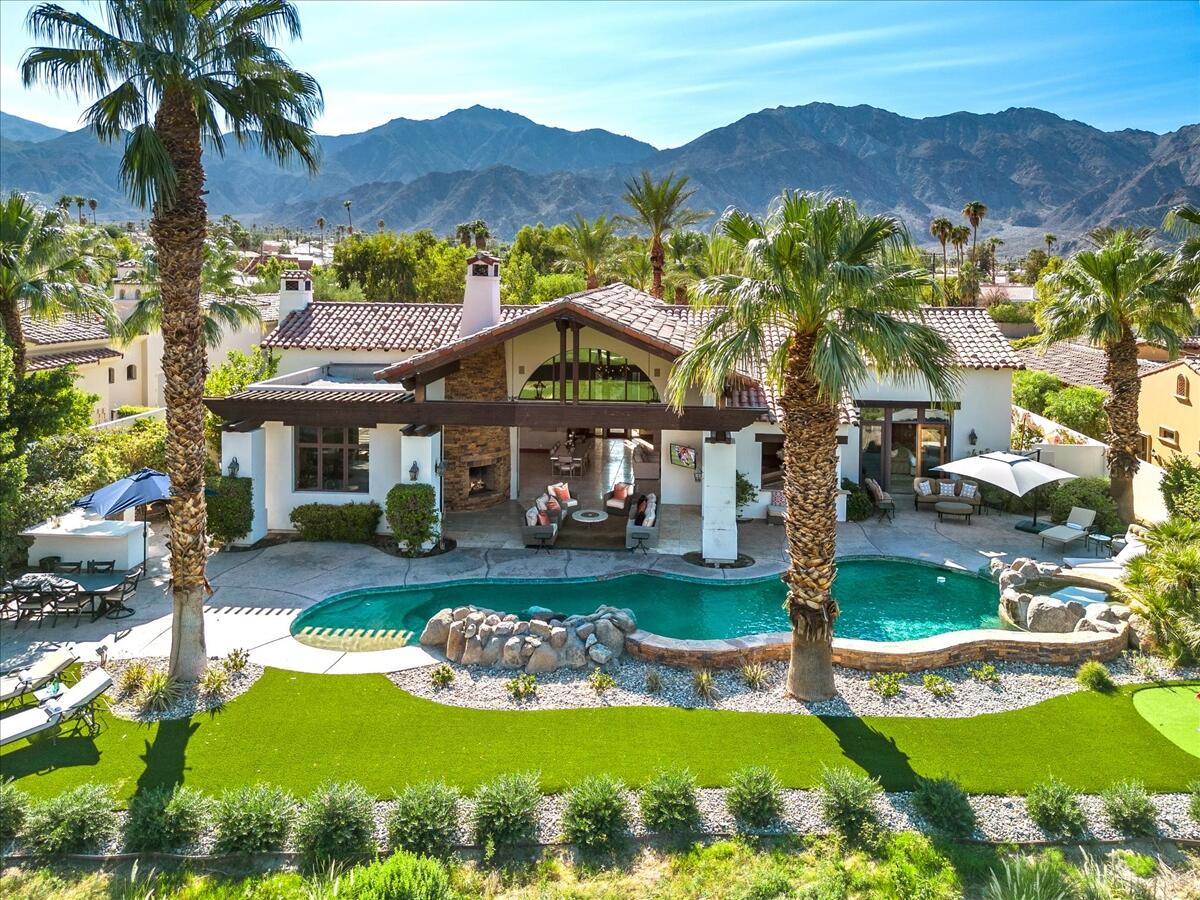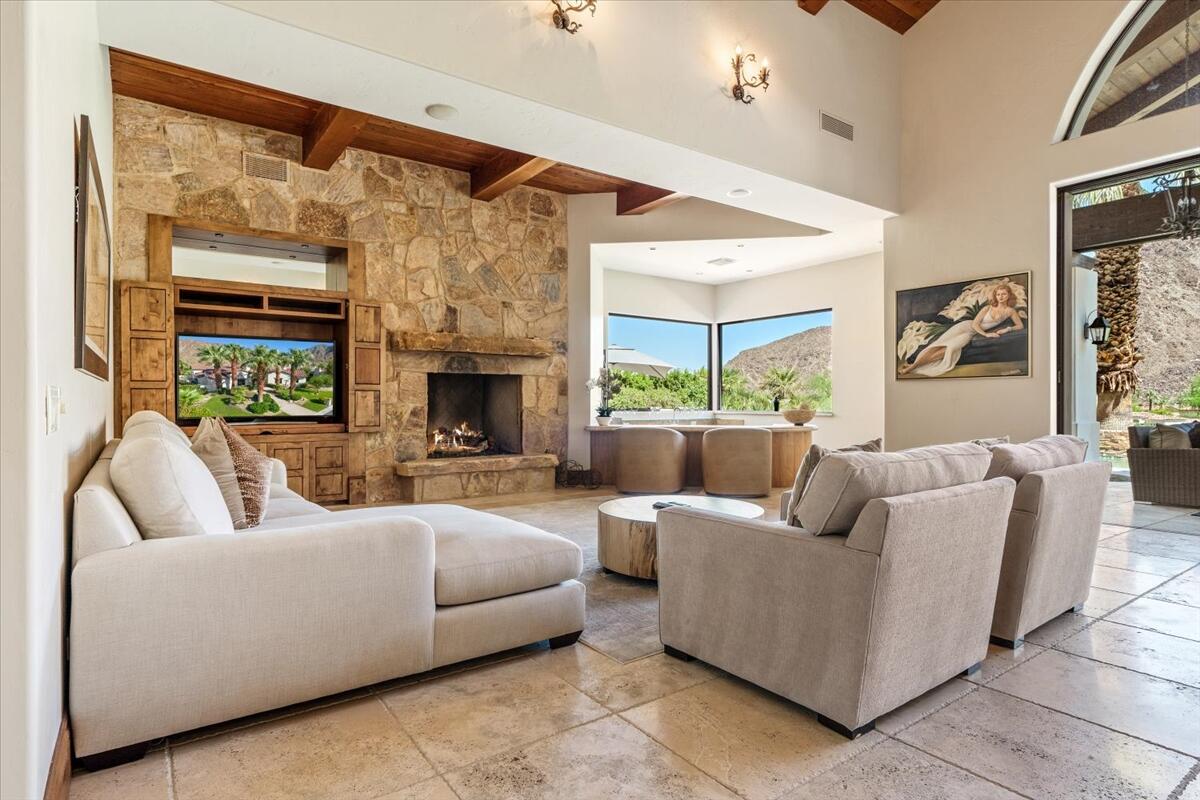 Sweeping views of the mountains and 12th fairway at the top of Tradition Golf Club. Charming Spanish Hacienda with putting green, pocketing doors and bar windows allowing fabulous great room indoor/outdoor entertaining. You'll be taken by the views, fountains and 4 stone fireplaces giving warmth and ambiance. Gourmet kitchen with oversized granite island, stainless appliances and custom cabinets with conditioned wine room just steps away. Cozy family room with fireplace opens up to a side courtyard with large outdoor fireplace that could be used for large dinner parties. Oversized pool and spa with rock boulder waterfall enhance the outdoor patio and BBQ experience. Two master suites with dual closets and dual vanities. Spacious office with courtyard views and extra bonus room that would make a great gym or bunkroom for grandkids. Grand casita with fireplace and en-suite bath. Updated and Furnished per inventory.Interested in this Listing?