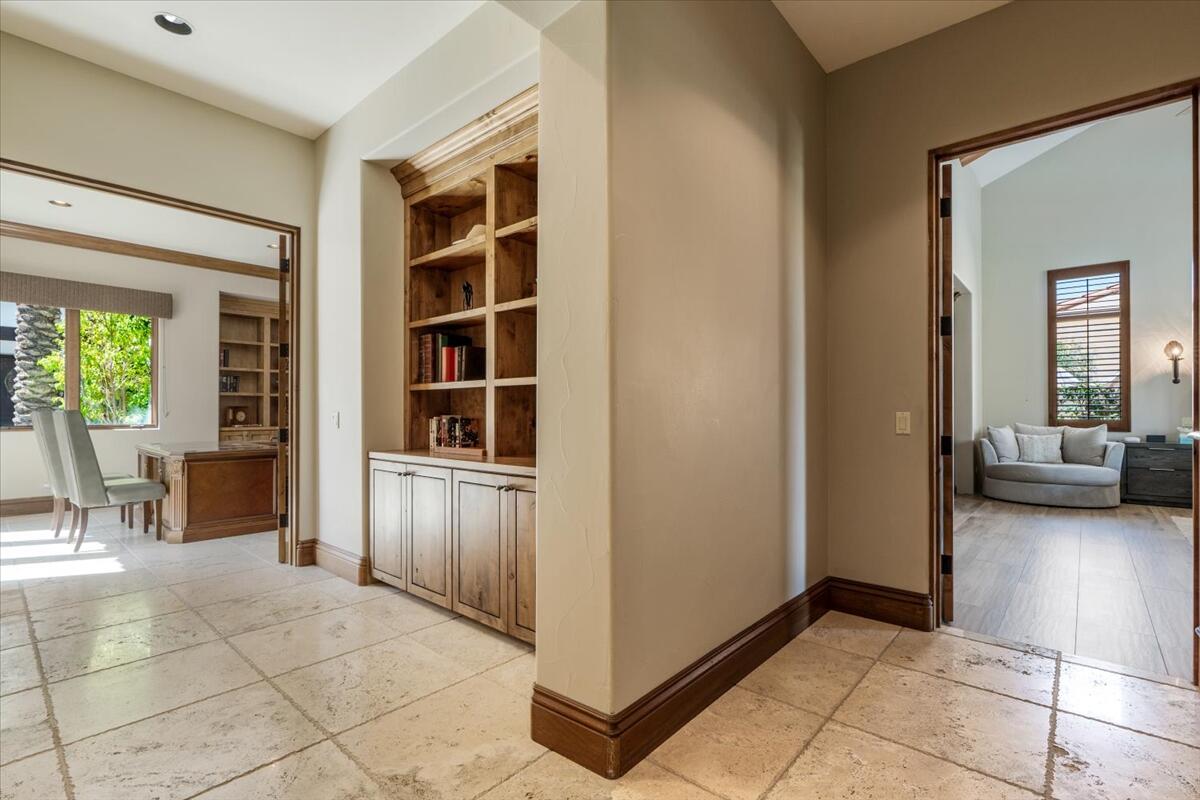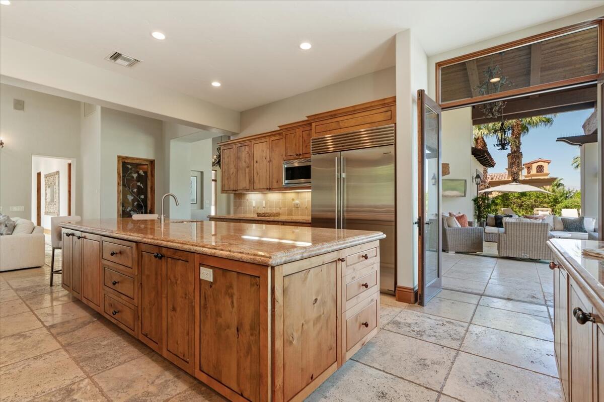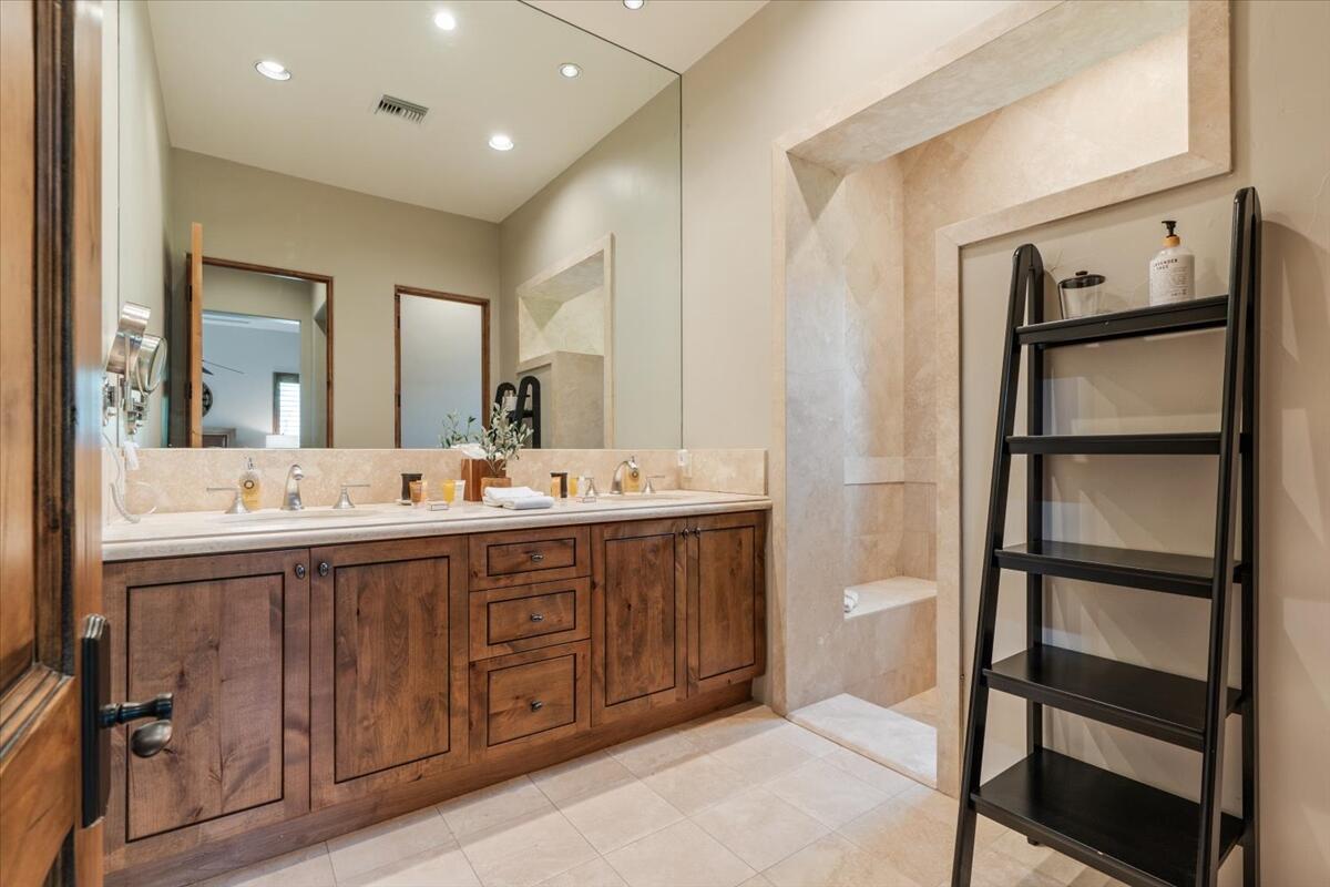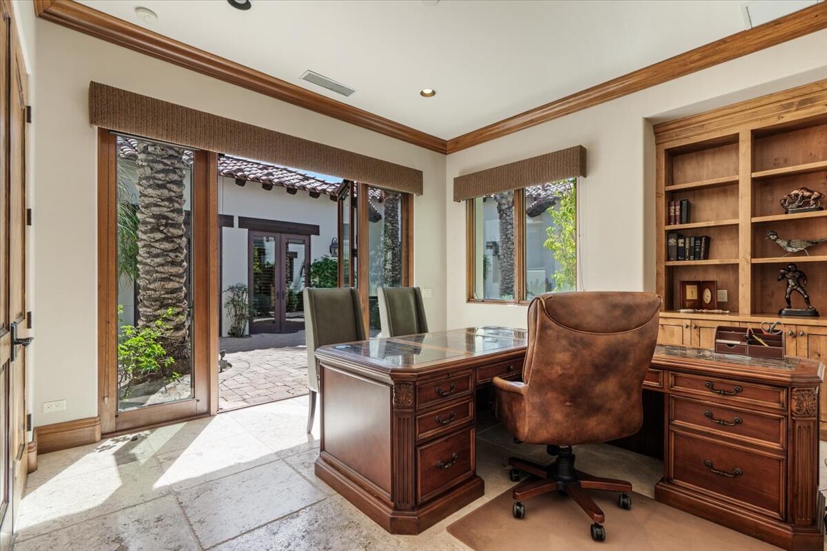 Sweeping views of the mountains and 12th fairway at the top of Tradition Golf Club. Charming Spanish Hacienda with putting green, pocketing doors and bar windows allowing fabulous great room indoor/outdoor entertaining. You'll be taken by the views, fountains and 4 stone fireplaces giving warmth and ambiance. Gourmet kitchen with oversized granite island, stainless appliances and custom cabinets with conditioned wine room just steps away. Cozy family room with fireplace opens up to a side courtyard with large outdoor fireplace that could be used for large dinner parties. Oversized pool and spa with rock boulder waterfall enhance the outdoor patio and BBQ experience. Two master suites with dual closets and dual vanities. Spacious office with courtyard views and extra bonus room that would make a great gym or bunkroom for grandkids. Grand casita with fireplace and en-suite bath. Updated and Furnished per inventory.Interested in this Listing?