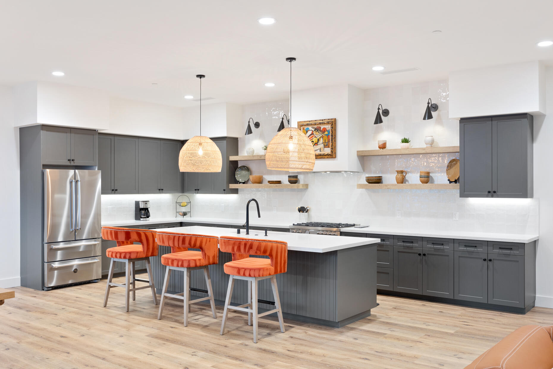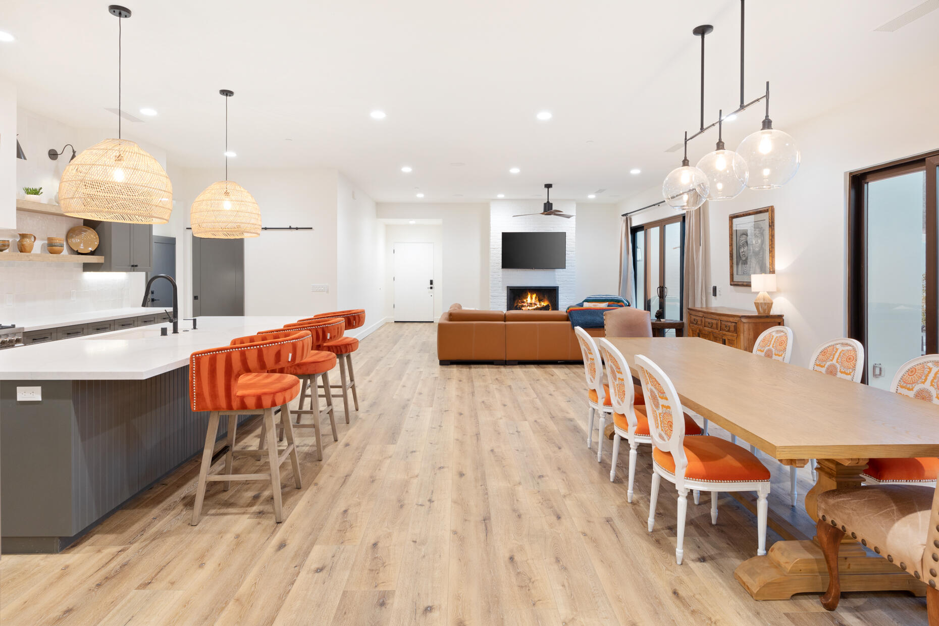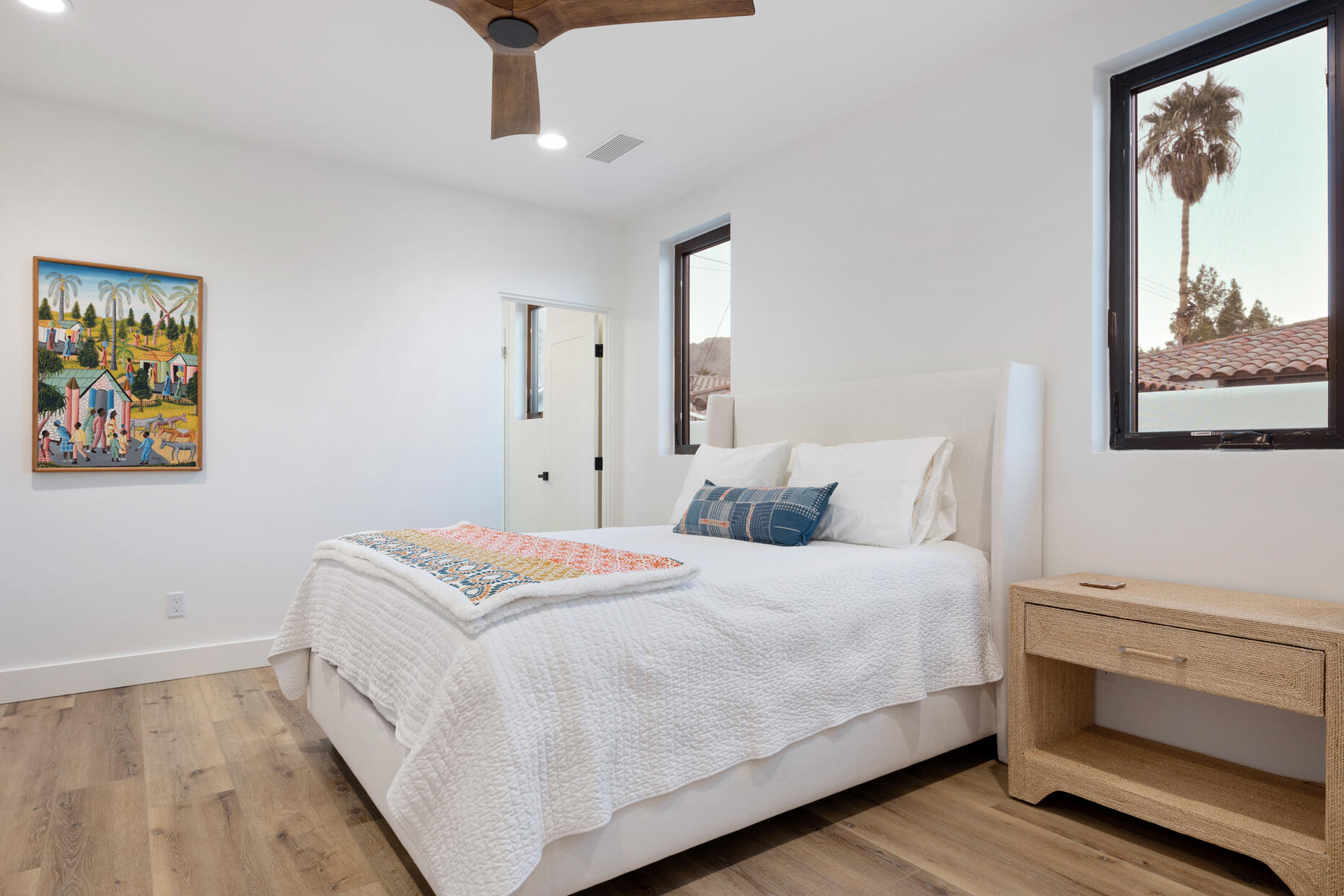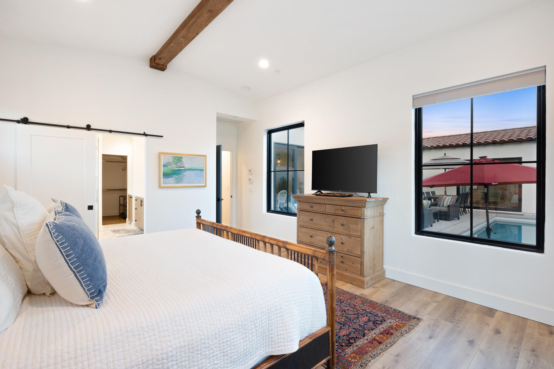 Make your desert stay memorable in this exquisite new modern hacienda construction on a corner lot high in the Cove. Completed in Oct 2022, this 2798 SqFt home offers 4 bedrooms, 4 1/2 baths, an open concept great room and gourmet kitchen, a laundry room with storage, and a powder room/mud room. The outdoor living space is perfect for entertaining with an outdoor shower, gas BBQ, outdoor fireplace with TV, and a salt water pebble tec pool and spa with LED mood lighting. Two of the bedrooms have king-size beds and one has a queen bed. All bedrooms are en suite, and the primary bathroom features a relaxing soaking tub. The Great Room, designer kitchen and dining room all have high ceilings, surround sound and a large dining table that can seat up to 10 people. The attached Casita, which opens up to the pool, has its own entrance and features 450 SqFt of living space with a king-size bed, a sitting area, a kitchenette with beverage fridge, sink, and coffee maker. On Demand water heater, filtration water system on all faucets, surround sound, Eero Mesh Wi-fi, Ring camera, automatic security lighting, landscape lighting, and a privacy wall around the entire perimeter of the property are some of the outstanding features this home offers.Note: The private entry courtyard with seating was completed after the pictures were taken.Bi-weekly house cleaning, pool cleaning and landscaping included.Interested in this Listing?