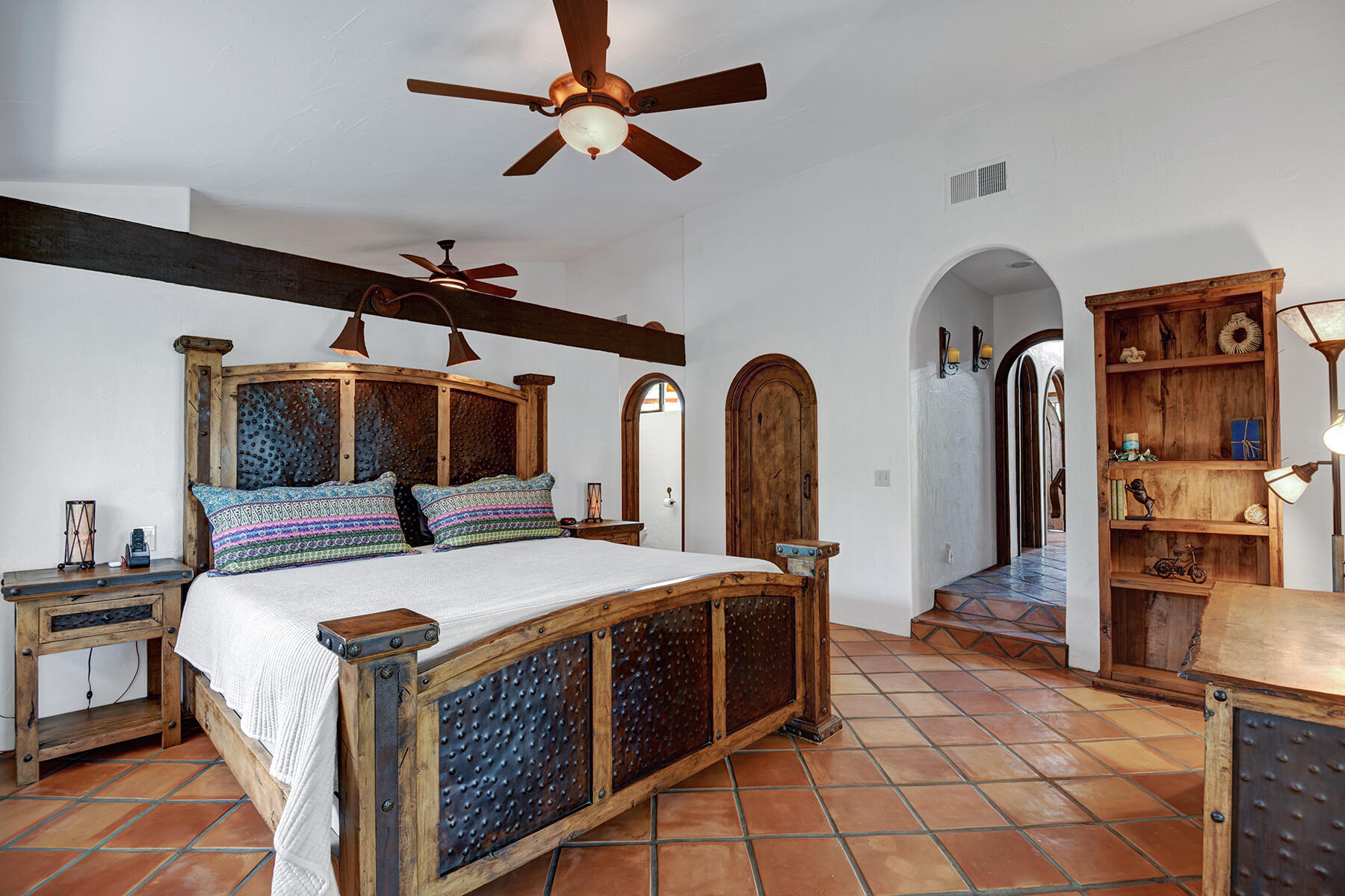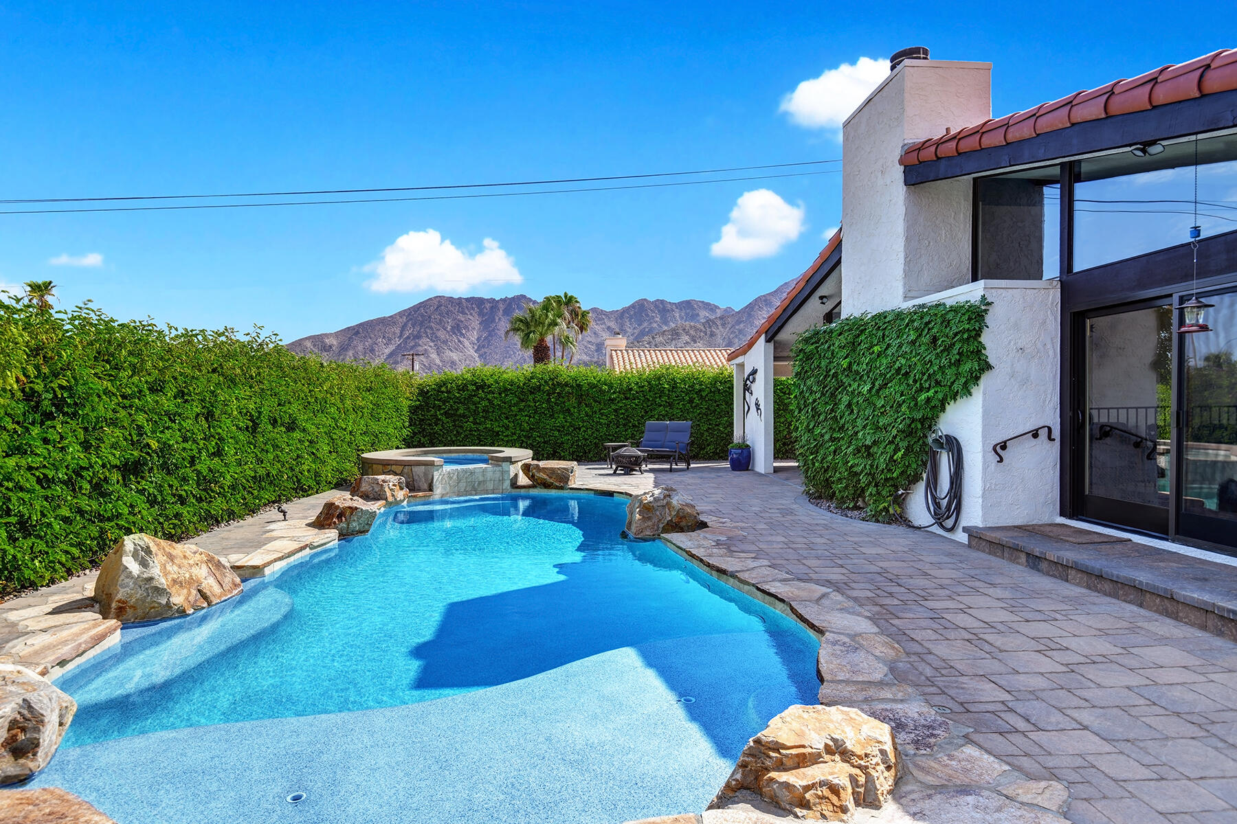 This fully furnished Spanish-style retreat boasts breathtaking mountain views and abundant natural light. The open floor plan features high vaulted ceilings, a step-down living room, and beautiful artisanal tile work throughout. The gourmet kitchen is fully stocked with appliances and includes a bar with seating for four. The master bedroom offers direct access to the rear patio, while the master bath exudes rustic Spanish charm with an oversized shower and dual sinks. Step outside to a private oasis with a pebble tech pool and spa, perfect for relaxation. The backyard includes a dining area with a built-in fire pit and a second smaller fire pit for cozy evenings under the stars, all while enjoying the stunning mountain backdrop. Located near Old Town La Quinta, this home is just minutes from delicious restaurants and quaint shops, offering the perfect balance of comfort and convenience. Experience desert living at its finest in this beautiful home!Interested in this Listing?