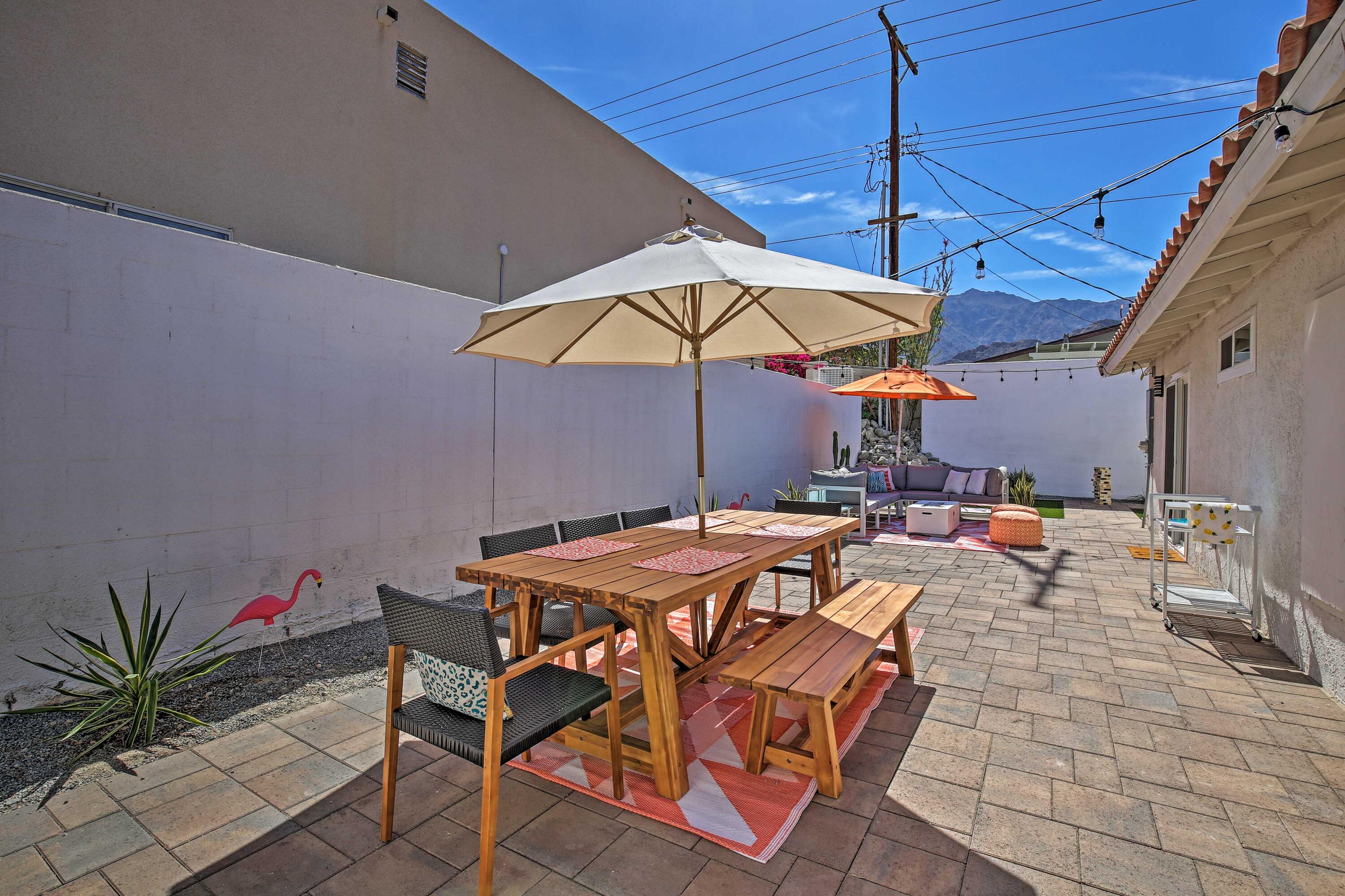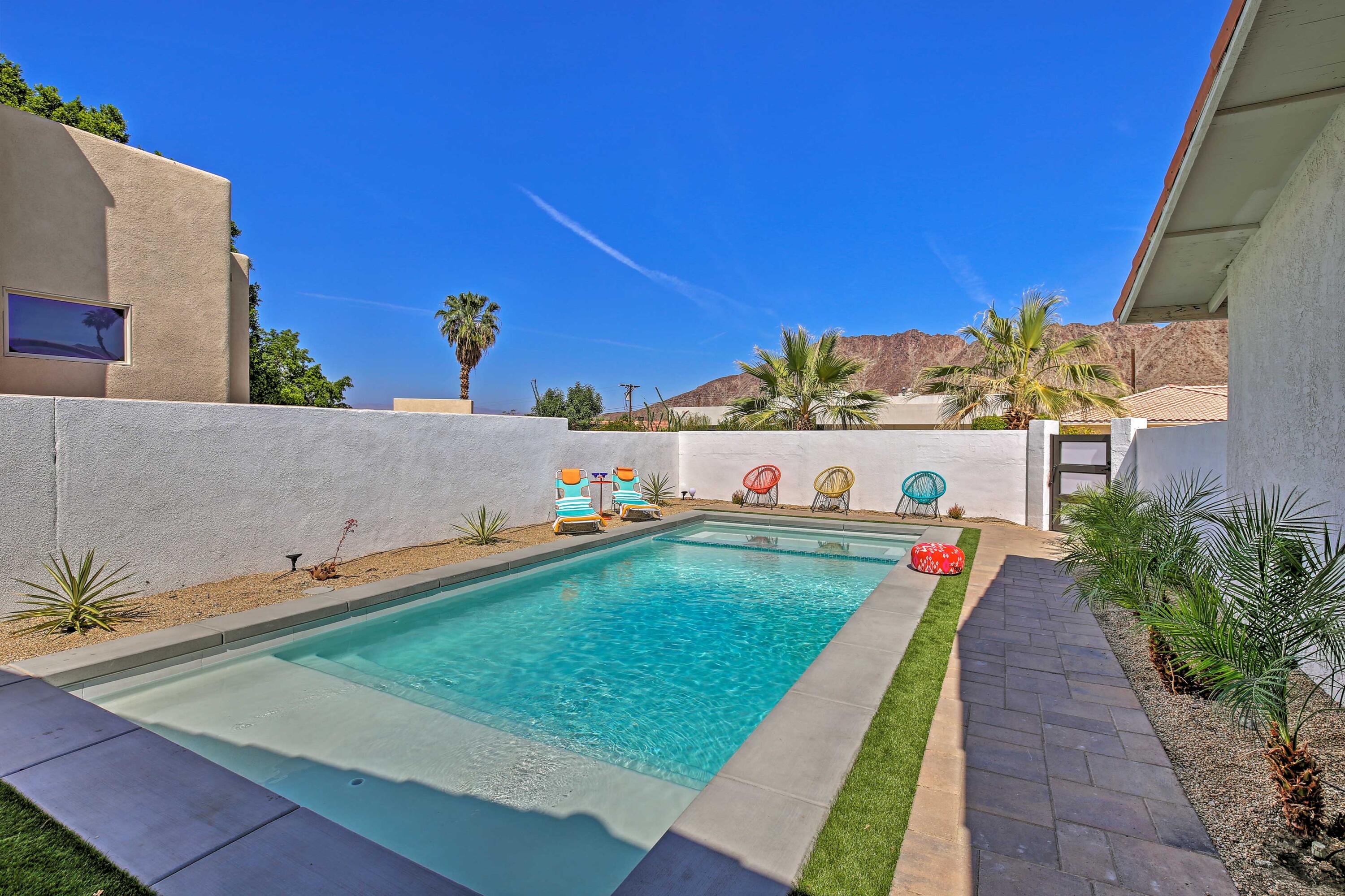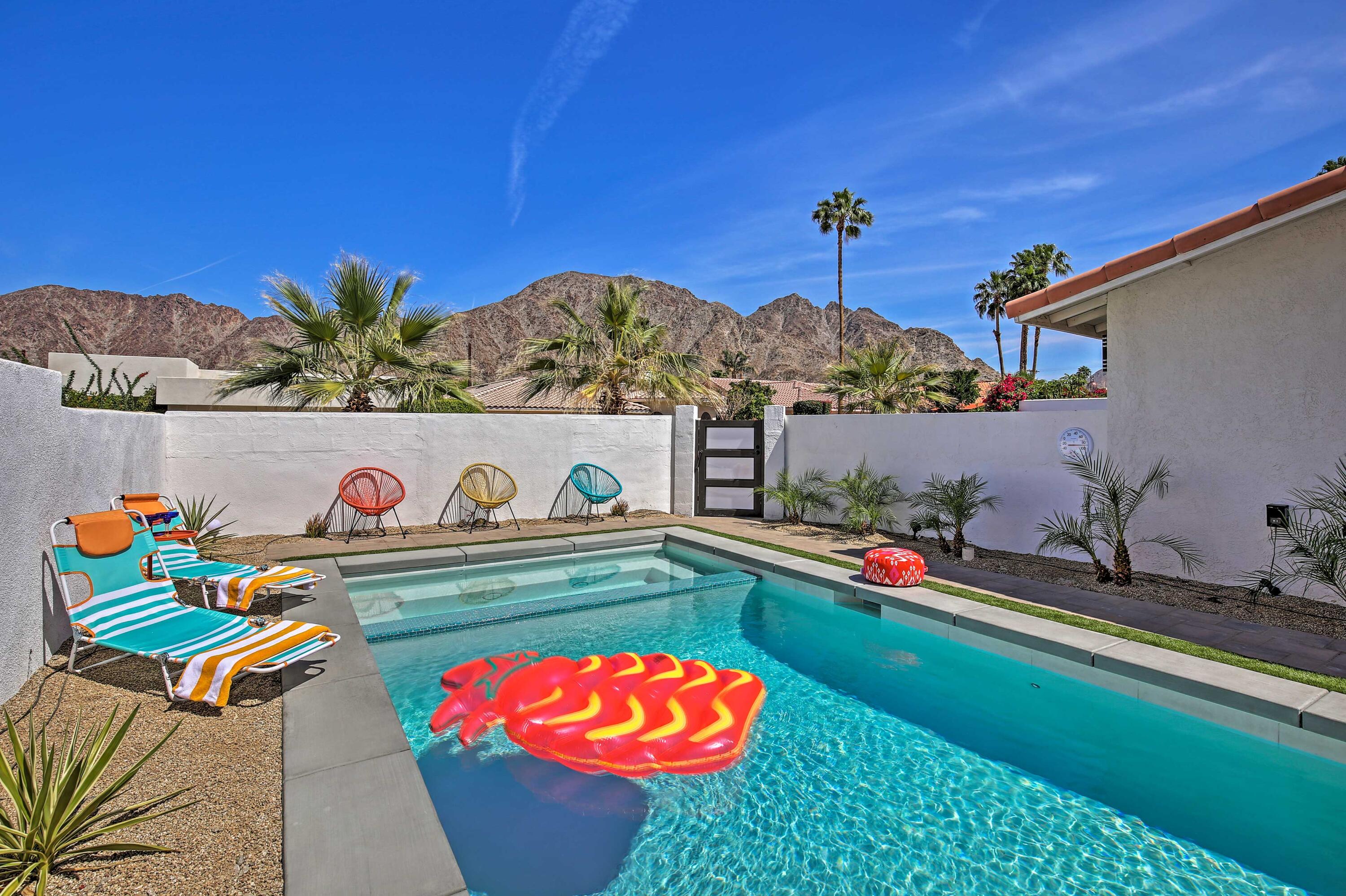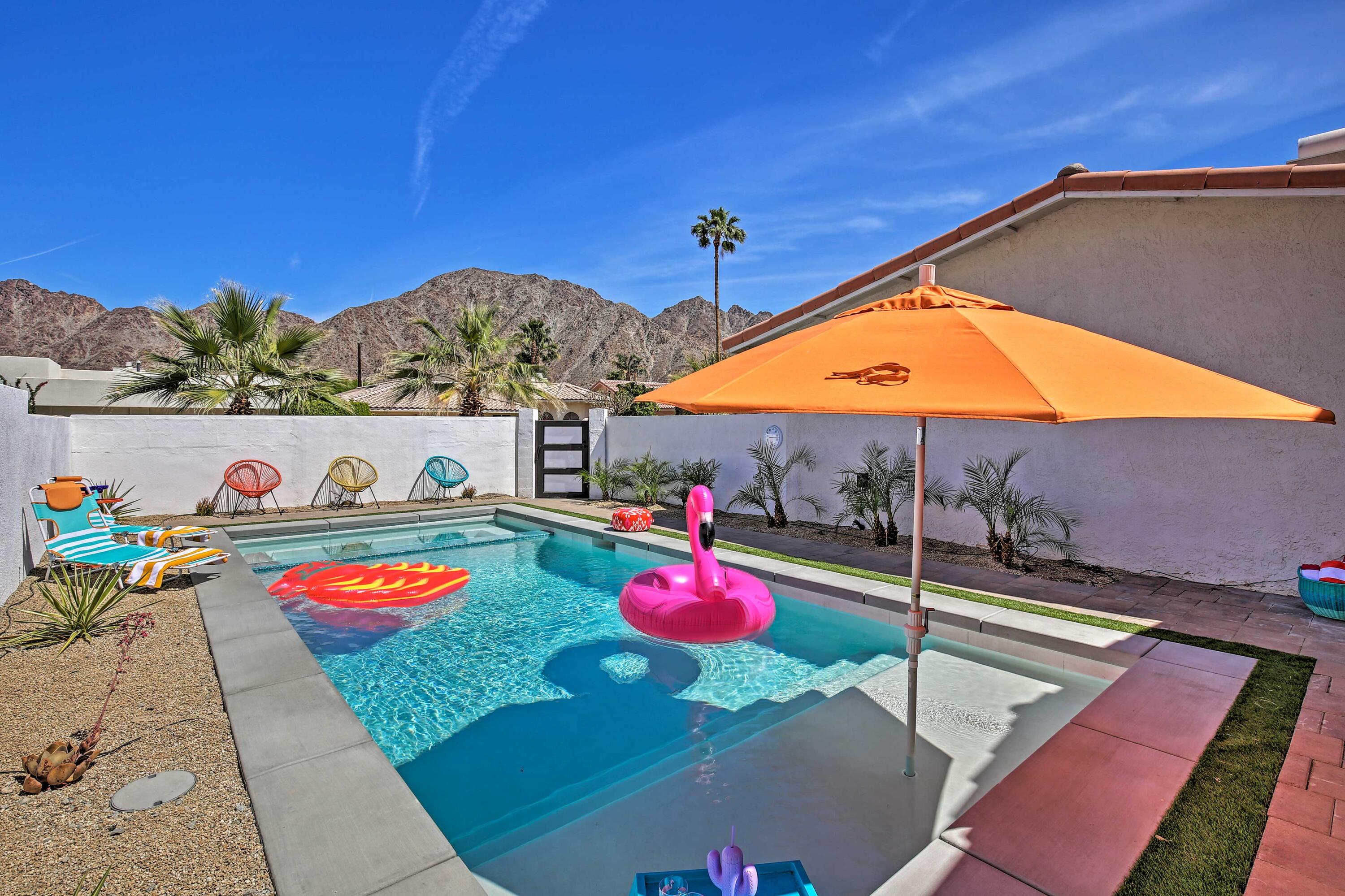 Welcome to our vibrant 3-bedroom, 2-bathroom retreat in La Quinta! This chic home features a private pool, a charming backyard patio, and a fully equipped kitchen. Enjoy the colorful decor, airy living space, modern amenities, and the convenience of in-home laundry facilities. Located in a tranquil neighborhood near top attractions like golf courses, hiking trails, and the invigorating Old Town La Quinta. Our oasis offers the perfect blend of relaxation and adventure. High-speed Wi-Fi and a flat-screen TV ensure entertainment options for all. Book now for an unforgettable stay!Interested in this Listing?