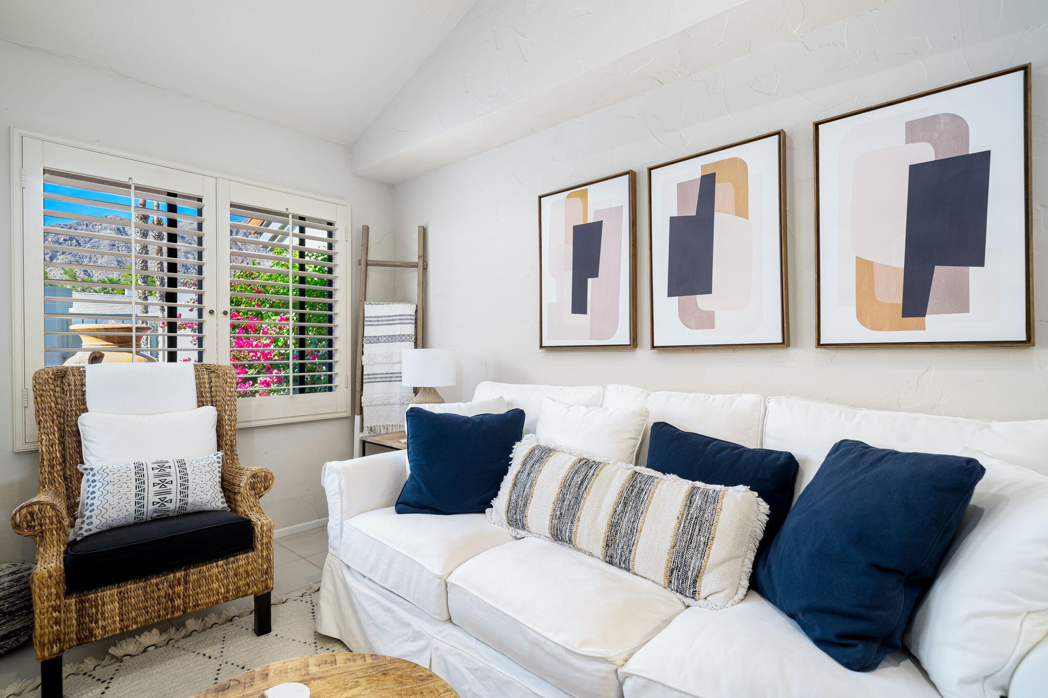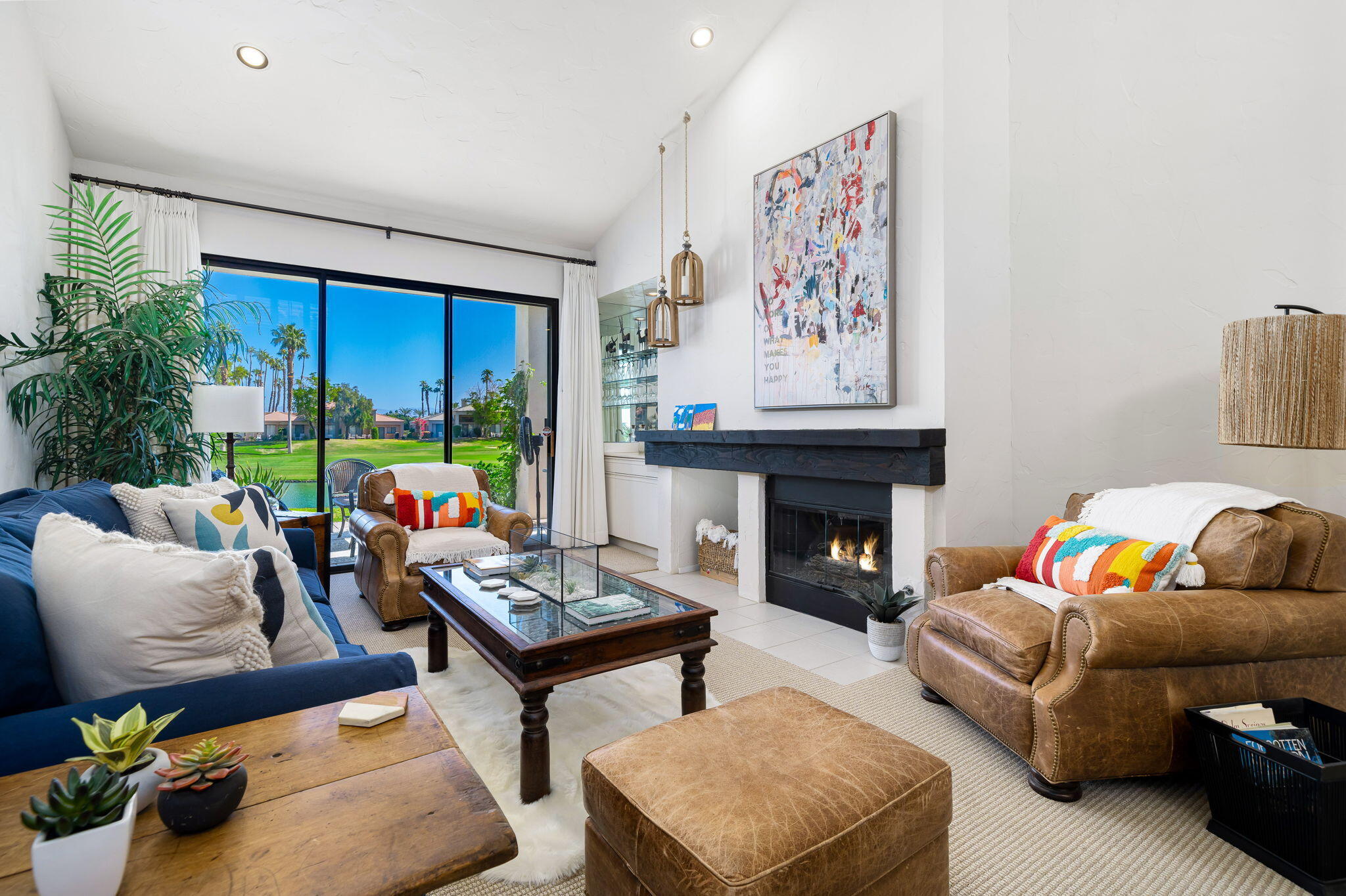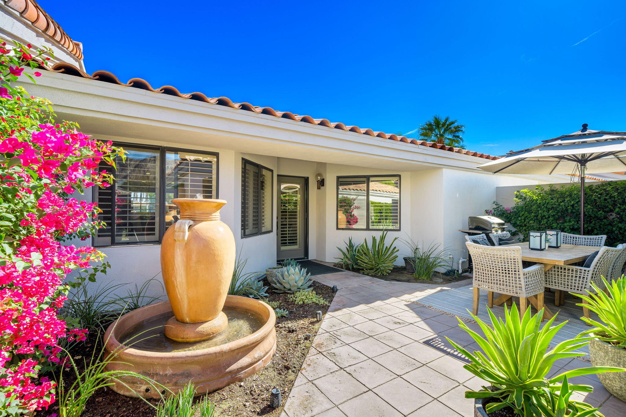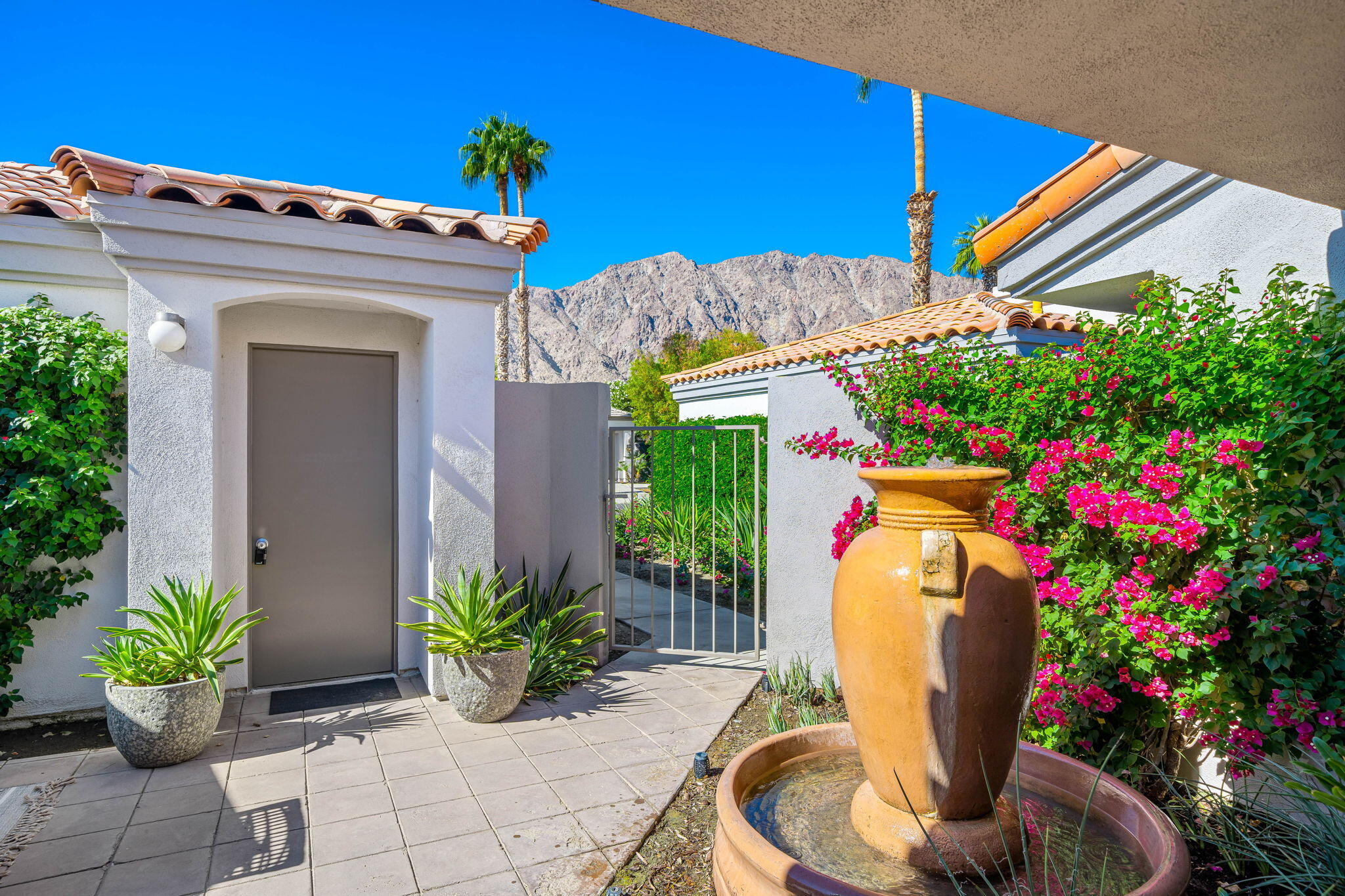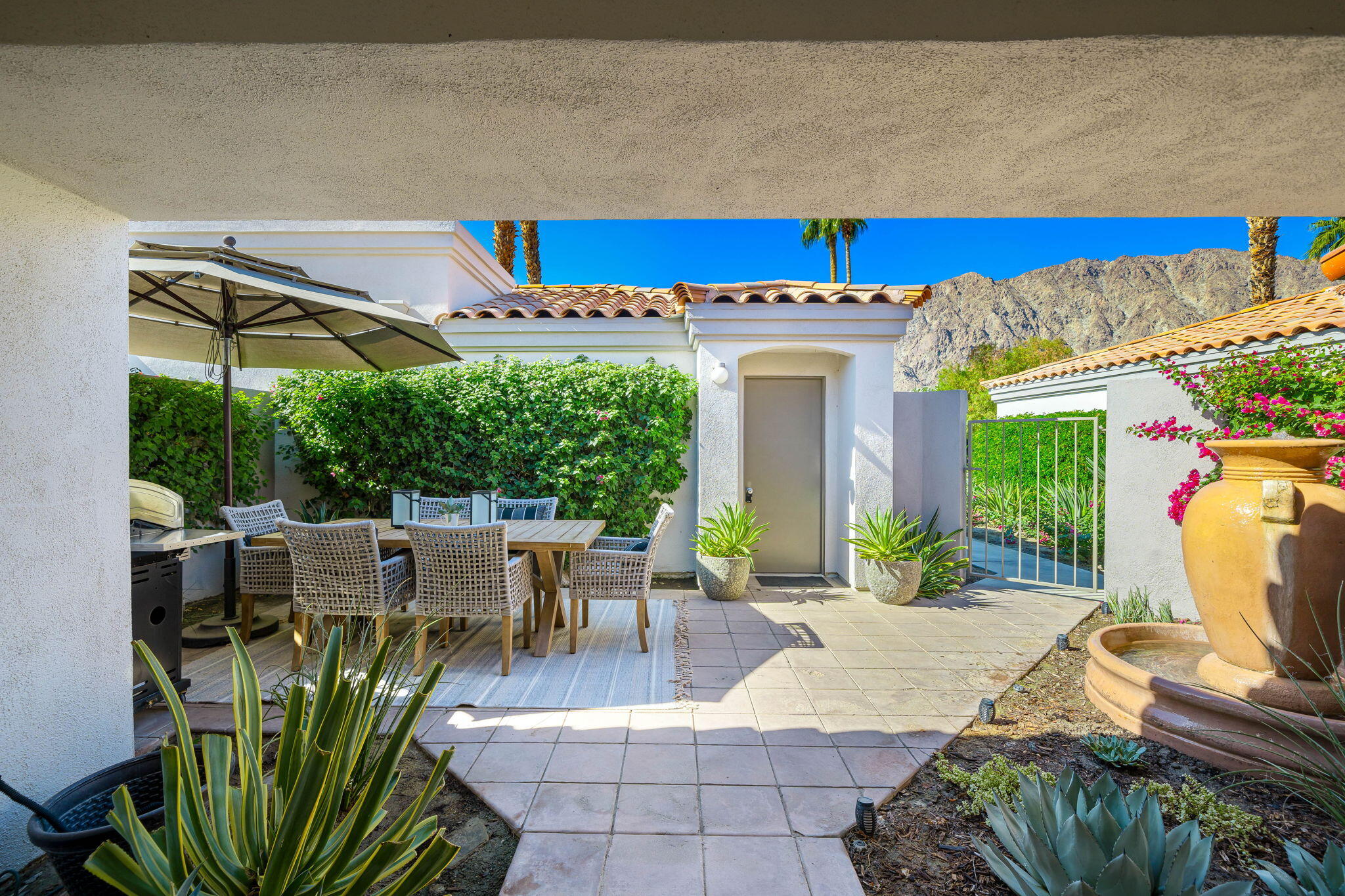 Available for the season. Welcome to your dream getaway nestled on the 7th fairway of the prestigious Arnold Palmer Private Golf Course! This charming 2-bedroom, 2-bath Condo boasts breathtaking views of the Fairway, Lake and Mountains making it a perfect retreat for relaxation and entertainment.As you arrive, you'll be greeted by a private gated courtyard featuring a tranquil fountain, outdoor dining for 6, and a convenient BBQ grill--ideal for al fresco meals. Step inside to a bright and airy open floor plan full of natural light, thanks to the soaring vaulted ceilings. The inviting living room offers a cozy fireplace and a wet bar, creating a perfect setting for unwinding after a day on the course and Dining area comfortably seats 4 and sliding doors that open to the patio, enhancing the seamless indoor-outdoor flow. The well-appointed Kitchen showcases custom cabinetry, modern appliances and a breakfast counter for casual dining. Adjacent to the kitchen, you'll find a cozy den complete with a TV. The Primary Suite includes a King-size bed and 2 closets, 2 sinks and large Shower. The Guest bedroom is warmly appointed with two twin beds and 2nd bath. Laundry inside. The Private Patio is complete with a Firepit and stunning views of the Lake and Mountains. Community pool is just steps away. Conveniently located minutes from the exciting American Express PGA golf tournament, Paribas Tennis, Shopping & Dining options in Old Town La Quinta.Interested in this Listing?
