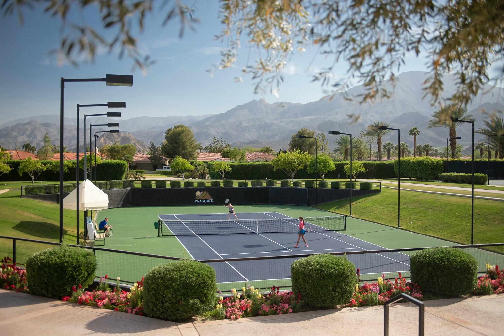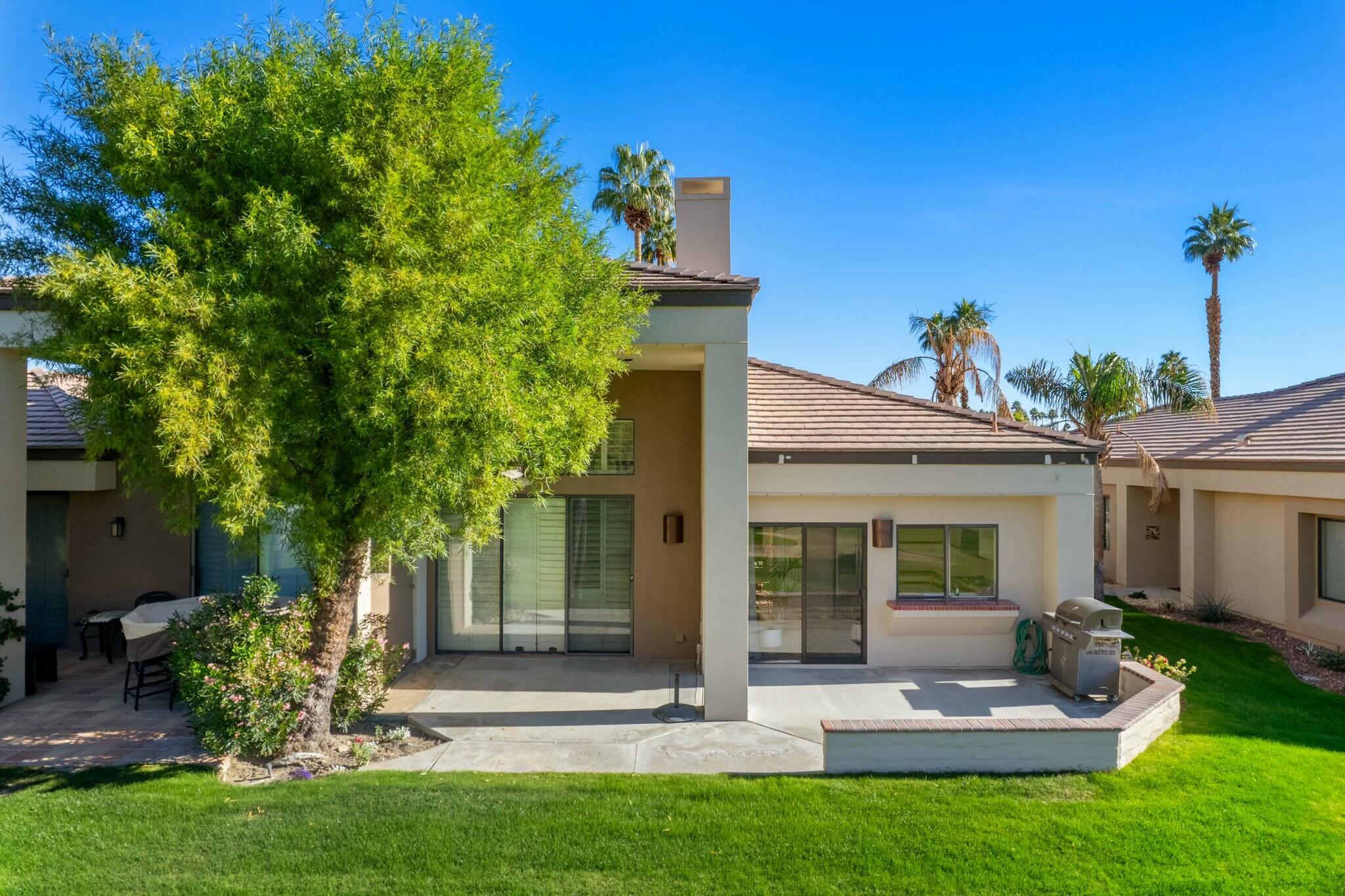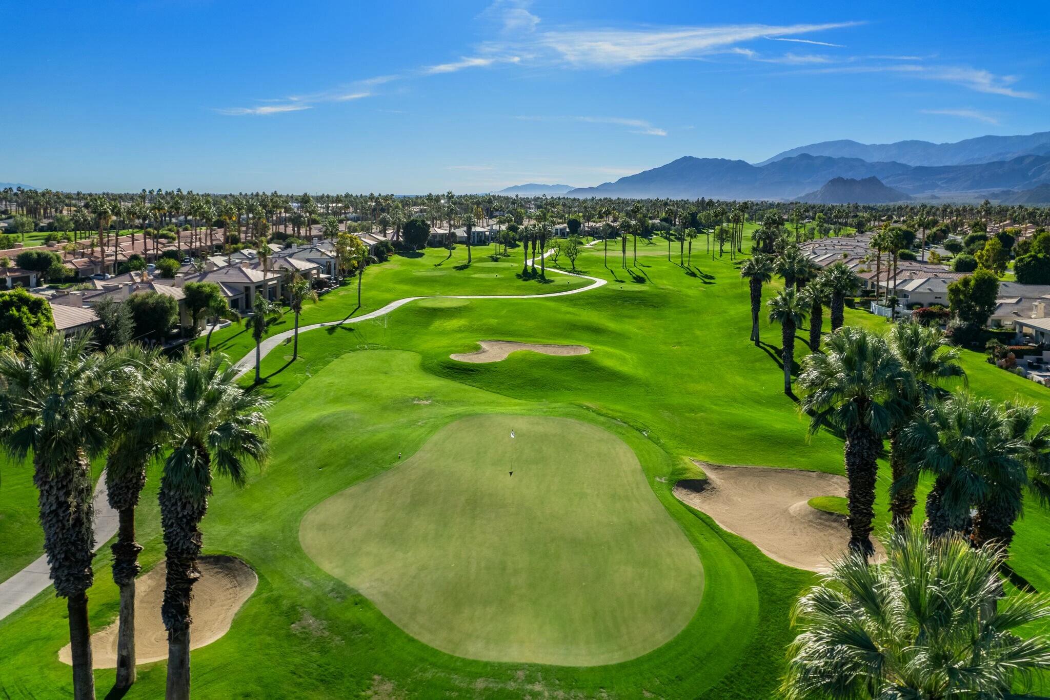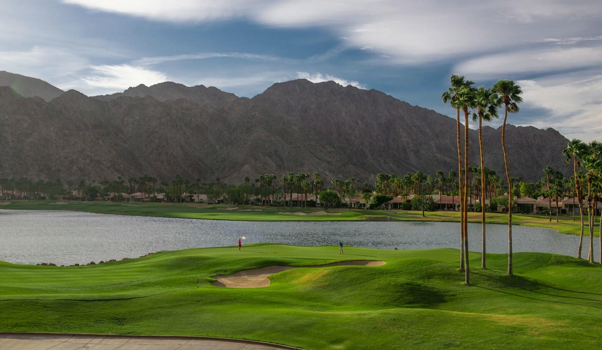 Available IMMEDIATELY UNFURNISHED ON A LONG TERM BASIS. Enjoy PGA's vast accommodations and elite golf tournaments Introducing a three-bedroom, three-bathroom condominium spanning 1918 square feet, conveniently situated on a SINGLE level. Behold the captivating westward vistas of the Santa Rosa mountains, overlooking the scenic par 3 third hole of the renowned Arnold Palmer Private course at PGA West. Step into the inviting living room, adorned with a cozy fireplace and a convenient wet bar. The space seamlessly extends to a serene rear patio boasting a misting system and panoramic views that are nothing short of spectacular. The primary suite is a retreat in itself, offering three closets and a private patio complete with a romantic hot tub. The guest bedroom offers its own en-suite bath, while the third bedroom provides flexibility as a den or family room. A spacious 2-car garage ensures convenience, and just across the street awaits the community pool and spa, promising relaxation and leisure. Embark on a journey to explore the unique charm of this property and delve into the enticing advantages offered by the various levels of PGA West club membership. Don't miss the opportunity to make this exceptional condominium your new home.