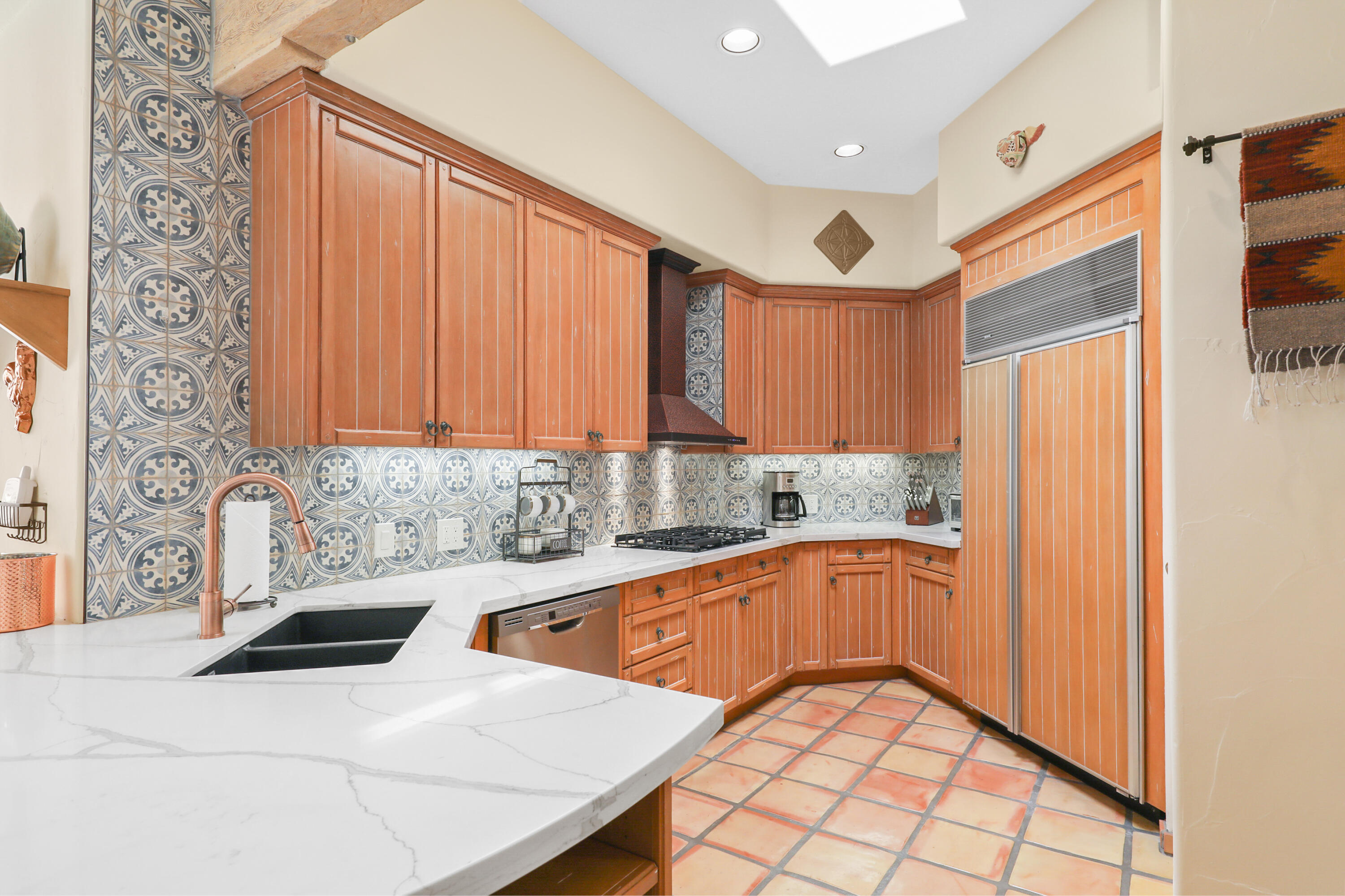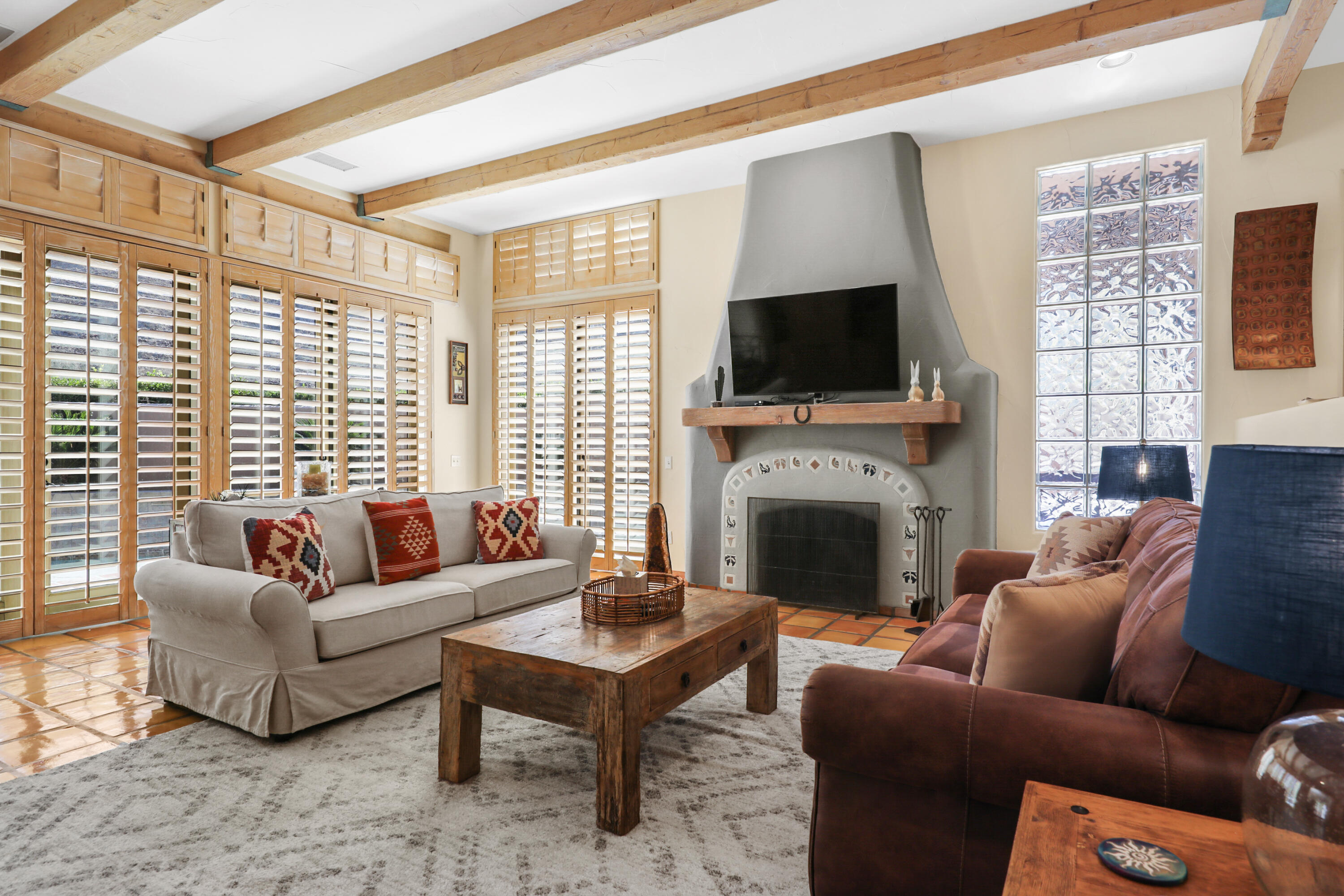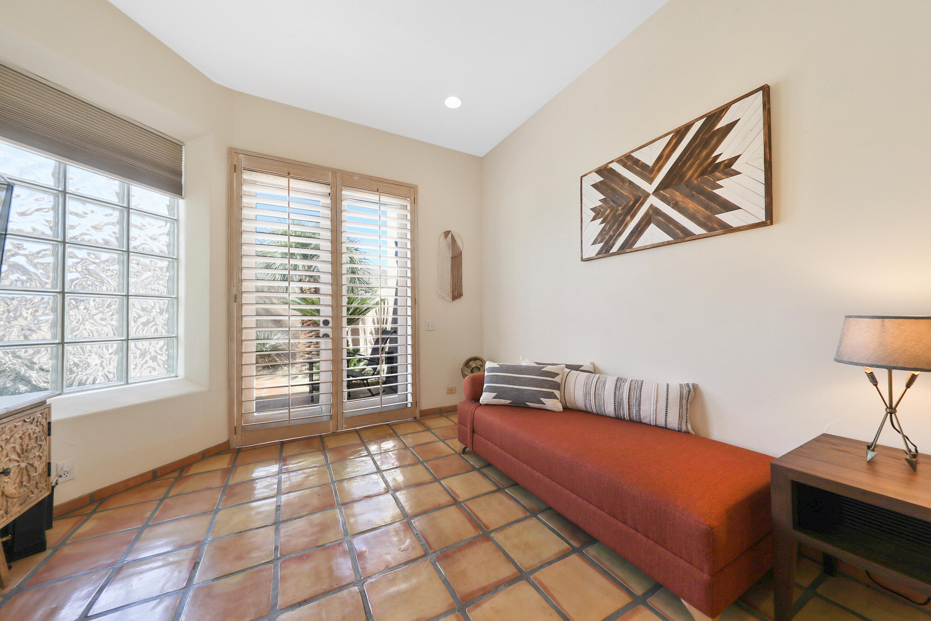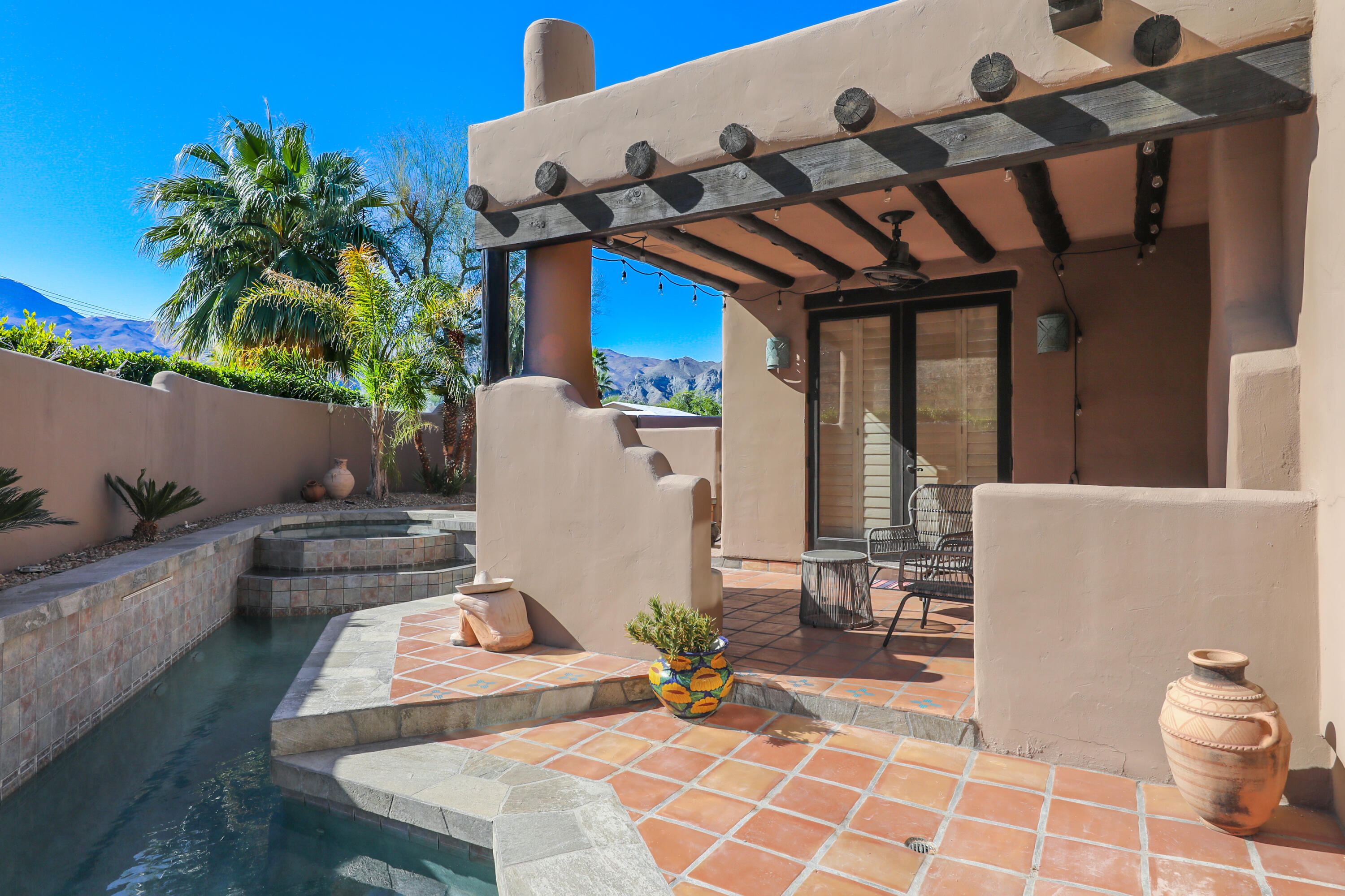 Here's a private hacienda mini-estate tucked away in a special cul de sac at the top of LQ Cove and wrapped by mountain views. This complete remodel encompasses vaulted and natural wood beamed ceilings, 9' doors, custom cabinetry built-ins and matching finish window treatments. The two en suite master suites open to beautifully tiled and stoned patios. and the totally updated salt-water lap pool and spa with multiple sheer decent cascades and a wraparound patio with a kiva fireplace. 3rd bedroom/office has access to 2nd bath The sunken living room and family room boast fireplaces done in modern mission style. The new culinary delight kitchen is graced with quart counters and new stainless appliances. Take a look at the video to see why this is absolutely one of the best homes in The La Quinta Cove.Interested in this Listing?