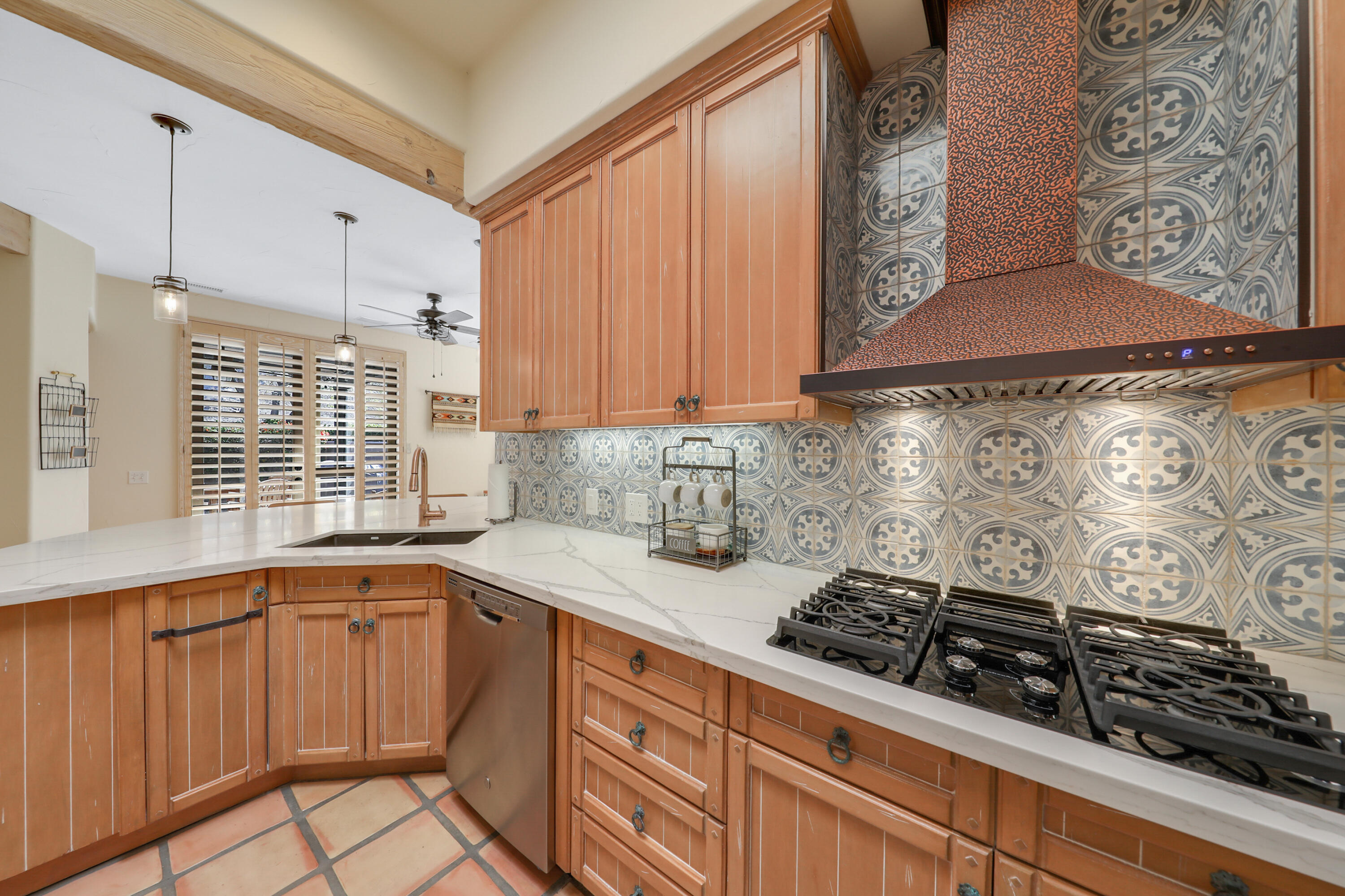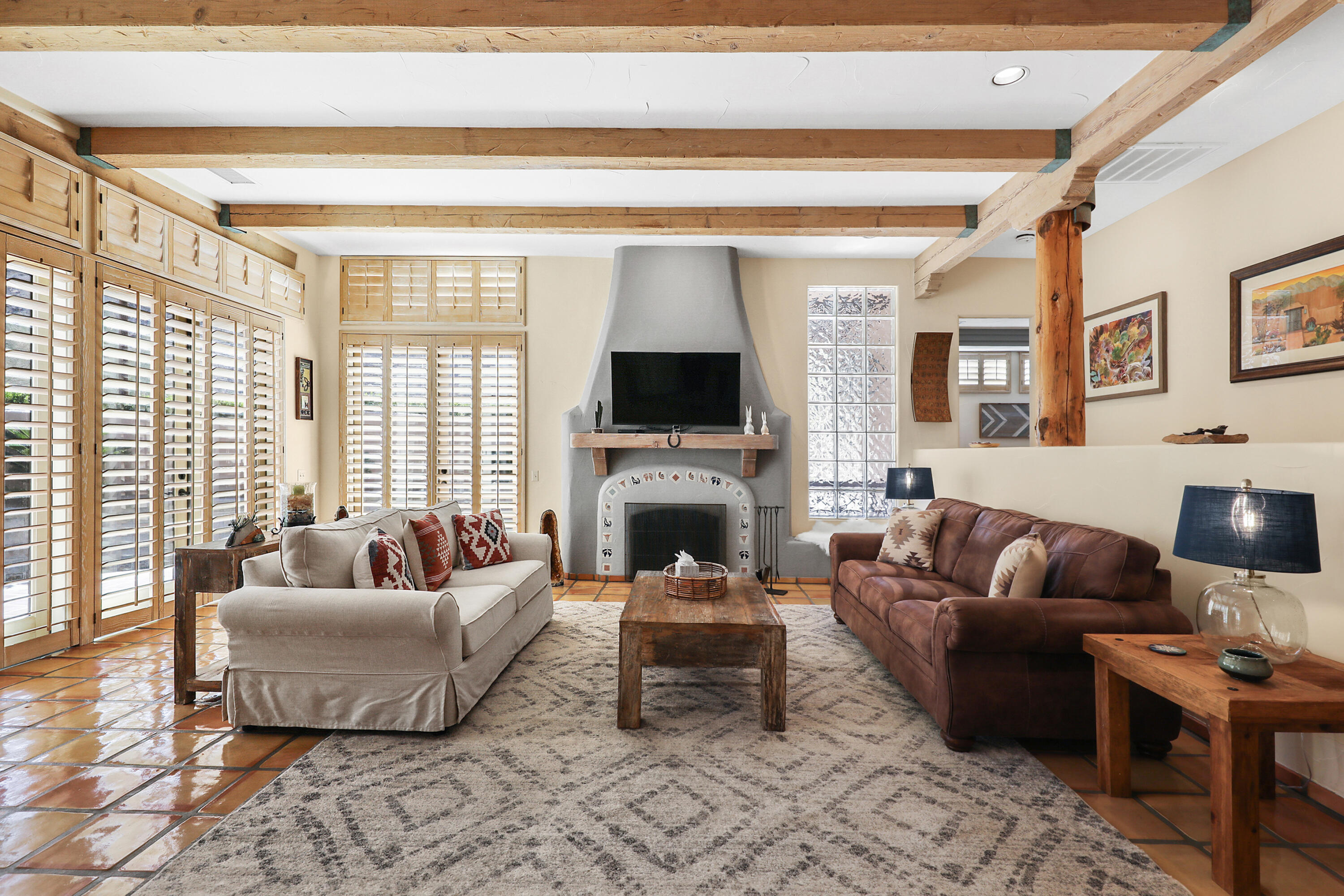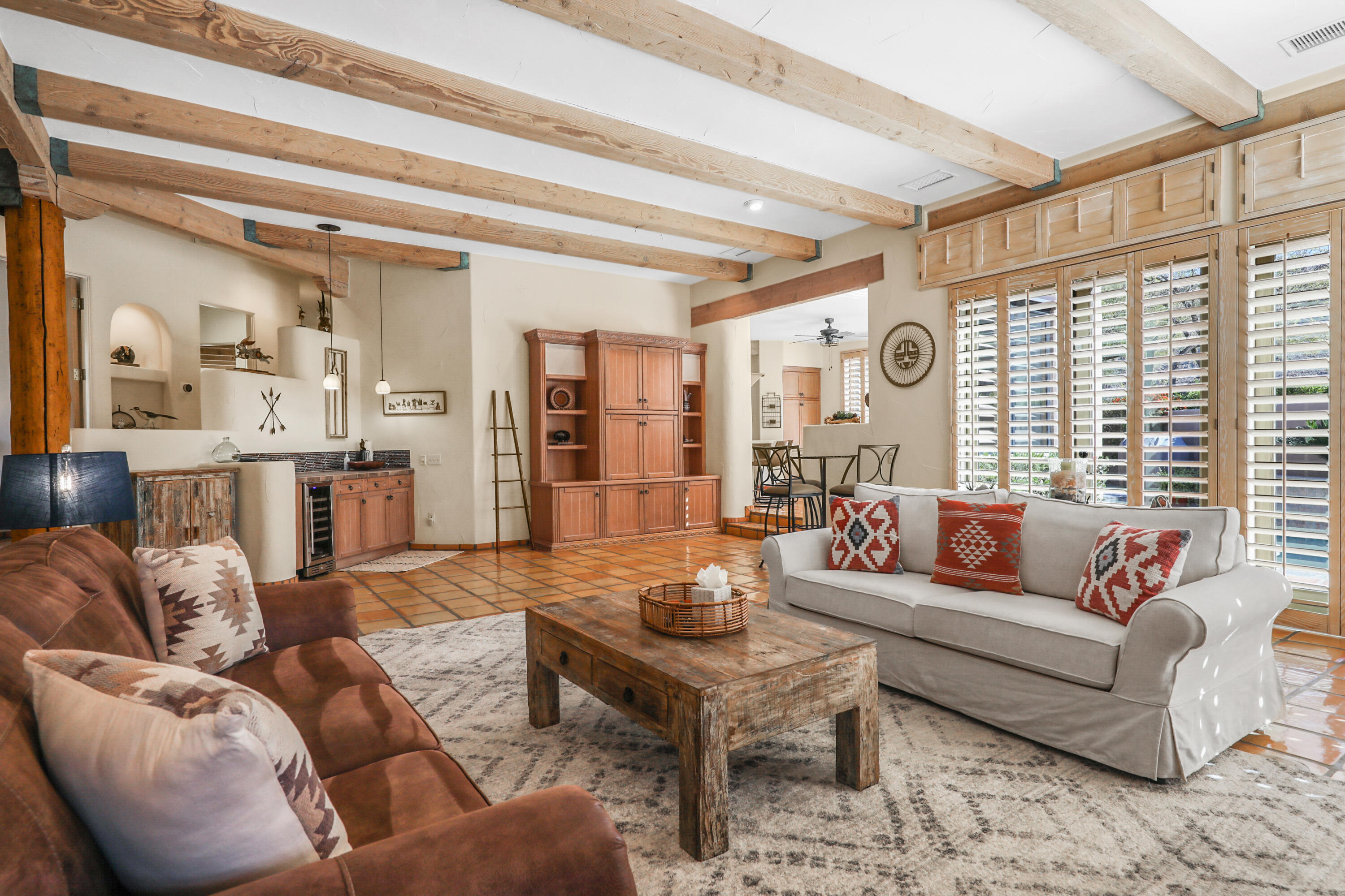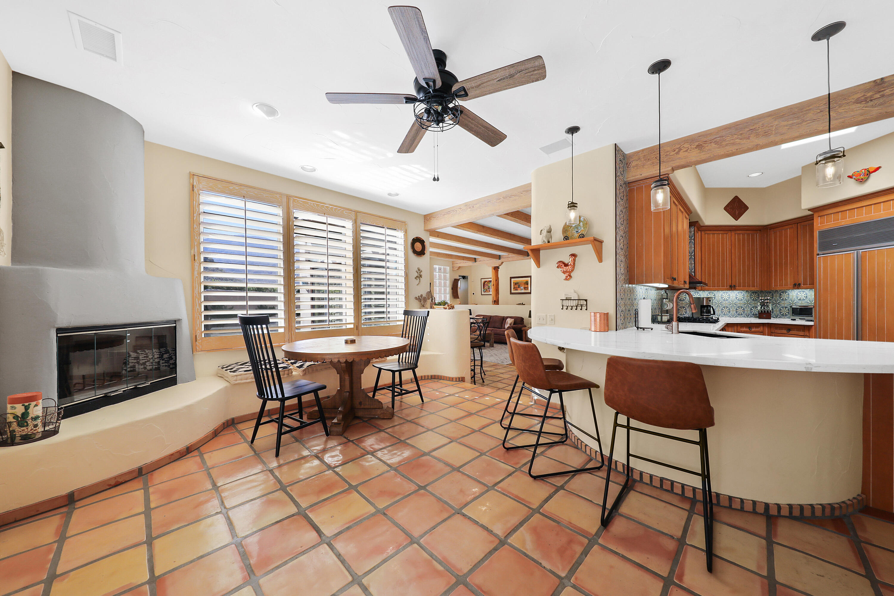 Here's a private hacienda mini-estate tucked away in a special cul de sac at the top of LQ Cove and wrapped by mountain views. This complete remodel encompasses vaulted and natural wood beamed ceilings, 9' doors, custom cabinetry built-ins and matching finish window treatments. The two en suite master suites open to beautifully tiled and stoned patios. and the totally updated salt-water lap pool and spa with multiple sheer decent cascades and a wraparound patio with a kiva fireplace. 3rd bedroom/office has access to 2nd bath The sunken living room and family room boast fireplaces done in modern mission style. The new culinary delight kitchen is graced with quart counters and new stainless appliances. Take a look at the video to see why this is absolutely one of the best homes in The La Quinta Cove.Interested in this Listing?