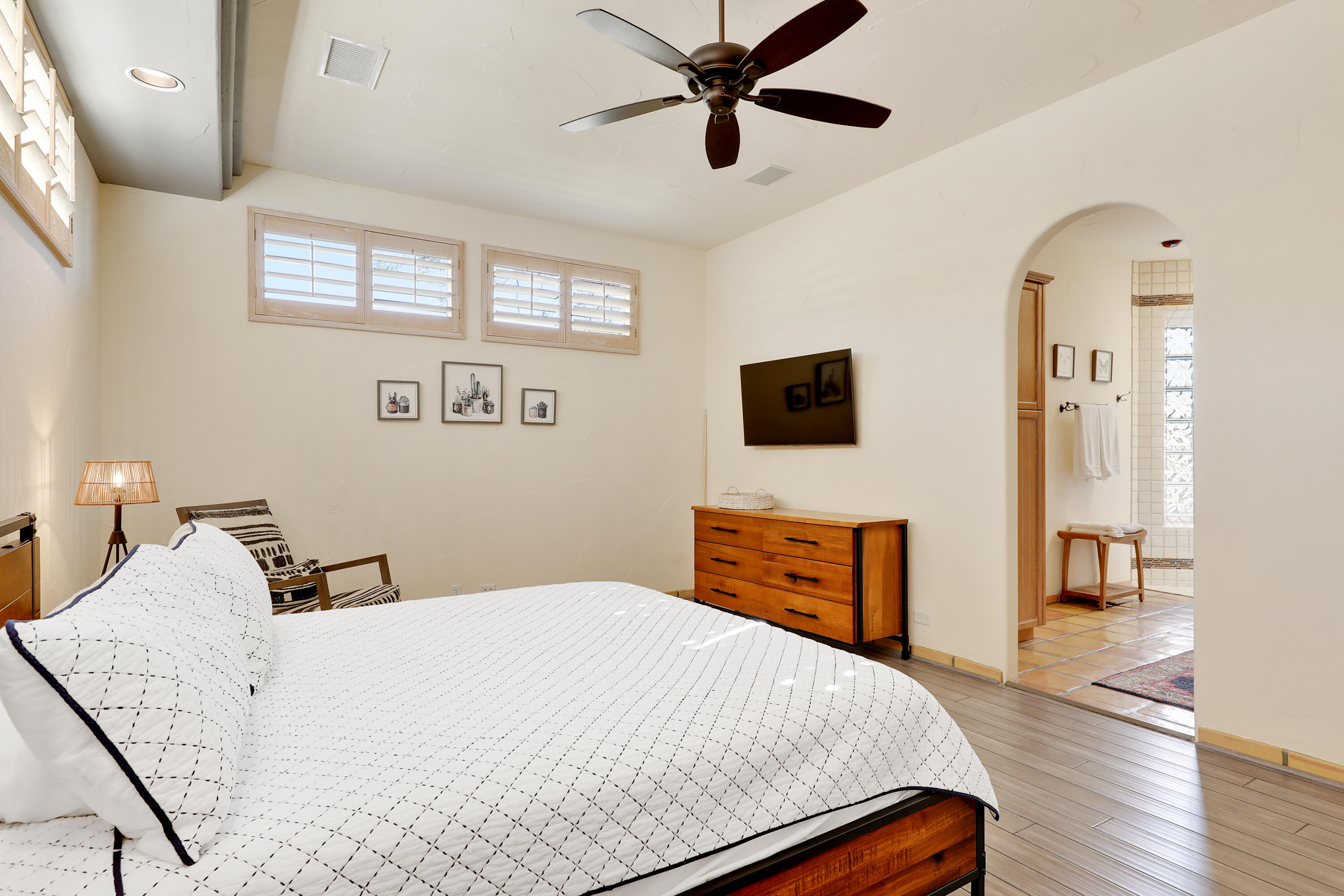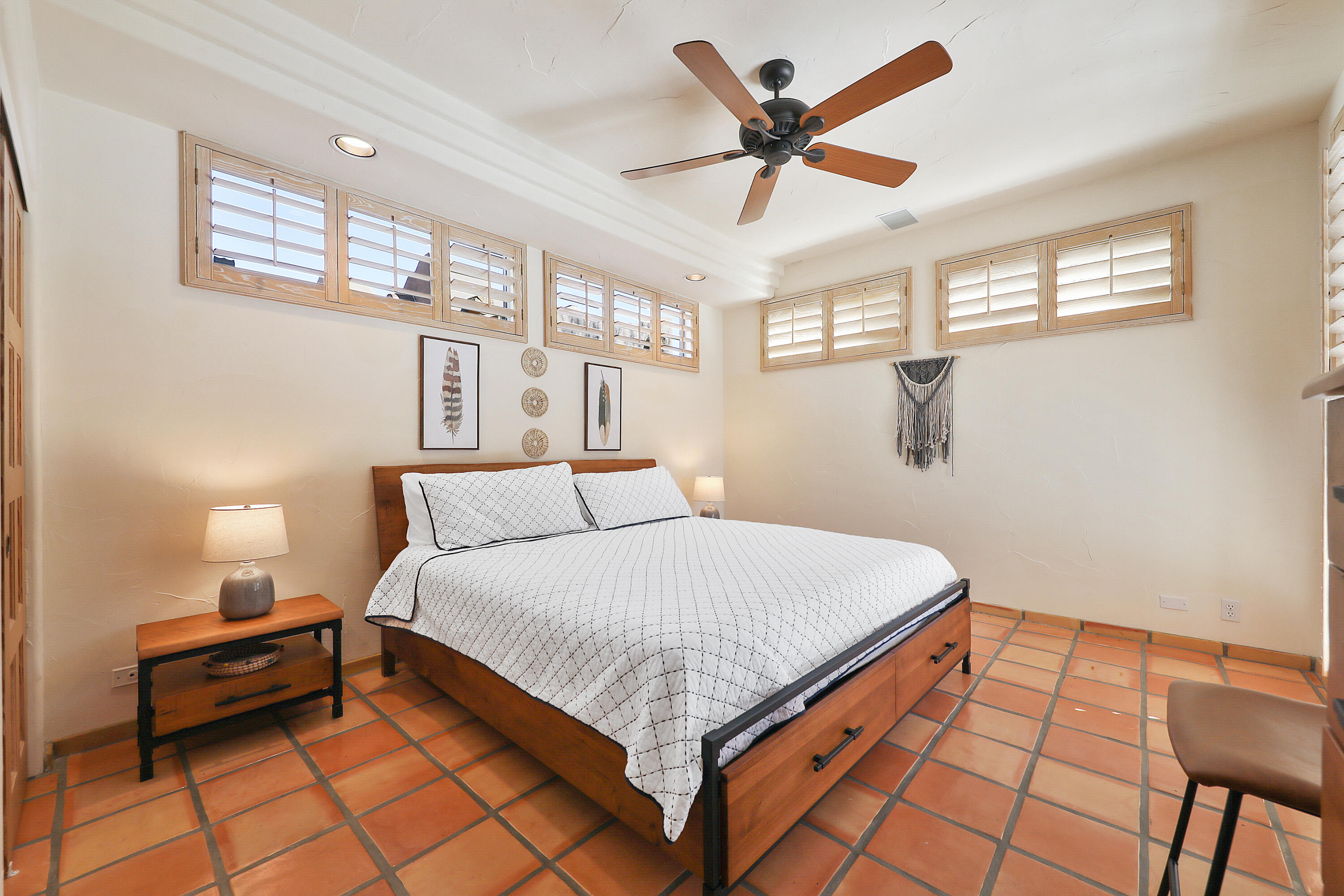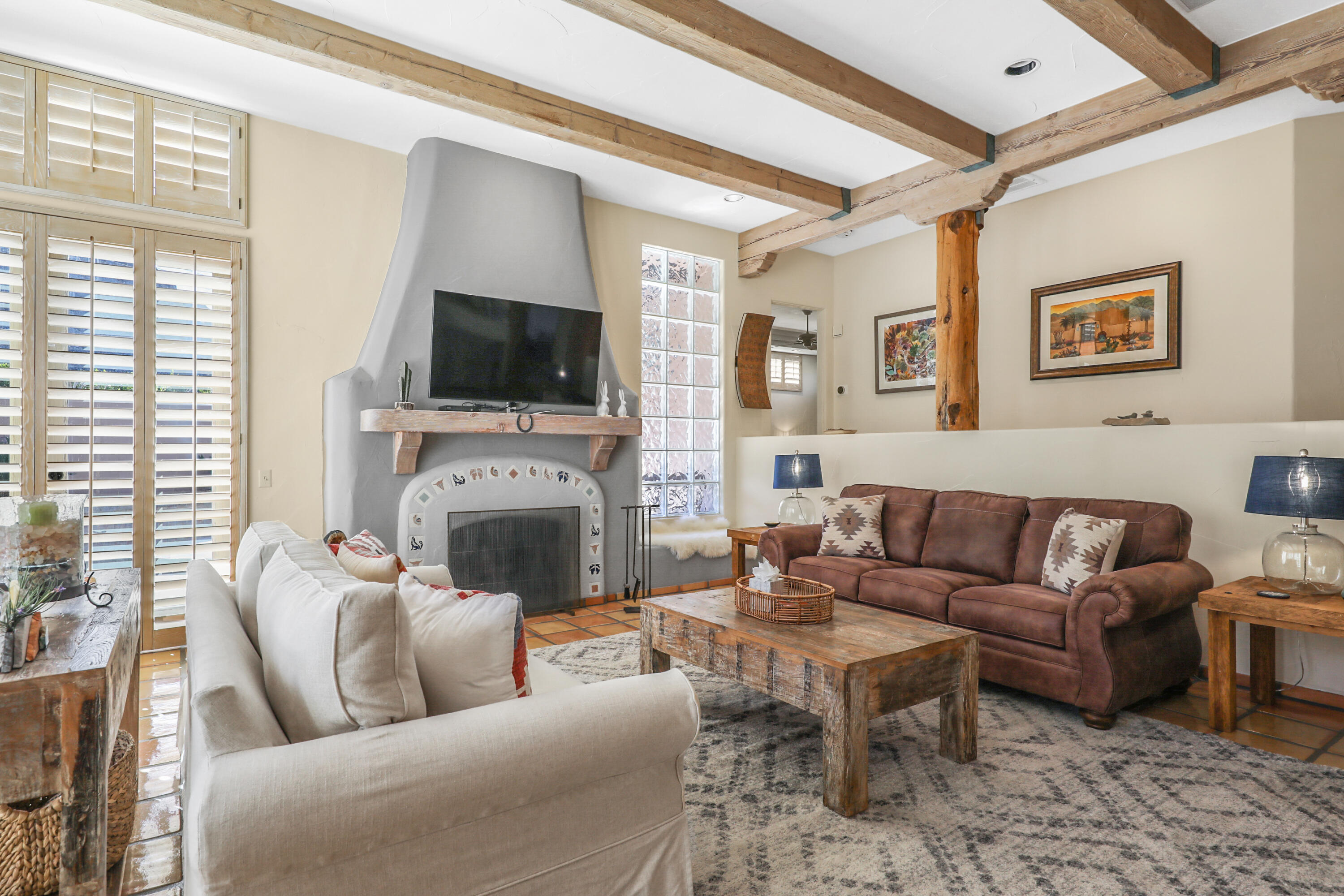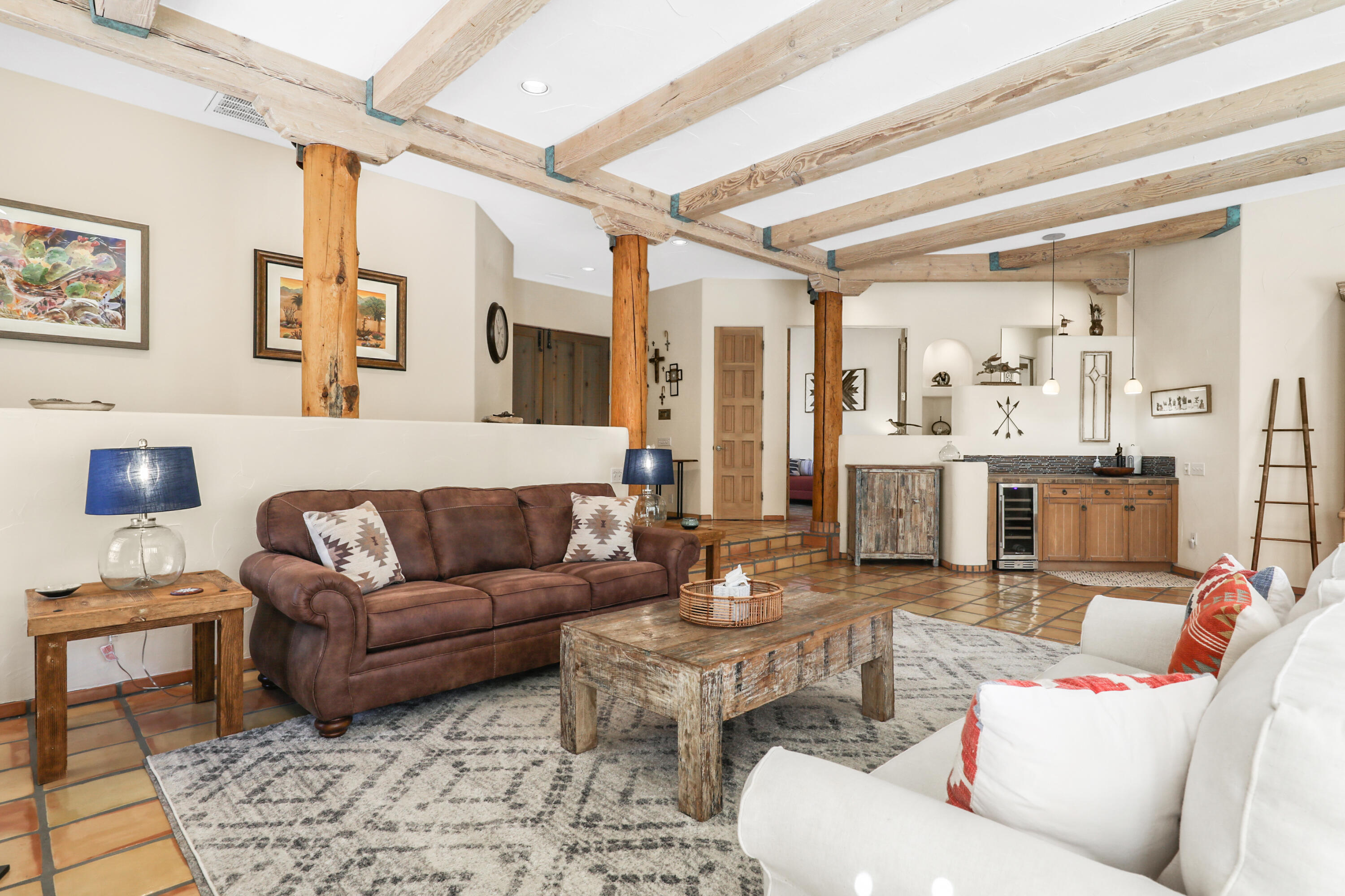 Here's a private hacienda mini-estate tucked away in a special cul de sac at the top of LQ Cove and wrapped by mountain views. This complete remodel encompasses vaulted and natural wood beamed ceilings, 9' doors, custom cabinetry built-ins and matching finish window treatments. The two en suite master suites open to beautifully tiled and stoned patios. and the totally updated salt-water lap pool and spa with multiple sheer decent cascades and a wraparound patio with a kiva fireplace. 3rd bedroom/office has access to 2nd bath The sunken living room and family room boast fireplaces done in modern mission style. The new culinary delight kitchen is graced with quart counters and new stainless appliances. Take a look at the video to see why this is absolutely one of the best homes in The La Quinta Cove.Interested in this Listing?