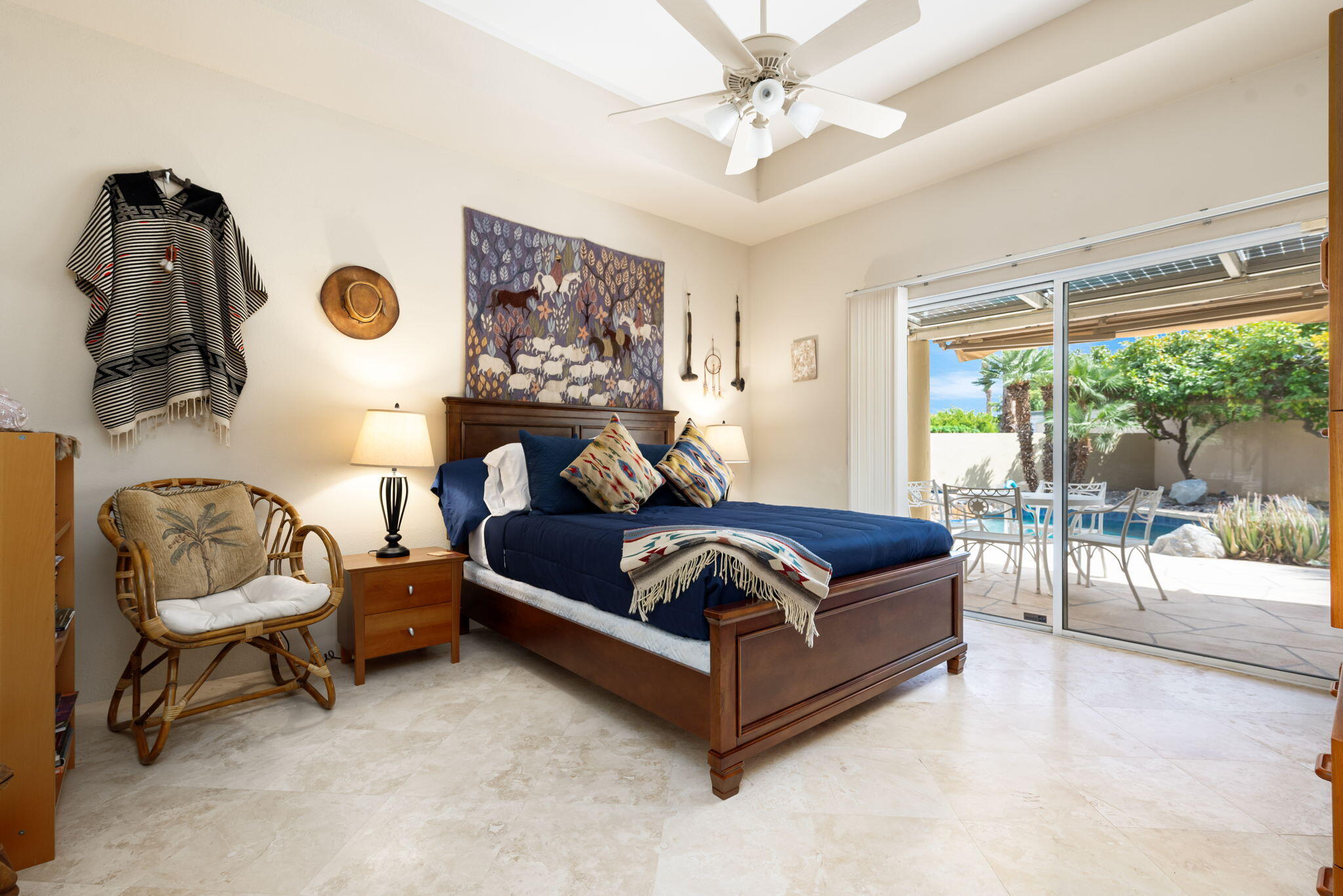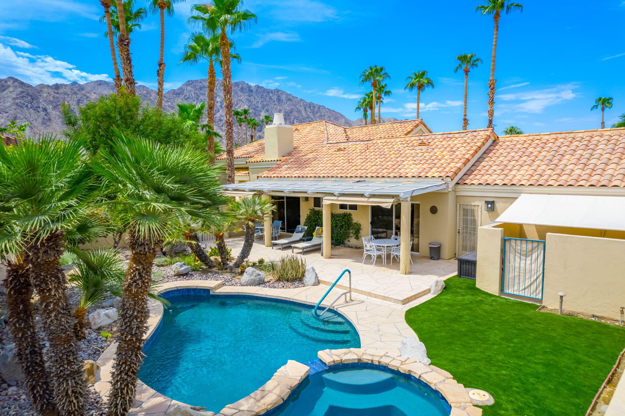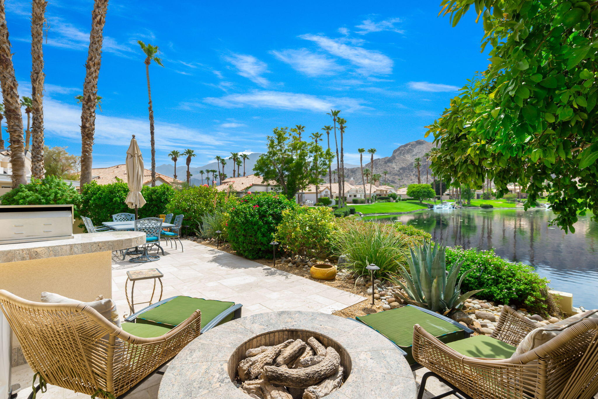 Experience breathtaking waterfront views of the Santa Rosa Mountains from this splendid property. Entertain effortlessly with a gas BBQ, cozy fire pit, and a private pool surrounded by electric awnings, offering the perfect blend of comfort and luxury. Outdoor fans and lights enhance the inviting atmosphere. Step inside to an oasis of elegance with travertine floors, a majestic marble fireplace, and high ceilings. The kitchen boasts custom panoramic windows with gorgeous views filled with inviting natural light. This home also has ample dining and living room seating as well as a large wet bar. Three ensuite bedrooms provide privacy, each with upgraded bathrooms. Surround sound in every room and jacuzzi bathtubs offer a world of relaxation. I cannot stress enough the views from the back of this home! Don't wait to book, this home will be in high demand.Rate varies by monthInterested in this Listing?