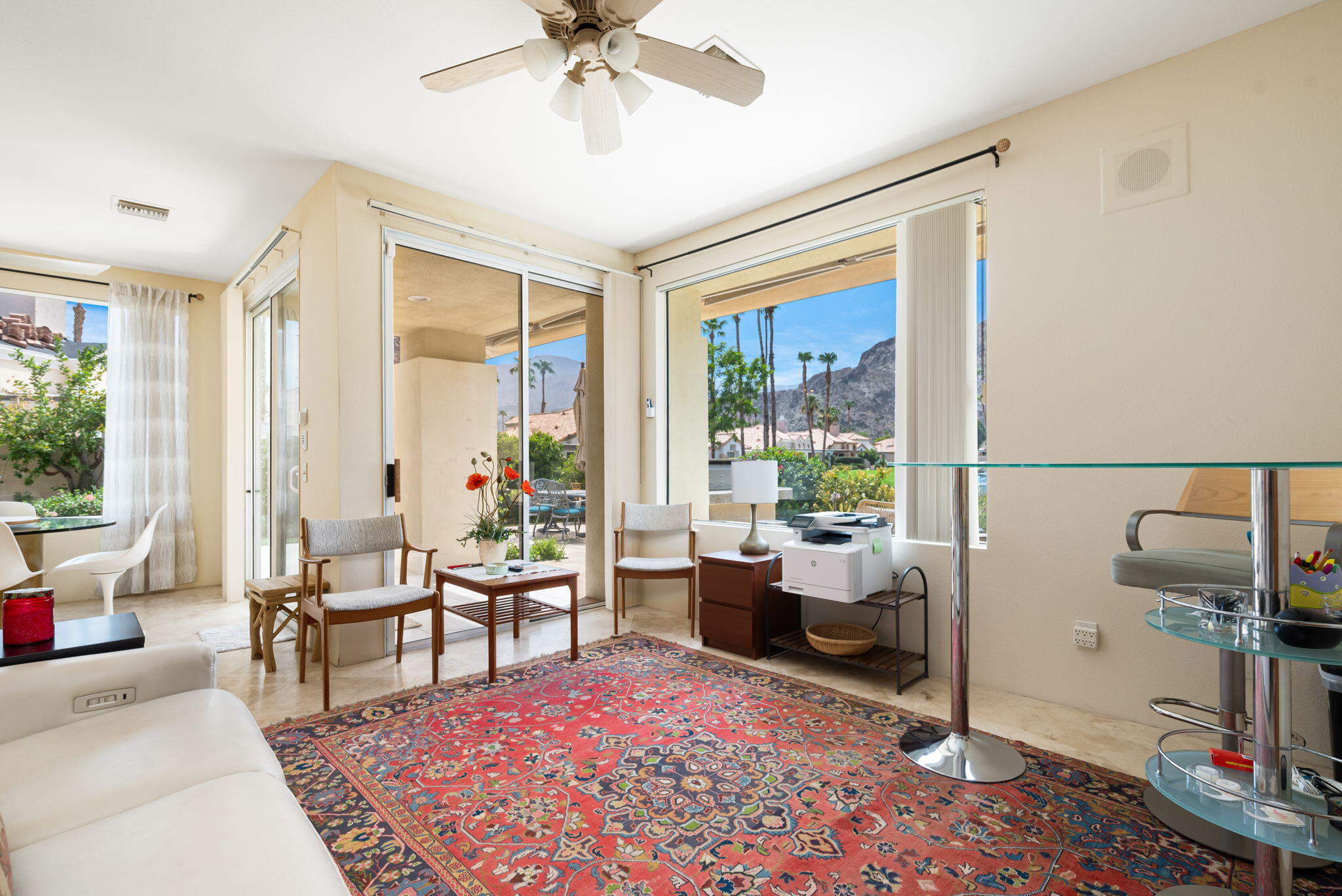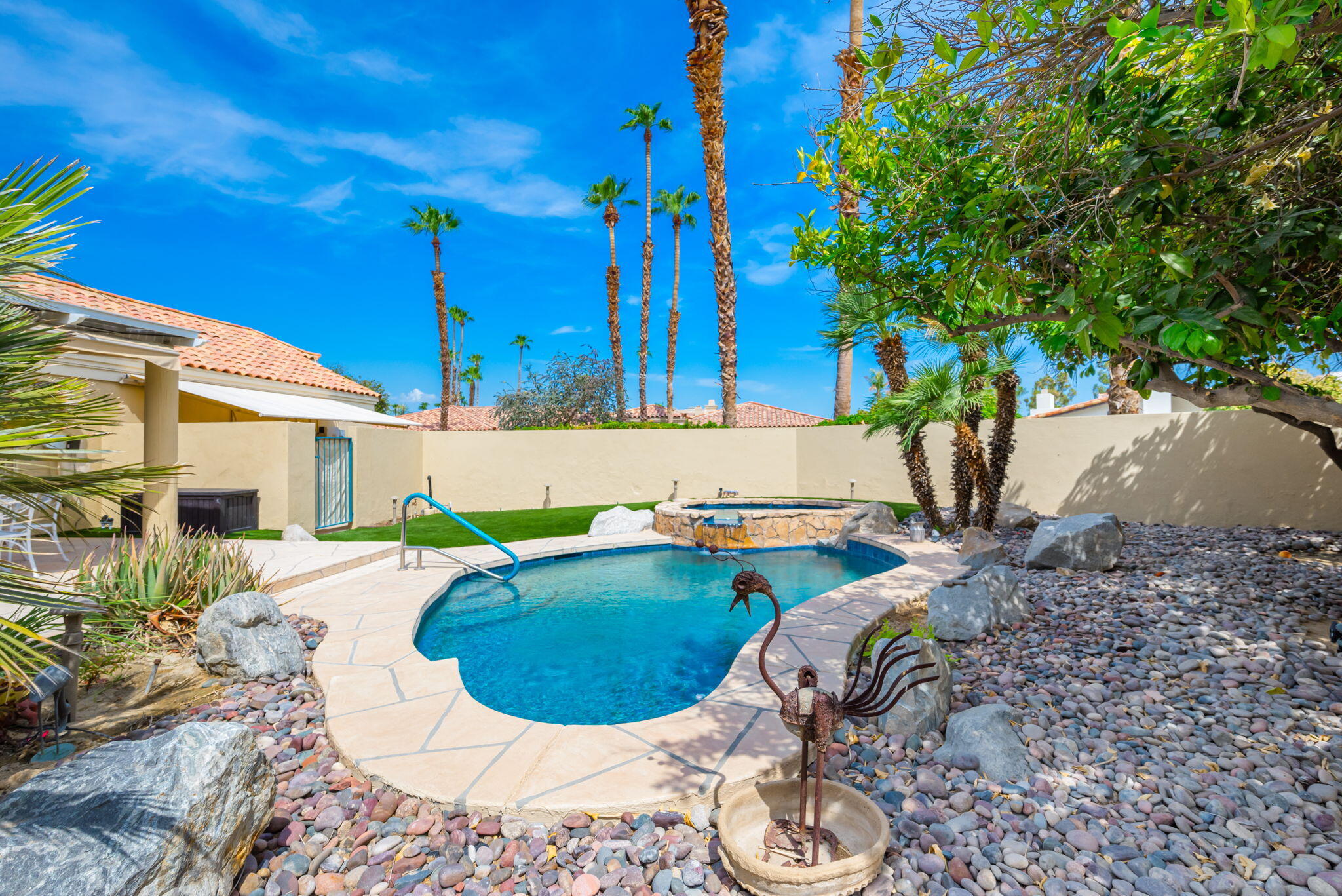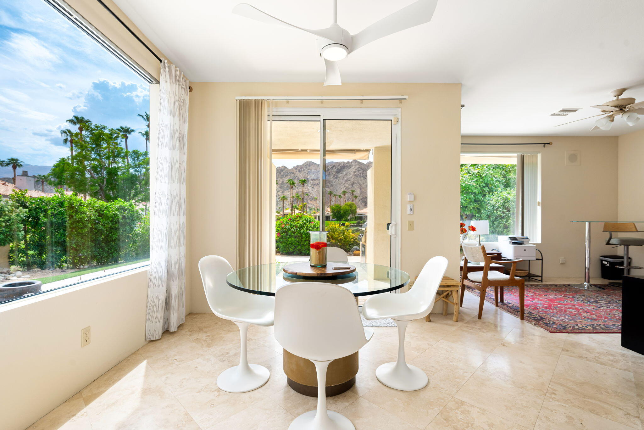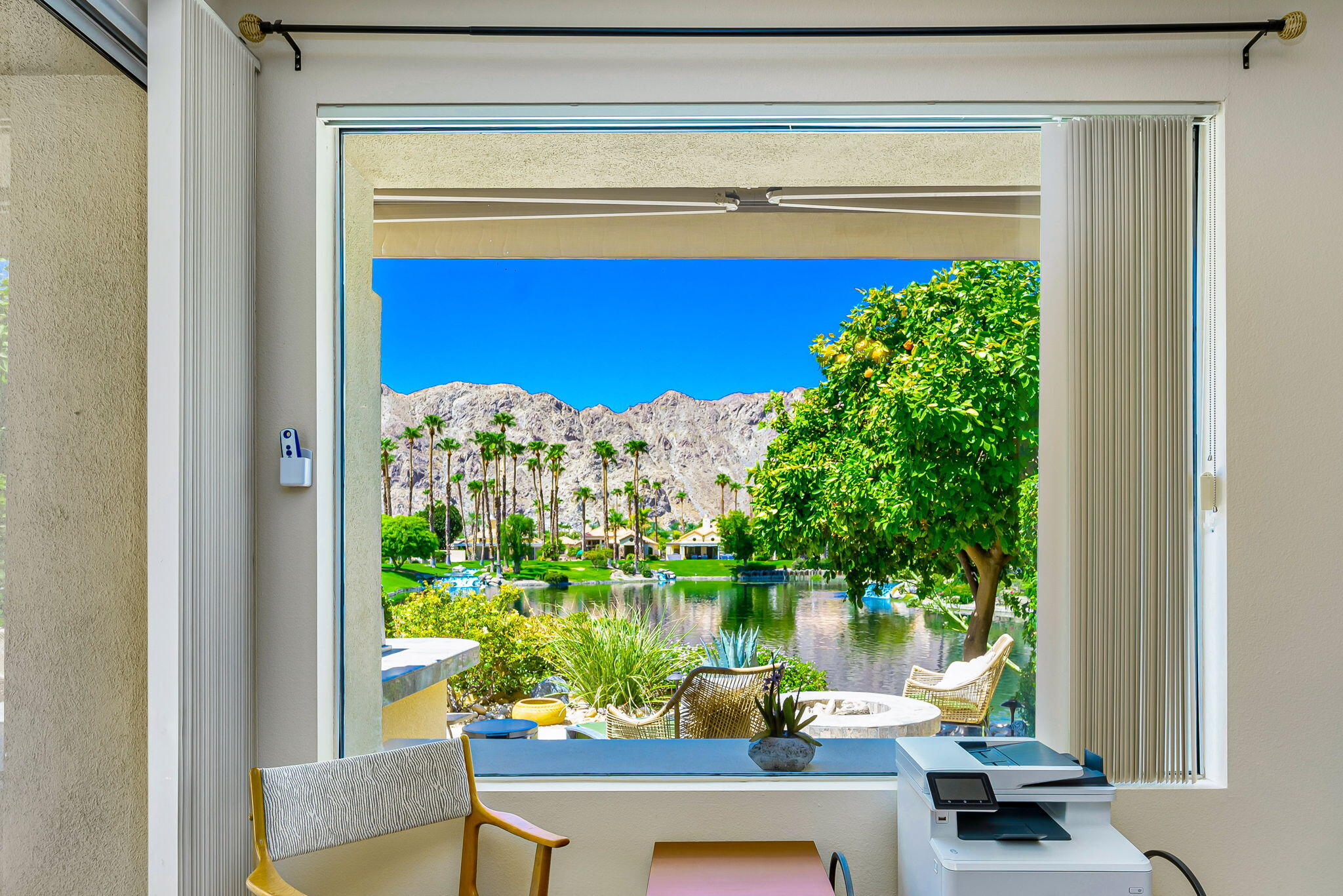 Experience breathtaking waterfront views of the Santa Rosa Mountains from this splendid property. Entertain effortlessly with a gas BBQ, cozy fire pit, and a private pool surrounded by electric awnings, offering the perfect blend of comfort and luxury. Outdoor fans and lights enhance the inviting atmosphere. Step inside to an oasis of elegance with travertine floors, a majestic marble fireplace, and high ceilings. The kitchen boasts custom panoramic windows with gorgeous views filled with inviting natural light. This home also has ample dining and living room seating as well as a large wet bar. Three ensuite bedrooms provide privacy, each with upgraded bathrooms. Surround sound in every room and jacuzzi bathtubs offer a world of relaxation. I cannot stress enough the views from the back of this home! Don't wait to book, this home will be in high demand.Rate varies by monthInterested in this Listing?
