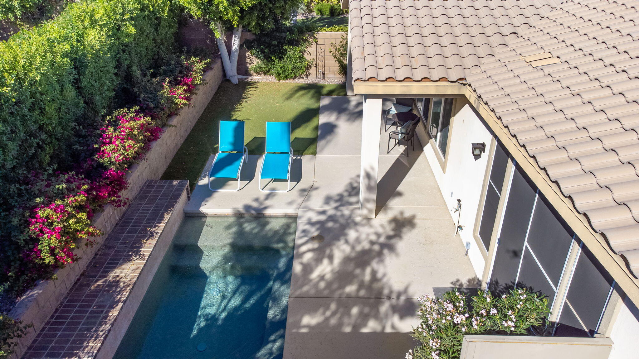 RENTED NOV. 1, 2024 THRU APRIL 30 2025. 11-1-25 thru 3-31-26. Trilogy in La Quinta is a 55 and older community. Enjoy the spacious and well-appointed Casa-del Sol while calling this Trilogy Monterey model home. Wake up refreshed in the comfort of the primary suite's adjustable King bed. With direct access to the backyard, you can enjoy your morning coffee lounging under the ample shade on the resort-style furnishings or relax on a chaise under the sun spool-side.Boasting ample space for your occasional guests, Casa del Sol is appointed with a second bedroom with a queen bed and desk, ideal for working from home, a third bedroom with a king-size Murphy bed plus a separate casita with a king bed, convenient kitchen nette boasting a mini-fridge, microwave, Keurig, sink and dishes. All bedrooms have TV's for enjoying your favorite streaming apps. Additionally, the TV's in the primary suite and great room (65' 4K curved) are equipped with cable. You'll feel at home in the well-appointed kitchen with newer GE Profile appliances, Kitchenaid mixer, instant Pot and more to make meals come together quickly. Grill up some favorites on the patio on the electric BBQ. Enjoy a trip around the gorgeous Trilogy development in the four-seater golf cart. Take advantage of all Trilogy has to offer at the clubhouse including two pools. gym, tennis, pickleball, bocce, Cafe solaz and moreInterested in this Listing?