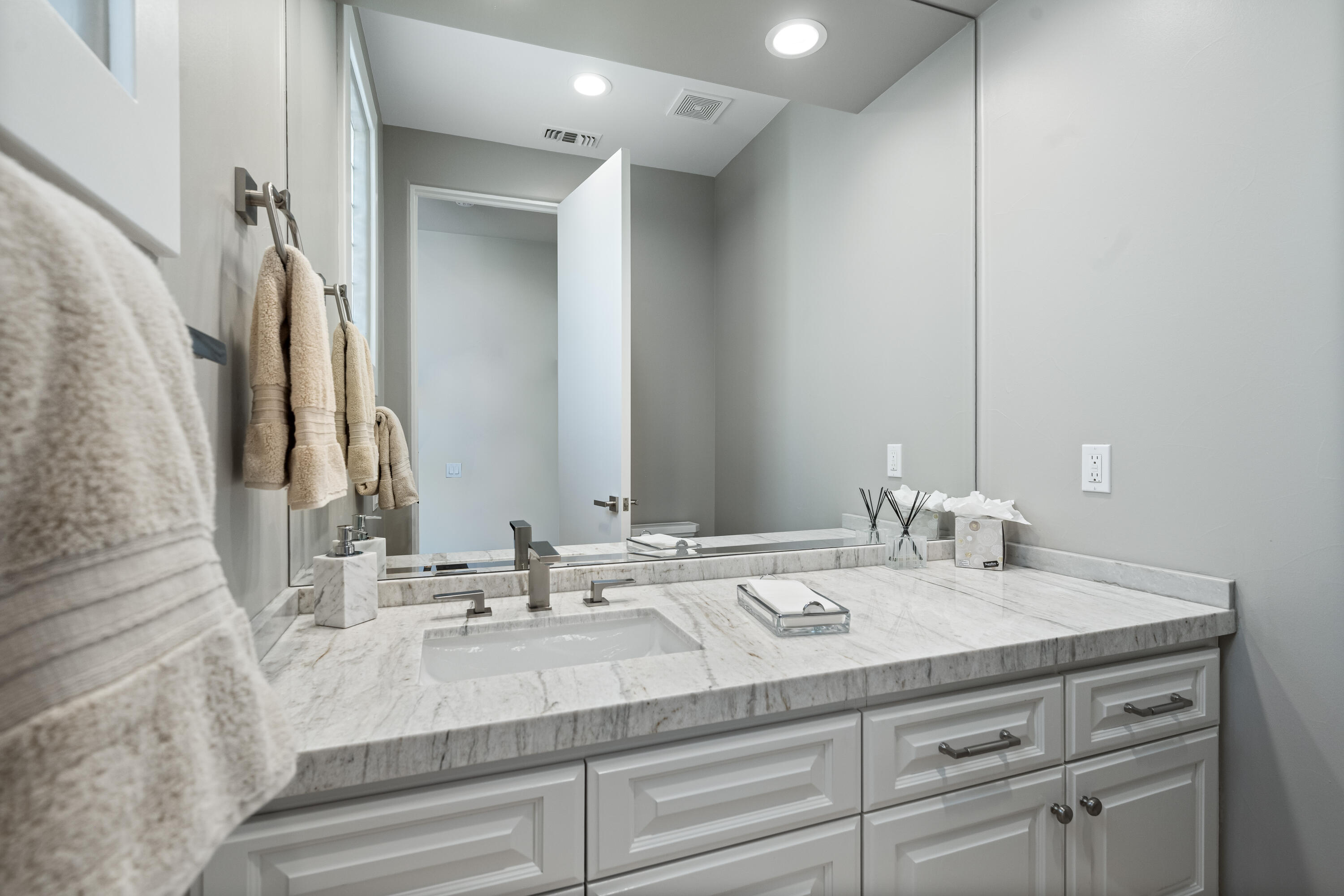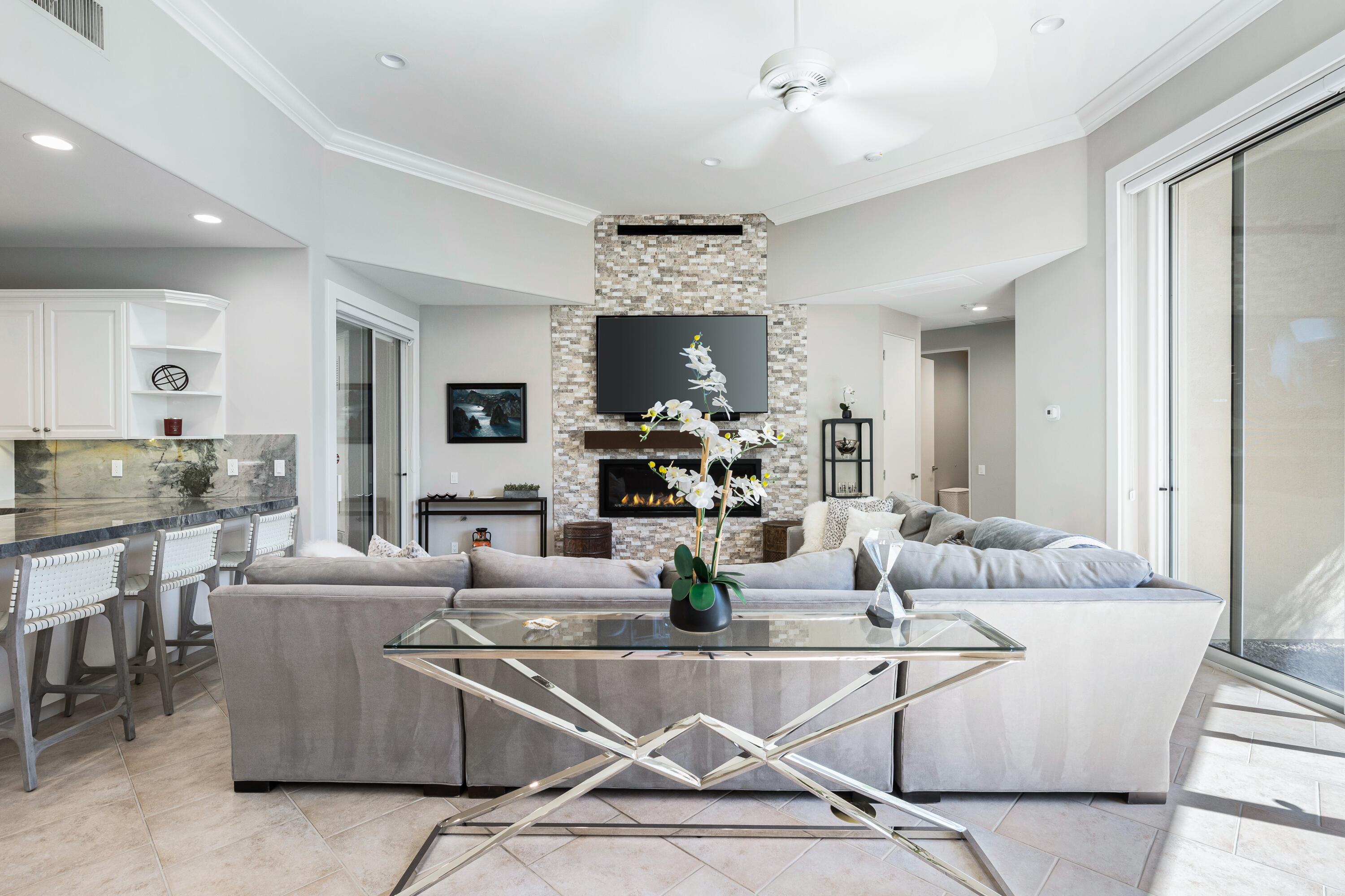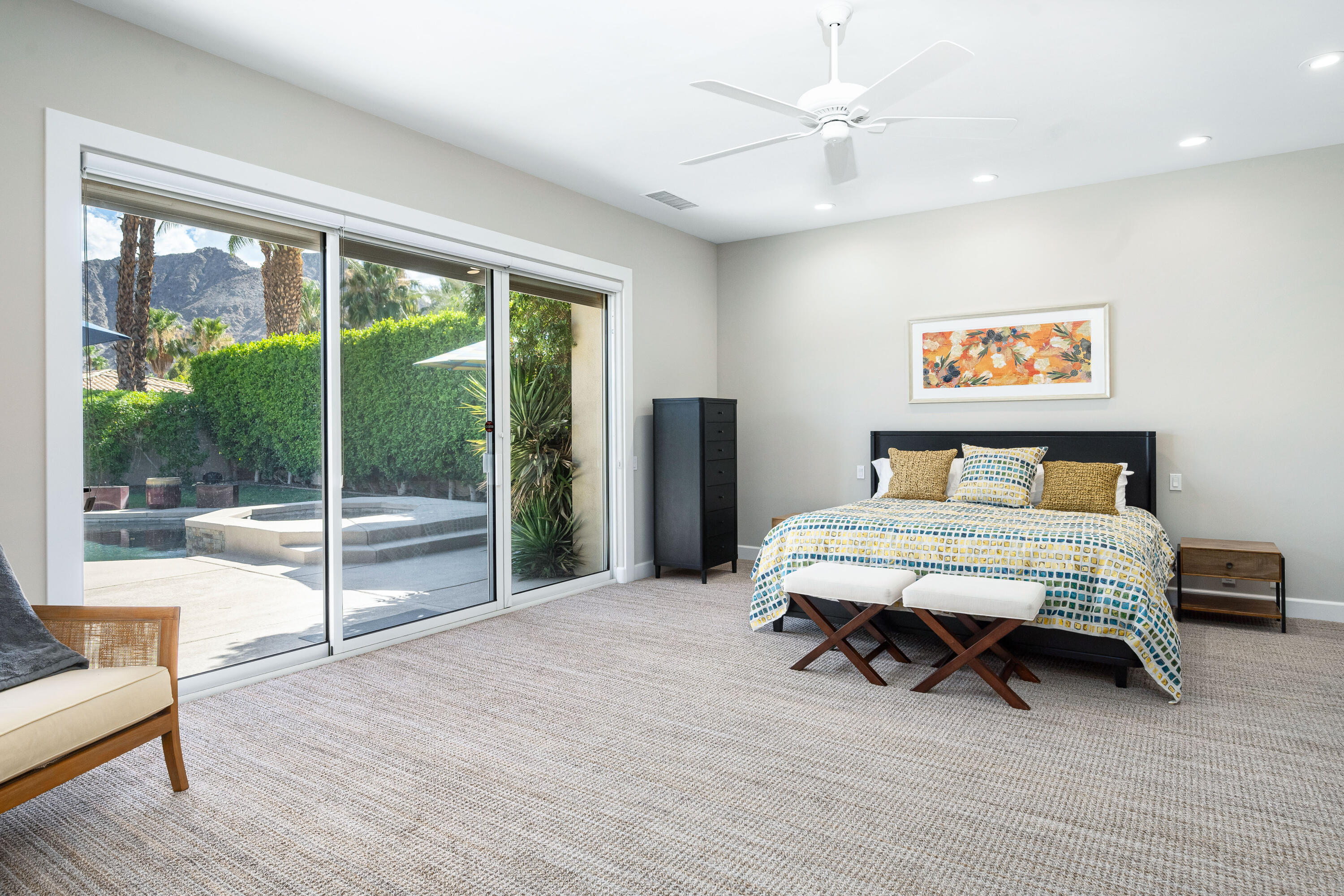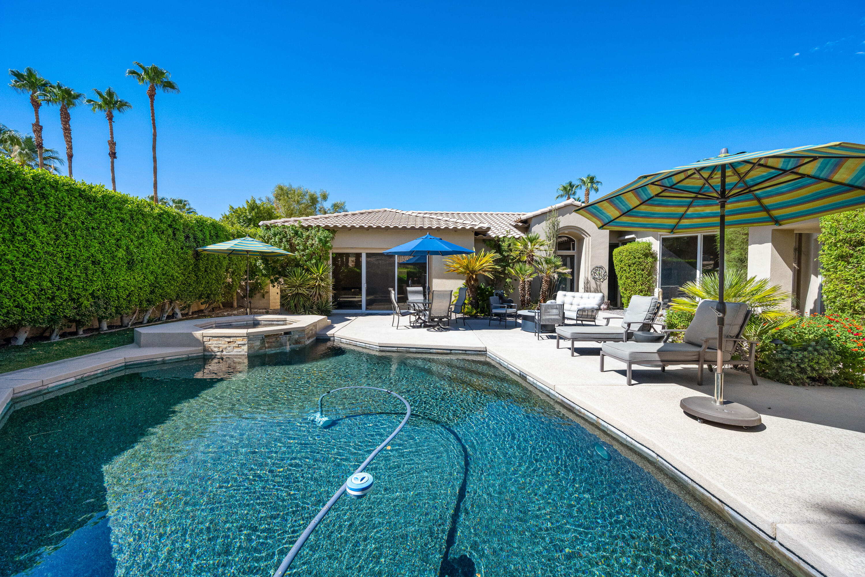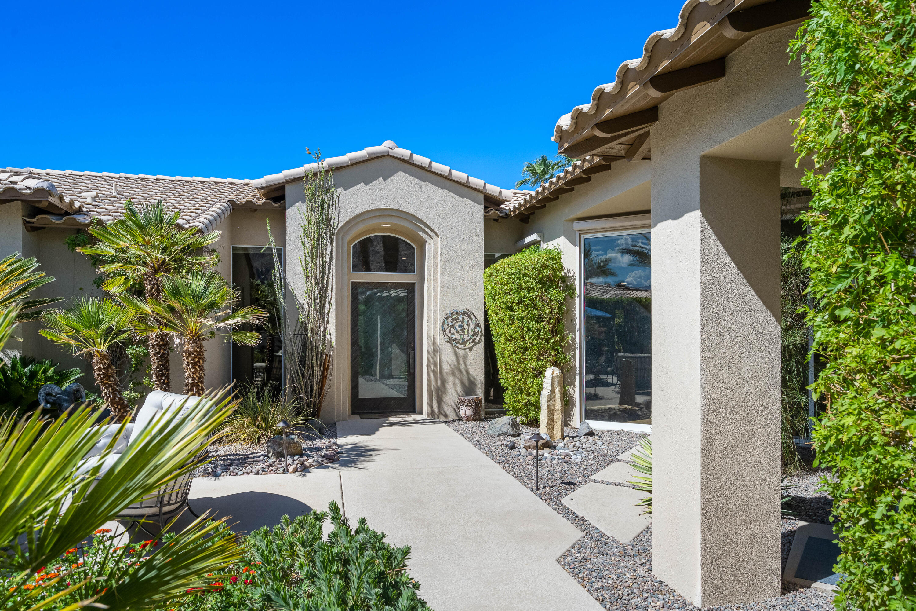 Available May 1 to September 15, 2025 at REDUCED rate of $6500 per month + Utilities. September 15 to Dec 31,2025 $9500. per month. Welcome to Paradise! This is an absolutely stunning home and a dream for entertaining! Popular Ministrelli Built structure featuring 3 bedrooms and 4 baths. A sunny private pool and spacious courtyard face south so you can enjoy this area year round.Fabulous feeling of space in the living and dining area features soaring ceilings. The wetbar and Kitchen are open. Stunning walls of glass allow the natural light to really make this home dazzling! Desirable split floorplan with the master suite and sitting area, built-in desk and wall of glass overlooking the private pool and courtyard. Master bath features a large soaking tub and shower and generous walk-in closet. The two guest suites are at the other end of the home so there is great privacy. Laundry and climate controlled three car garage access. Home includes 4 passenger golf cart, tesla charging station and energy efficient solar system with Tesla batteries for low monthly utility cost.Interested in this Listing?