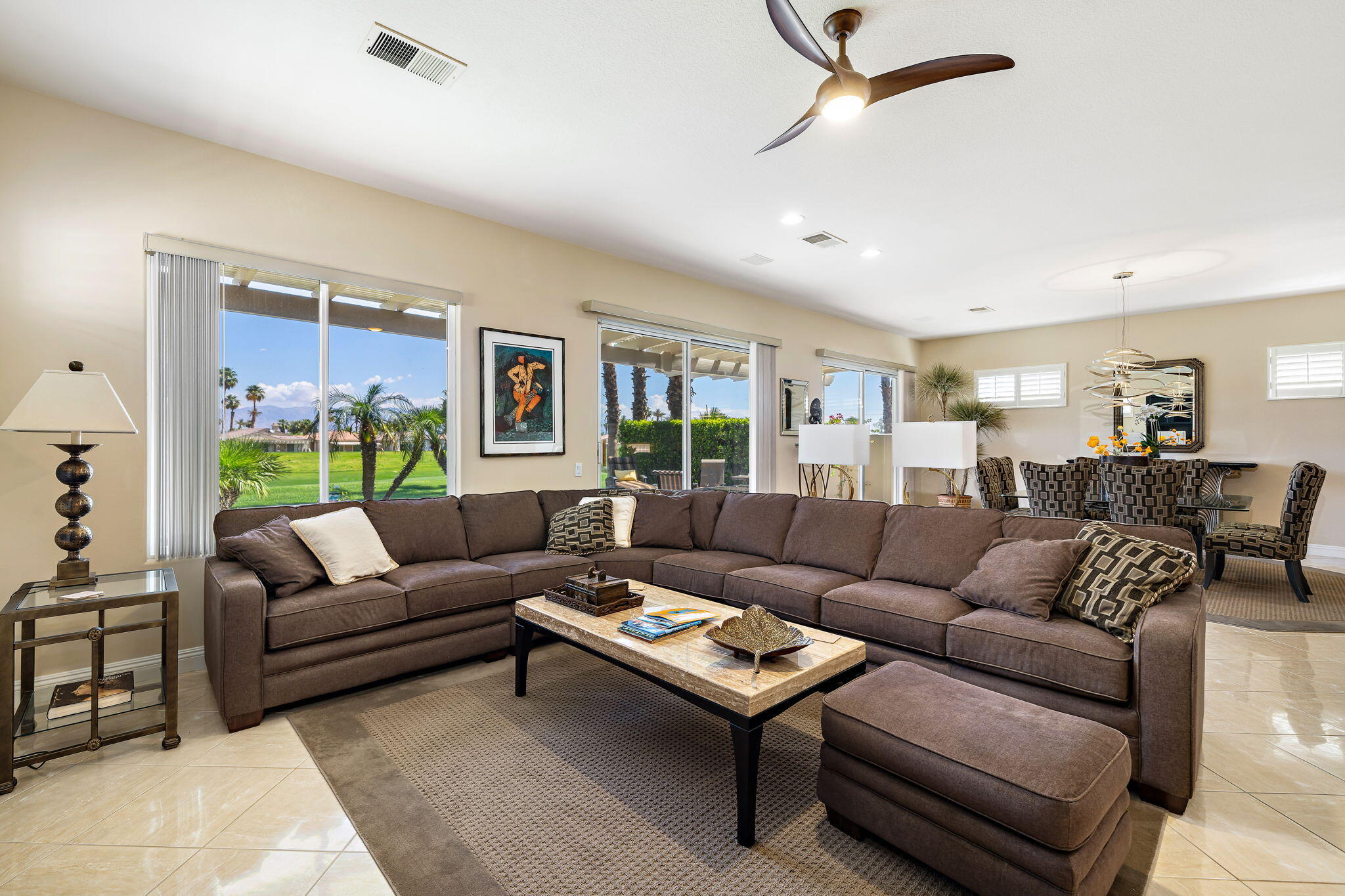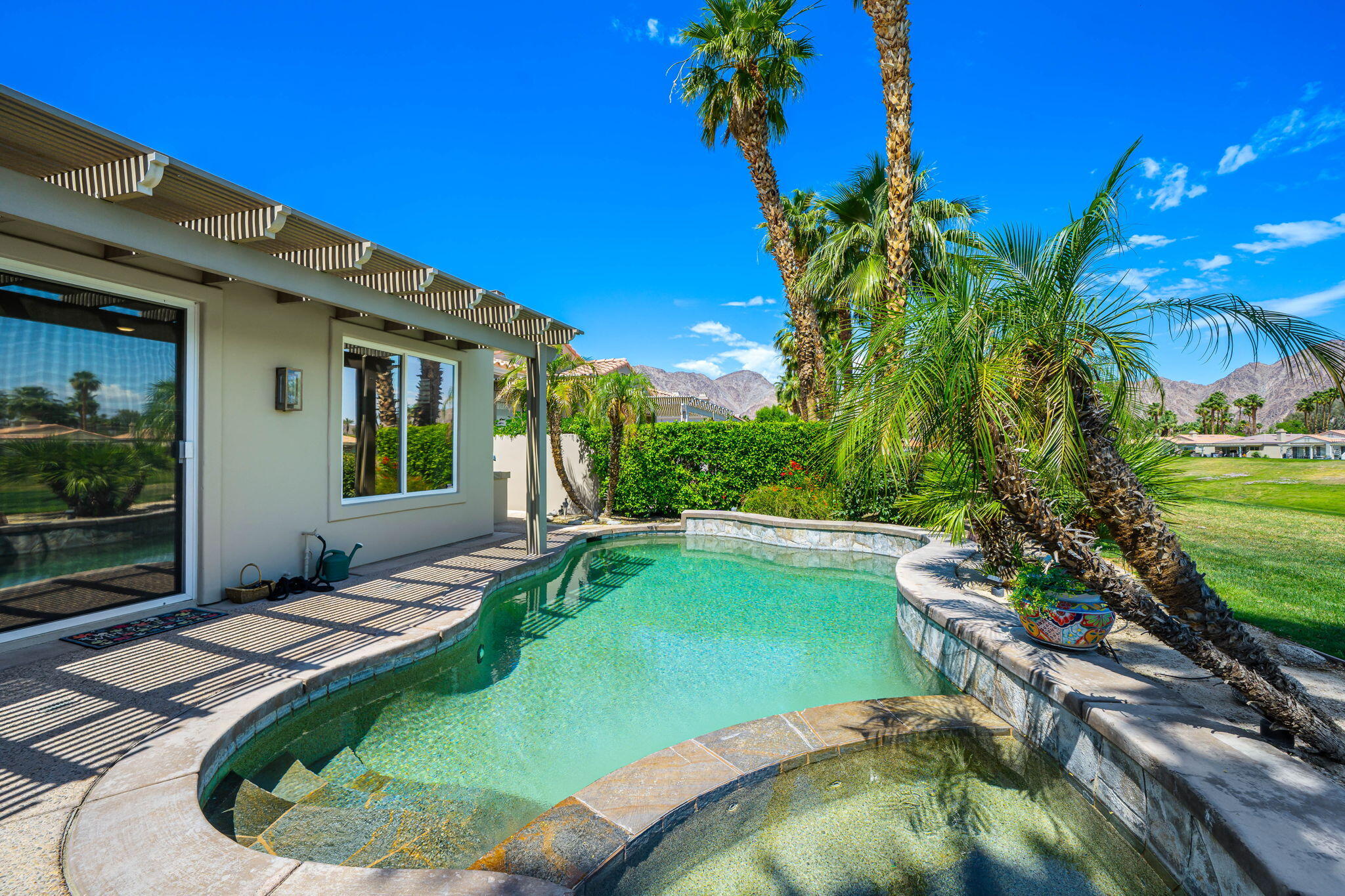 NOW AVAILABLE ALL MONTHS. True desert resort living in this gorgeous GOLF COURSE spacious POOL home, 2BR, 2BA, located in Duna La Quinta on La Quinta Resort Dunes course. Enter through the lushly landscaped gated courtyard into the sizable great room, complete with high ceilings and a gas fireplace. The chef's kitchen is open to the dining room and offers granite countertops and stainless appliances, including a bar and a wine refrigerator. Each of the 2 bedrooms features full bathrooms. Generous 2 car garage. Come enjoy all the desert has to offer in this resort retreat home!Interested in this Listing?