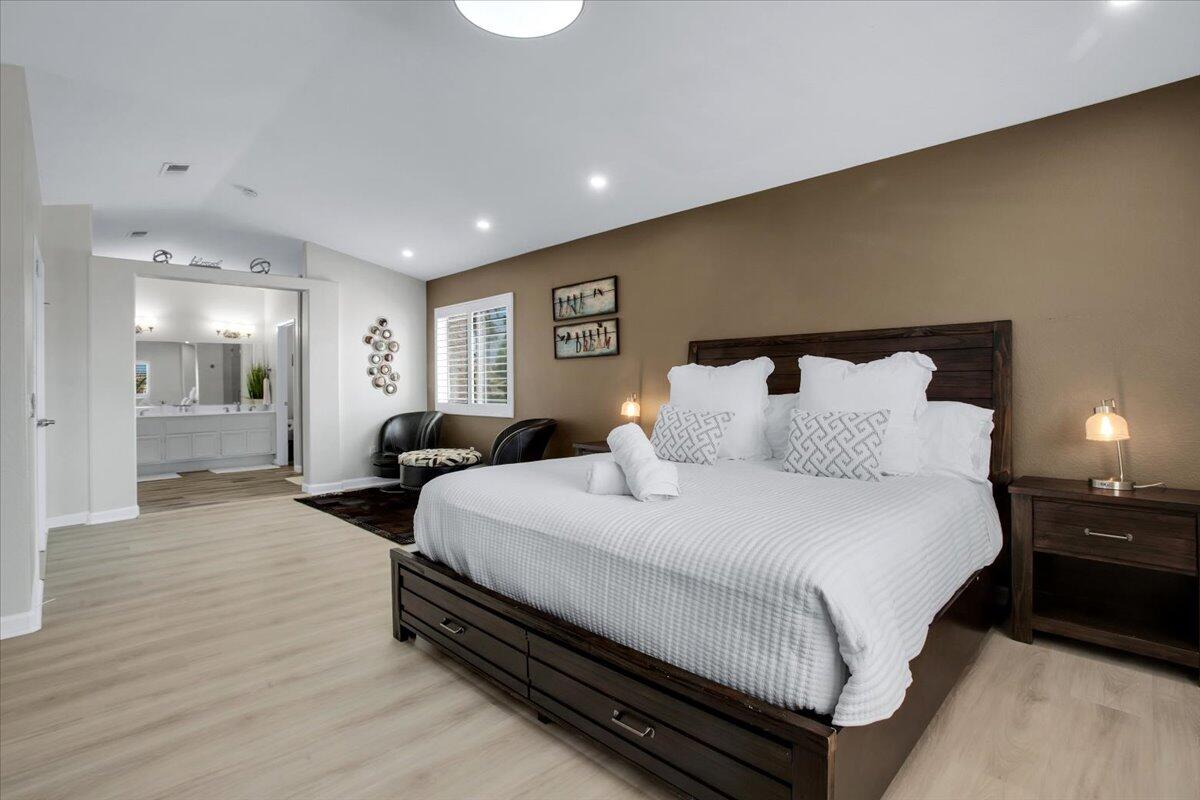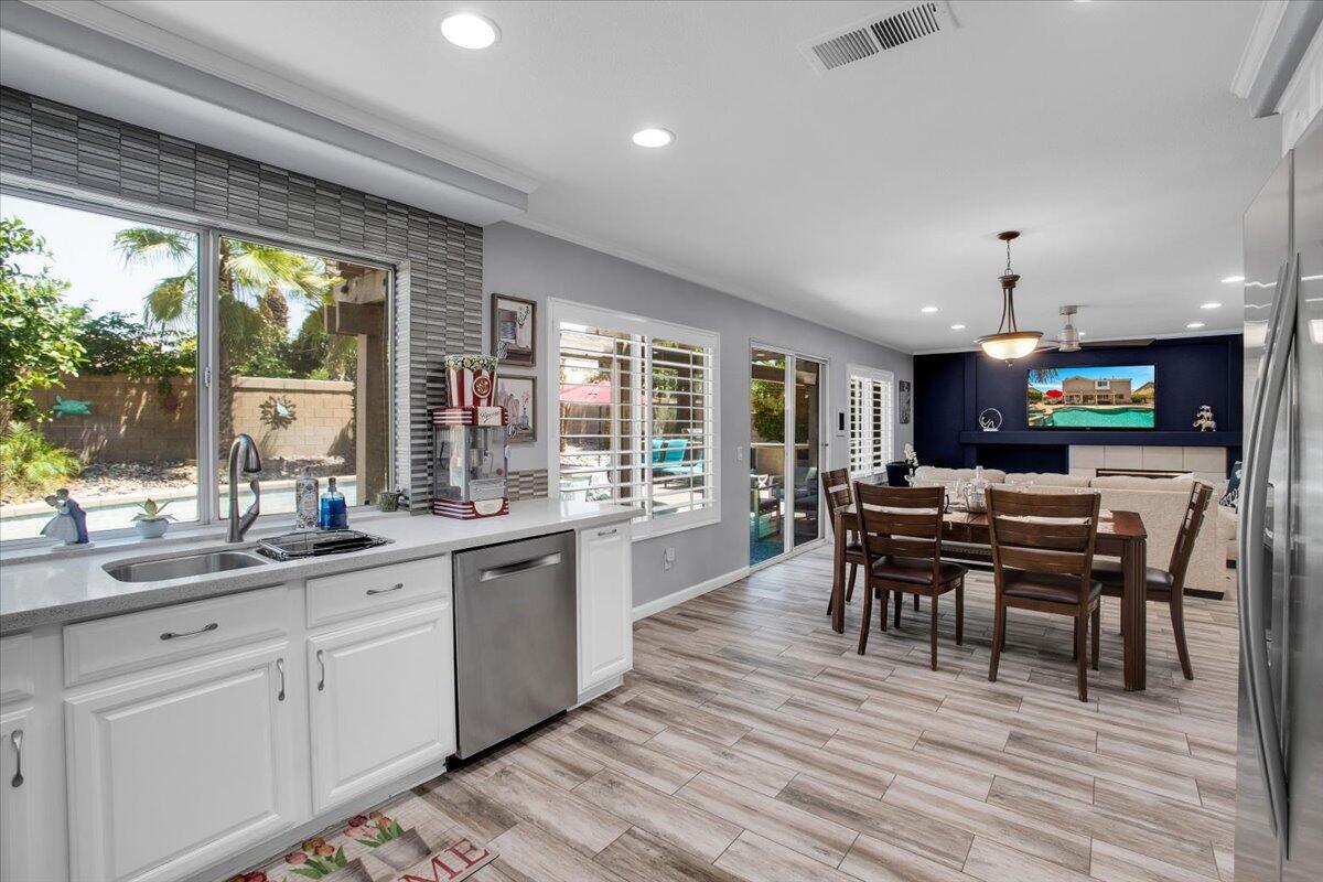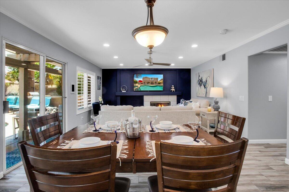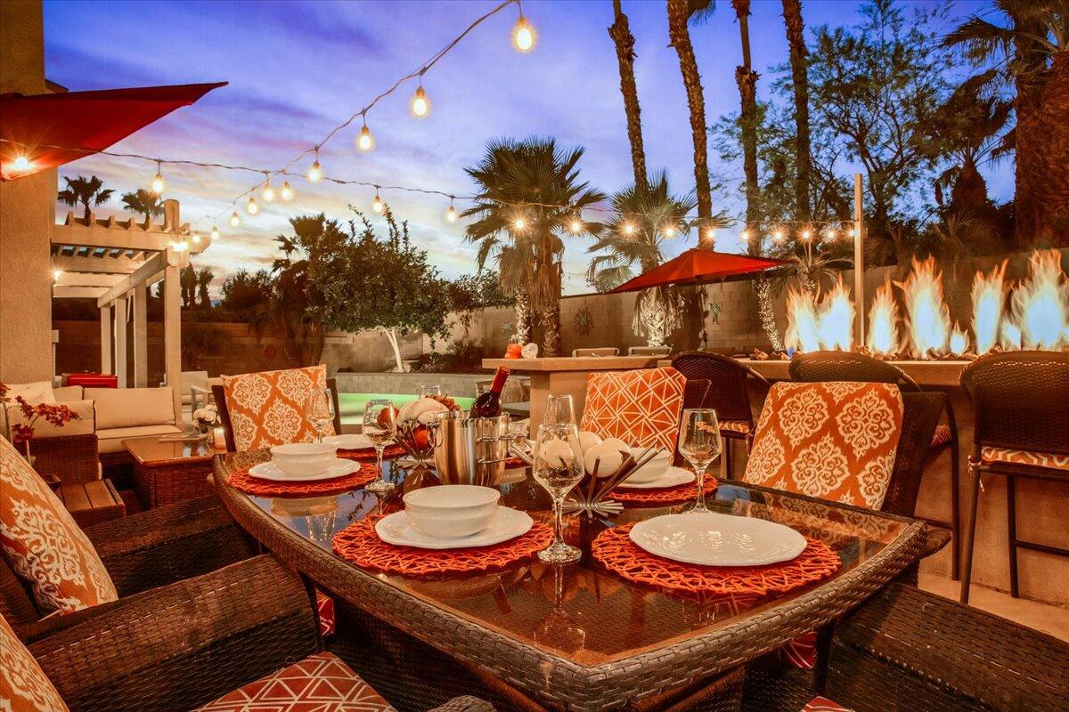 Vacation Rental. Minimum 30 days booking required. Escape to your perfect seasonal retreat in the tranquil Topaz neighborhood of La Quinta. This fully furnished 4-bedroom, 3-bathroom home, including one bed/bath downstairs, is located in a quiet cul-de-sac. Relax by the luxurious saline-pebble tech pool and spa in the expansive backyard, complete with a lush lawn, ping-pong, outdoor games, a built-in BBQ, fire pit, and multiple seating areas.Inside, enjoy the updated kitchen with modern appliances and elegant plantation shutters. Utilities are included, with a cap on pool and gas usage.Monthly Rates: Jan-March: $8500/month, Inquire for April/Coachella. May-Dec: $7500/month. Special Rate: June-Sept 2025 $5000/month. Inquire about annual/unfurnished rates.Additional fees: $495 cleaning, $188 property fee, and a $100 monthly gas cap for pool use (spa complimentary). $8500 refundable security deposit. Booked March 2026. All other dates open.Interested in this Listing?