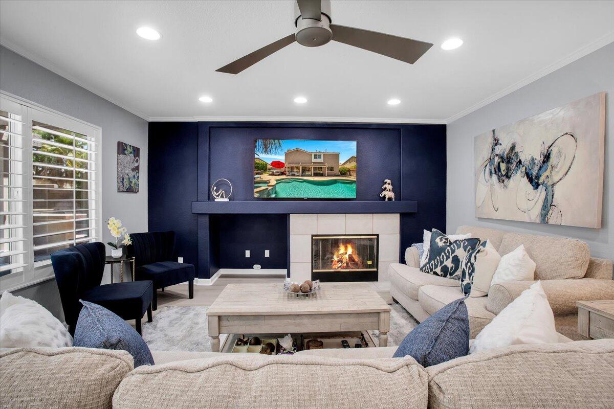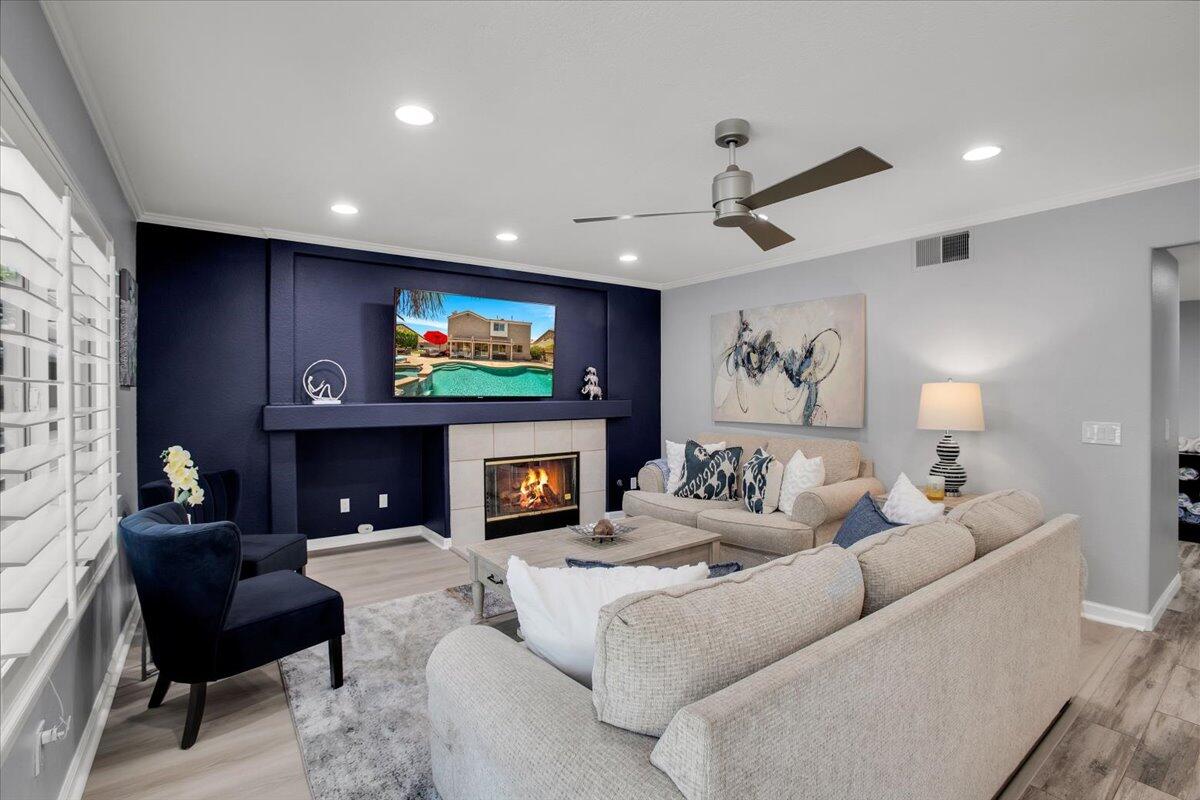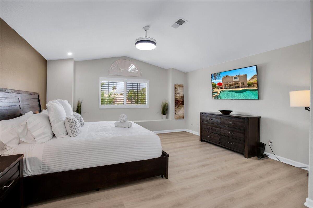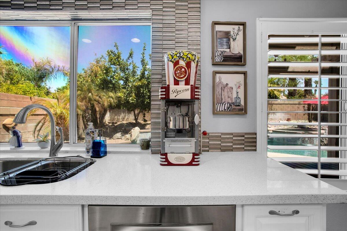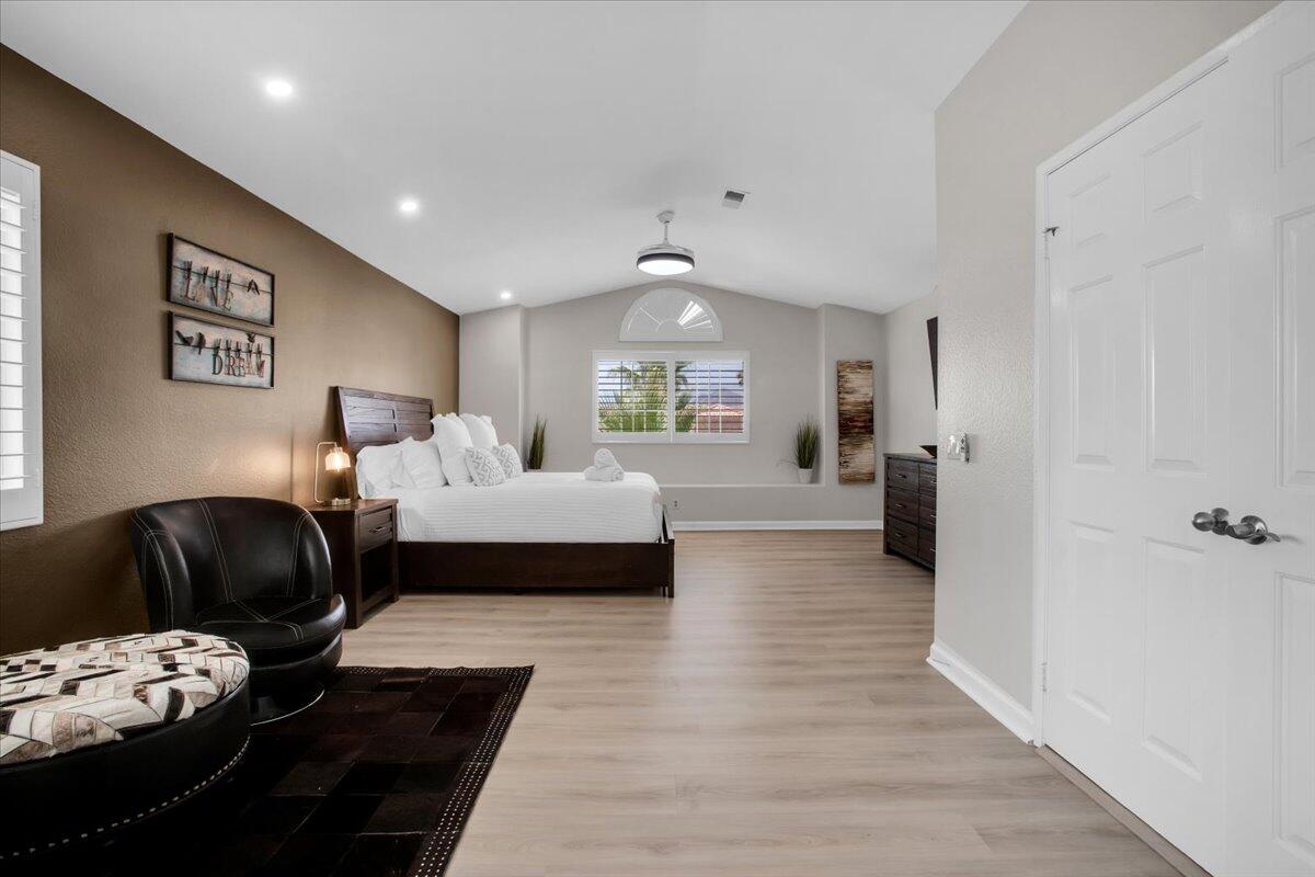 Vacation Rental. Minimum 30 days booking required. Escape to your perfect seasonal retreat in the tranquil Topaz neighborhood of La Quinta. This fully furnished 4-bedroom, 3-bathroom home, including one bed/bath downstairs, is located in a quiet cul-de-sac. Relax by the luxurious saline-pebble tech pool and spa in the expansive backyard, complete with a lush lawn, ping-pong, outdoor games, a built-in BBQ, fire pit, and multiple seating areas.Inside, enjoy the updated kitchen with modern appliances and elegant plantation shutters. Utilities are included, with a cap on pool and gas usage.Monthly Rates: Jan-March: $8500/month, Inquire for April/Coachella. May-Dec: $7500/month. Special Rate: June-Sept 2025 $5000/month. Inquire about annual/unfurnished rates.Additional fees: $495 cleaning, $188 property fee, and a $100 monthly gas cap for pool use (spa complimentary). $8500 refundable security deposit. Booked March 2026. All other dates open.Interested in this Listing?